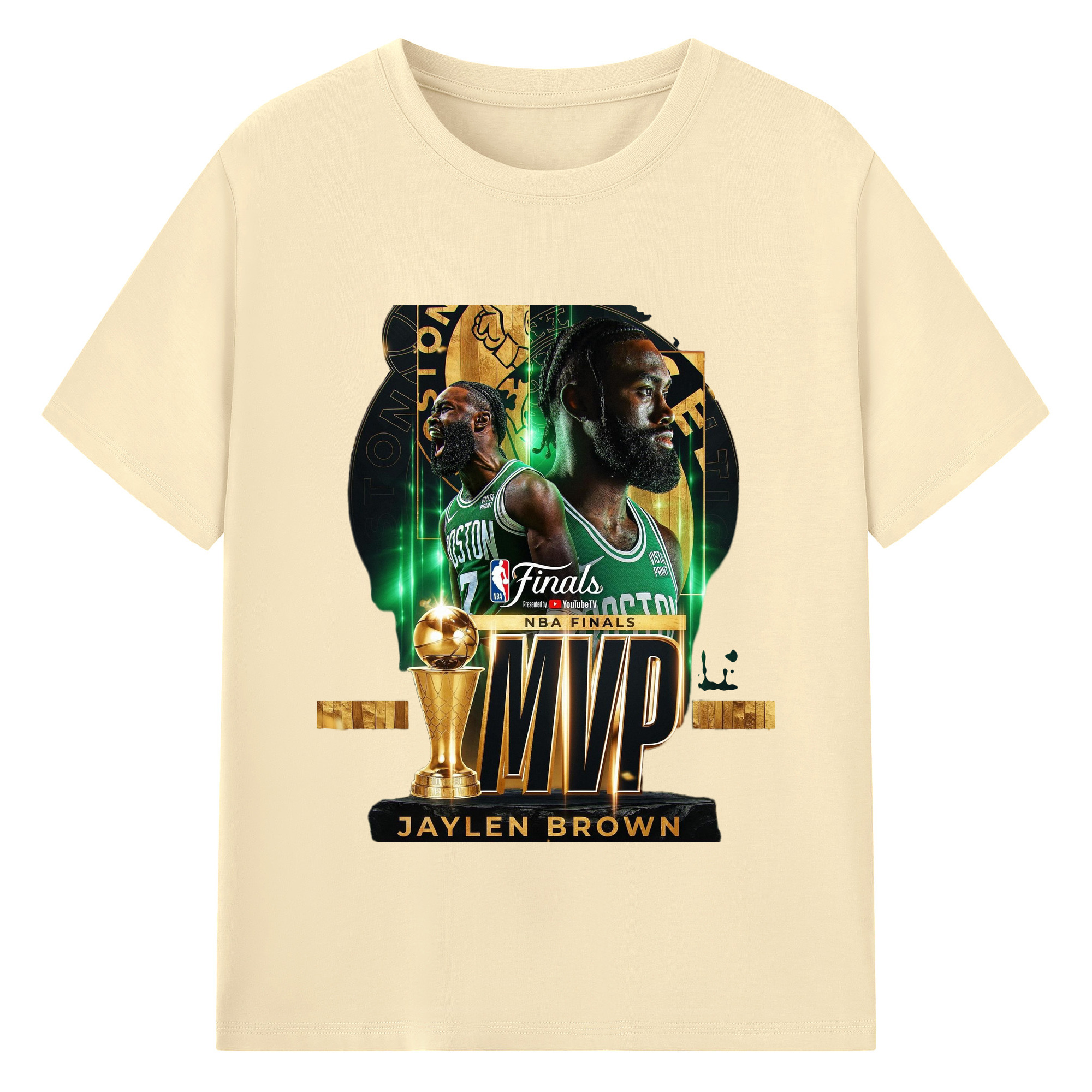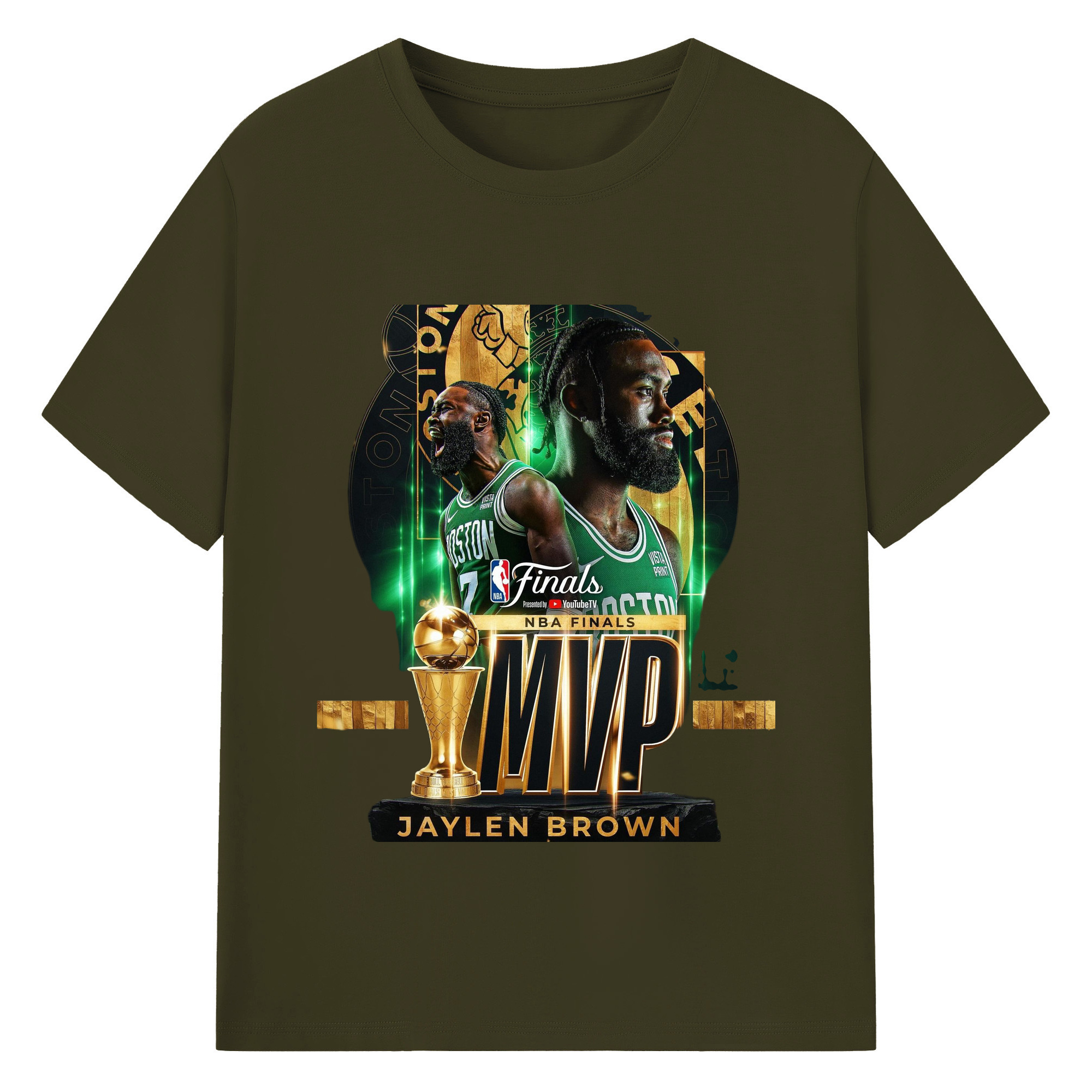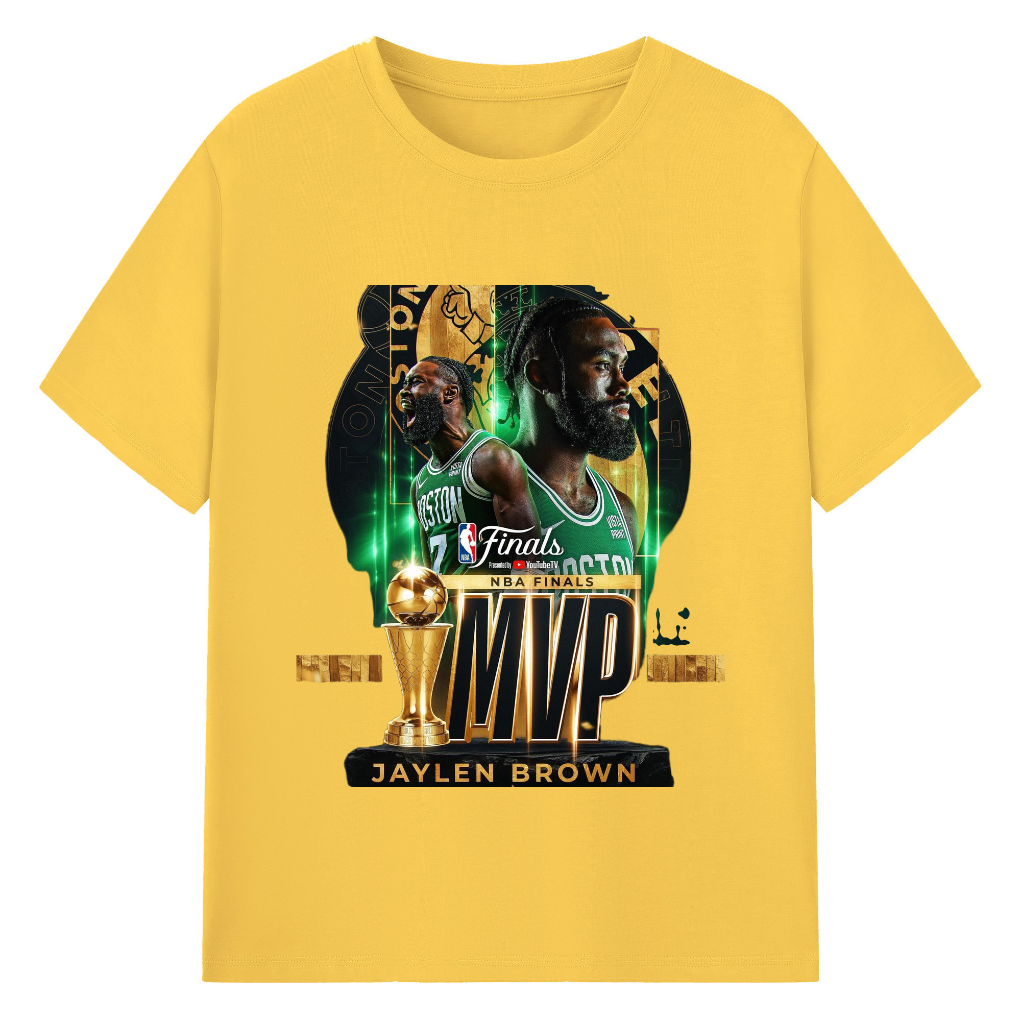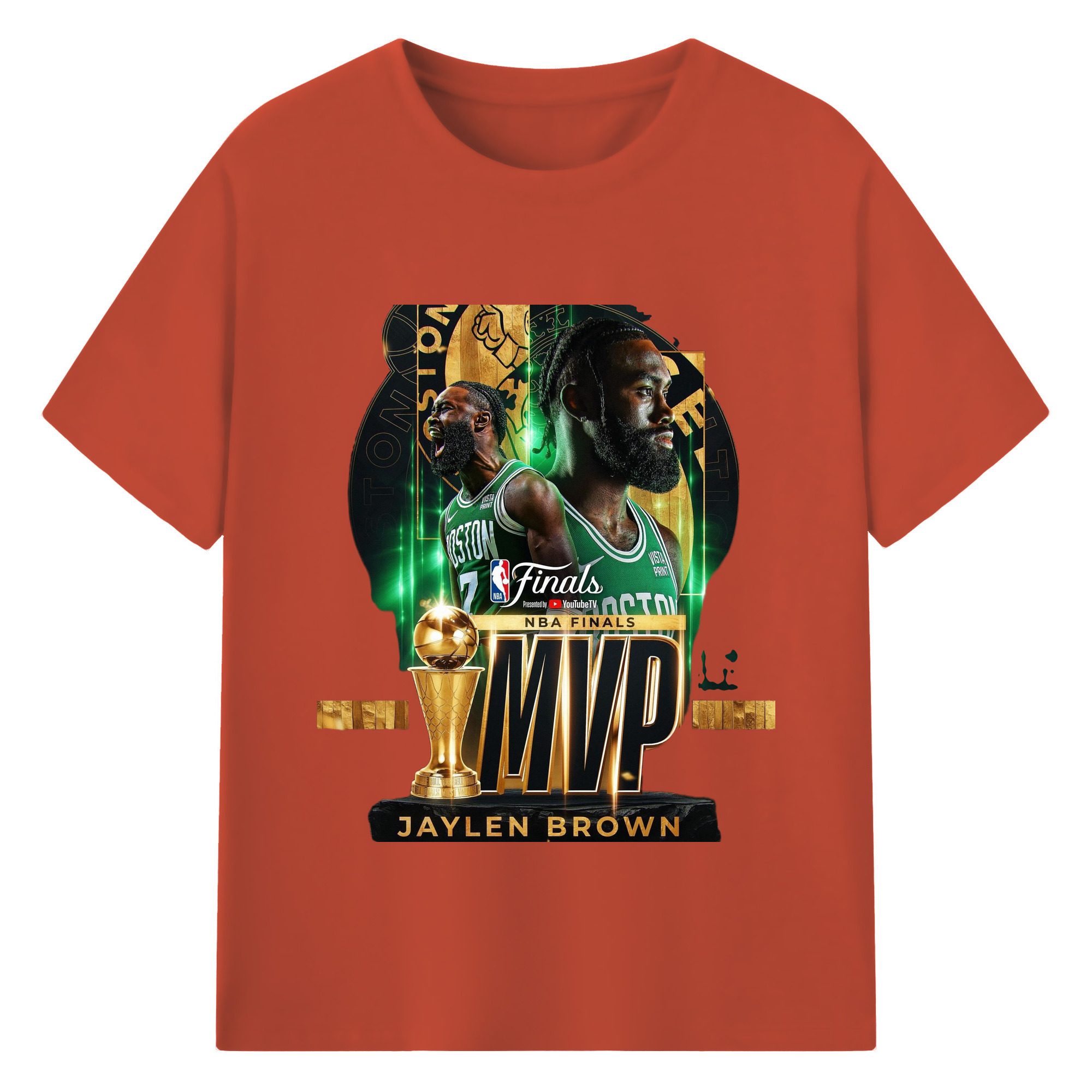 Celtics Jaylen Brown NBA FMVP T-Shirt - 180g Cotton T-Shirt With Front Heat Transfer Print – Soft, Lightweight, Fitted Design – Comfortable Casual Wear For Sports & Everyday Use