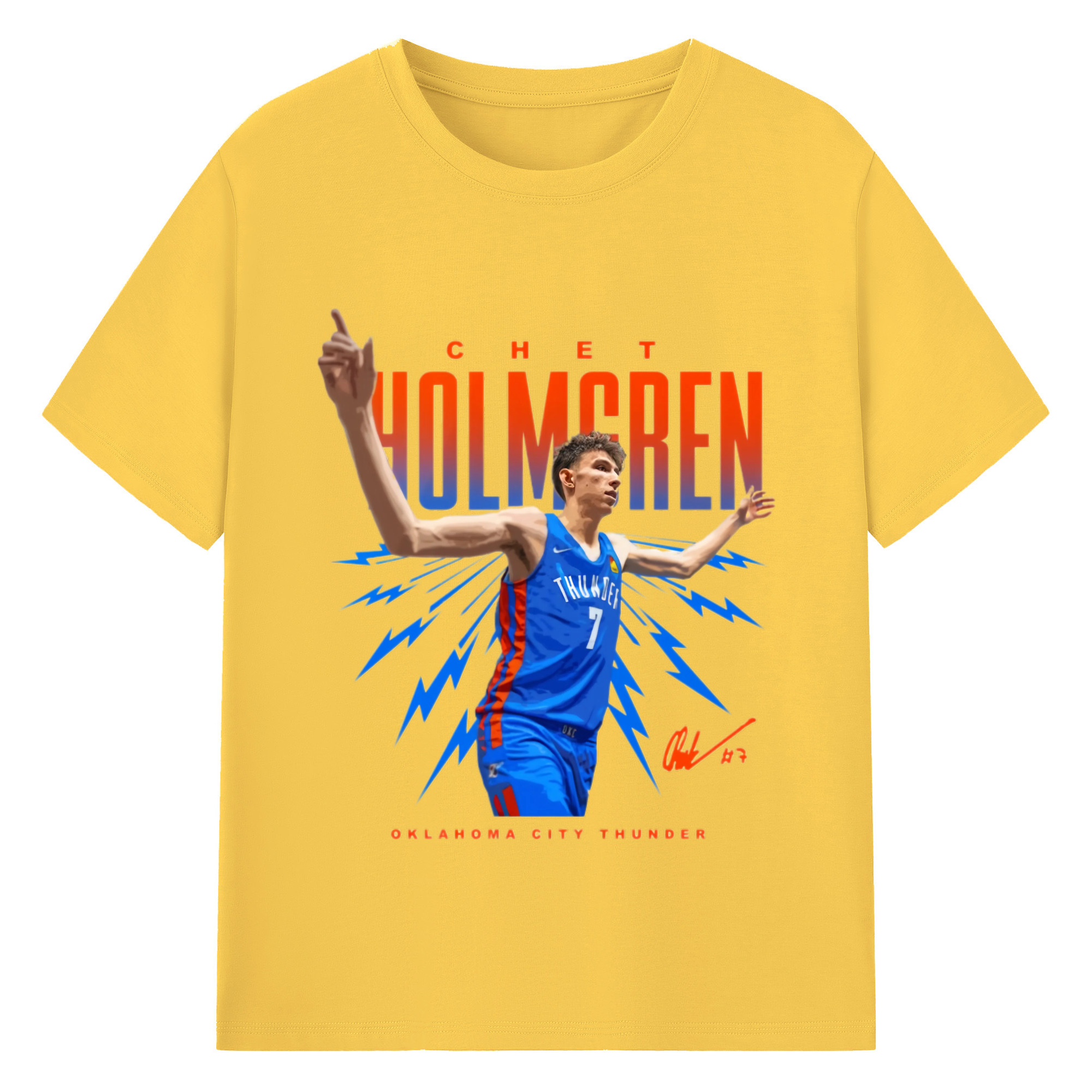 Chet Holmgren enjoy the cheers graphic T‑Shirt - 180g Cotton T-Shirt With Front Heat Transfer Print – Soft, Lightweight, Fitted Design – Comfortable Casual Wear For Sports & Everyday Use