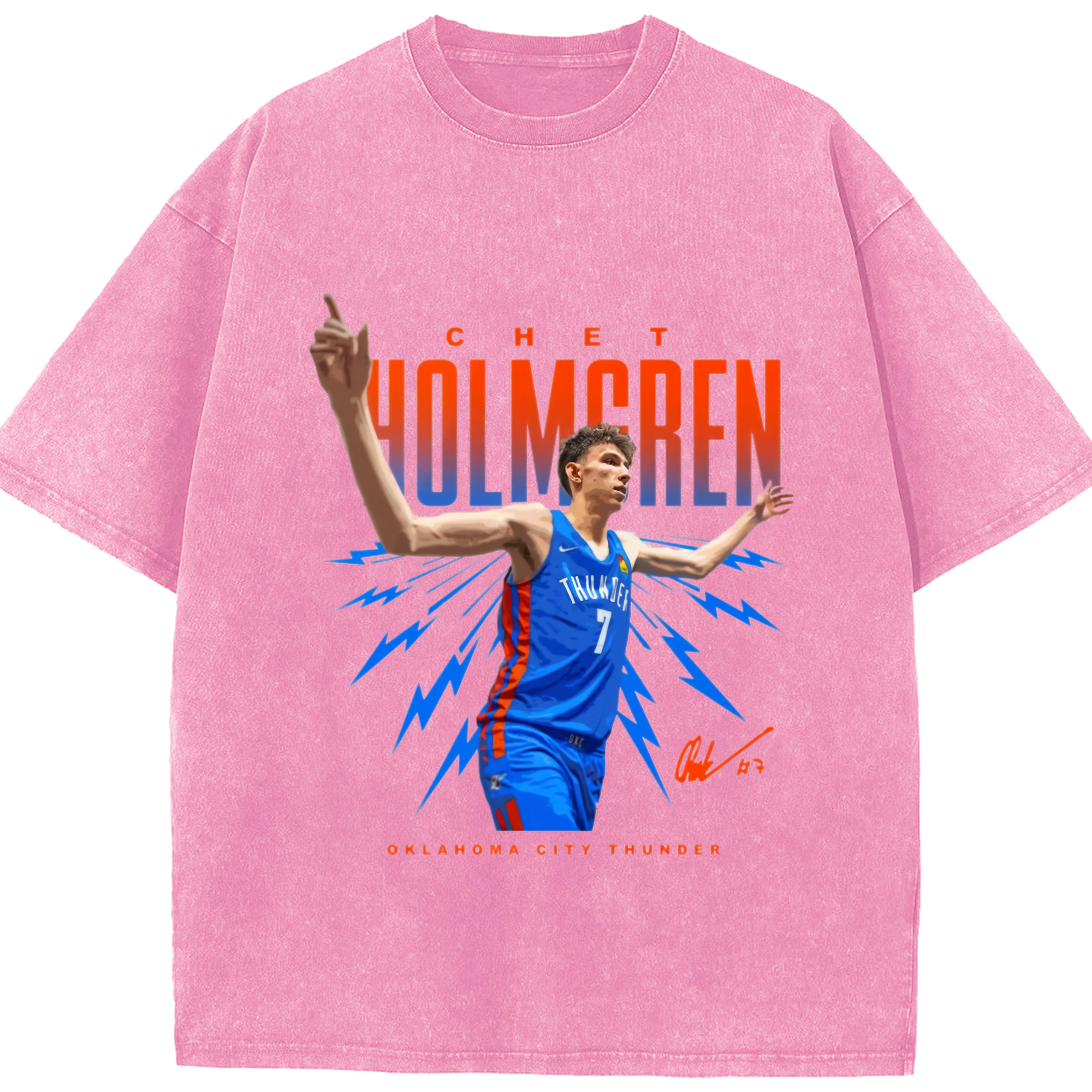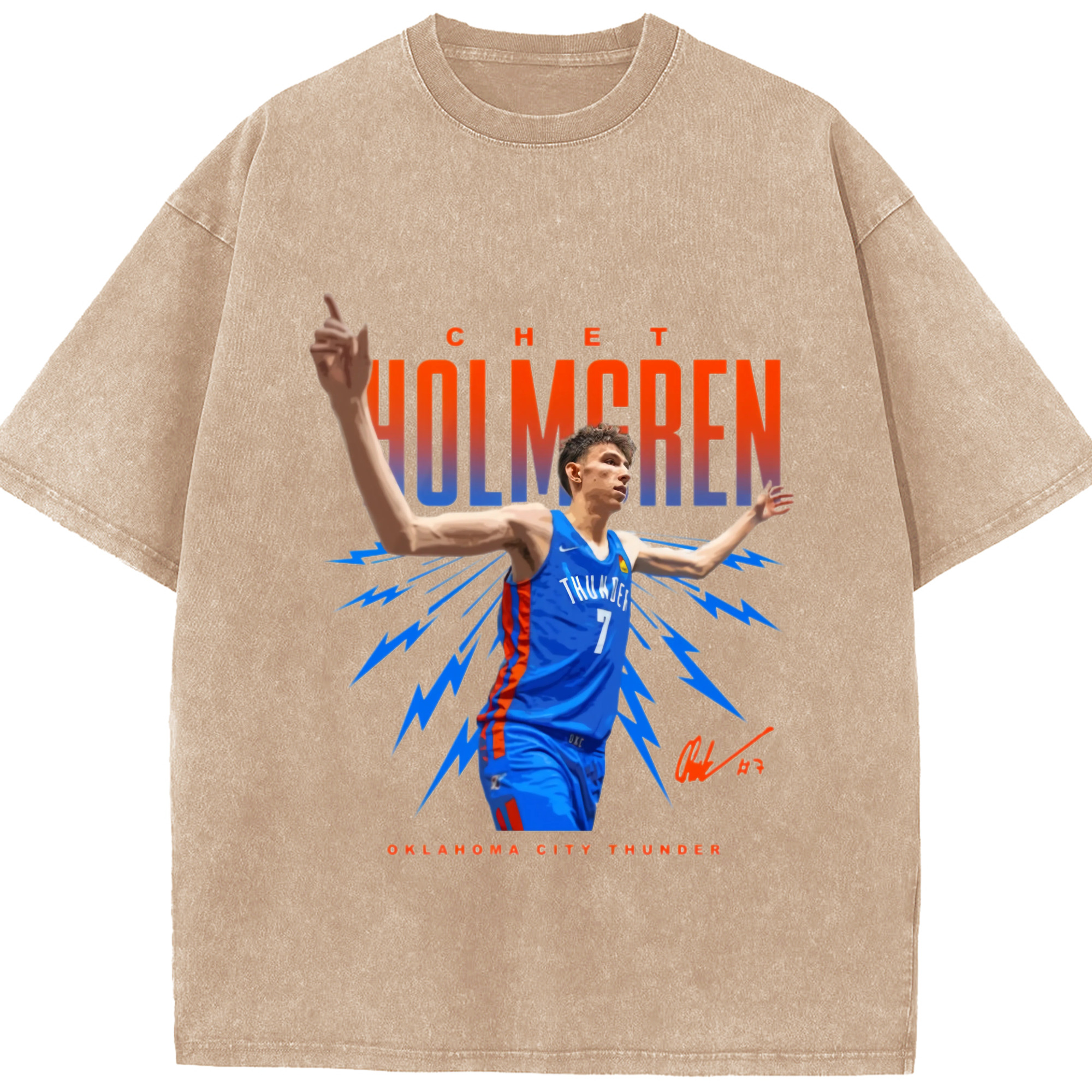 Chet Holmgren enjoy the cheers graphic T‑Shirt - Washed Vintage Look 230g Cotton Oversized T-Shirt With Front Heat Transfer Print – Soft, Lightweight, Stylish Fit – Comfortable Casual Wear For Sports & Everyday Use