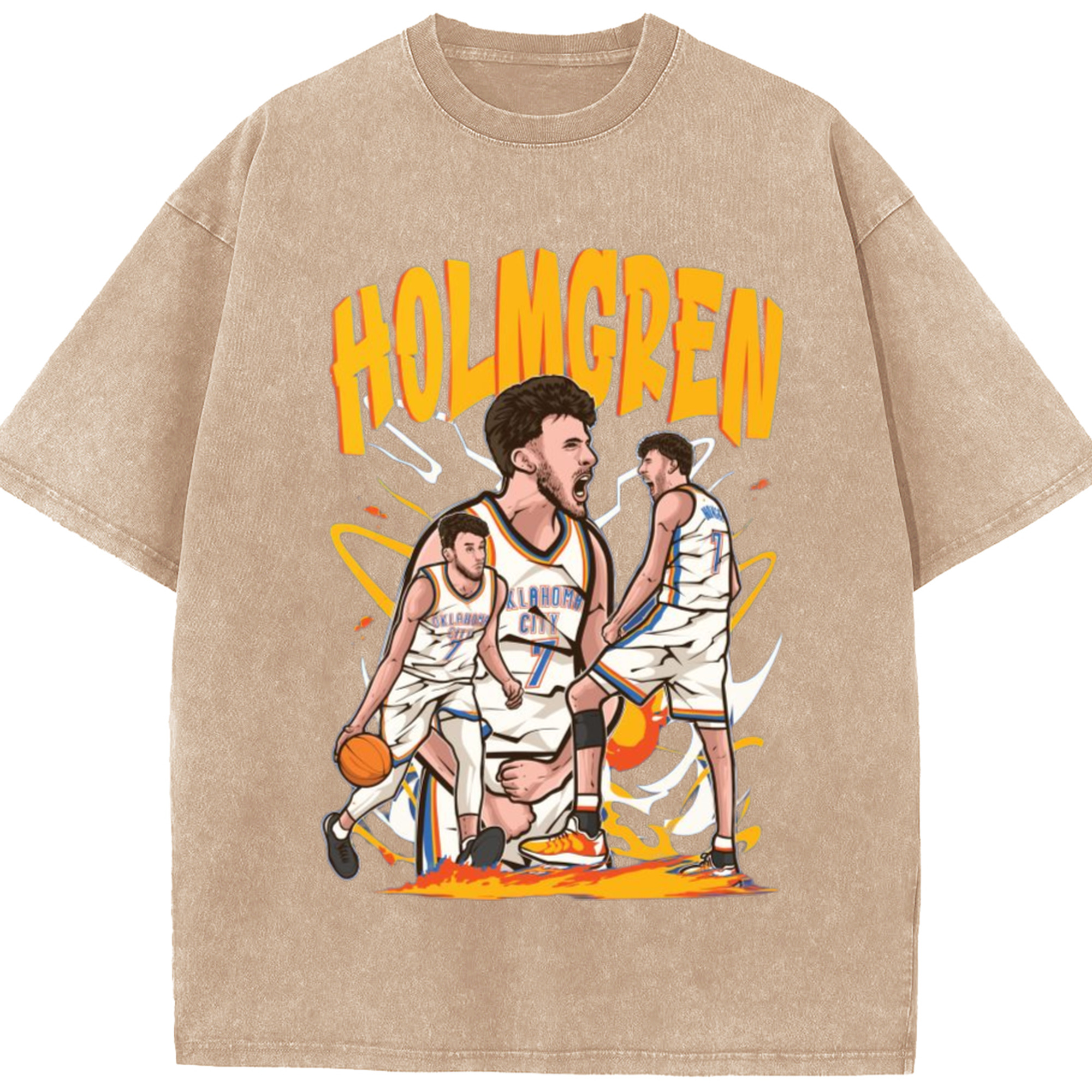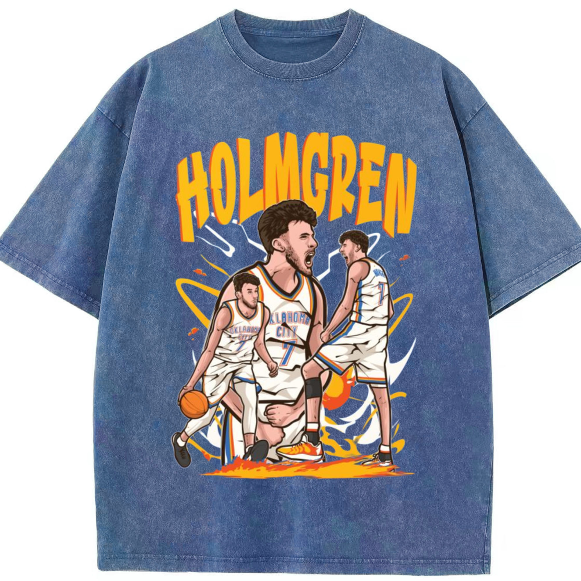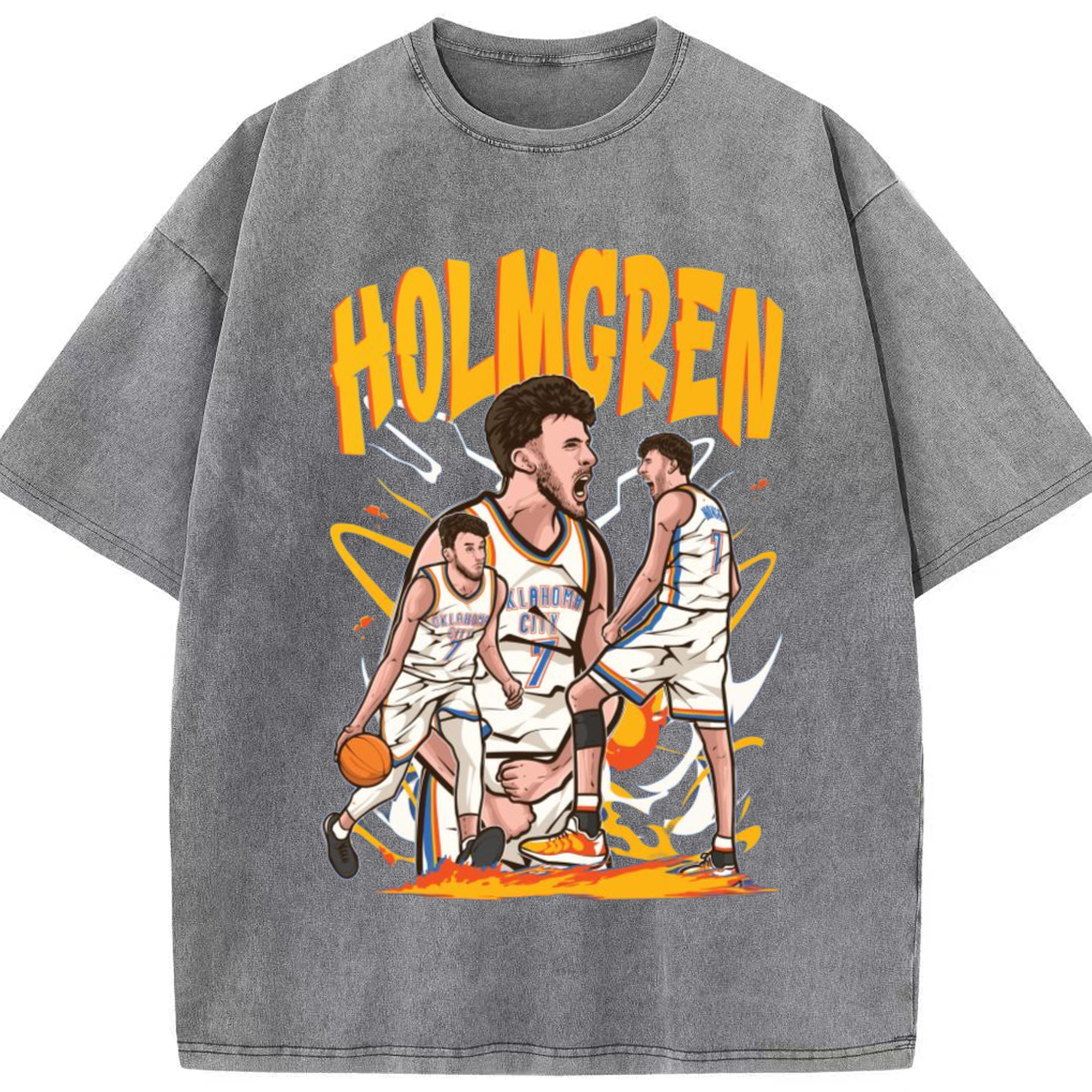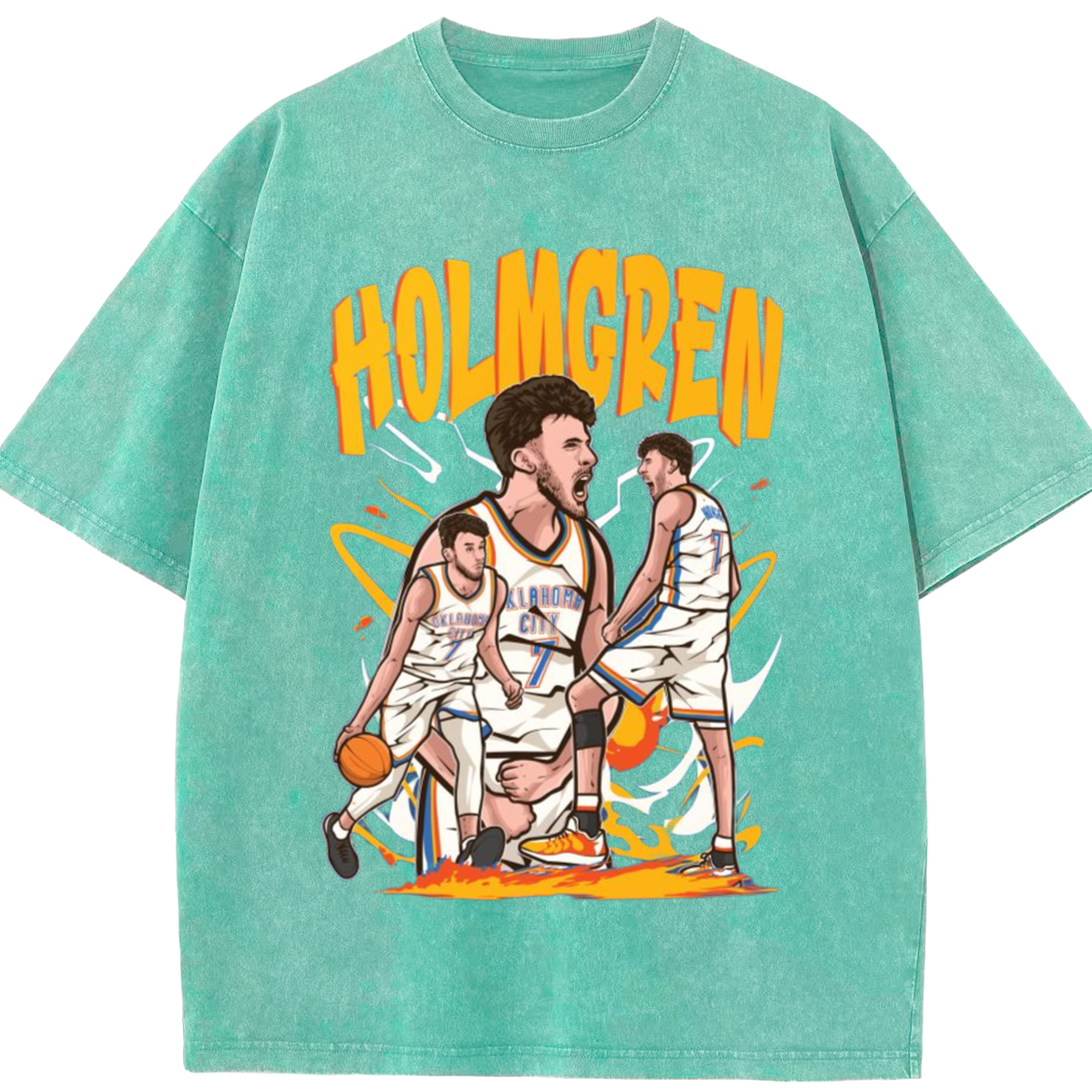Chet Holmgren OKC Thunder Comic style T-shirt - Washed Vintage Look 230g Cotton Oversized T-Shirt With Front Heat Transfer Print – Soft, Lightweight, Stylish Fit – Comfortable Casual Wear For Sports & Everyday Use