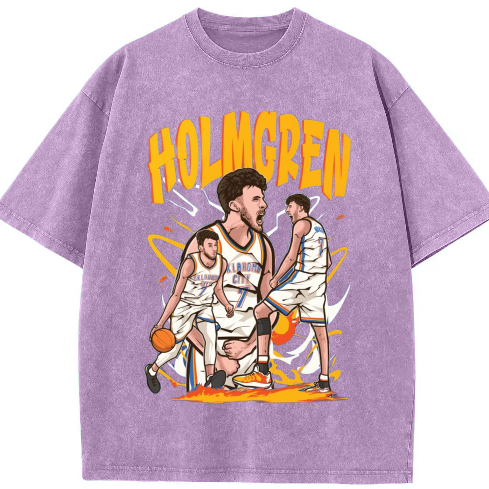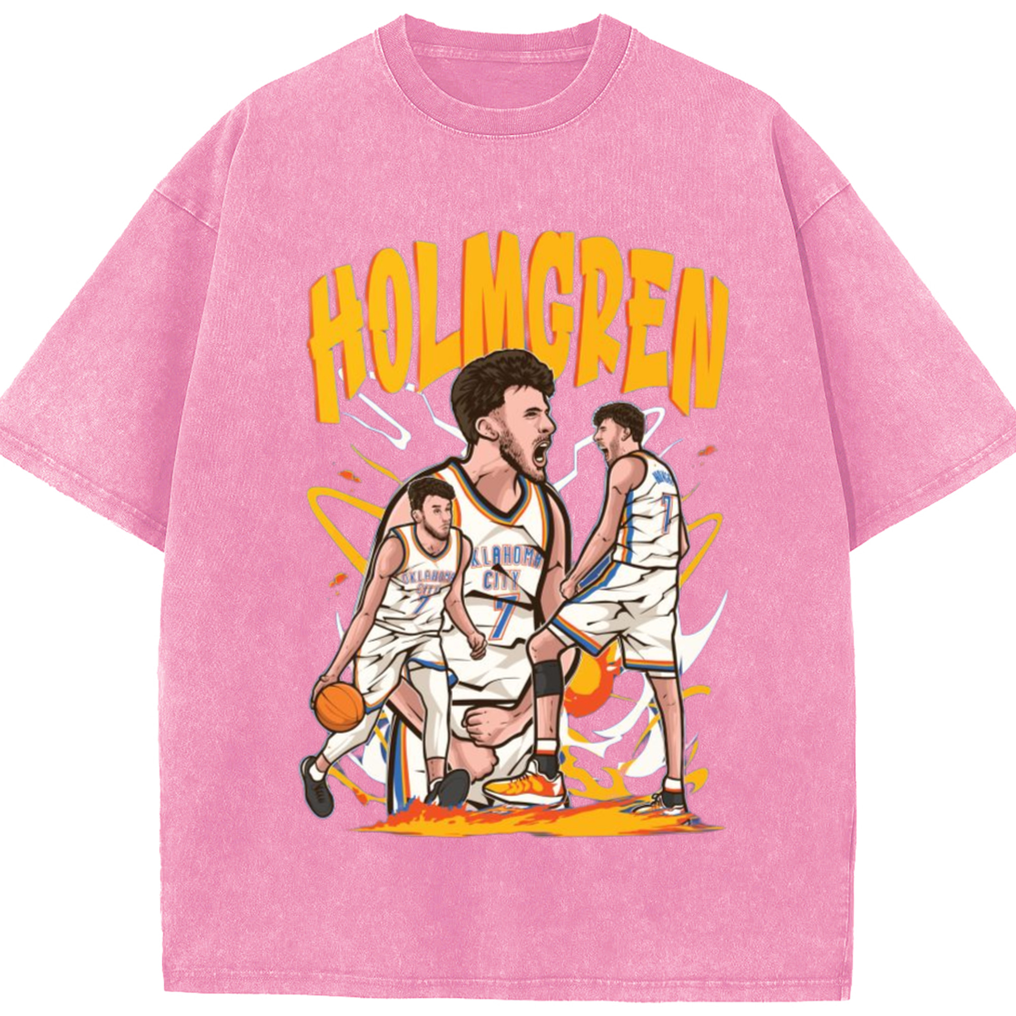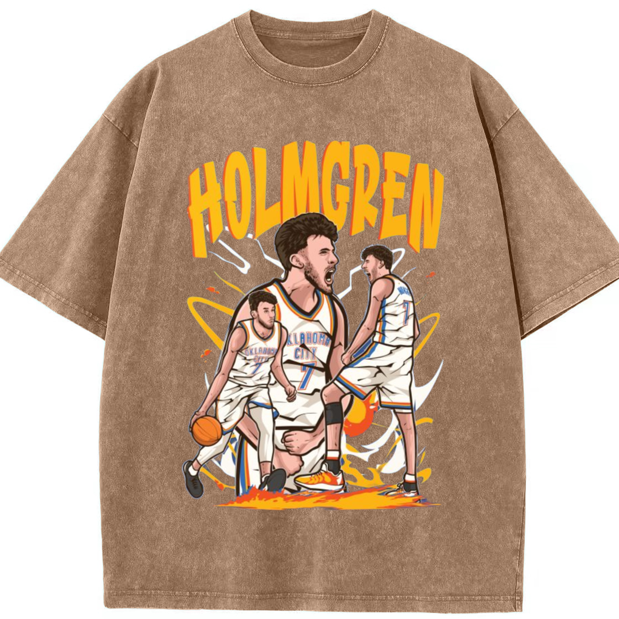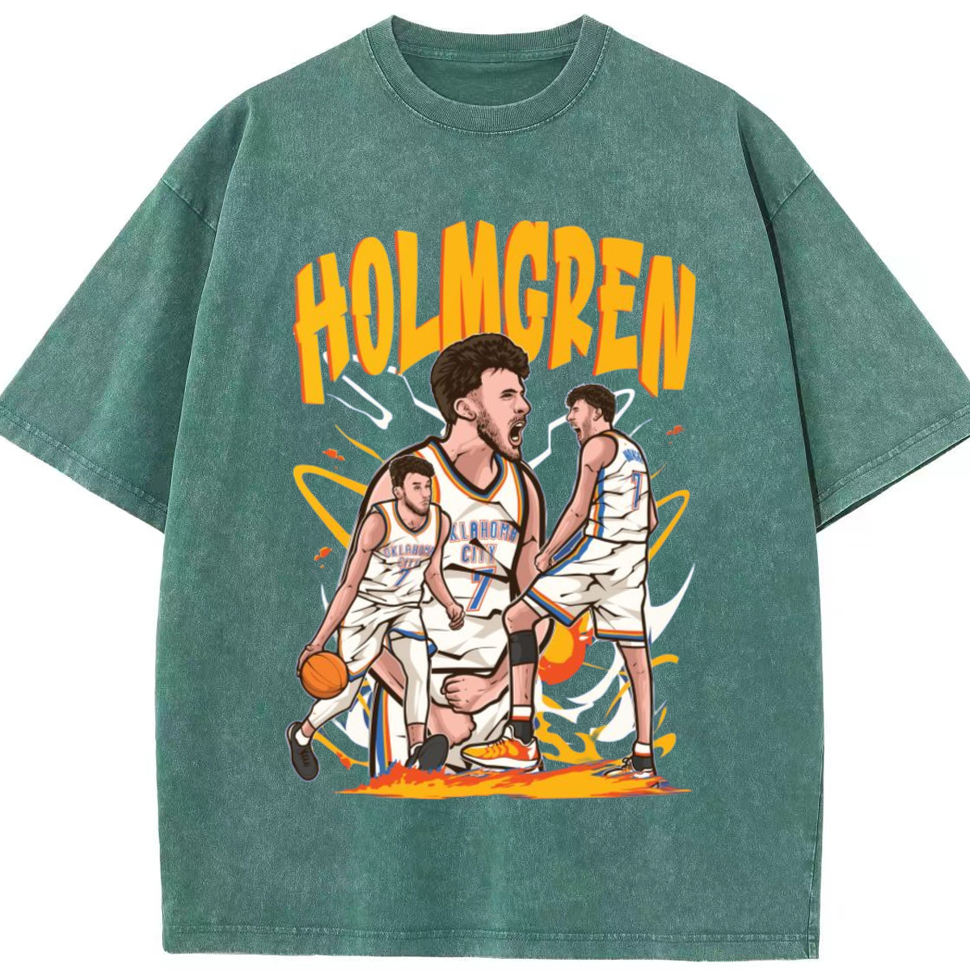 Chet Holmgren OKC Thunder Comic style T-shirt - Washed Vintage Look 230g Cotton Oversized T-Shirt With Front Heat Transfer Print – Soft, Lightweight, Stylish Fit – Comfortable Casual Wear For Sports & Everyday Use
