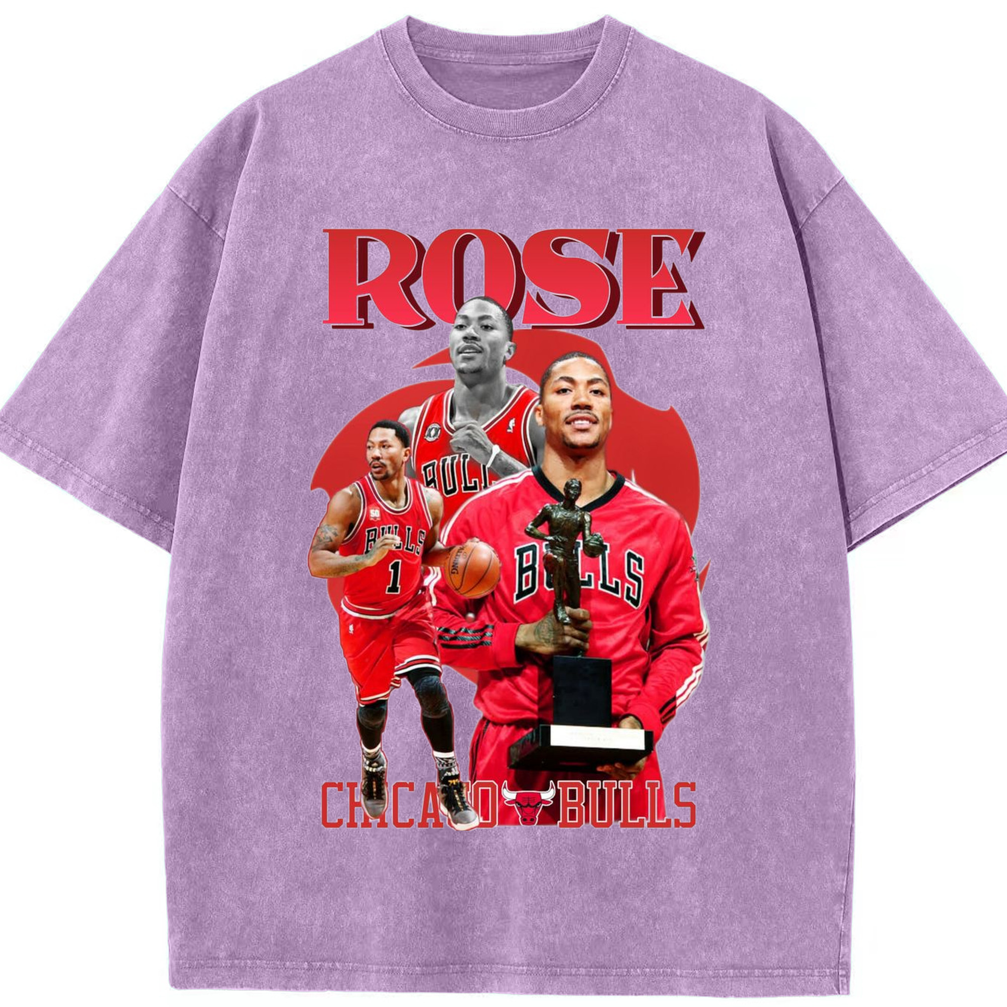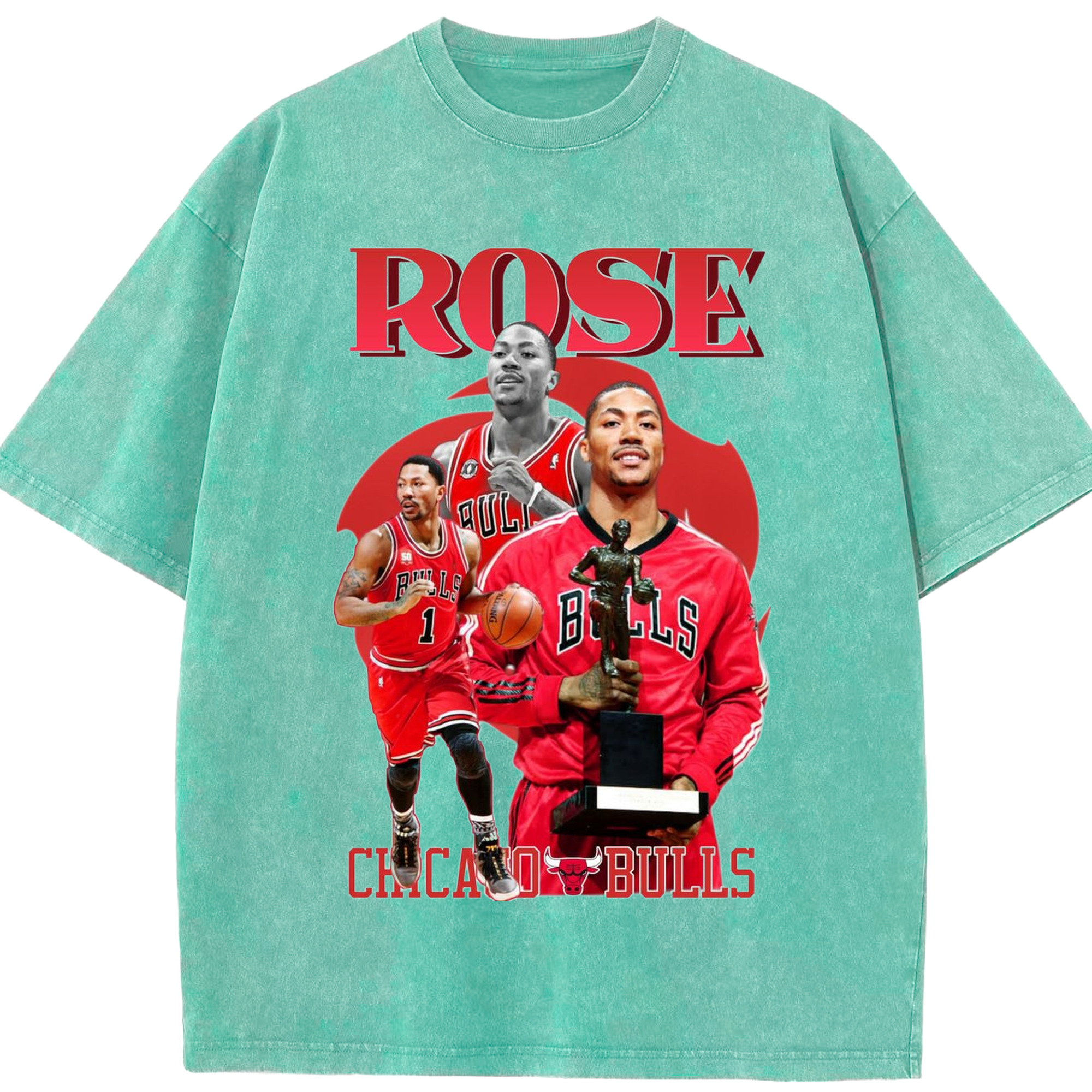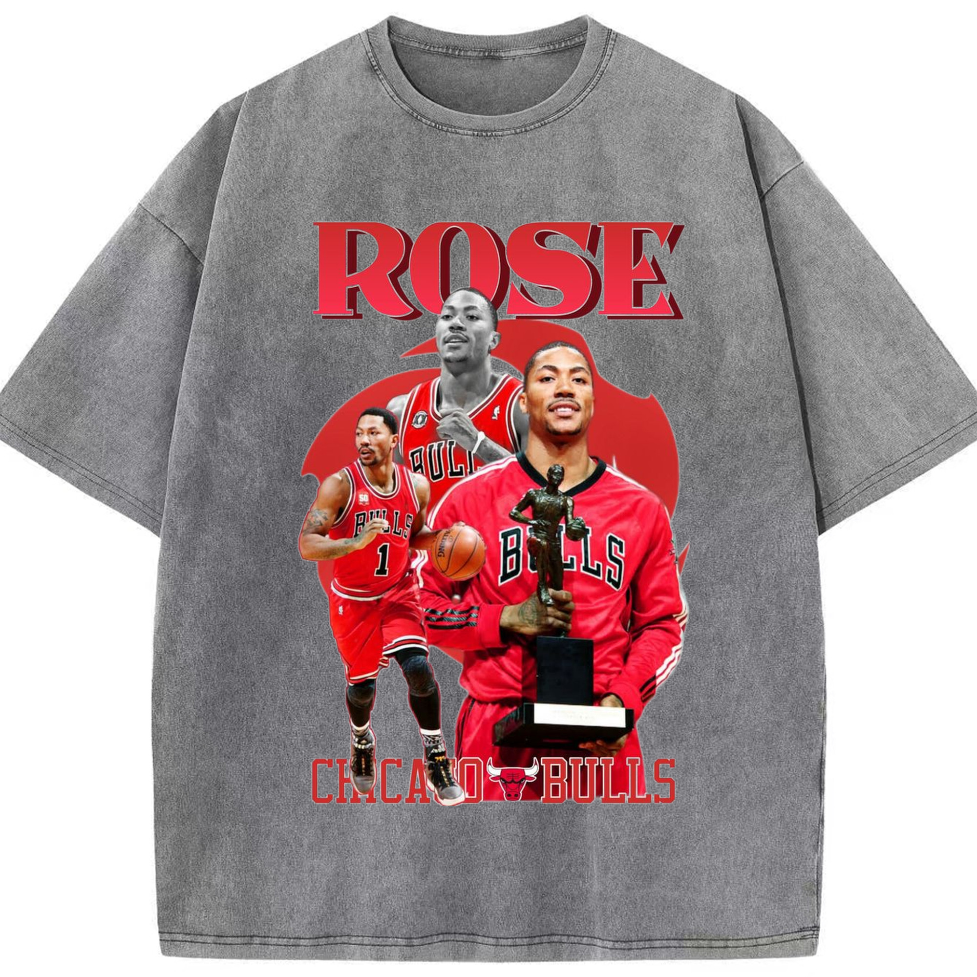 Chicago Bulls Derrick Rose youngest Mvp T-shirt - Washed Vintage Look 230g Cotton Oversized T-Shirt With Front Heat Transfer Print – Soft, Lightweight, Stylish Fit – Comfortable Casual Wear For Sports & Everyday Use