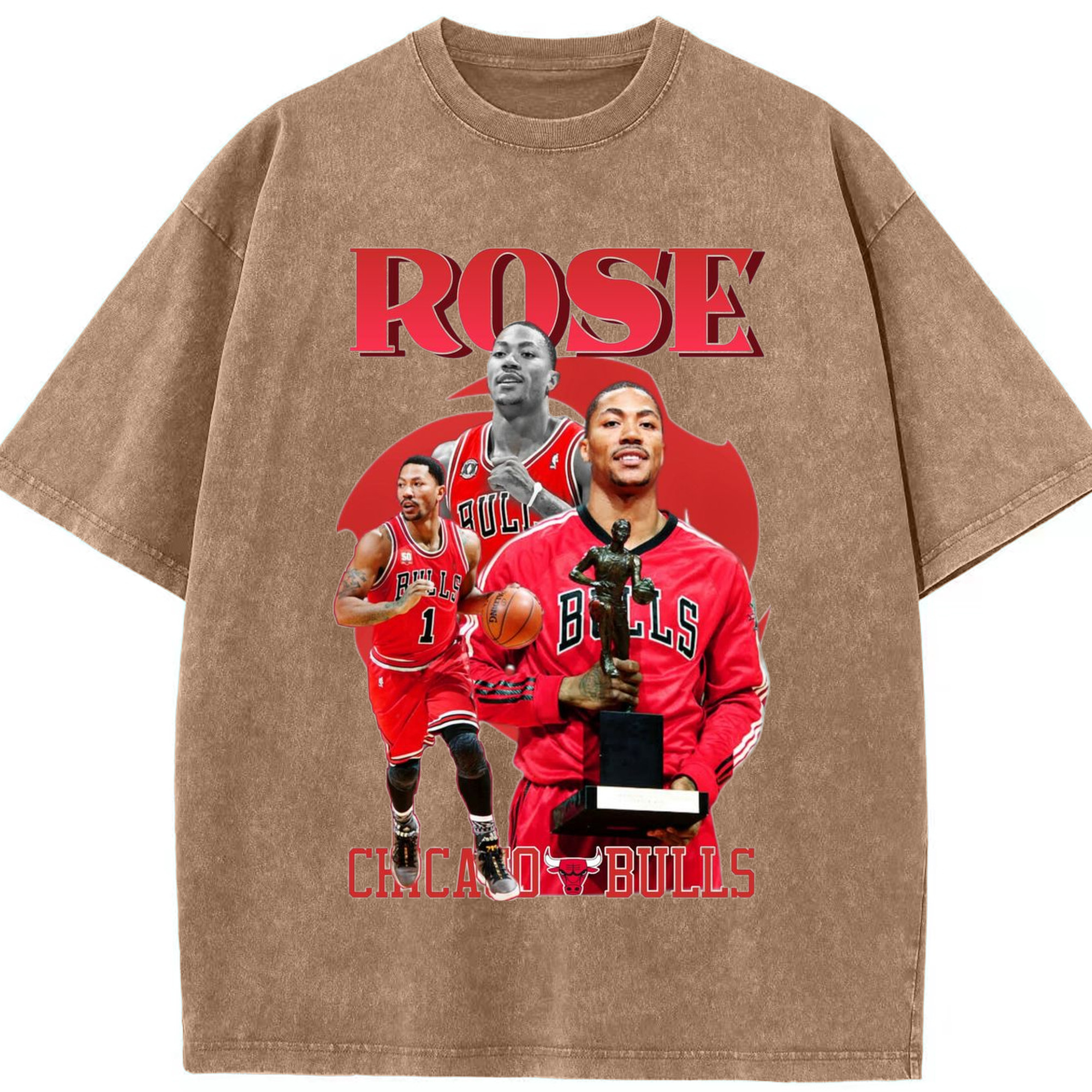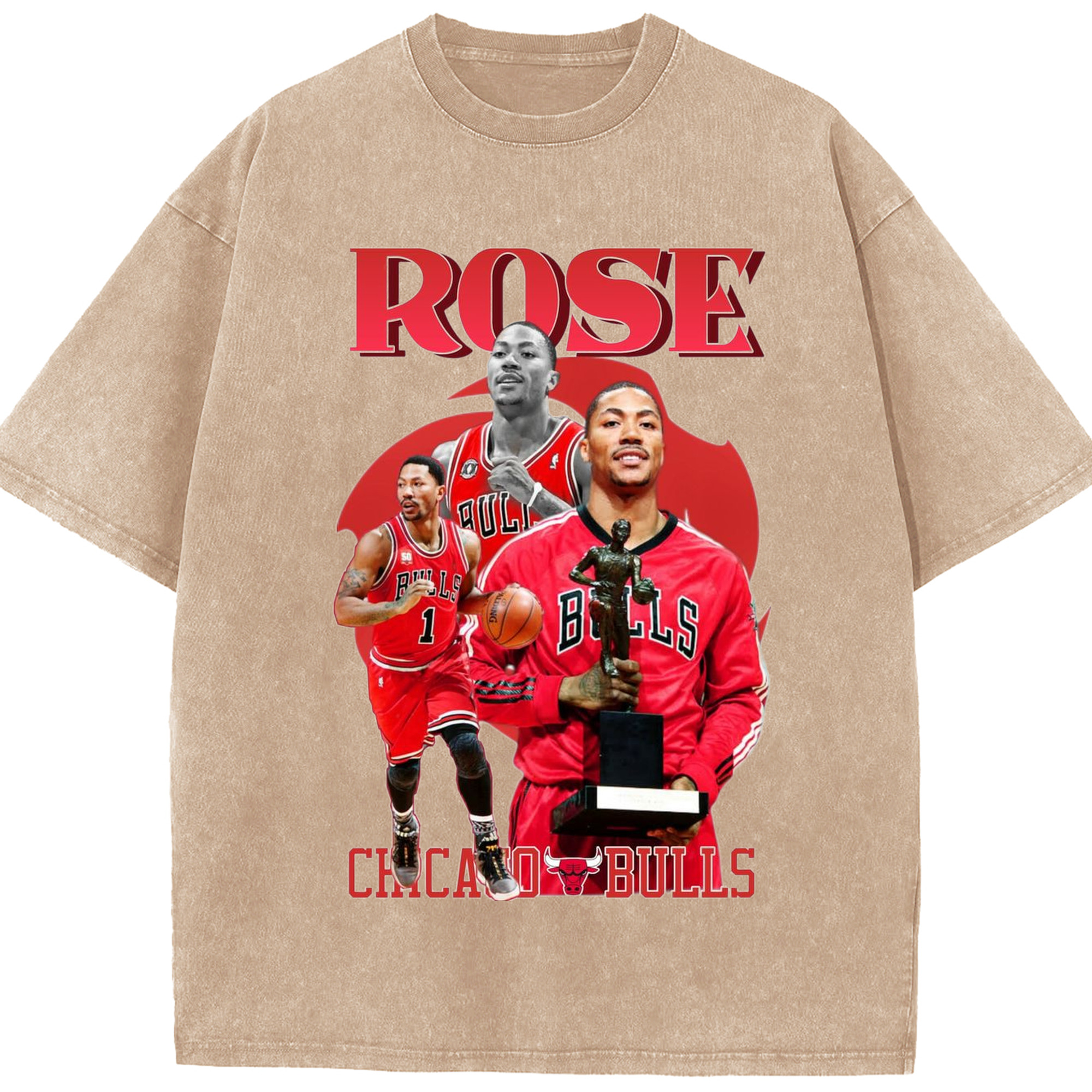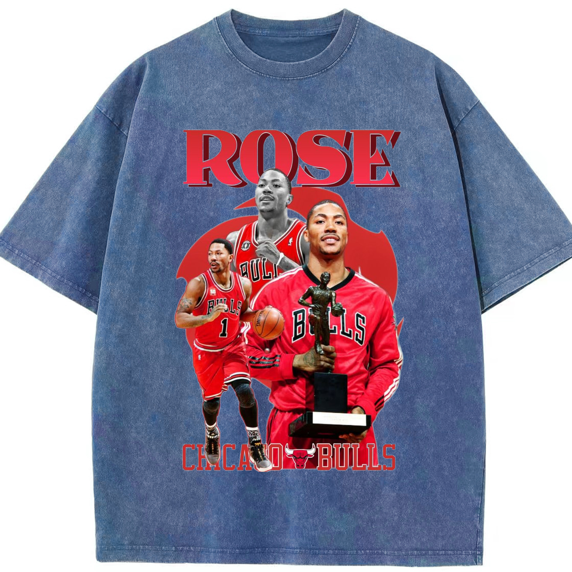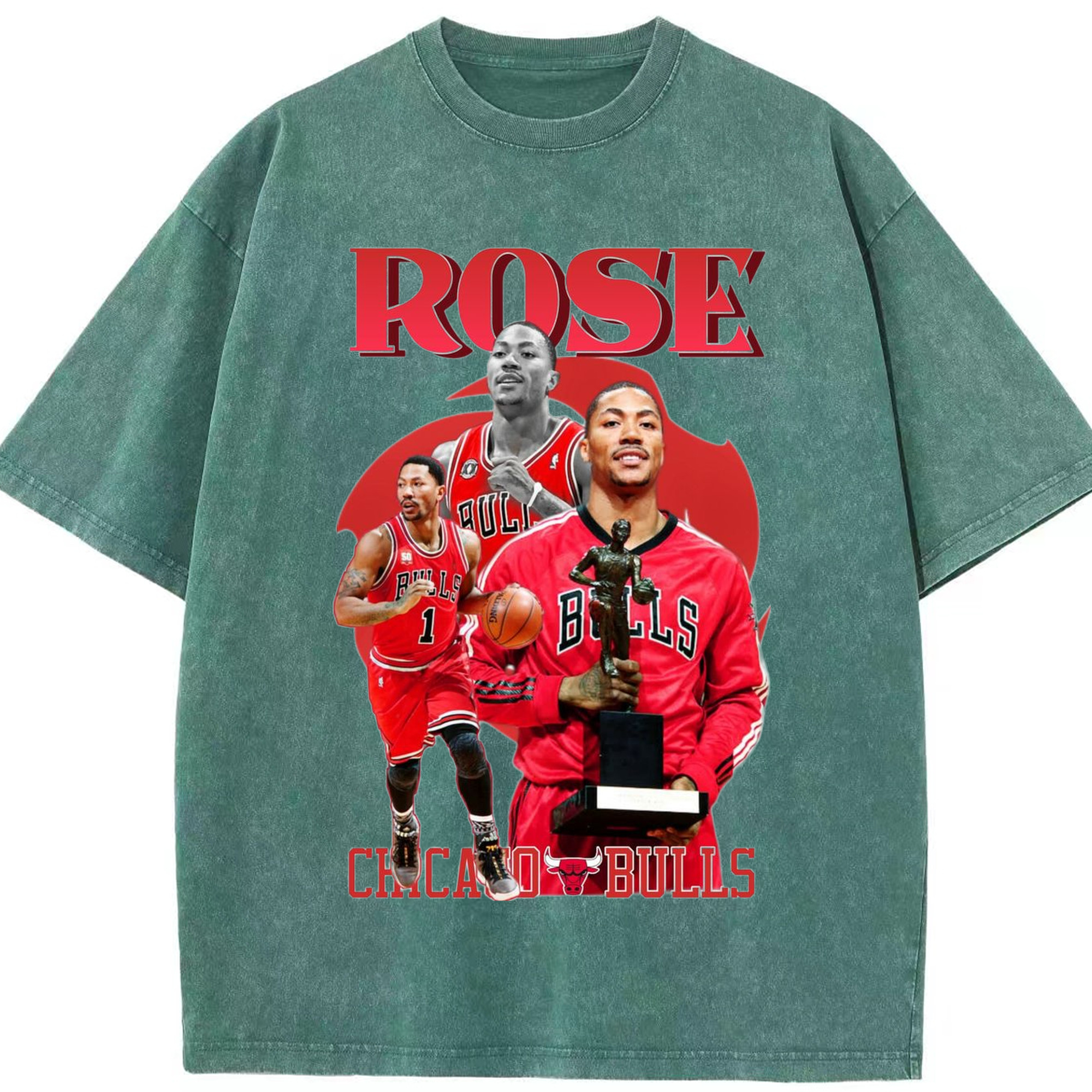 Chicago Bulls Derrick Rose youngest Mvp T-shirt - Washed Vintage Look 230g Cotton Oversized T-Shirt With Front Heat Transfer Print – Soft, Lightweight, Stylish Fit – Comfortable Casual Wear For Sports & Everyday Use