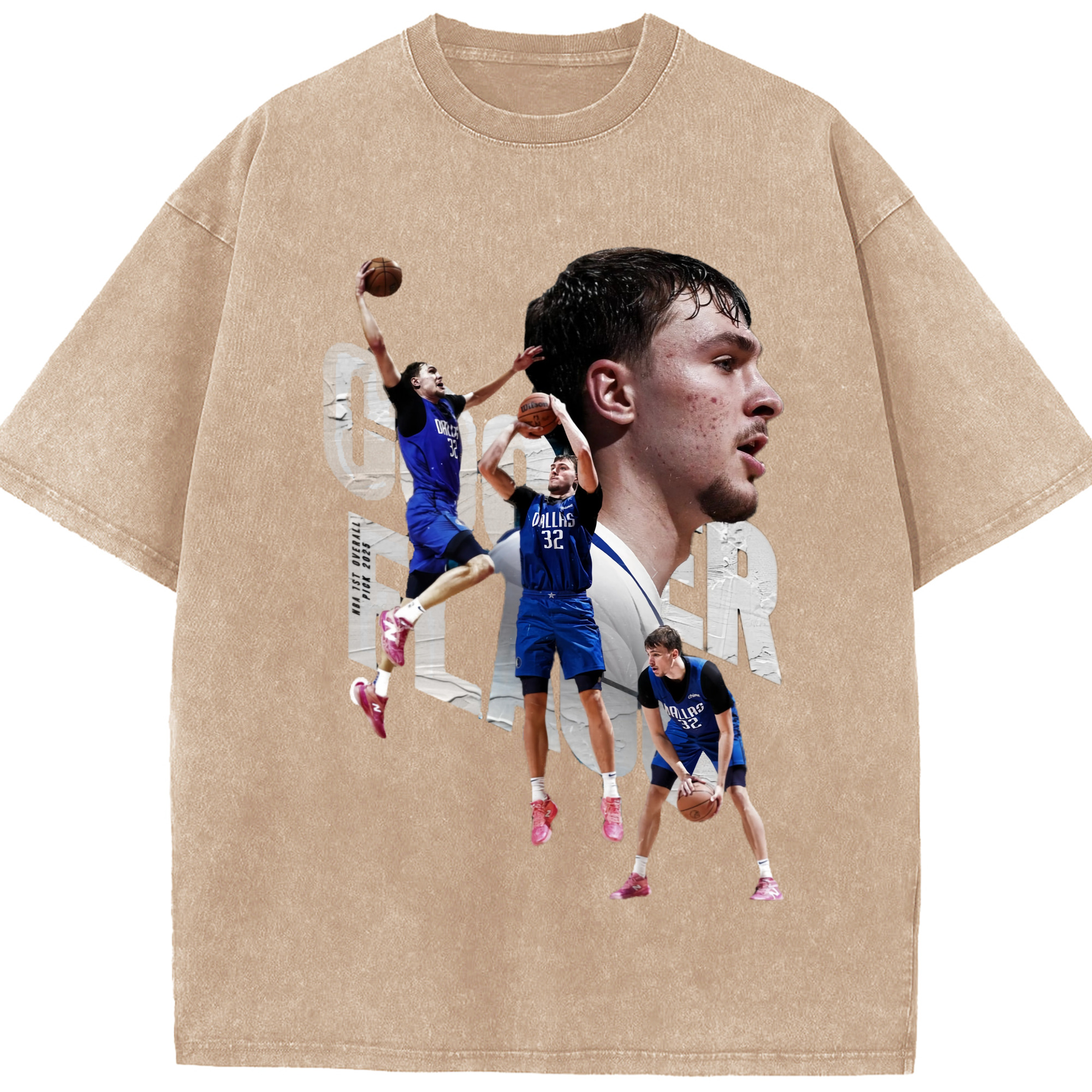 Cooper Flagg Dallas Mavericks #32 t-shirt - Washed Vintage Look 230g Cotton Oversized T-Shirt With Front Heat Transfer Print – Soft, Lightweight, Stylish Fit – Comfortable Casual Wear For Sports & Everyday Use
