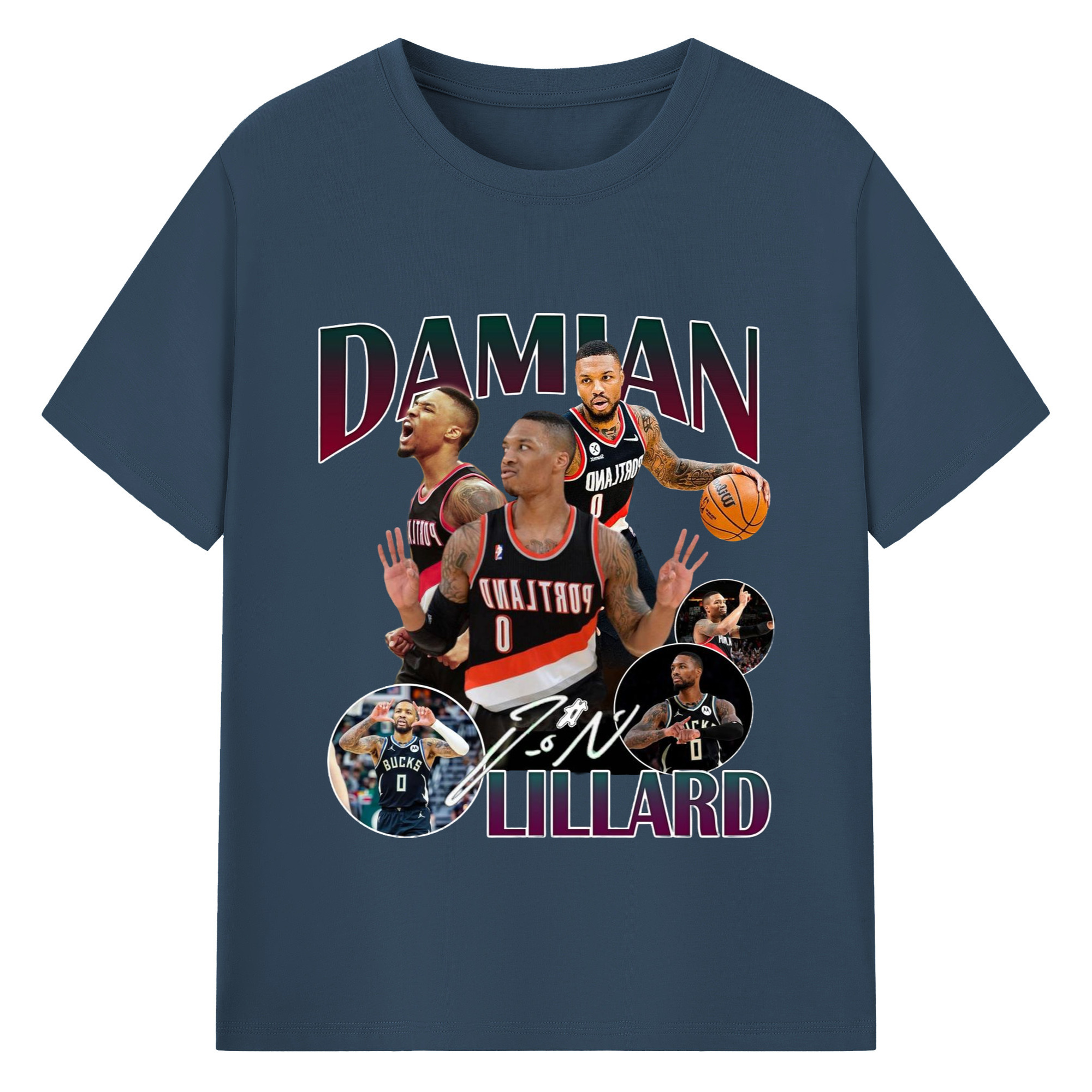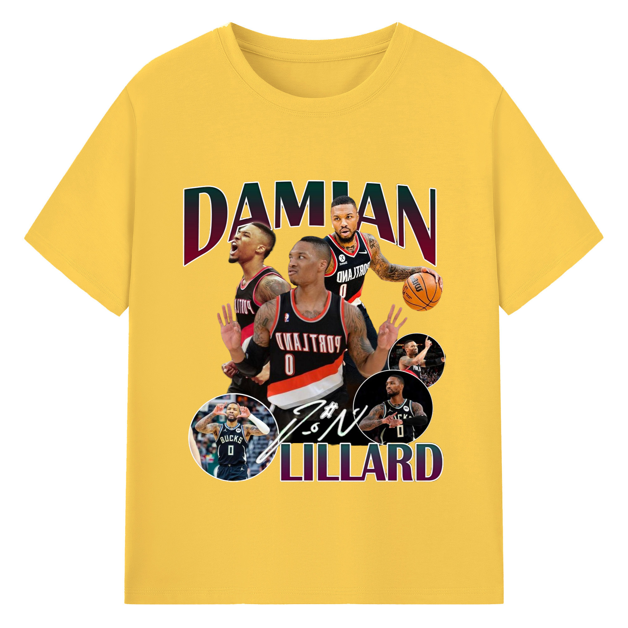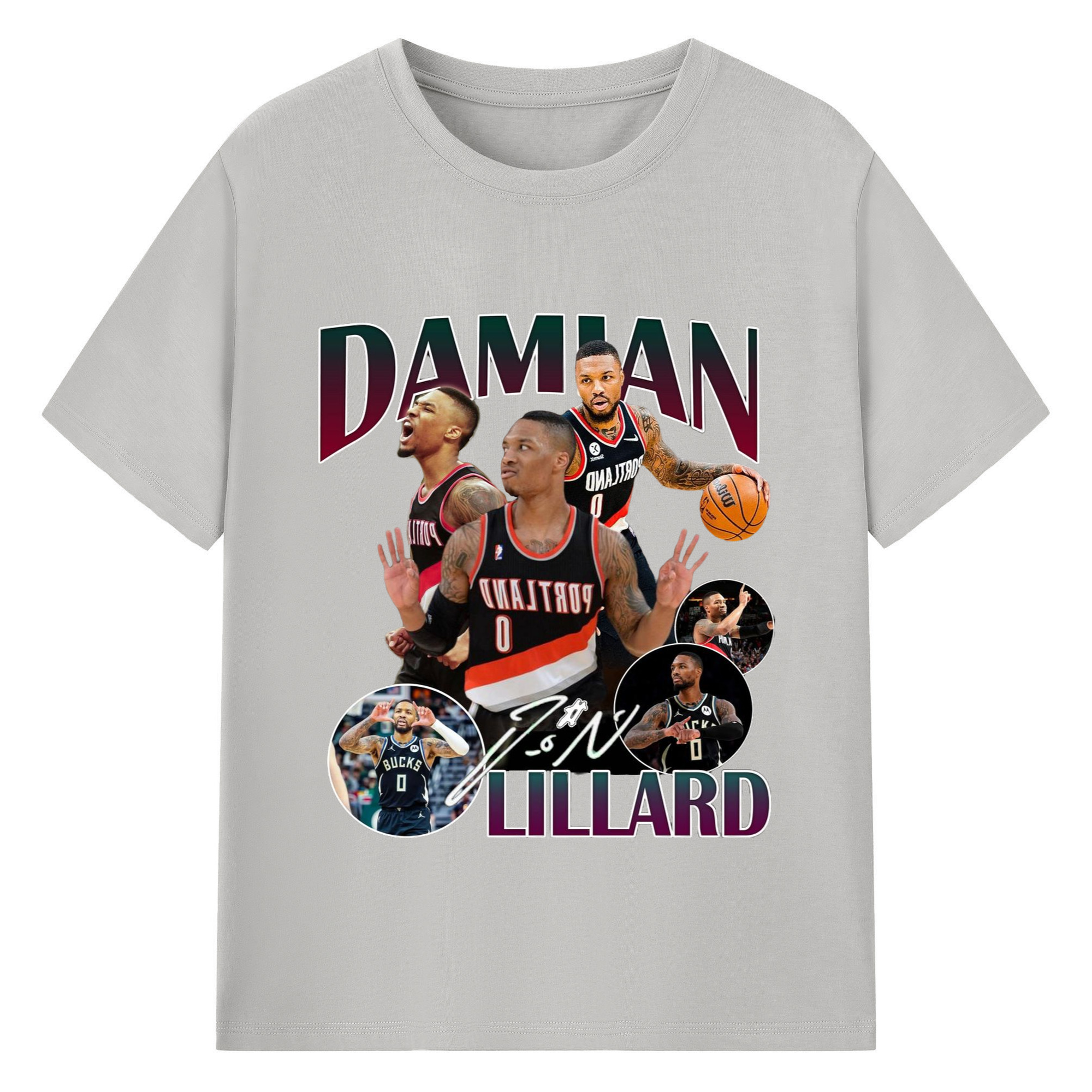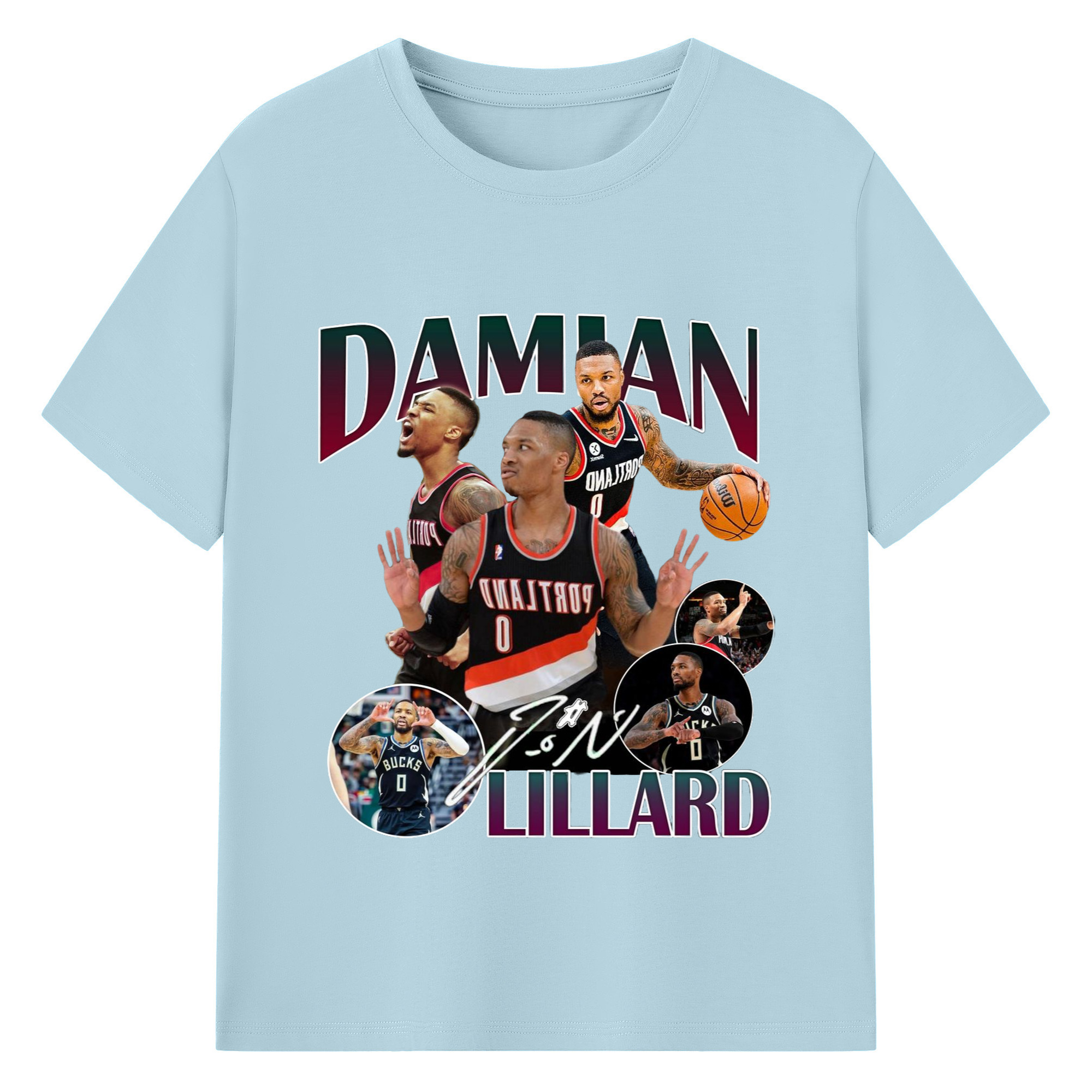 Damian Lillard Collage Graphic Tee - 180g Cotton T-Shirt With Front Heat Transfer Print – Soft, Lightweight, Fitted Design – Comfortable Casual Wear For Sports & Everyday Use