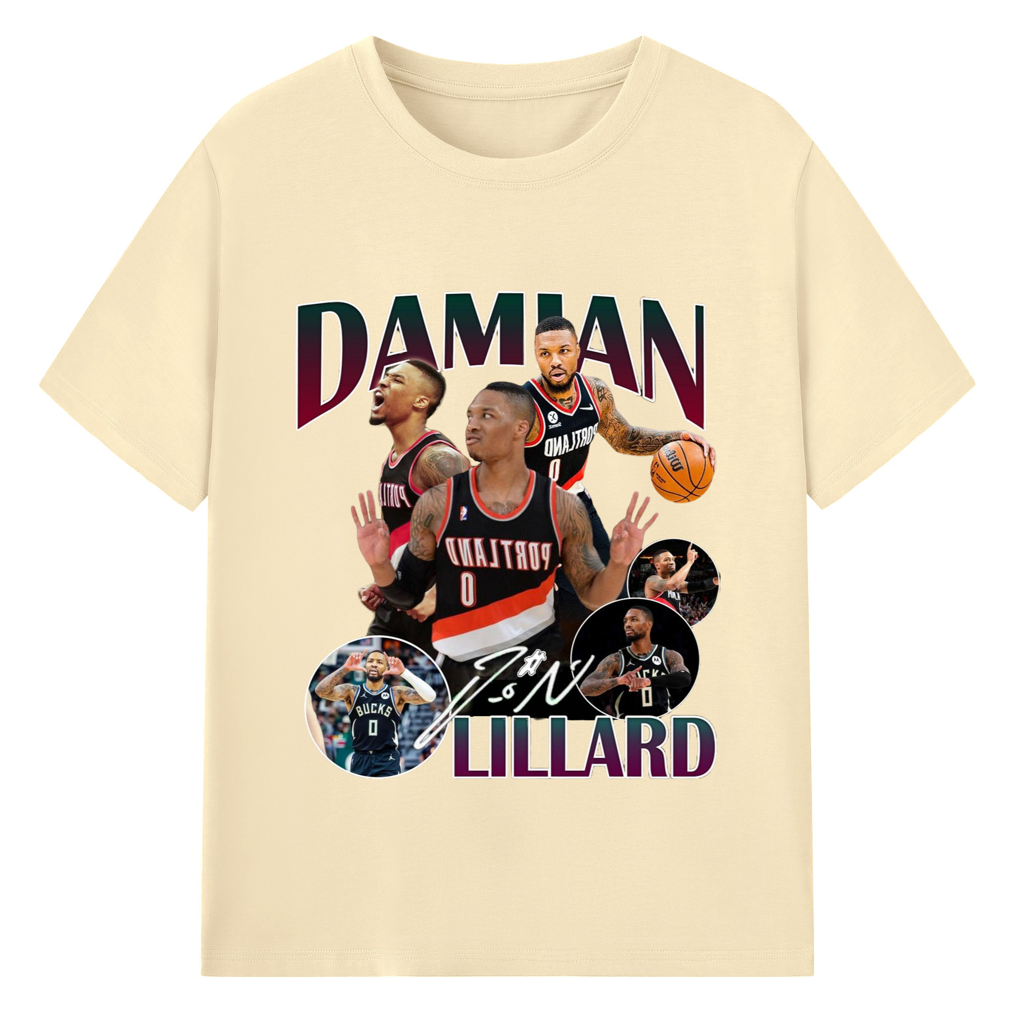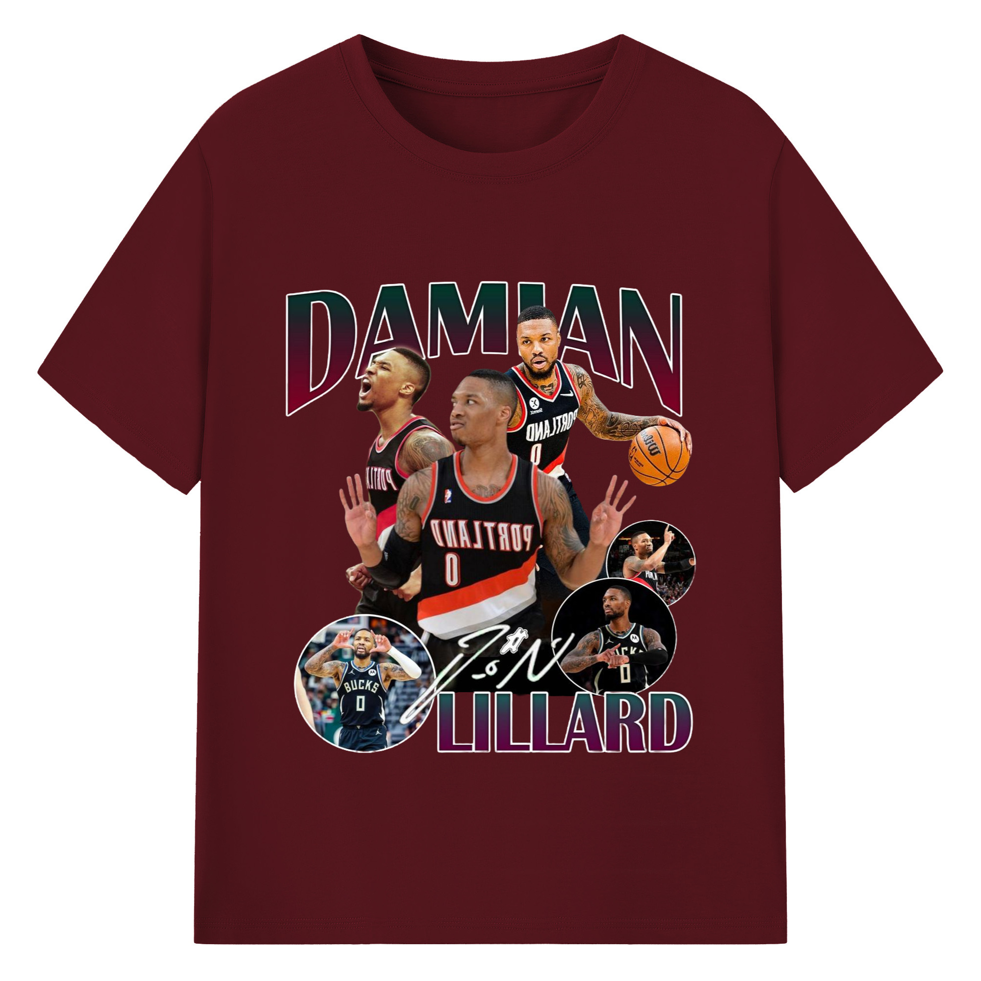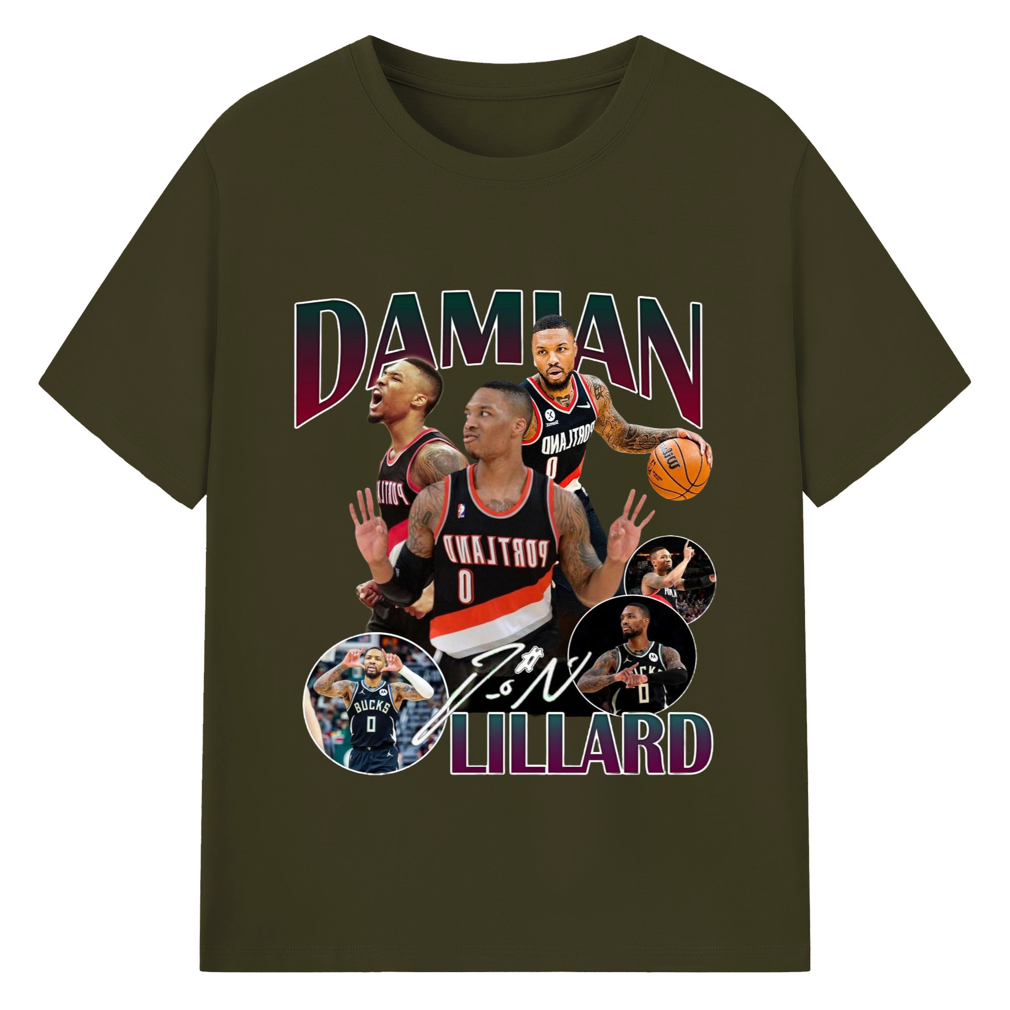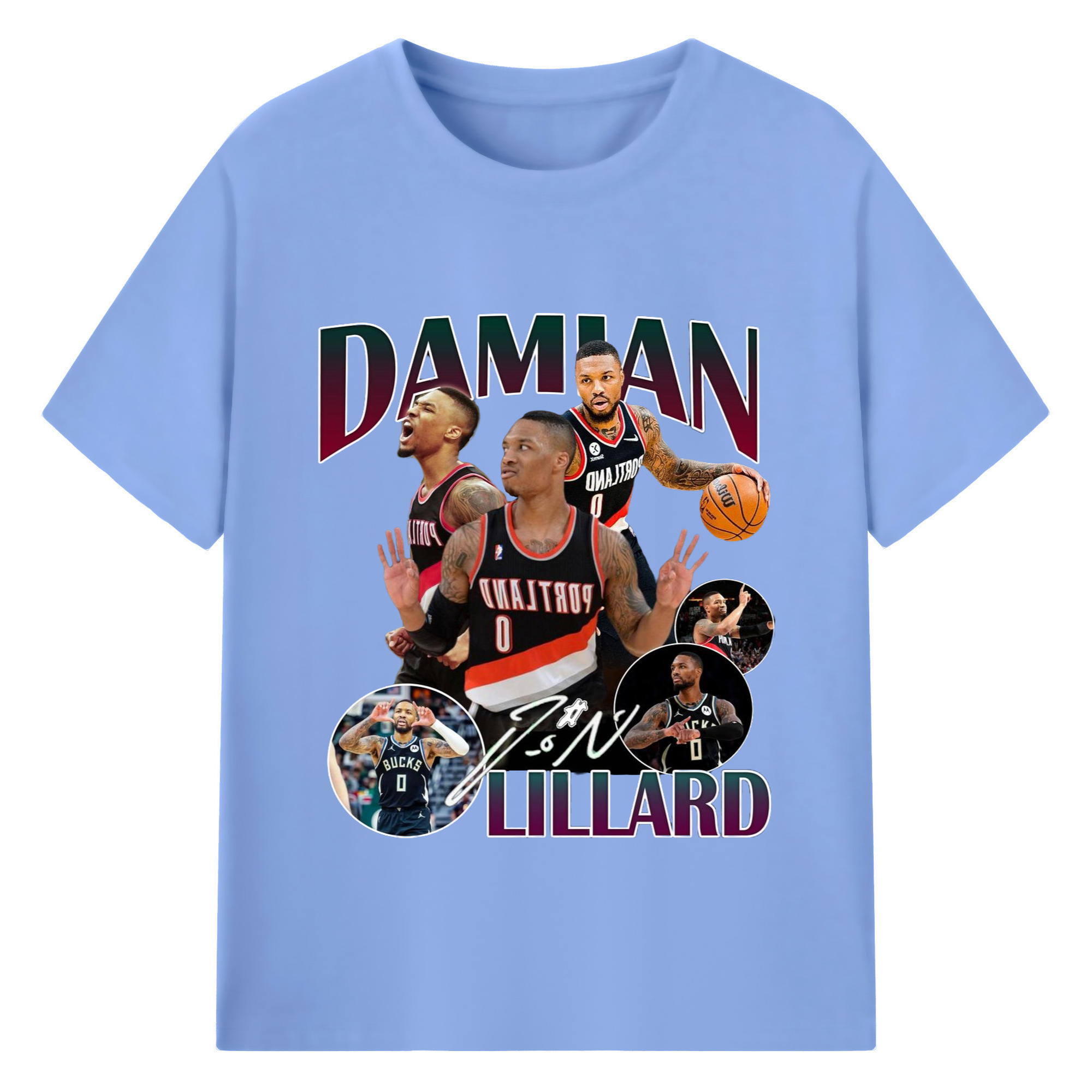 Damian Lillard Collage Graphic Tee - 180g Cotton T-Shirt With Front Heat Transfer Print – Soft, Lightweight, Fitted Design – Comfortable Casual Wear For Sports & Everyday Use