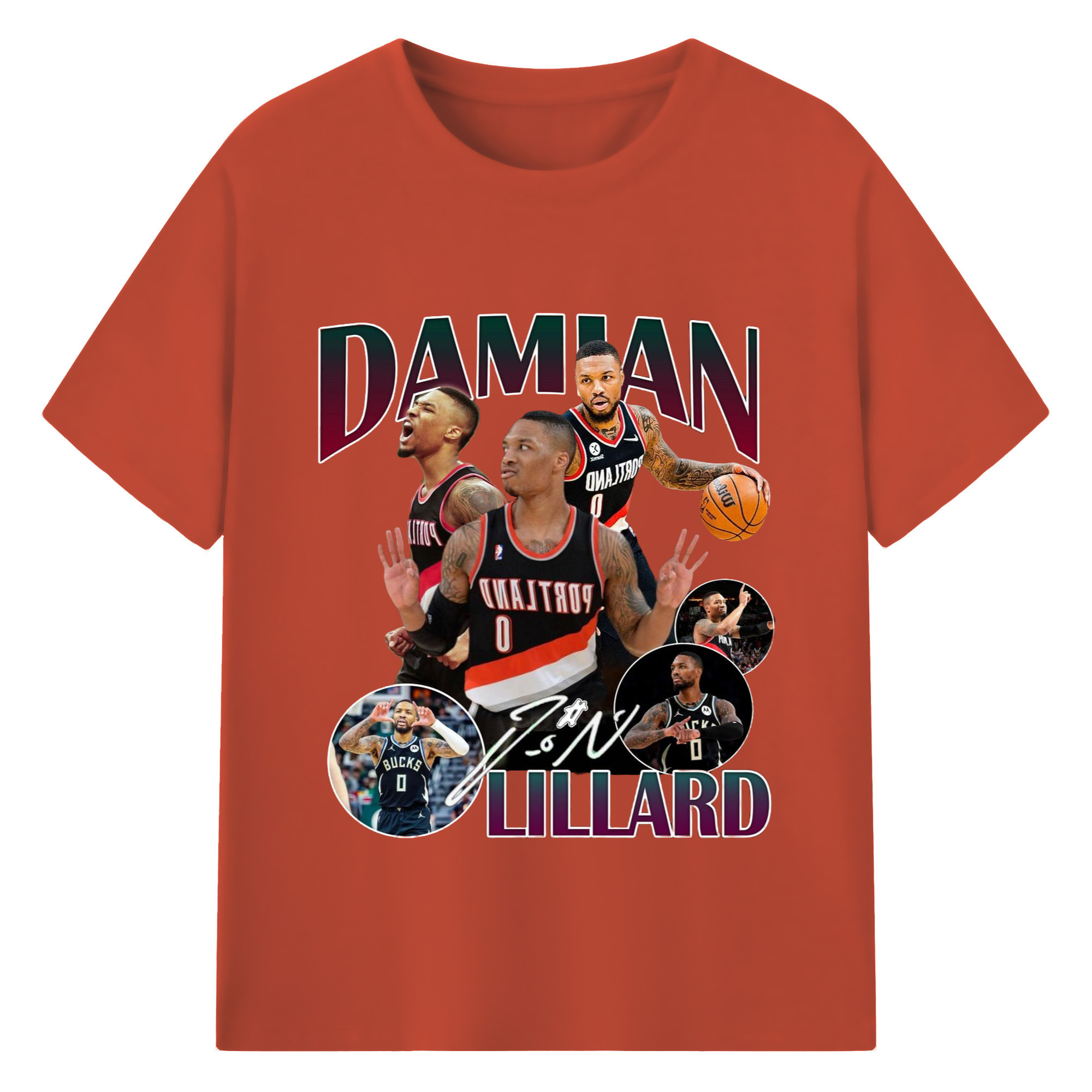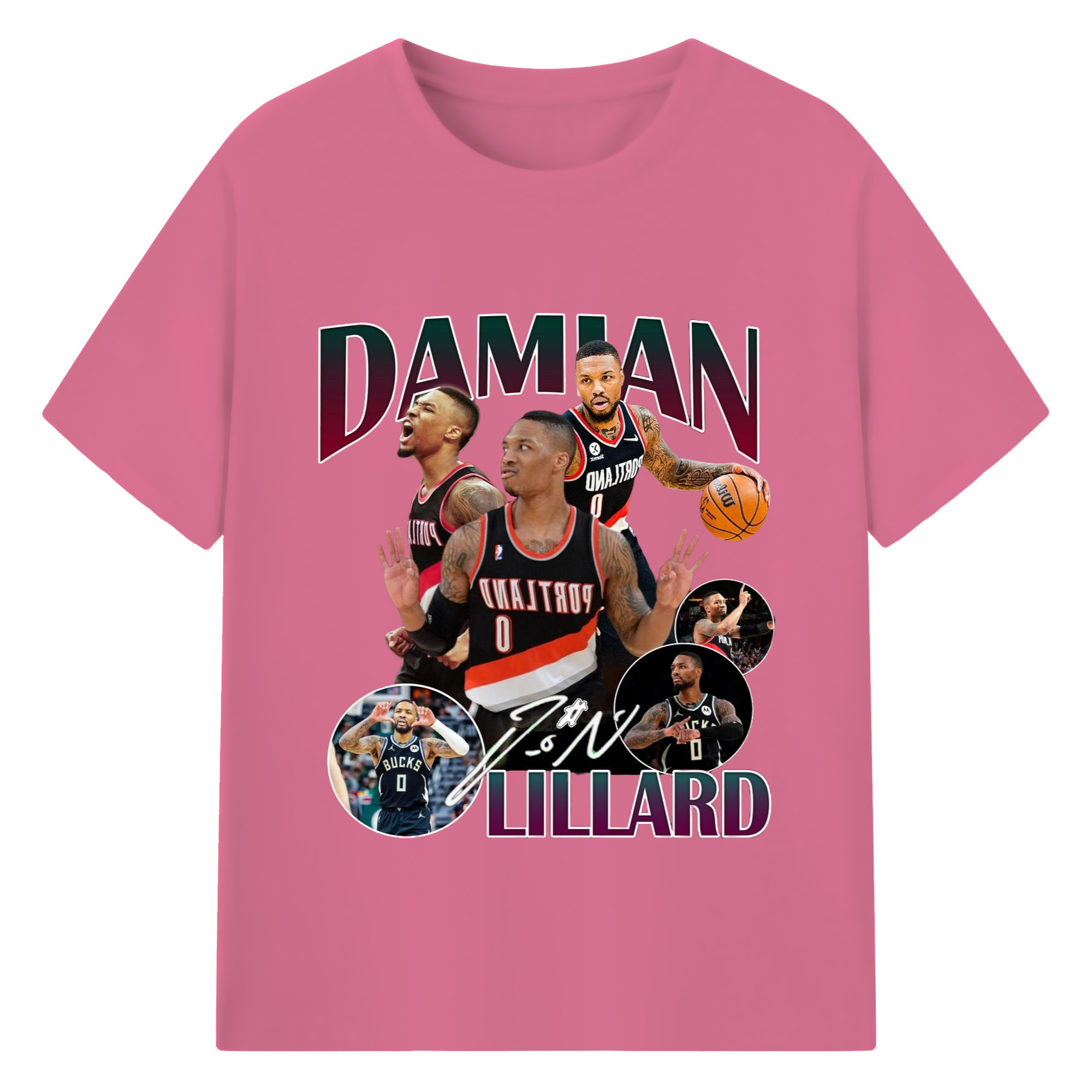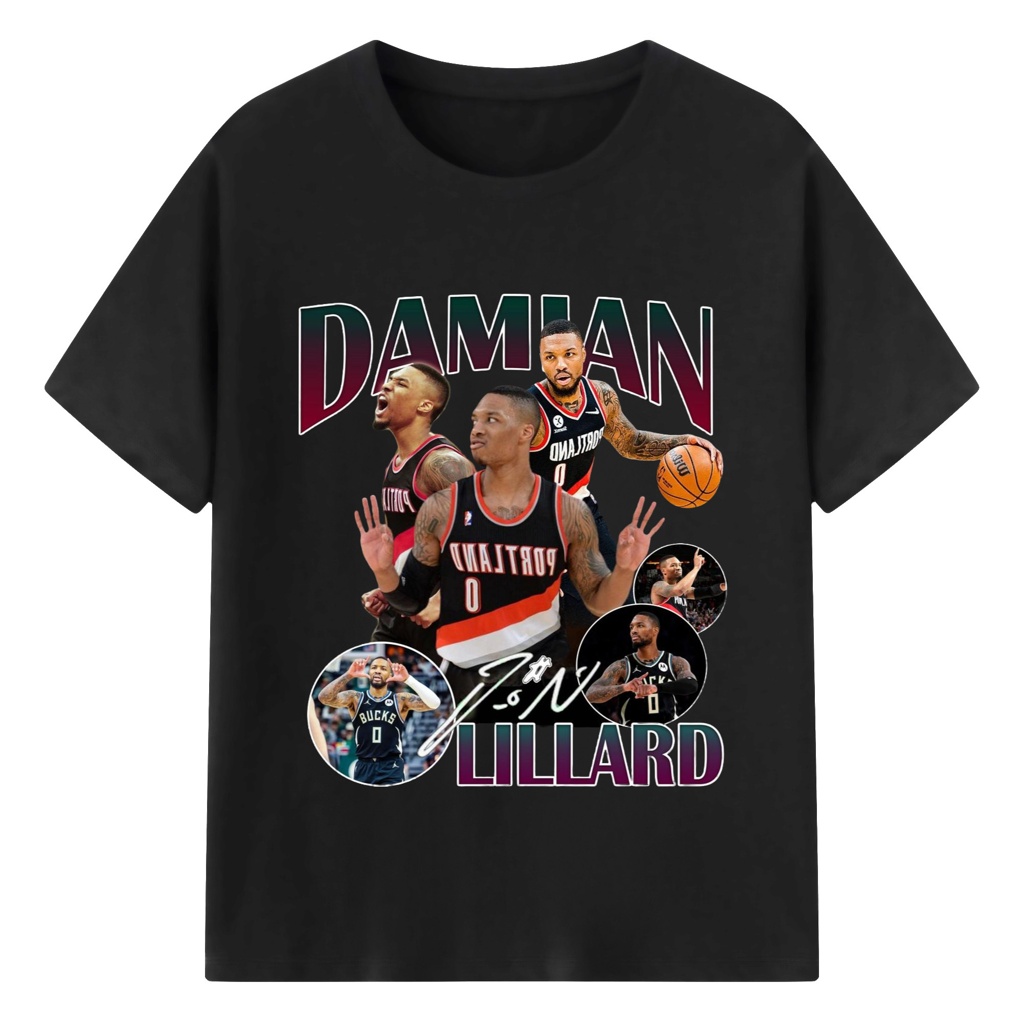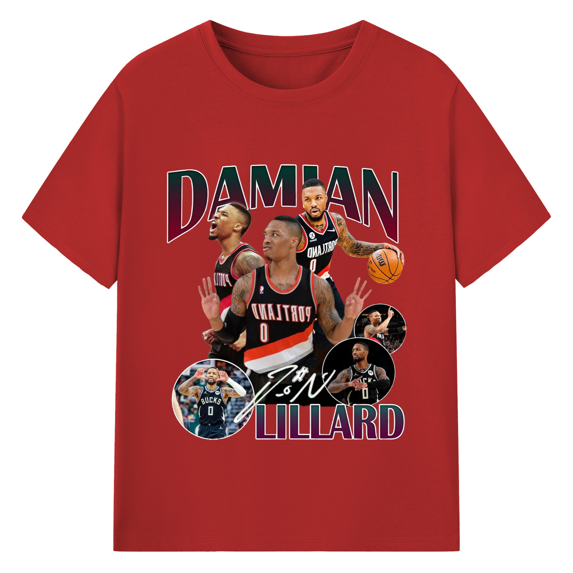 Damian Lillard Collage Graphic Tee - 180g Cotton T-Shirt With Front Heat Transfer Print – Soft, Lightweight, Fitted Design – Comfortable Casual Wear For Sports & Everyday Use