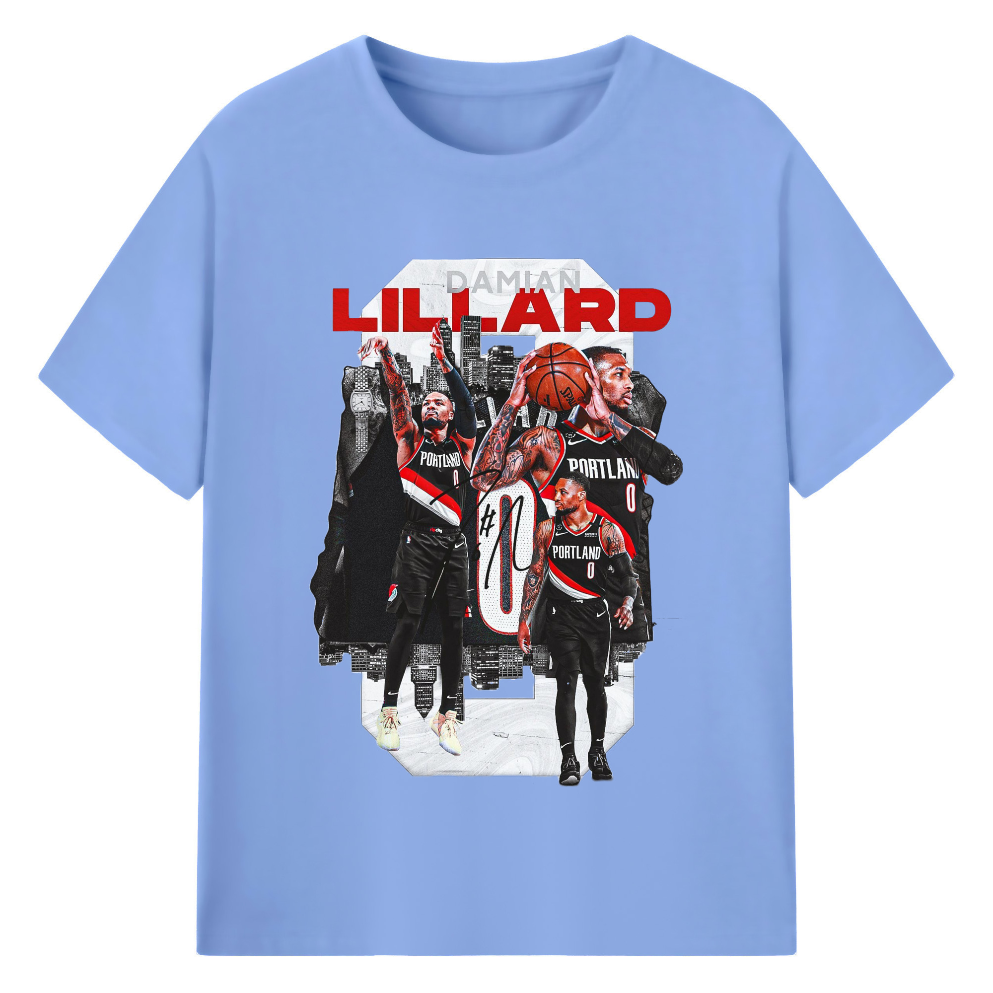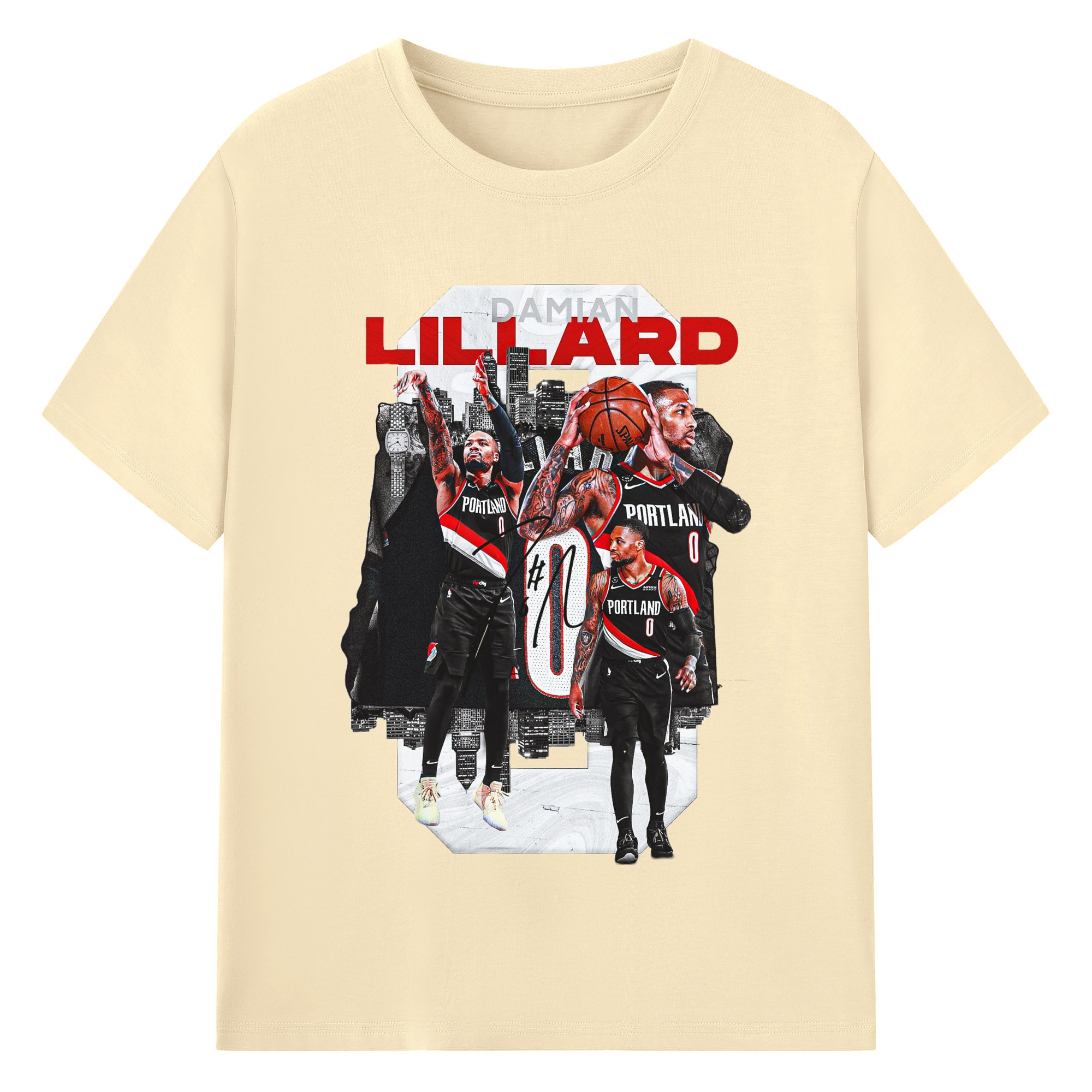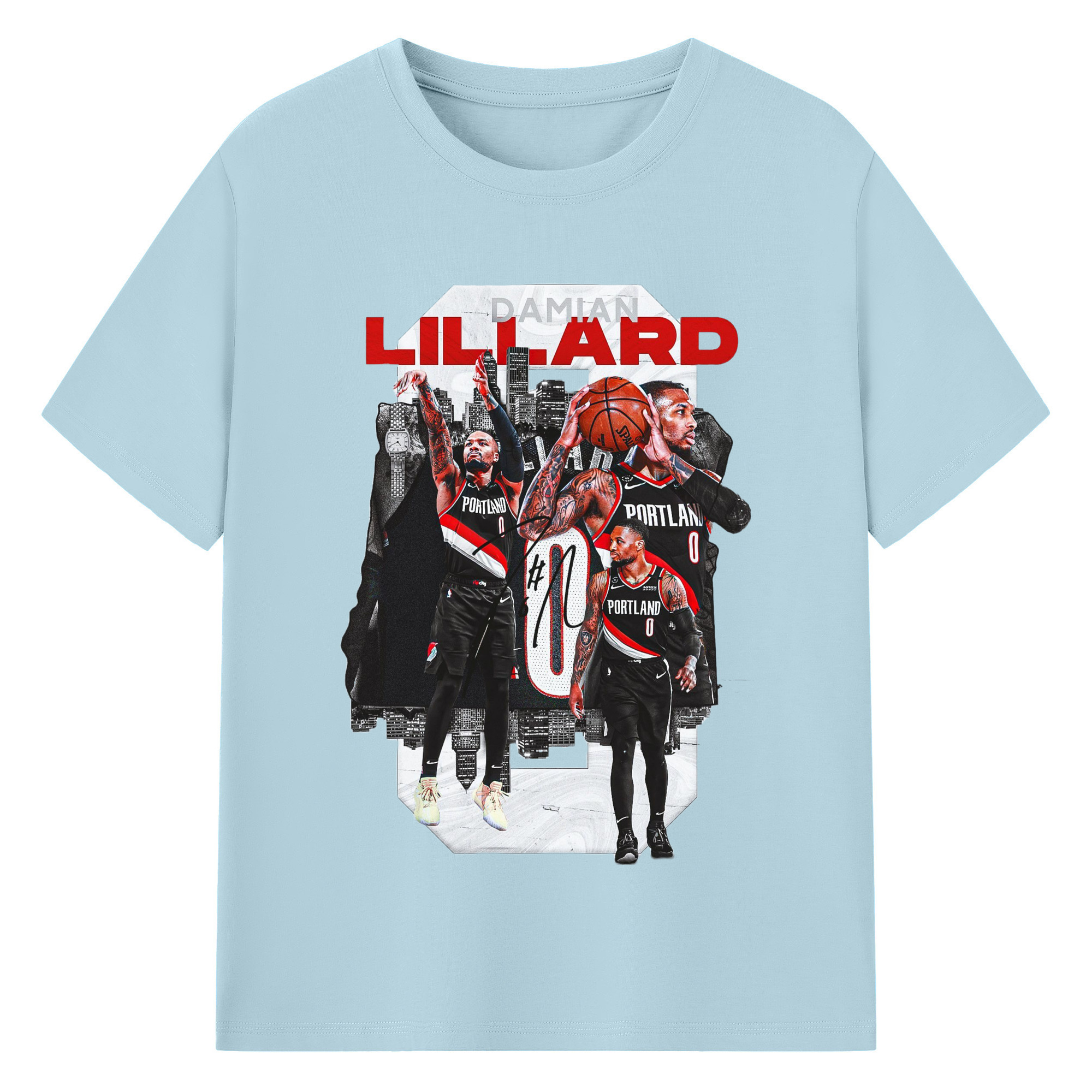 Damian Lillard Collage Graphic T-shirt - 180g Cotton T-Shirt With Front Heat Transfer Print – Soft, Lightweight, Fitted Design – Comfortable Casual Wear For Sports & Everyday Use