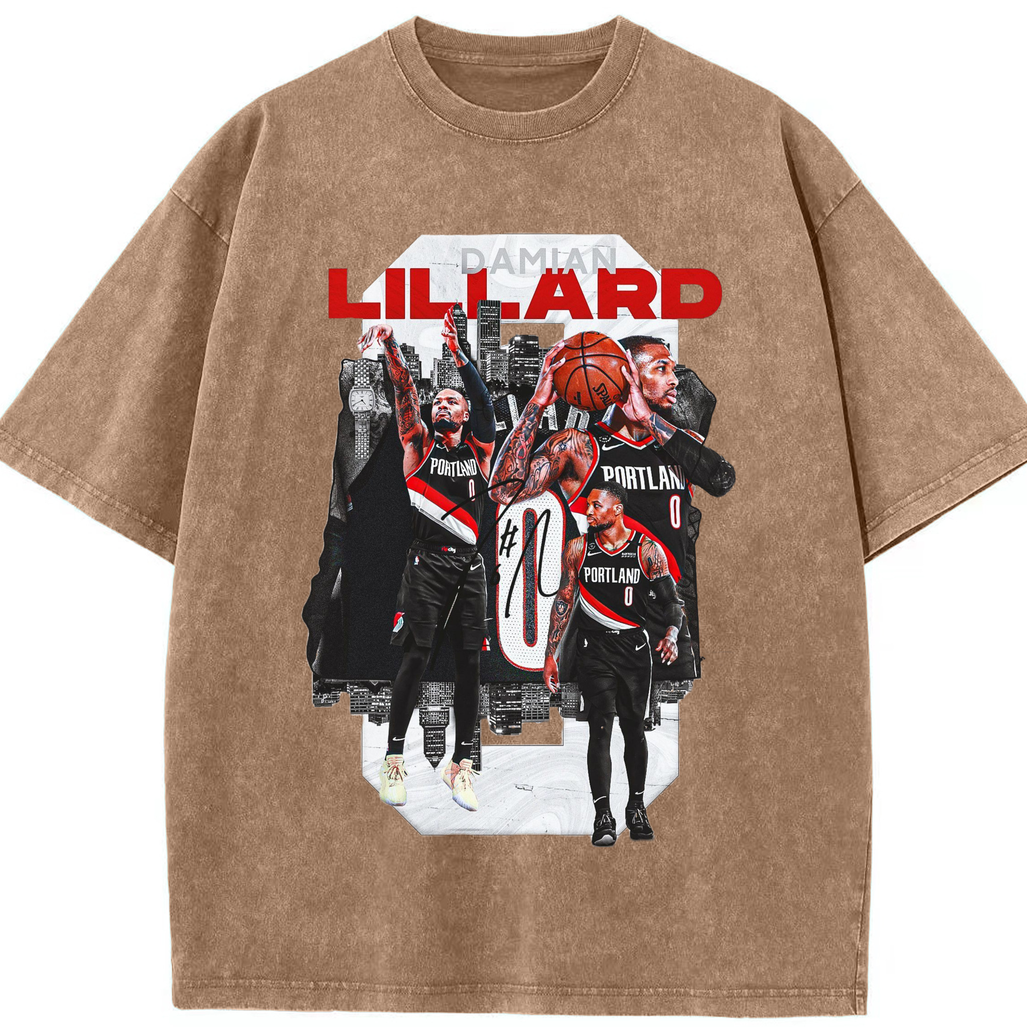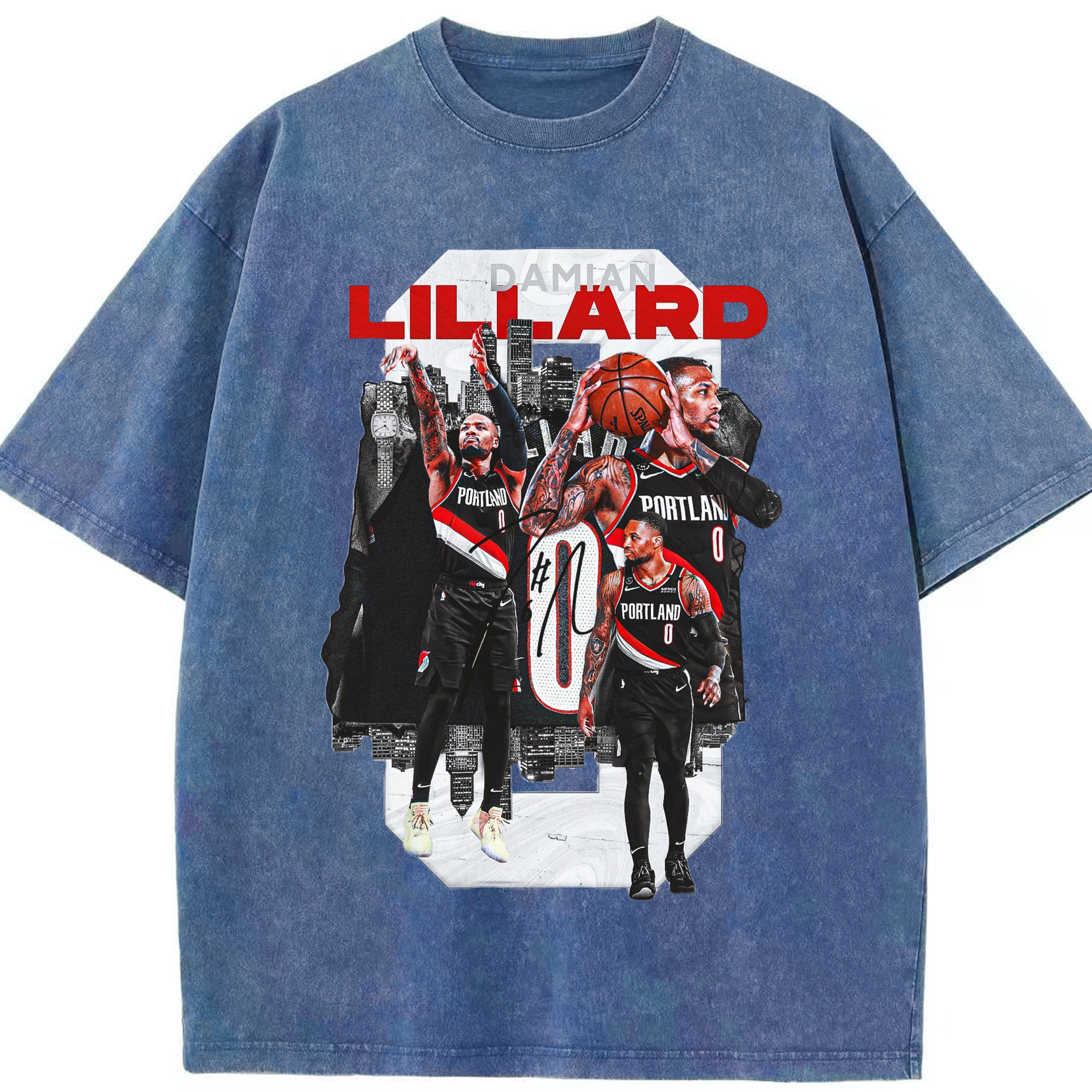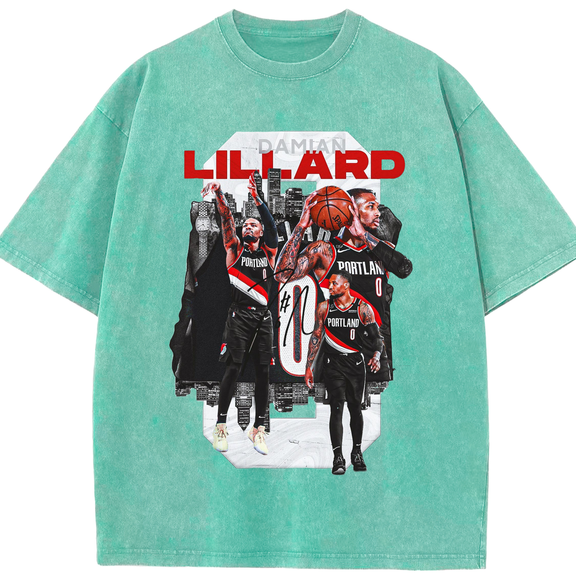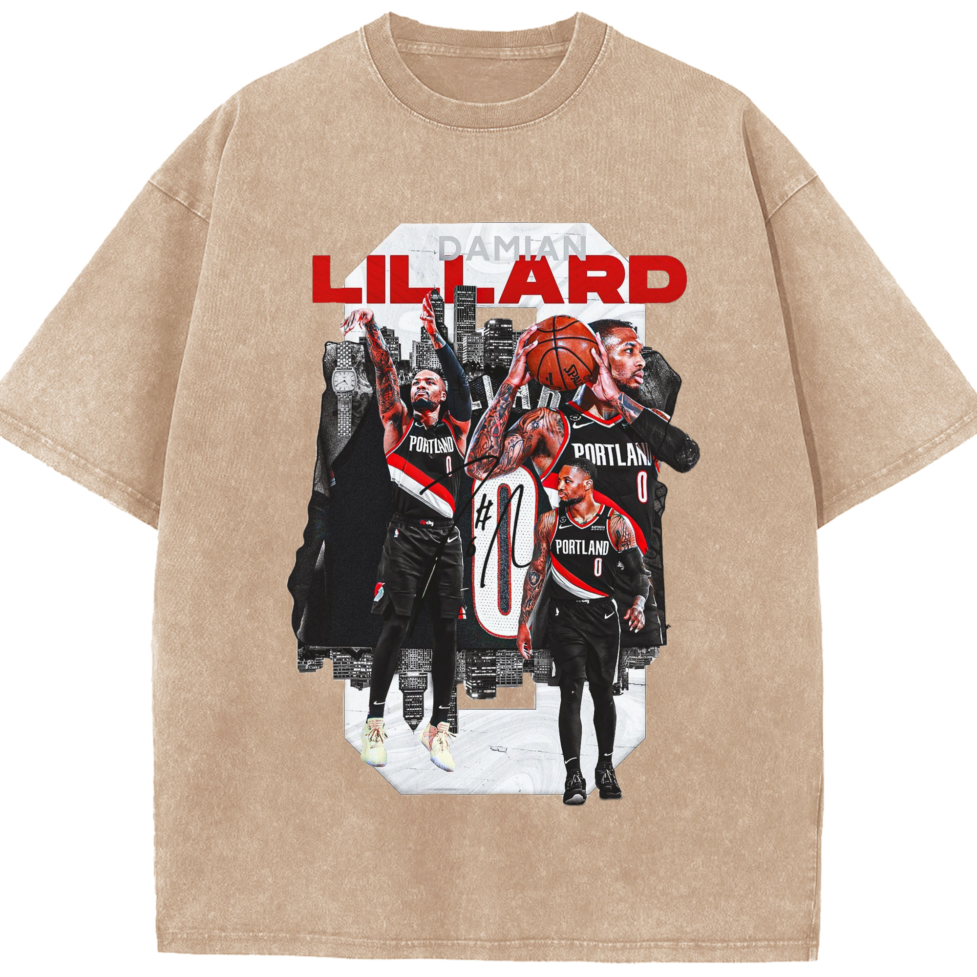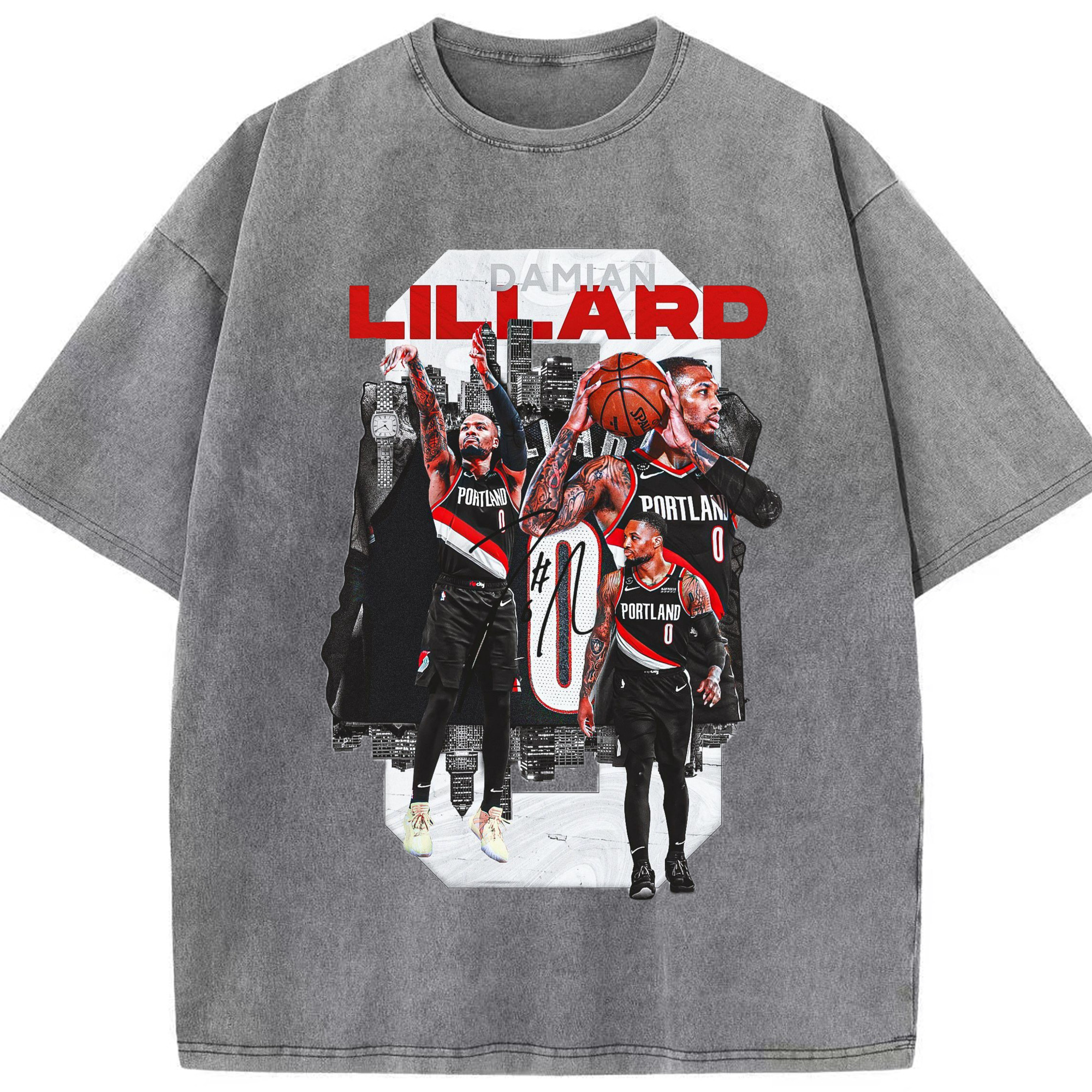 Damian Lillard Collage Graphic T-shirt - Washed Vintage Look 230g Cotton Oversized T-Shirt With Front Heat Transfer Print – Soft, Lightweight, Stylish Fit – Comfortable Casual Wear For Sports & Everyday Use