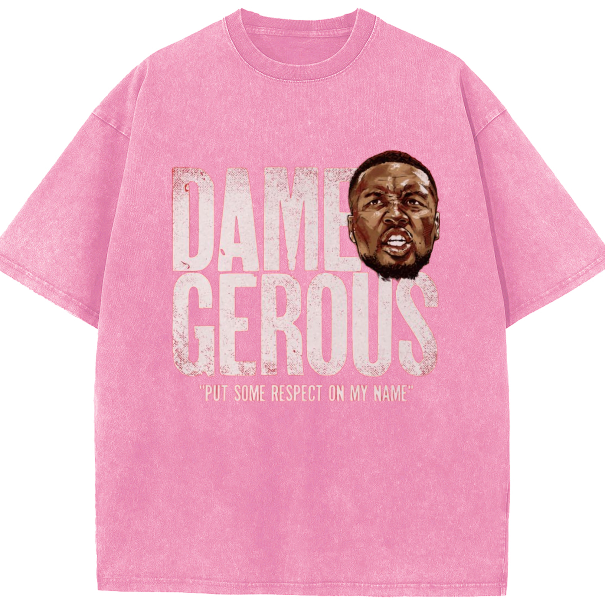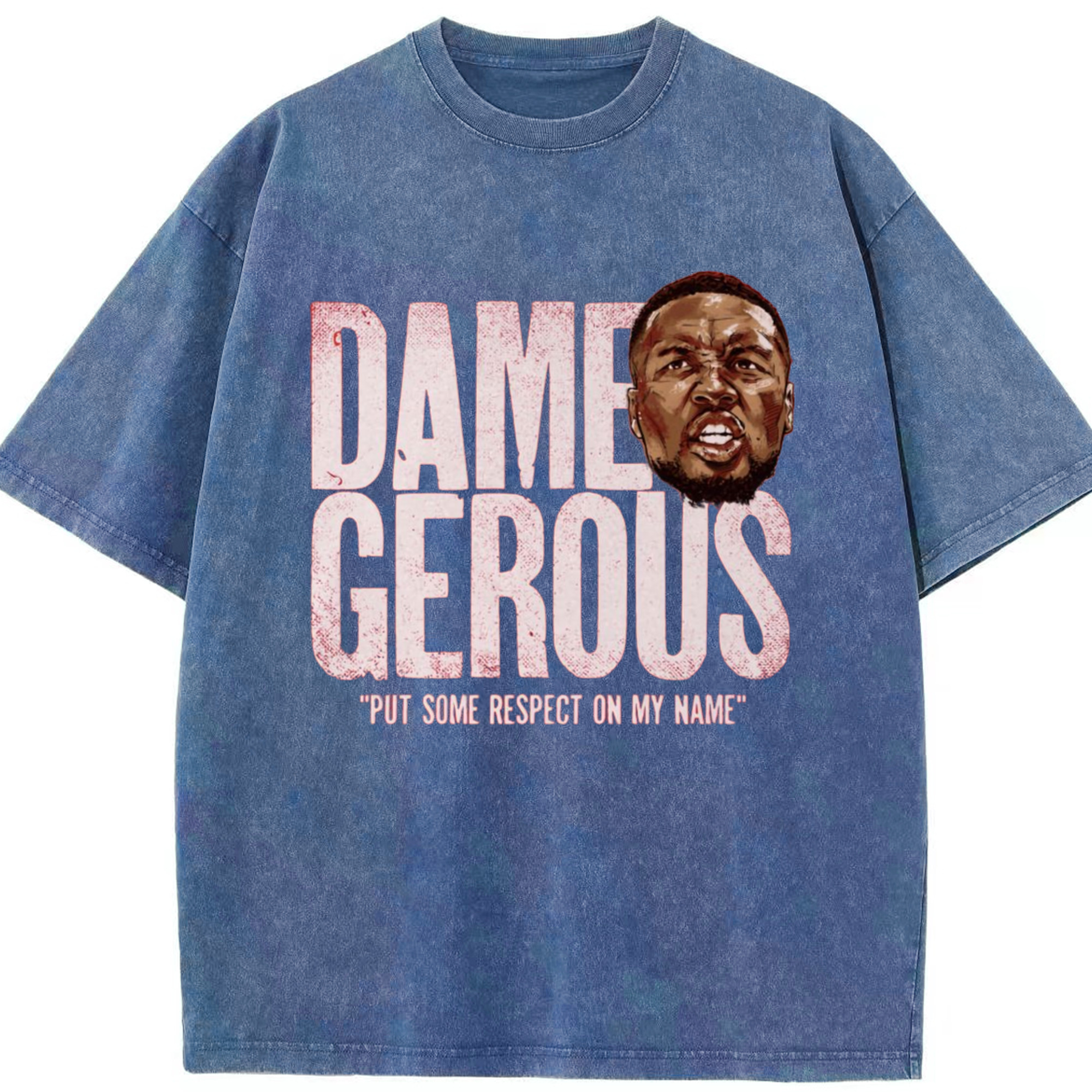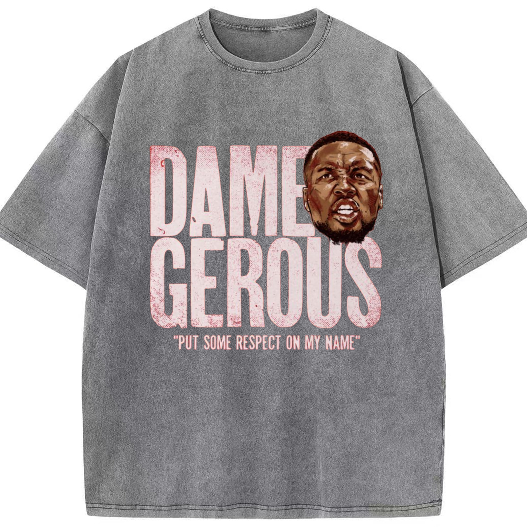 Damian Lillard dame gerous Graphic T-shirt - Washed Vintage Look 230g Cotton Oversized T-Shirt With Front Heat Transfer Print – Soft, Lightweight, Stylish Fit – Comfortable Casual Wear For Sports & Everyday Use