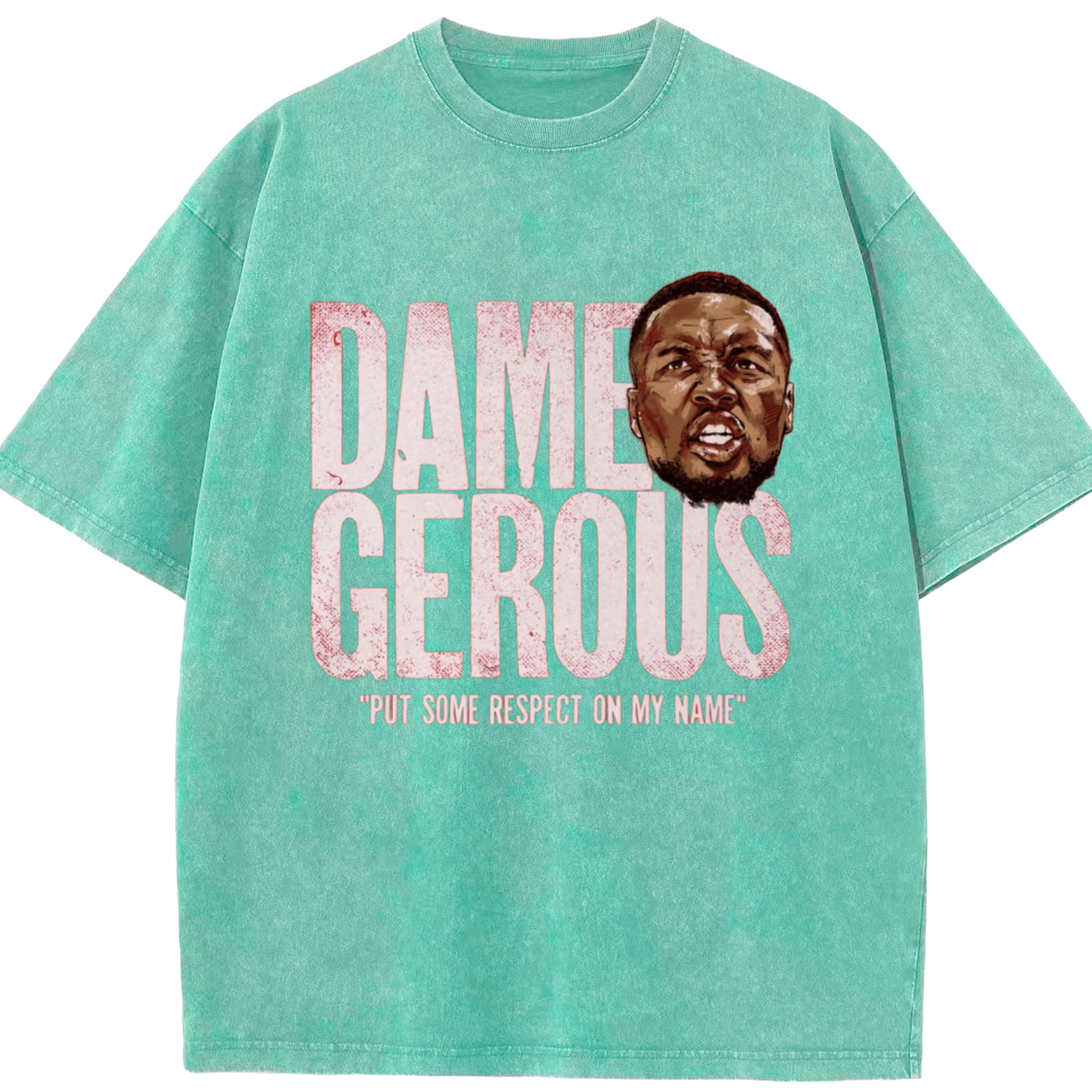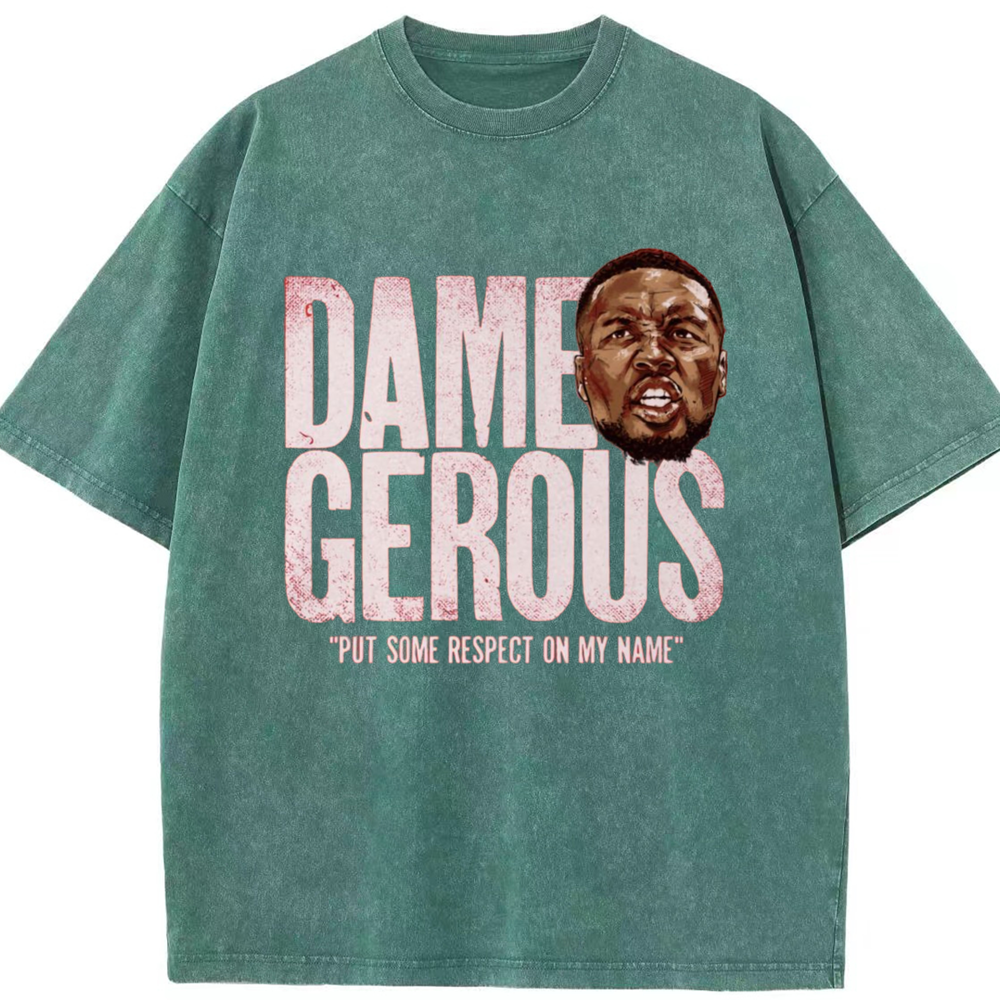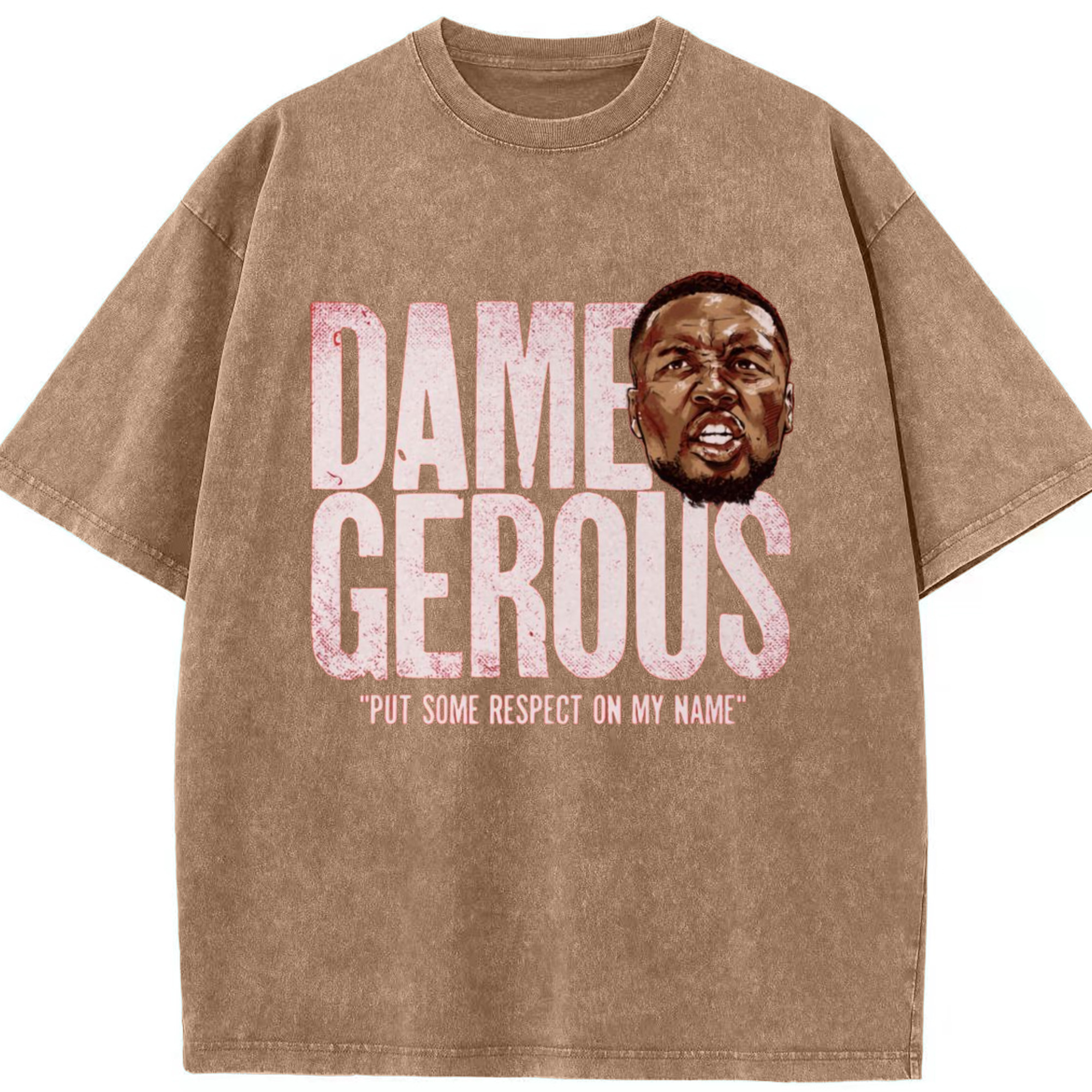 Damian Lillard dame gerous Graphic T-shirt - Washed Vintage Look 230g Cotton Oversized T-Shirt With Front Heat Transfer Print – Soft, Lightweight, Stylish Fit – Comfortable Casual Wear For Sports & Everyday Use