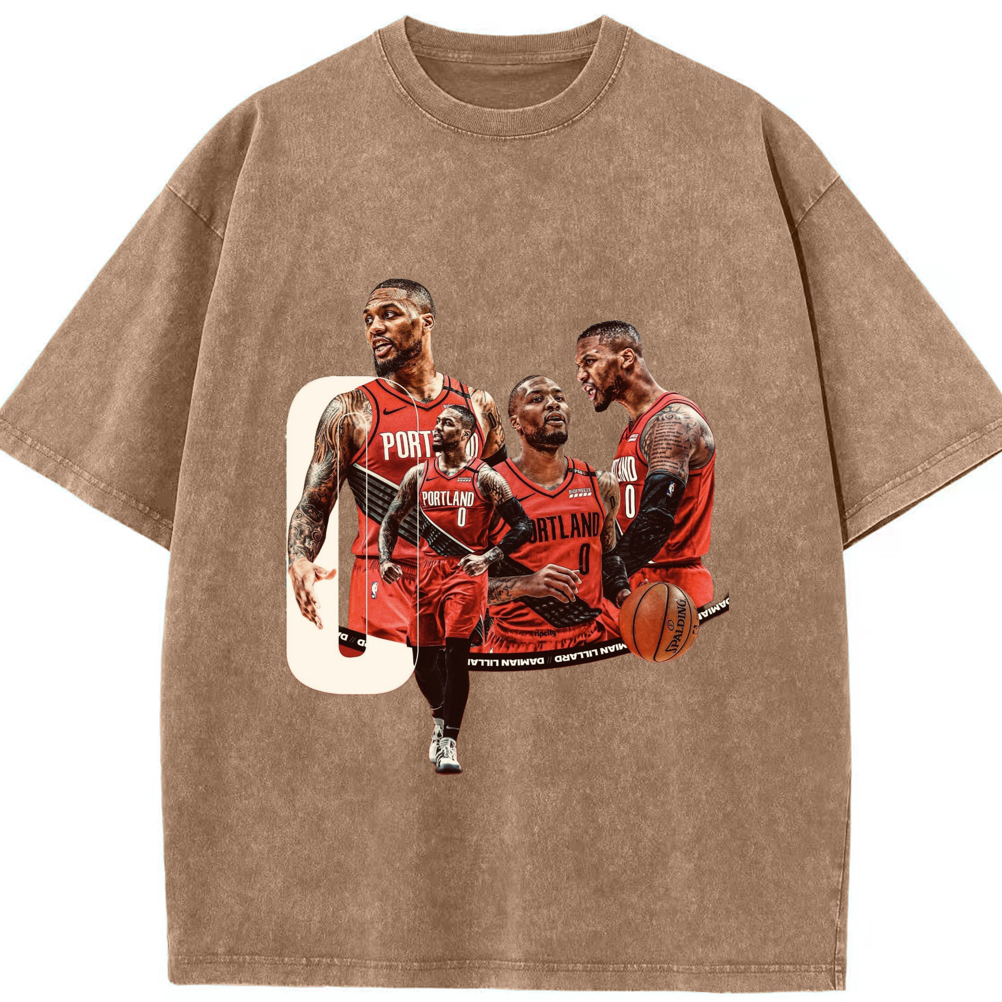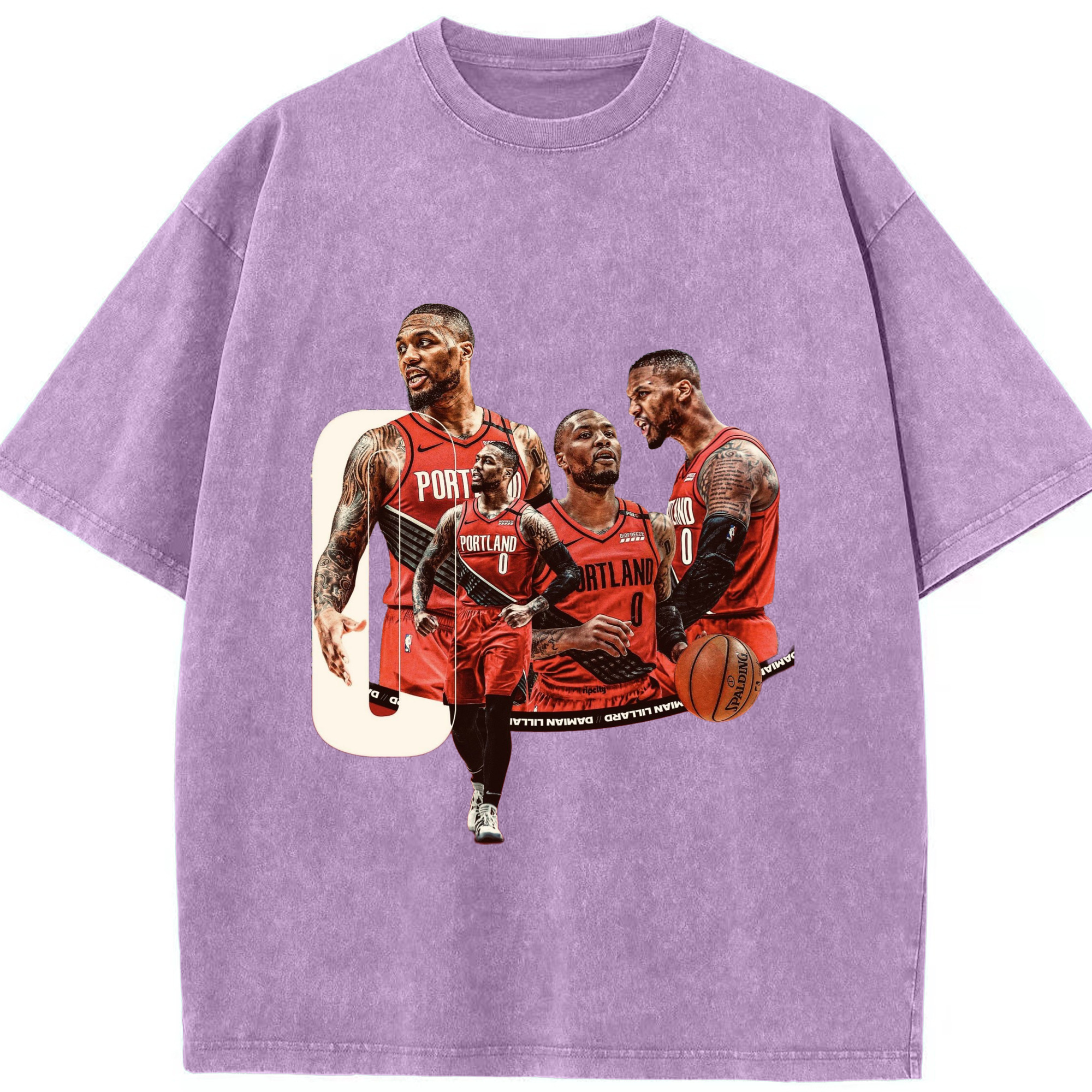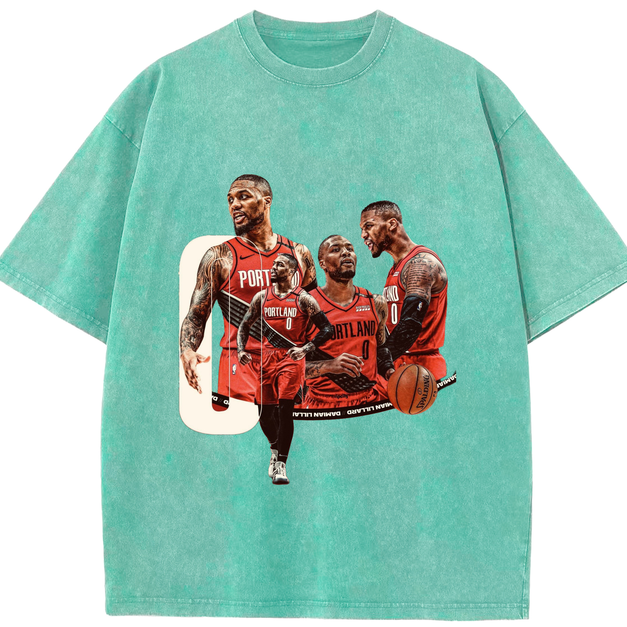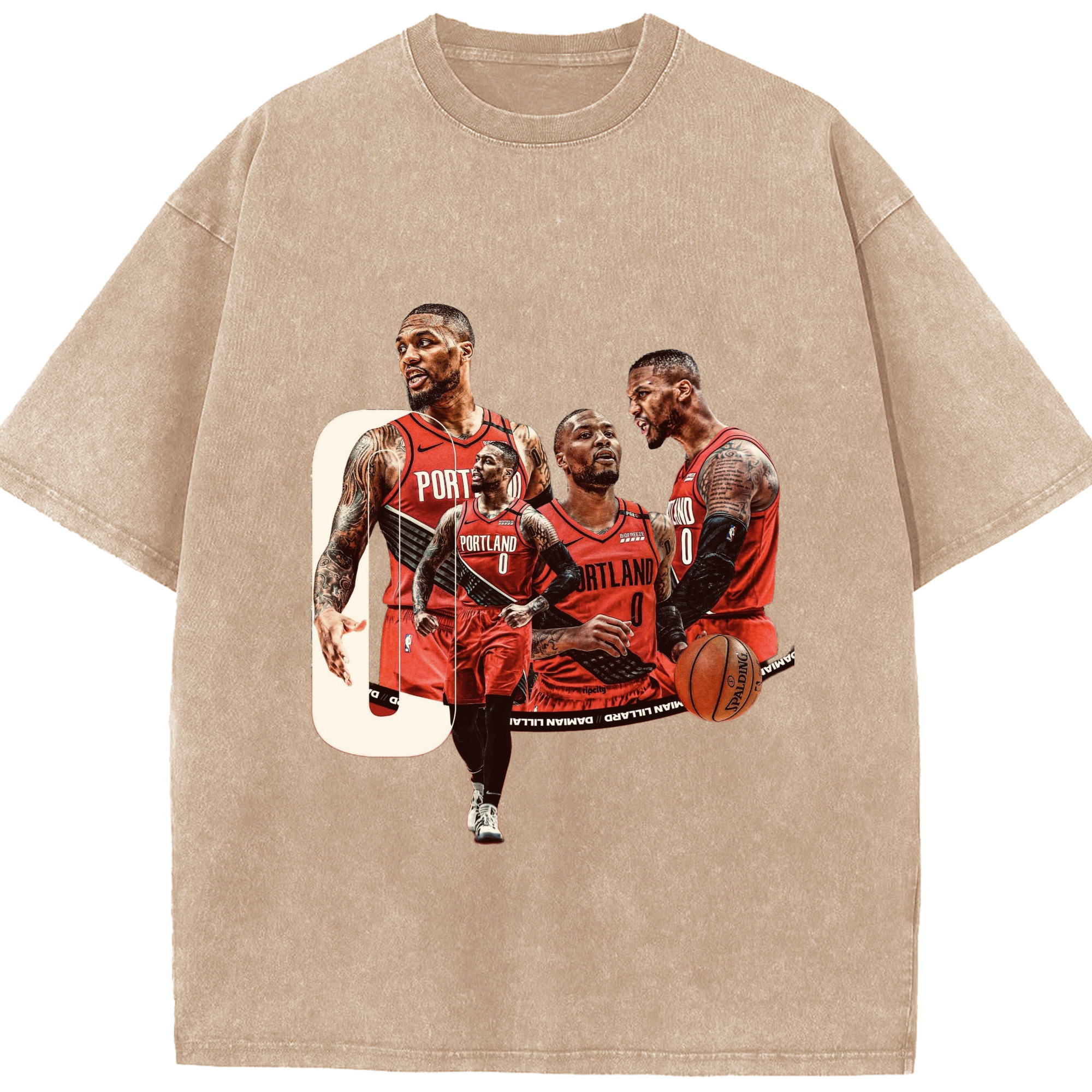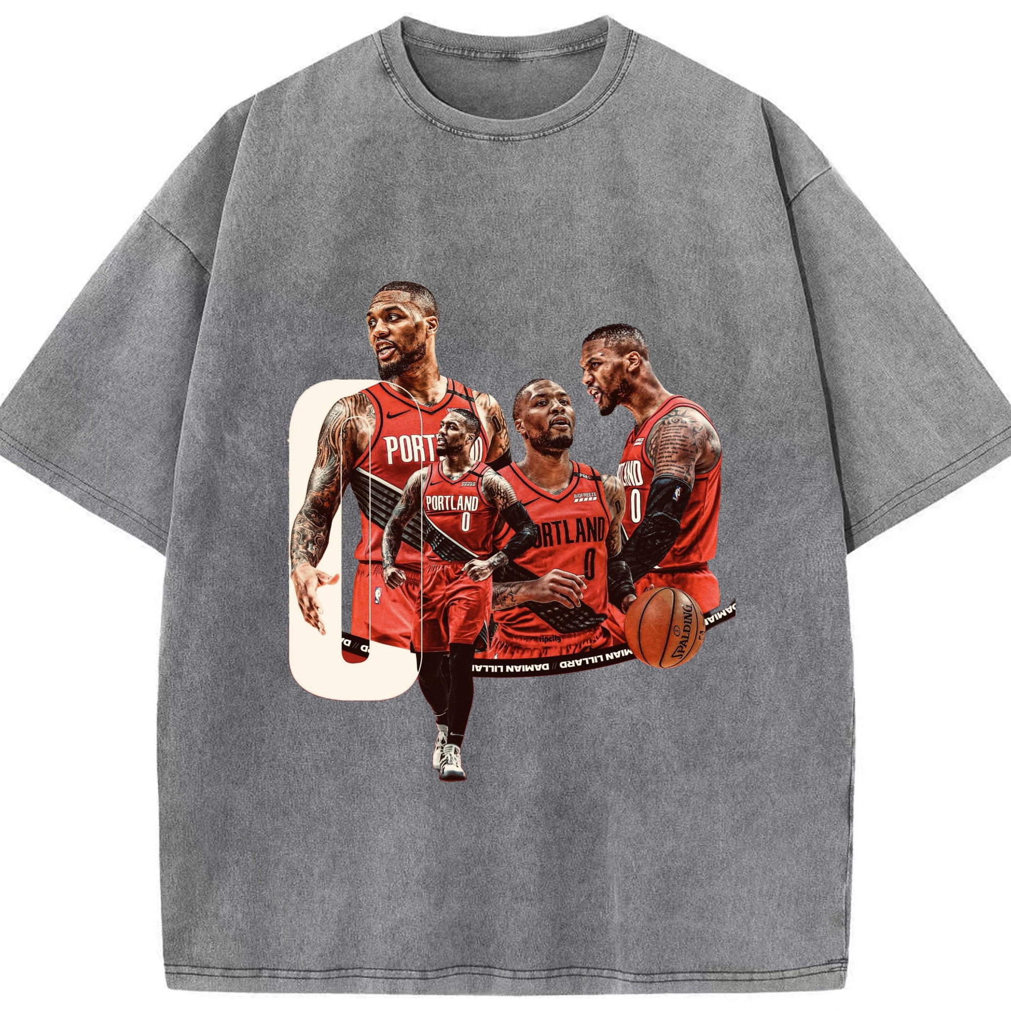 Damian Lillard rip city T-shirt - Washed Vintage Look 230g Cotton Oversized T-Shirt With Front Heat Transfer Print – Soft, Lightweight, Stylish Fit – Comfortable Casual Wear For Sports & Everyday Use