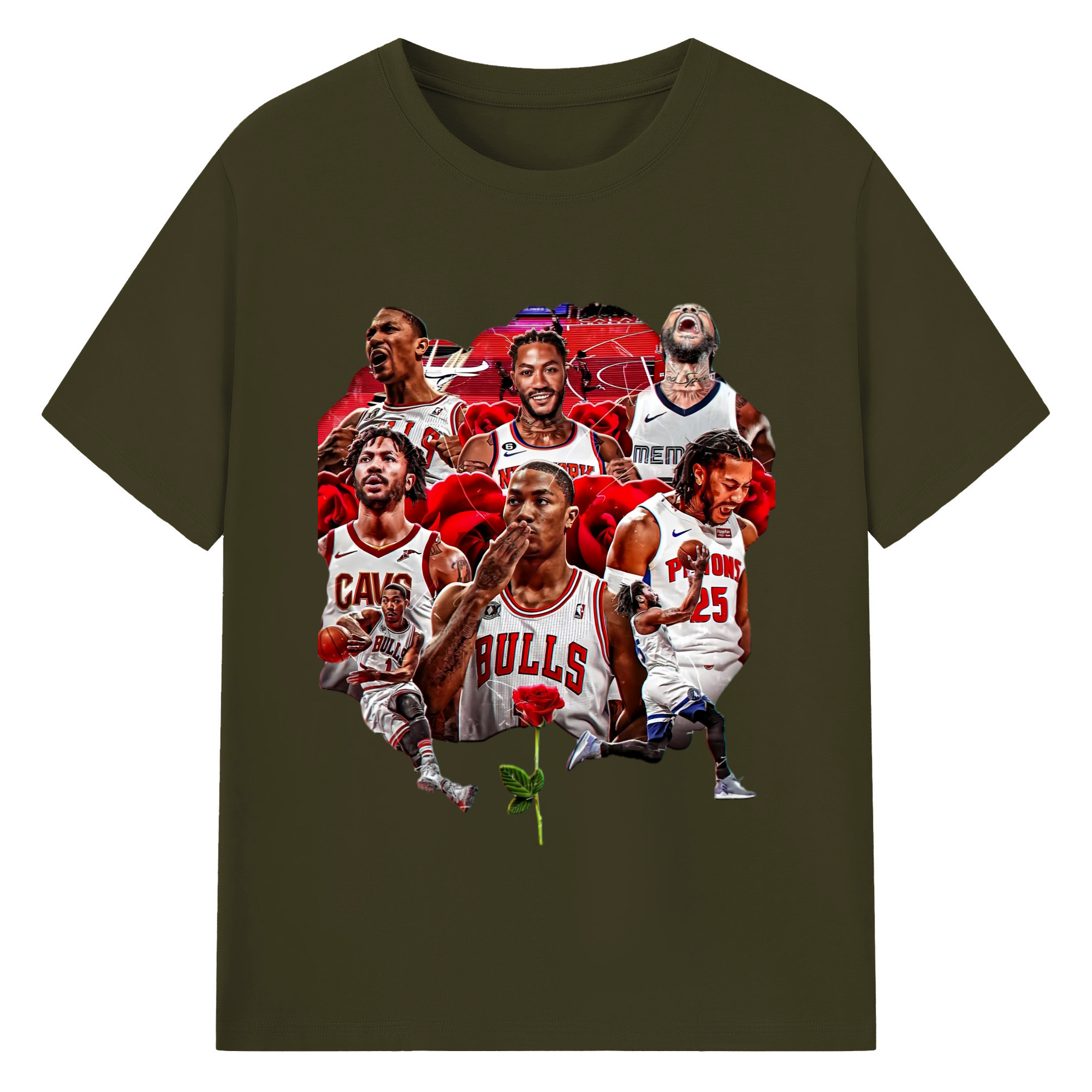 Derrick Rose #1 T-shirt - 180g Cotton T-Shirt With Front Heat Transfer Print – Soft, Lightweight, Fitted Design – Comfortable Casual Wear For Sports & Everyday Use