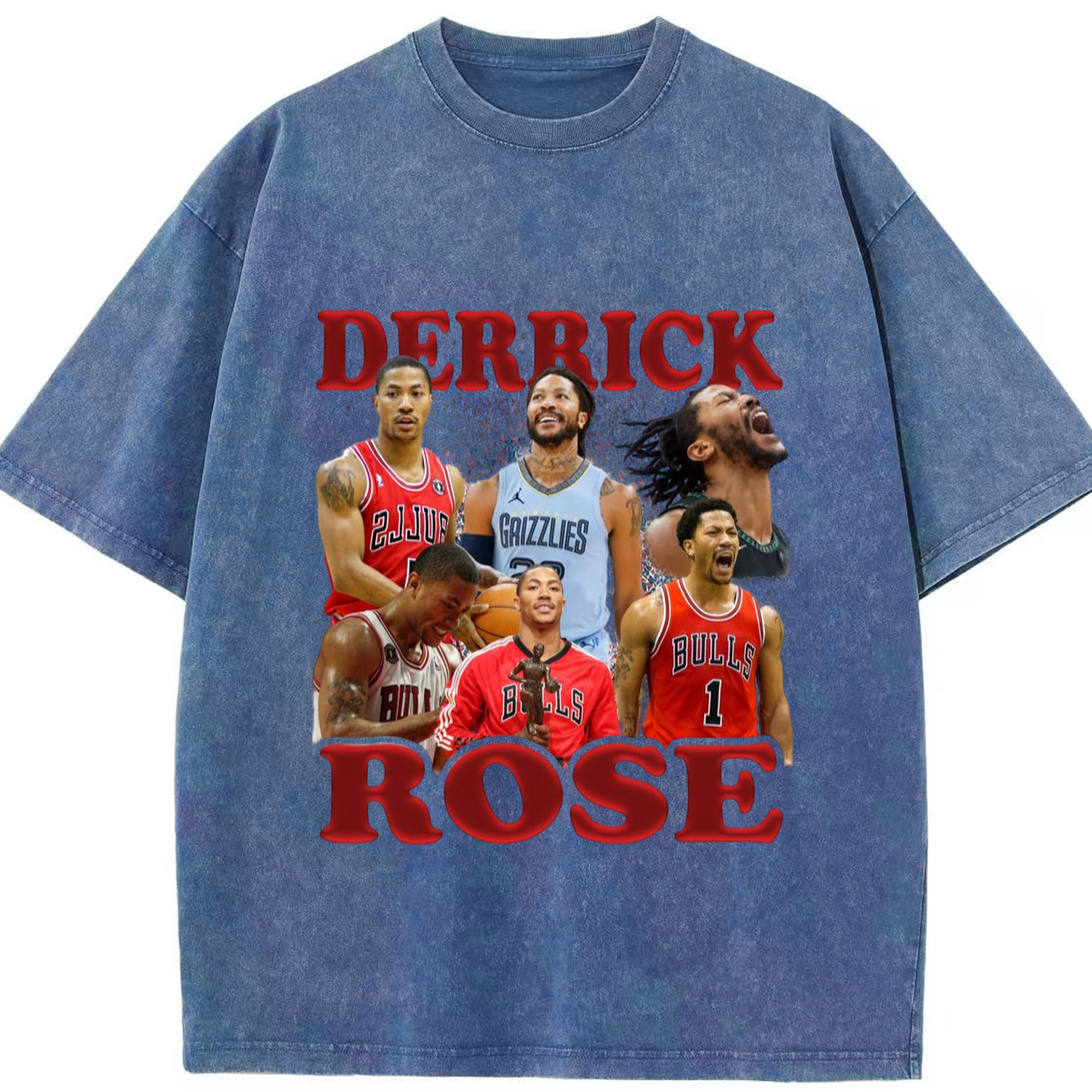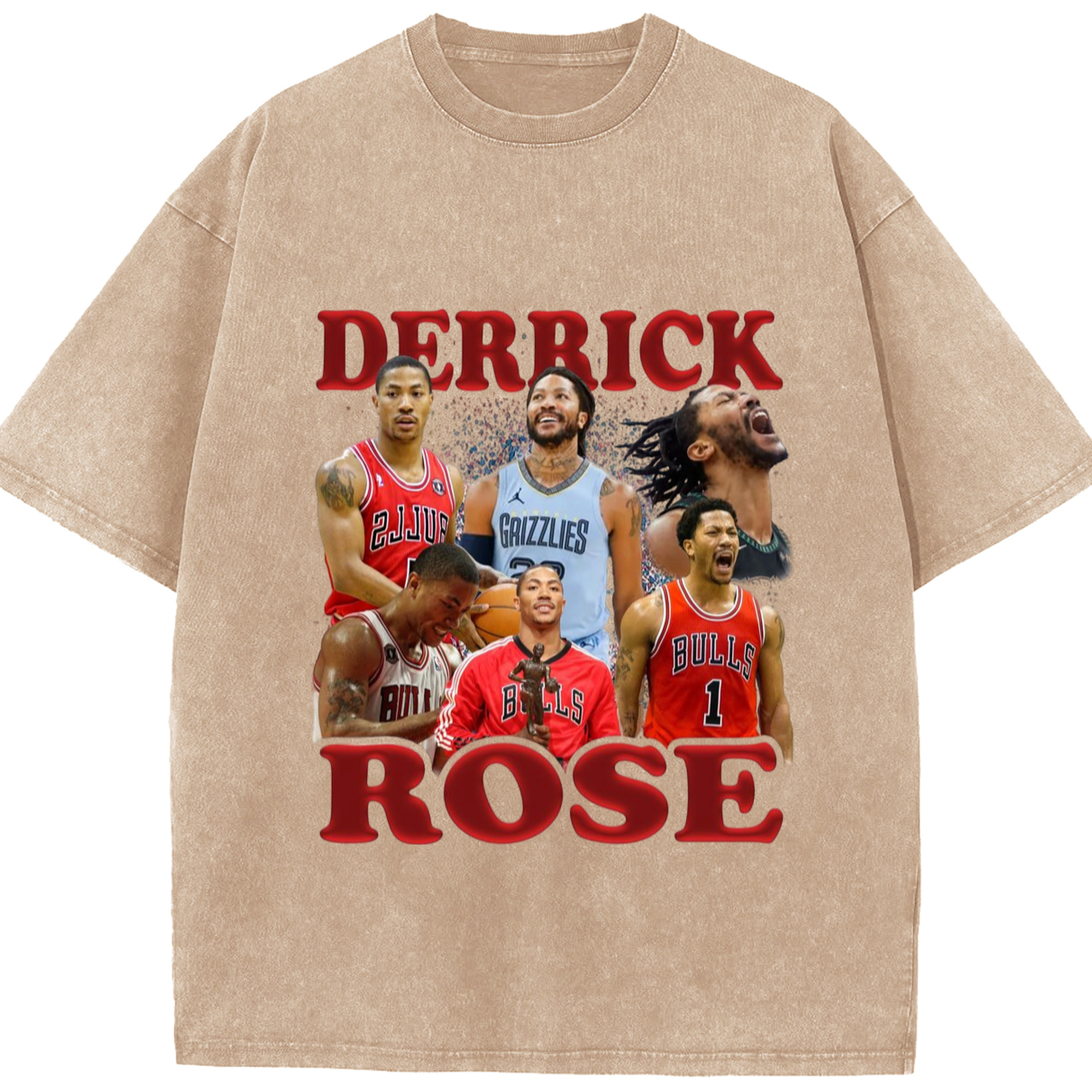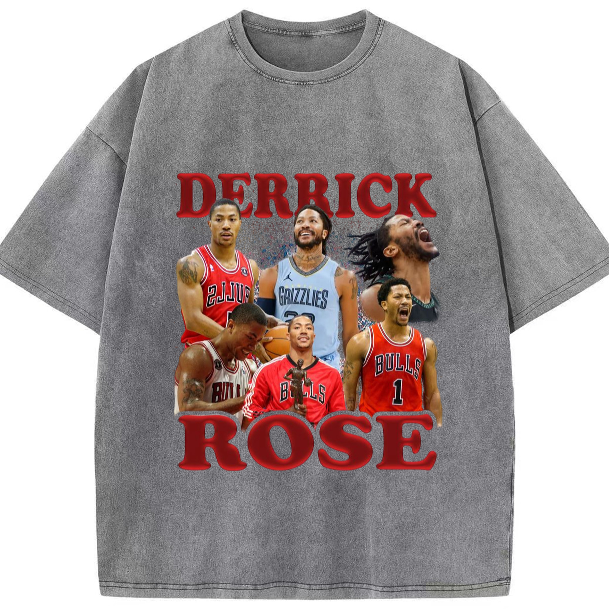 Derrick Rose different cities T-shirt - Washed Vintage Look 230g Cotton Oversized T-Shirt With Front Heat Transfer Print – Soft, Lightweight, Stylish Fit – Comfortable Casual Wear For Sports & Everyday Use