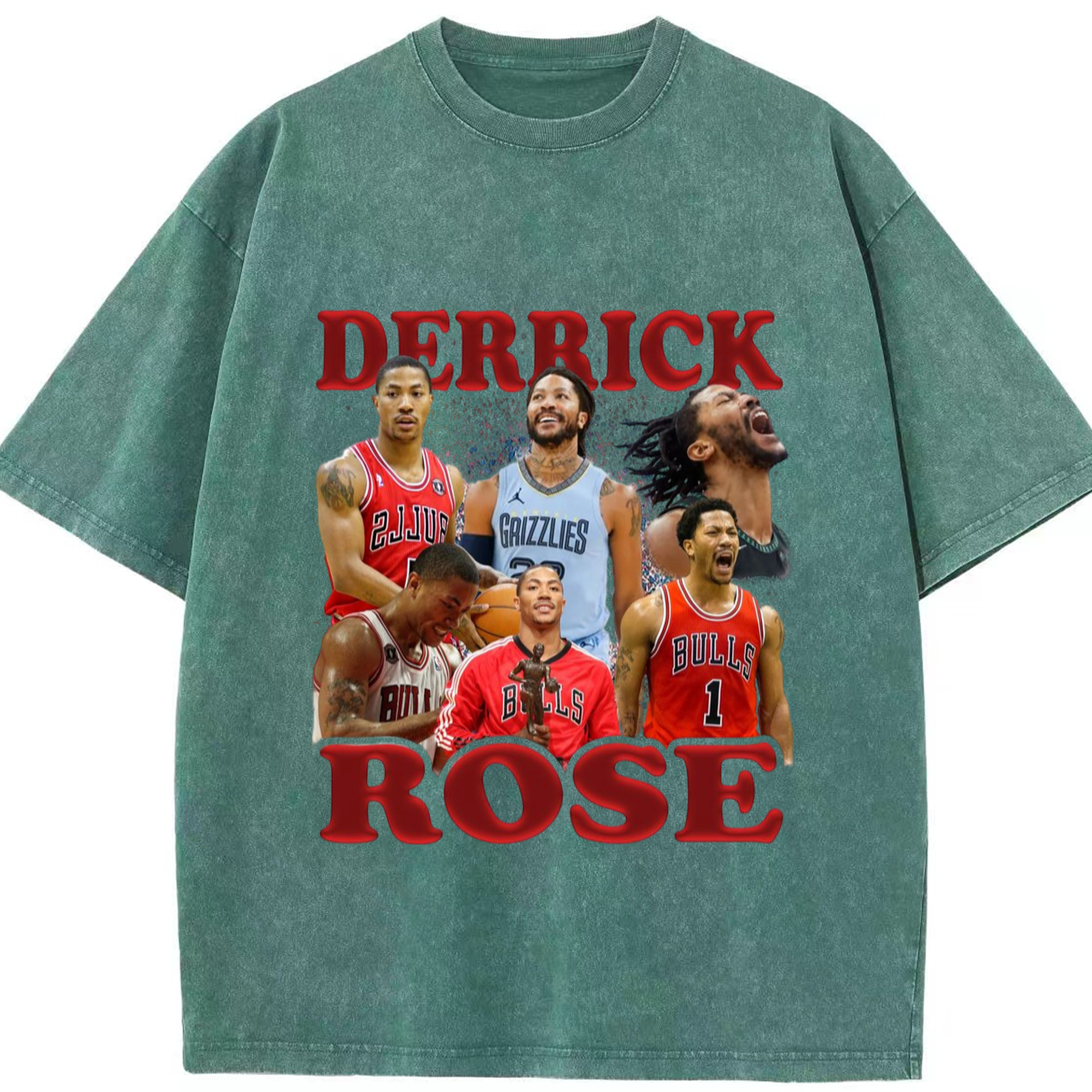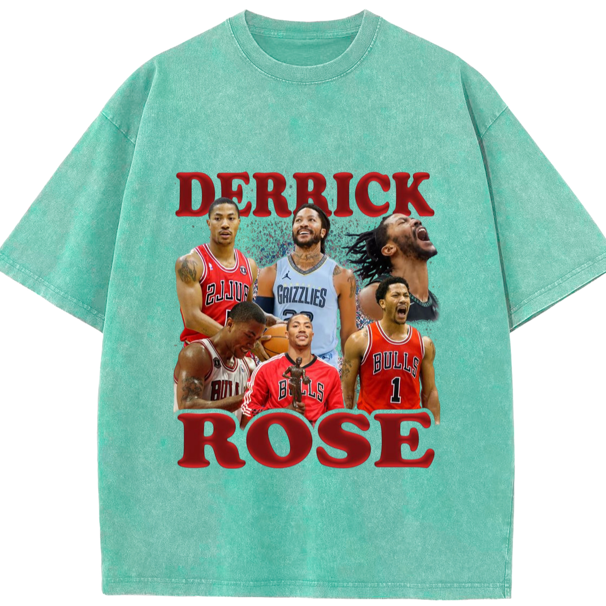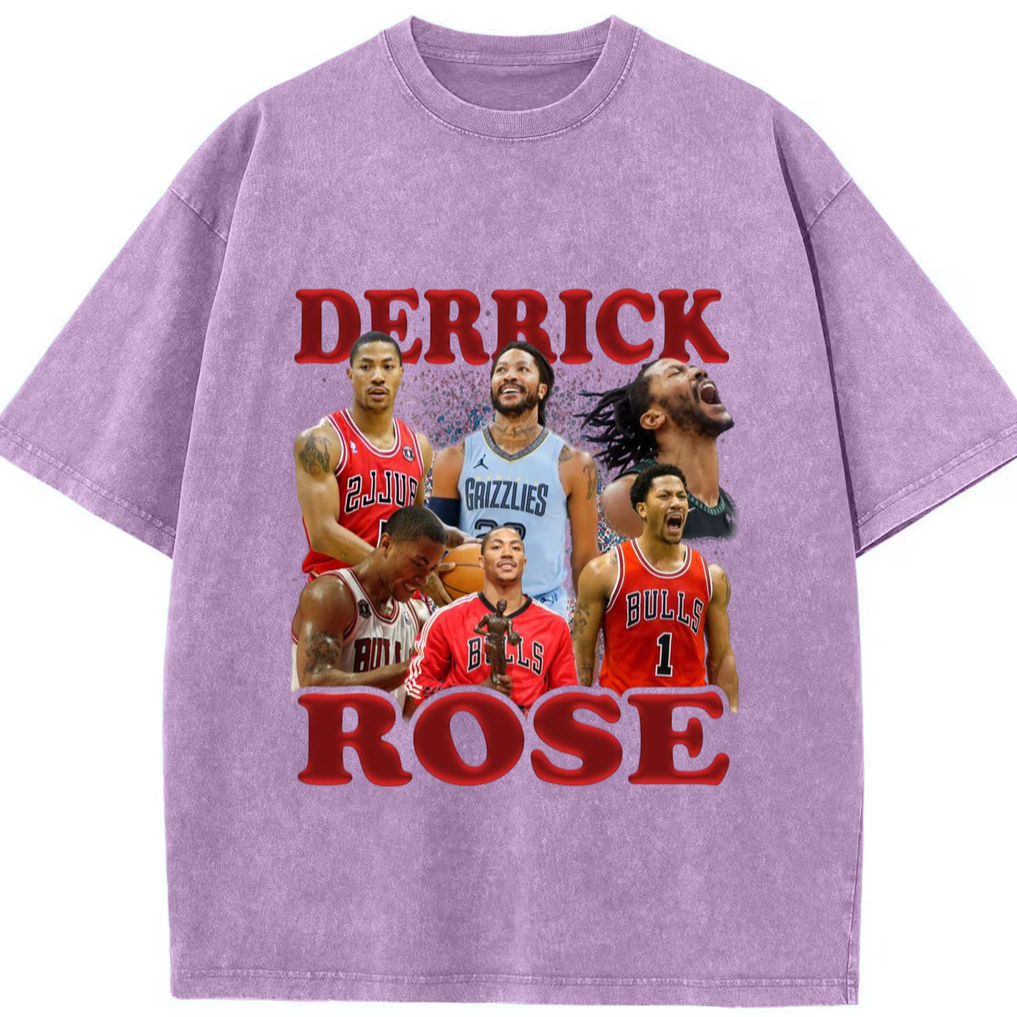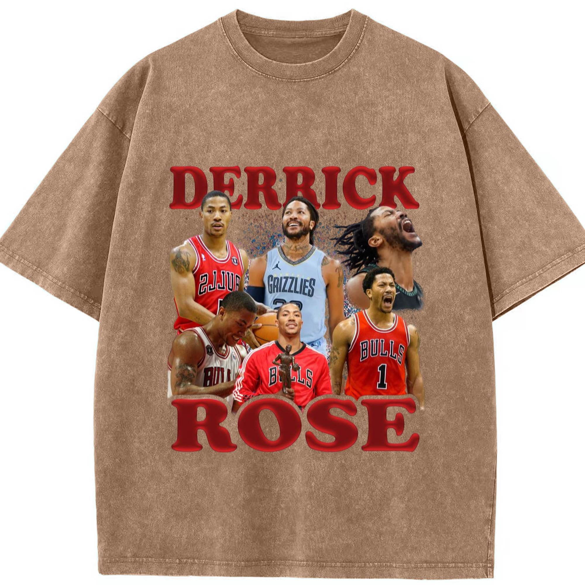 Derrick Rose different cities T-shirt - Washed Vintage Look 230g Cotton Oversized T-Shirt With Front Heat Transfer Print – Soft, Lightweight, Stylish Fit – Comfortable Casual Wear For Sports & Everyday Use