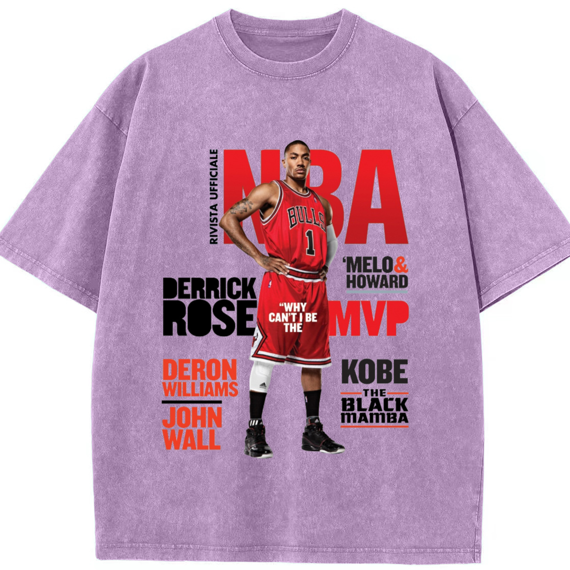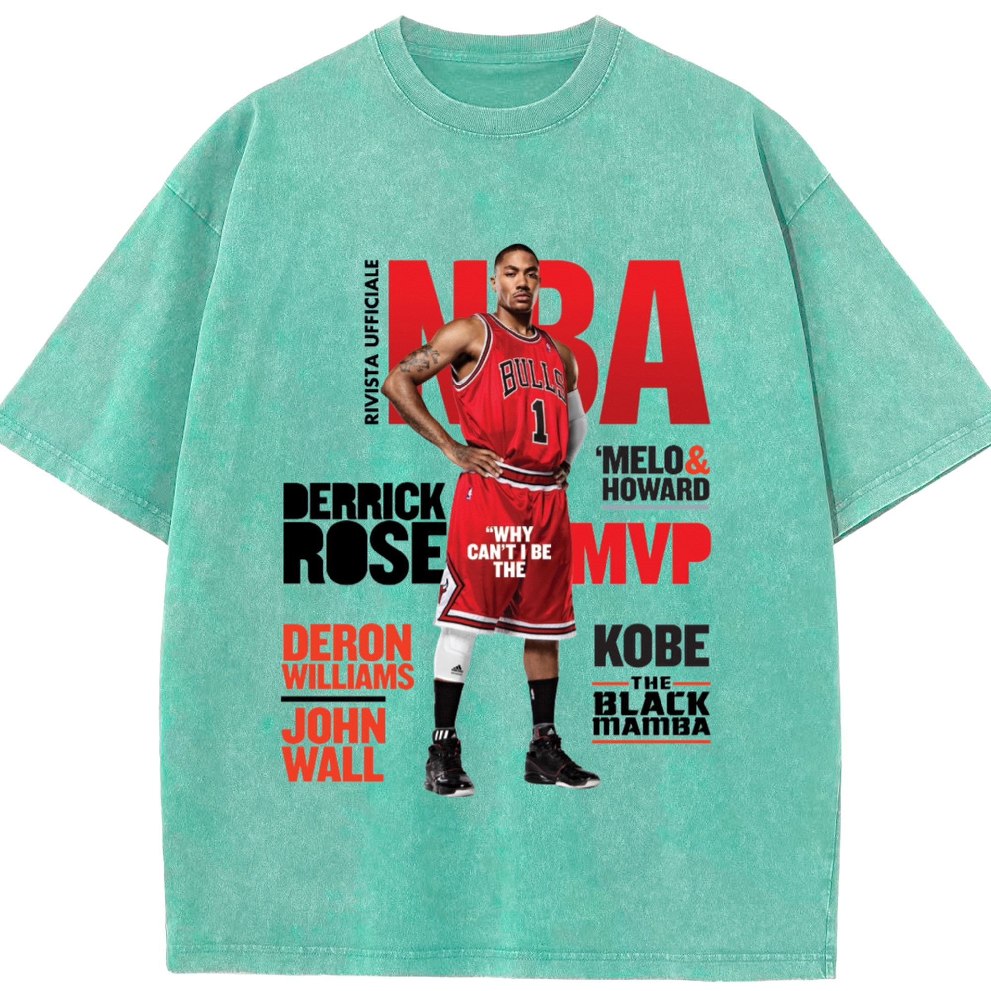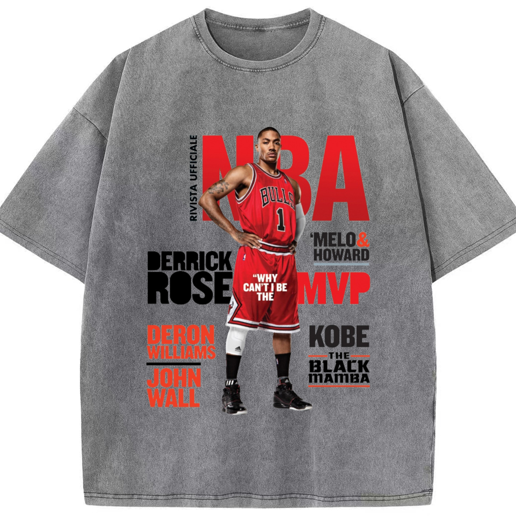 Derrick Rose Magazine Poster Graphic T‑shirt - Washed Vintage Look 230g Cotton Oversized T-Shirt With Front Heat Transfer Print – Soft, Lightweight, Stylish Fit – Comfortable Casual Wear For Sports & Everyday Use