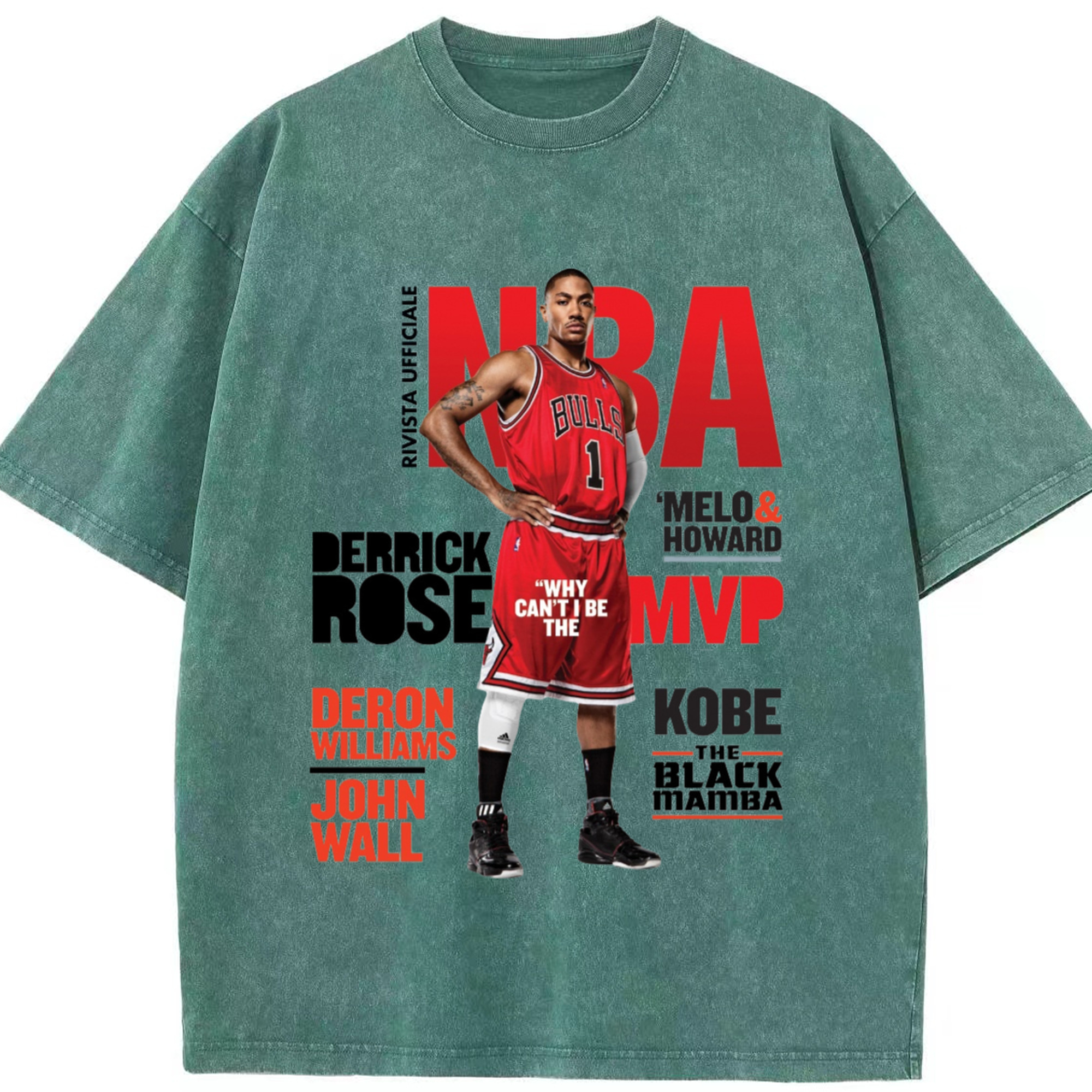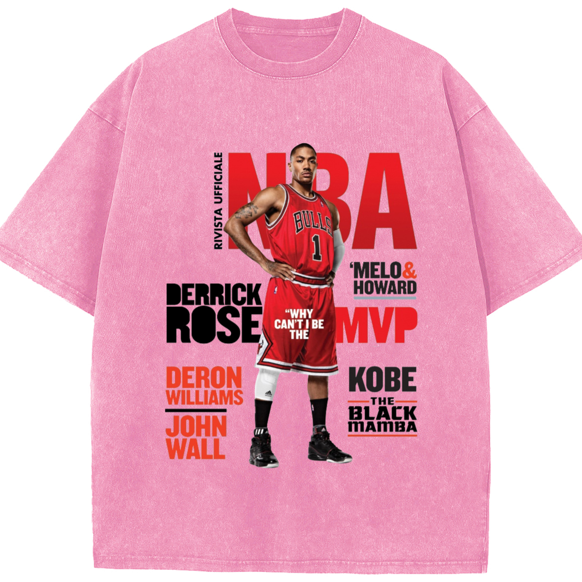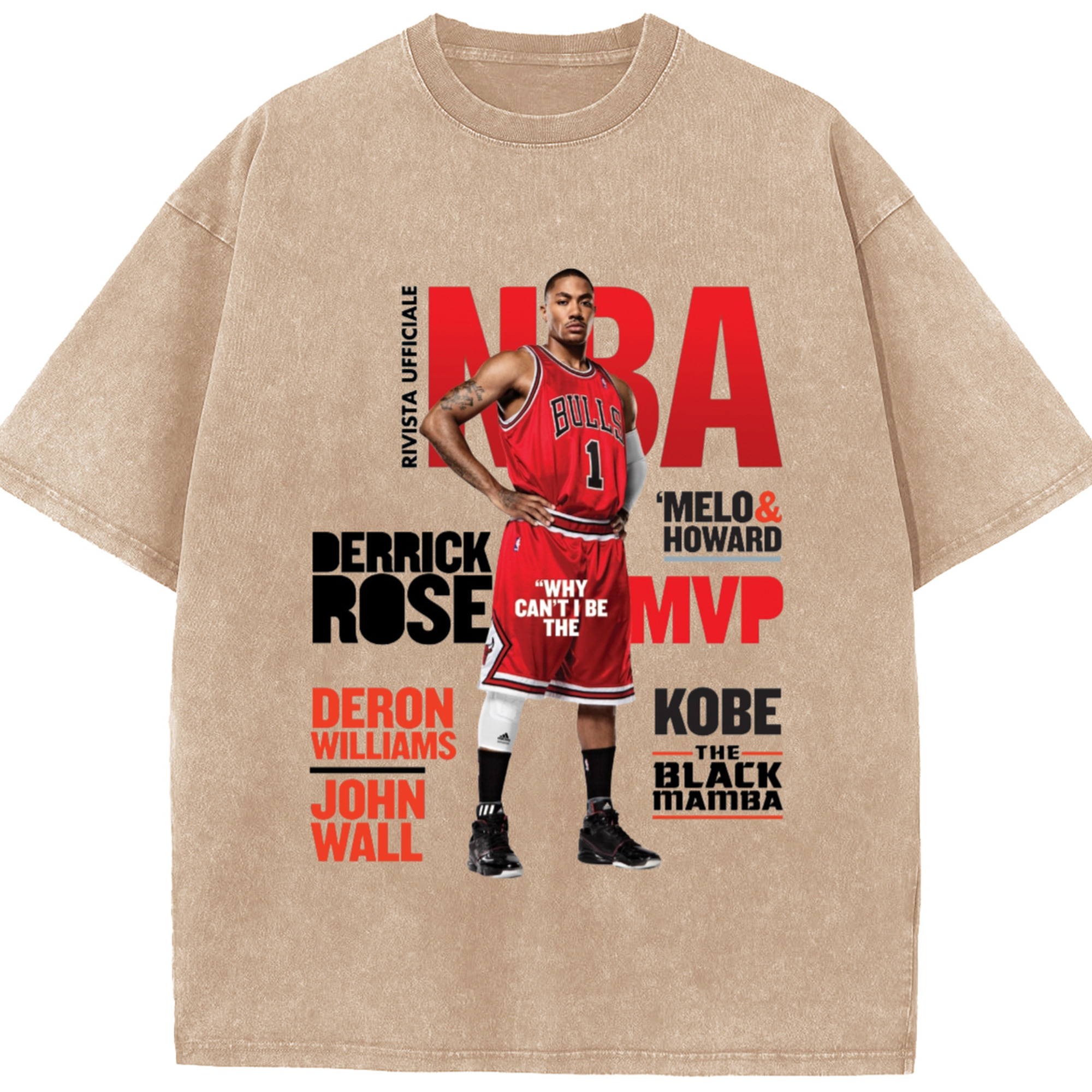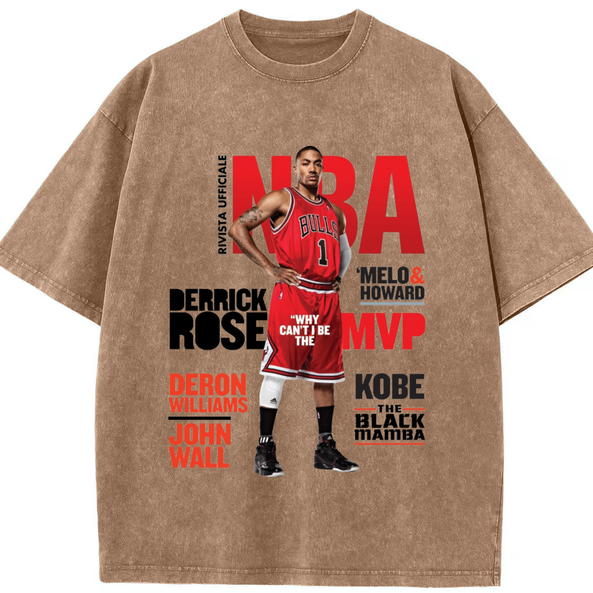 Derrick Rose Magazine Poster Graphic T‑shirt - Washed Vintage Look 230g Cotton Oversized T-Shirt With Front Heat Transfer Print – Soft, Lightweight, Stylish Fit – Comfortable Casual Wear For Sports & Everyday Use