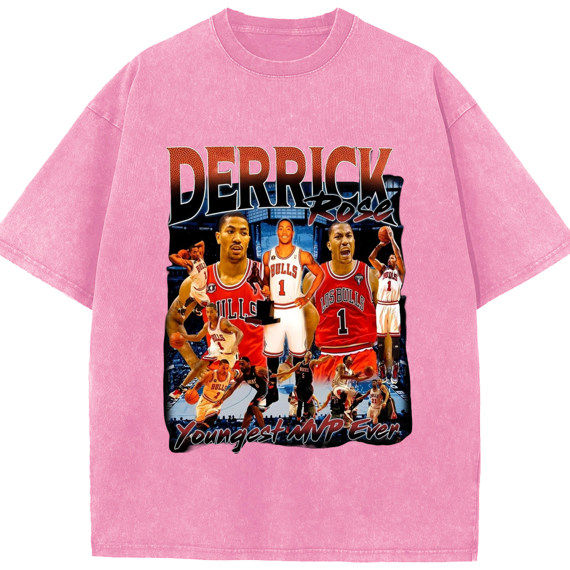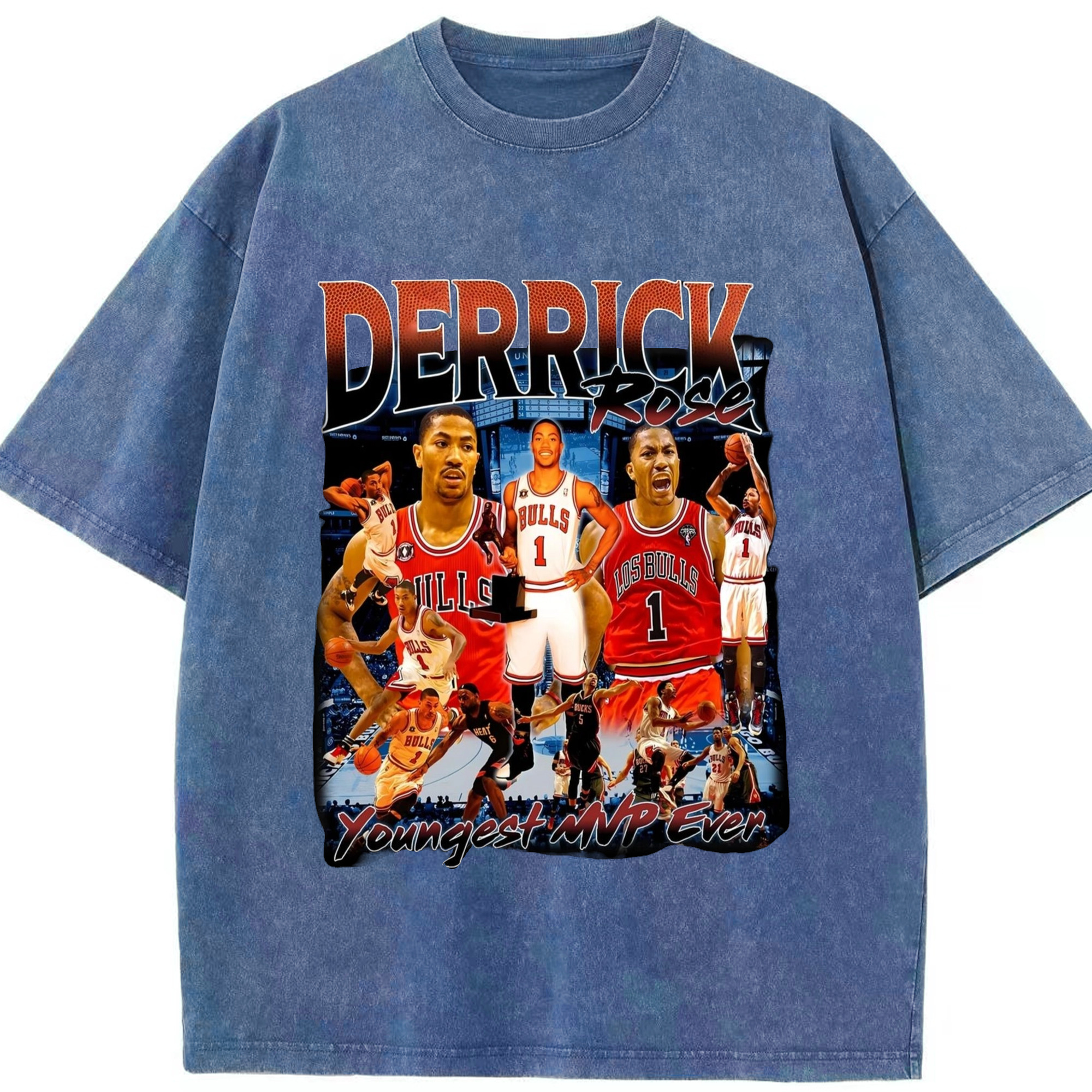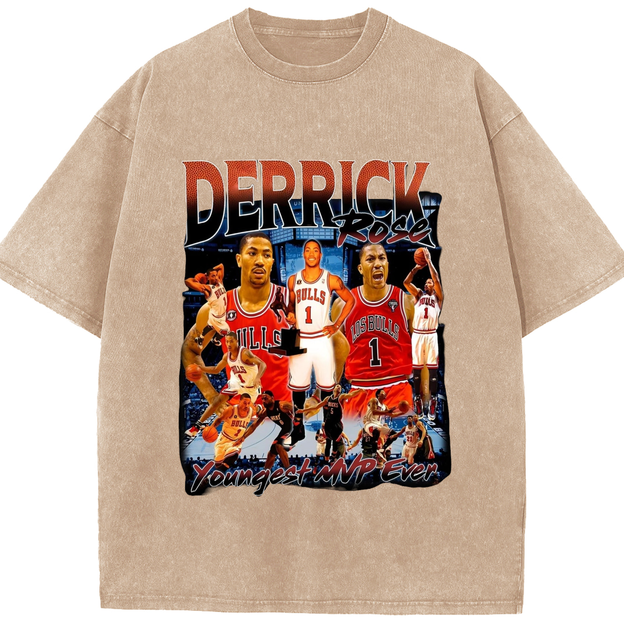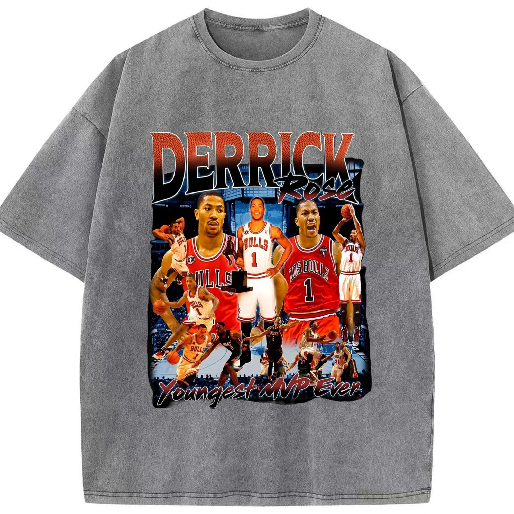 Derrick Rose youngest Mvp T-shirt - Washed Vintage Look 230g Cotton Oversized T-Shirt With Front Heat Transfer Print – Soft, Lightweight, Stylish Fit – Comfortable Casual Wear For Sports & Everyday Use