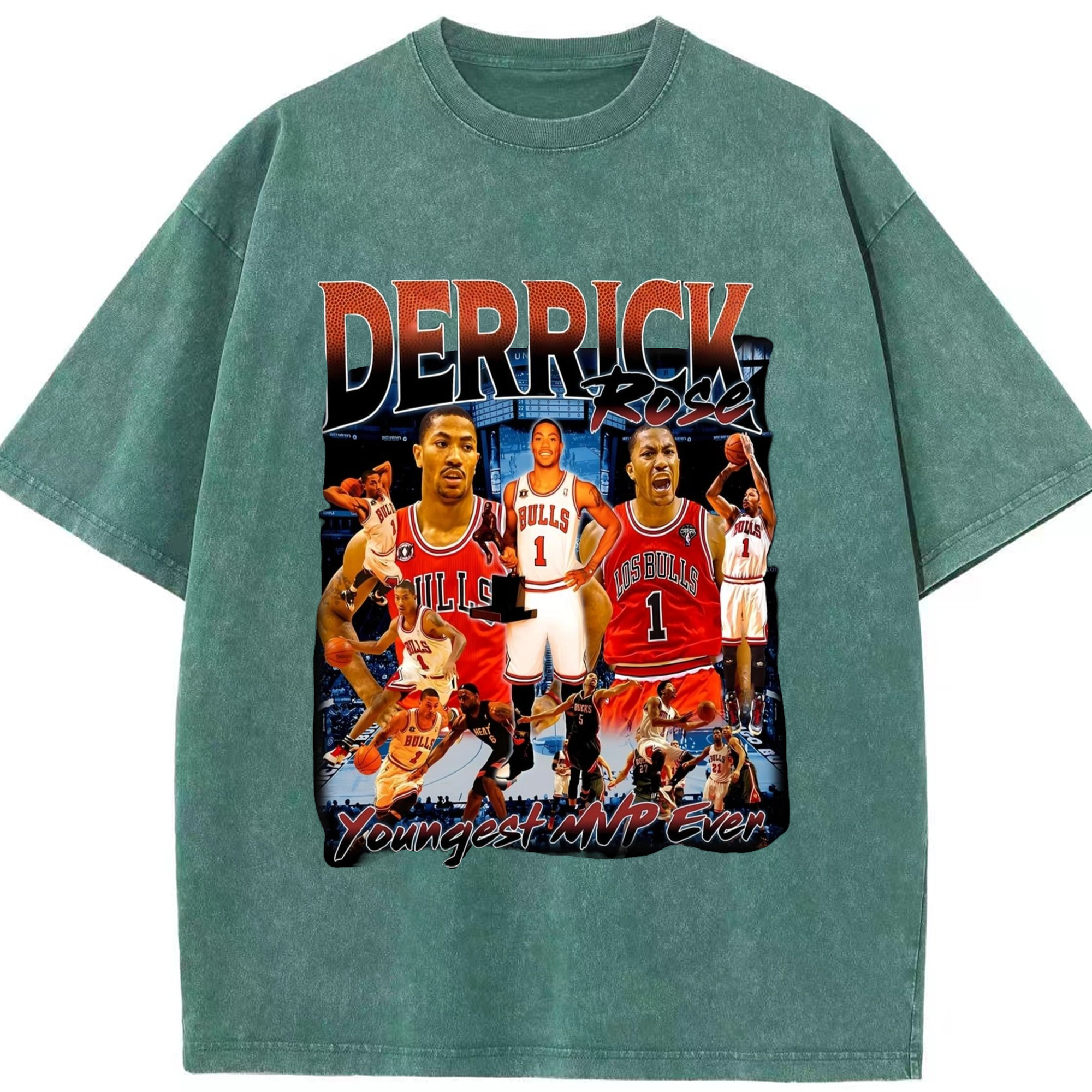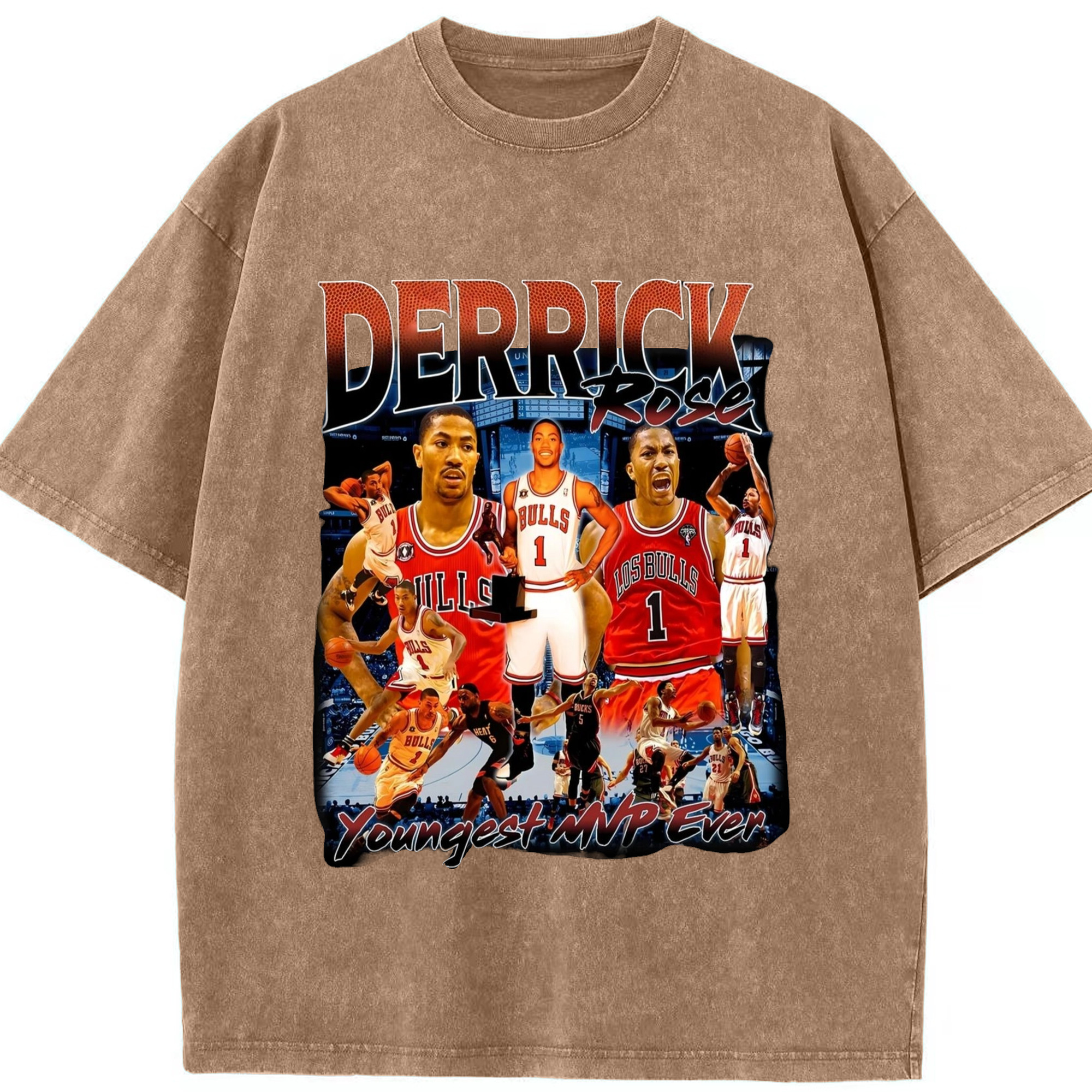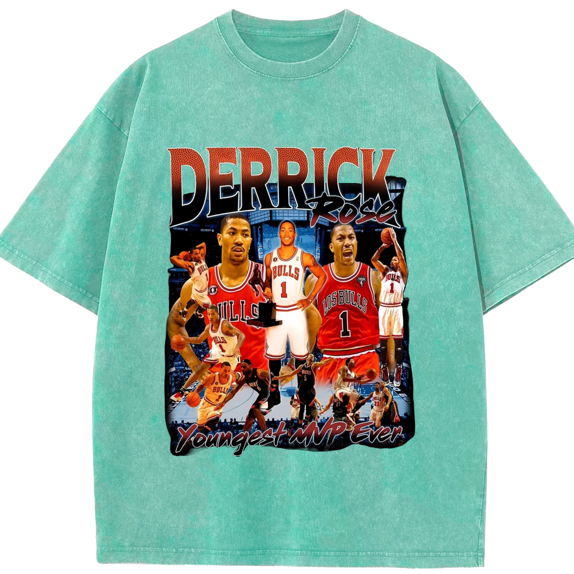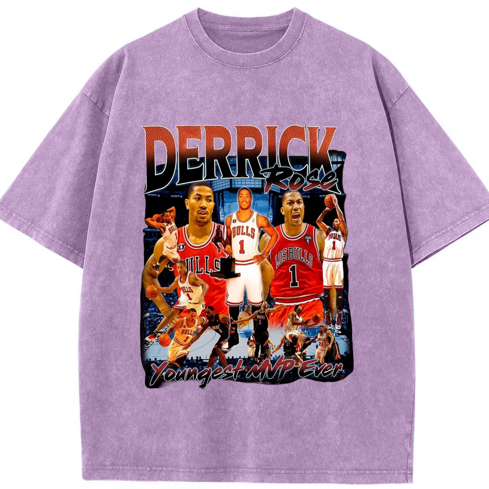 Derrick Rose youngest Mvp T-shirt - Washed Vintage Look 230g Cotton Oversized T-Shirt With Front Heat Transfer Print – Soft, Lightweight, Stylish Fit – Comfortable Casual Wear For Sports & Everyday Use