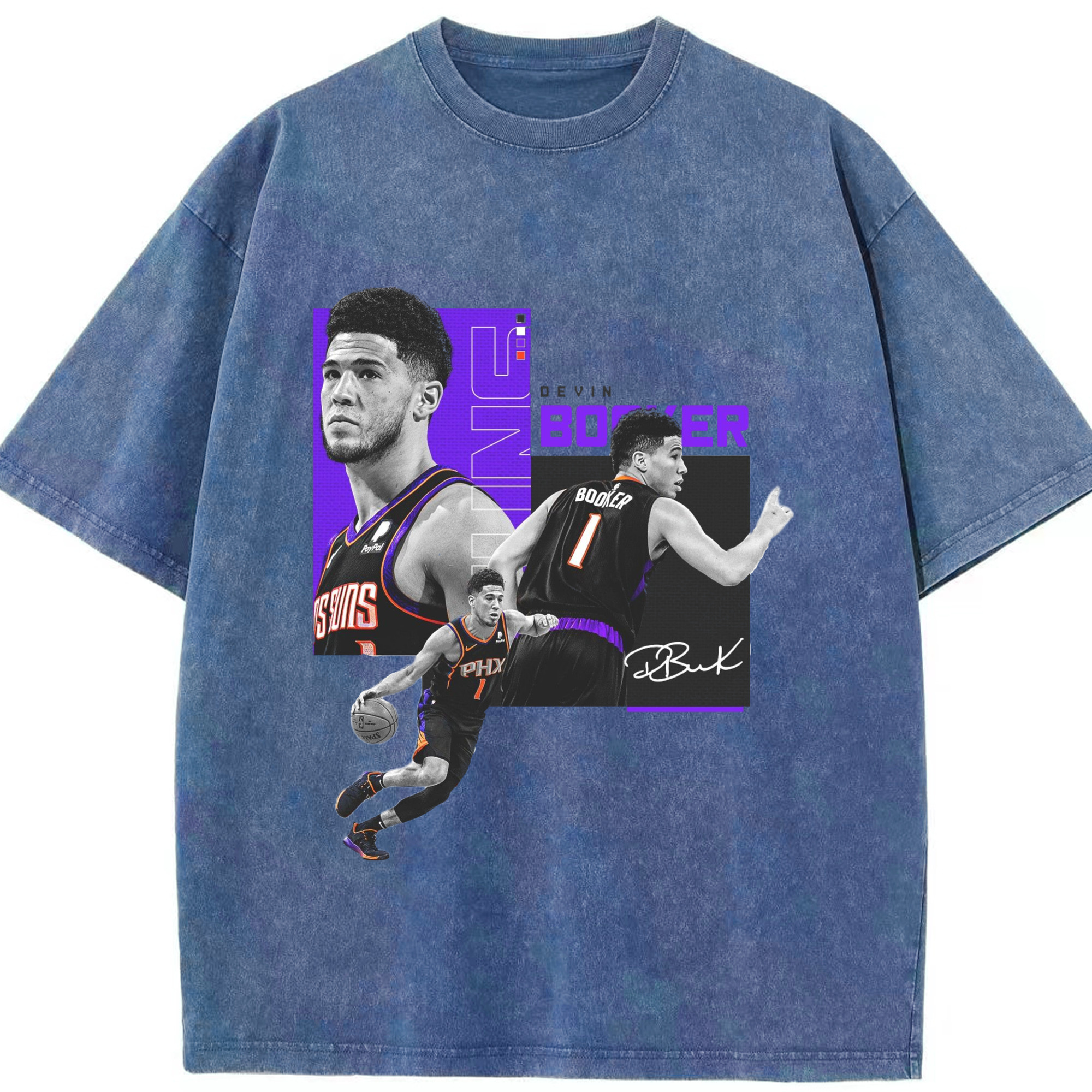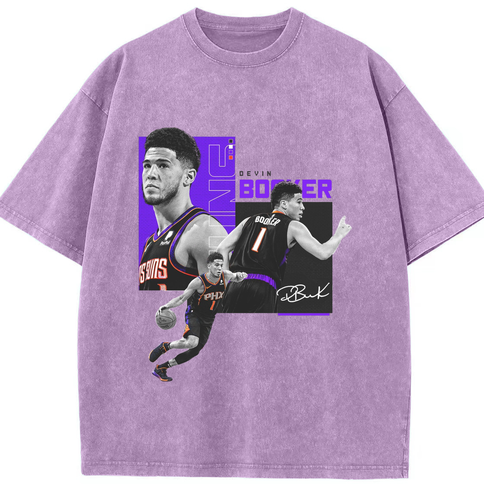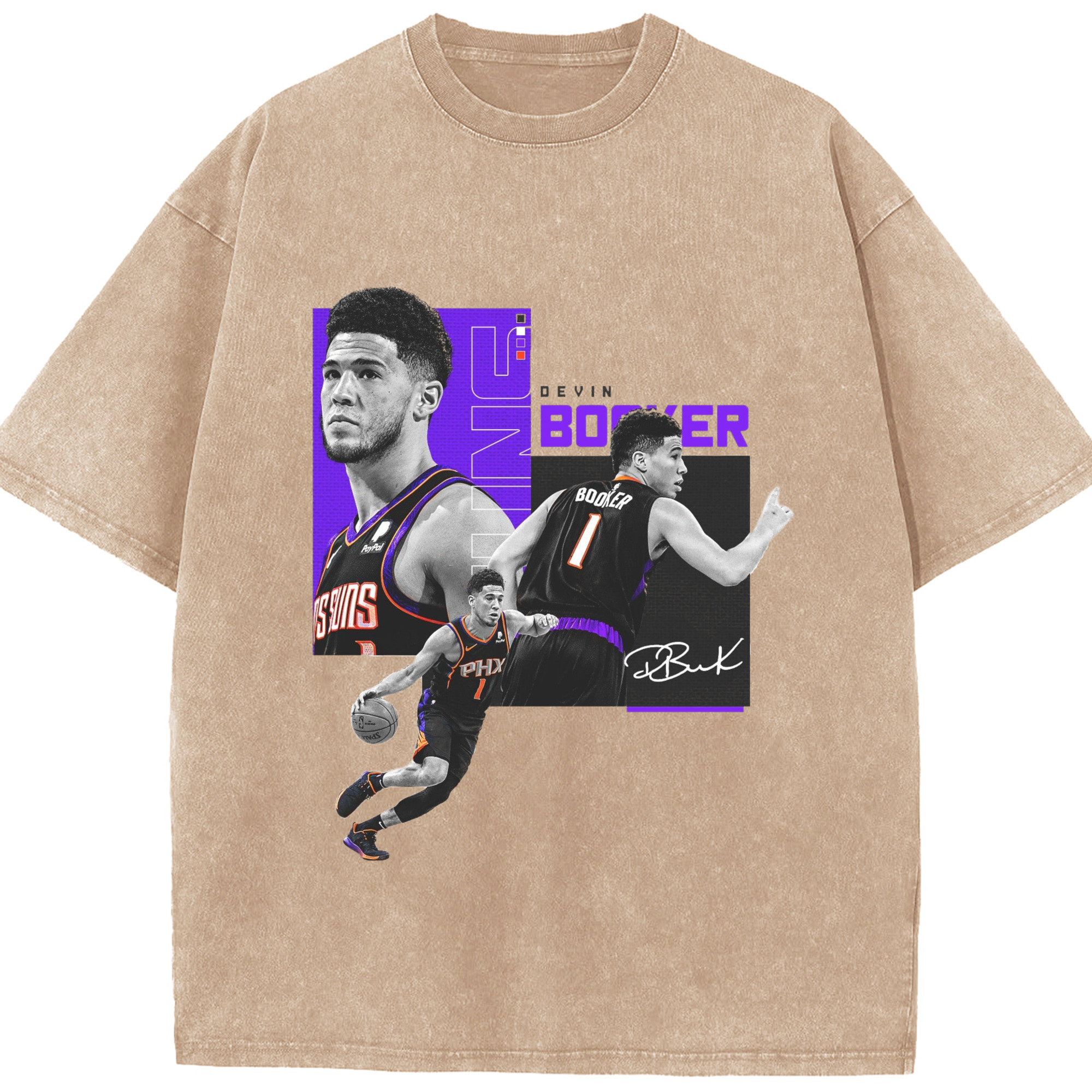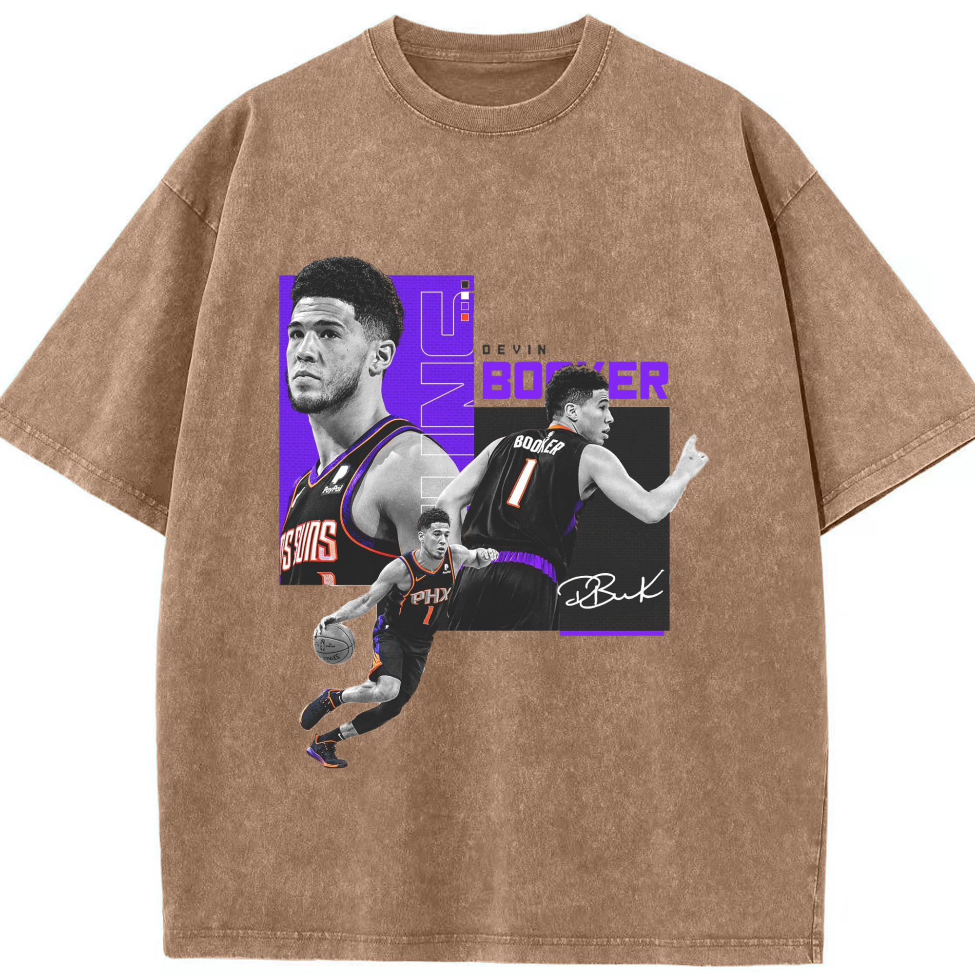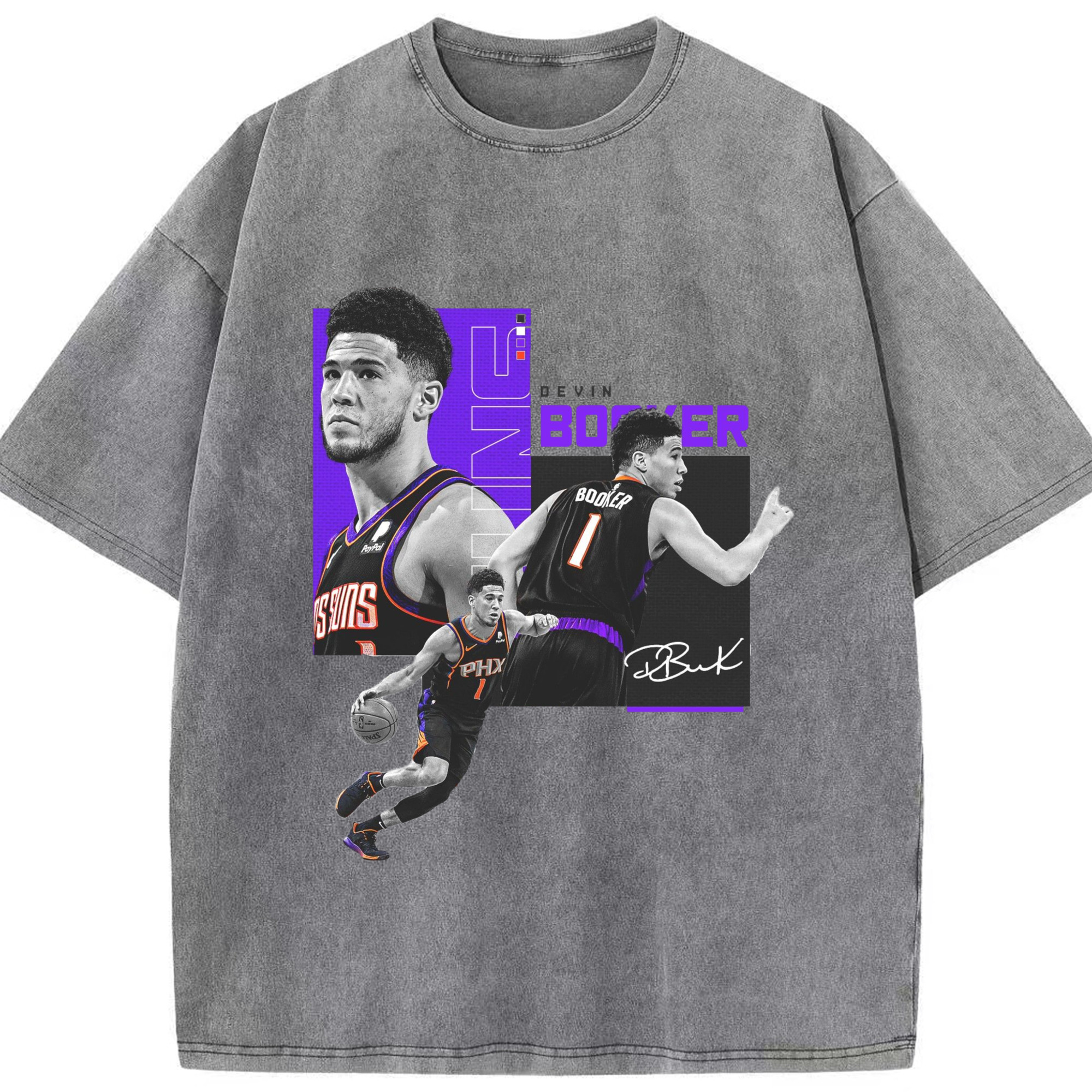 Devin Booker Graphic Tee - Washed Vintage Look 230g Cotton Oversized T-Shirt With Front Heat Transfer Print – Soft, Lightweight, Stylish Fit – Comfortable Casual Wear For Sports & Everyday Use