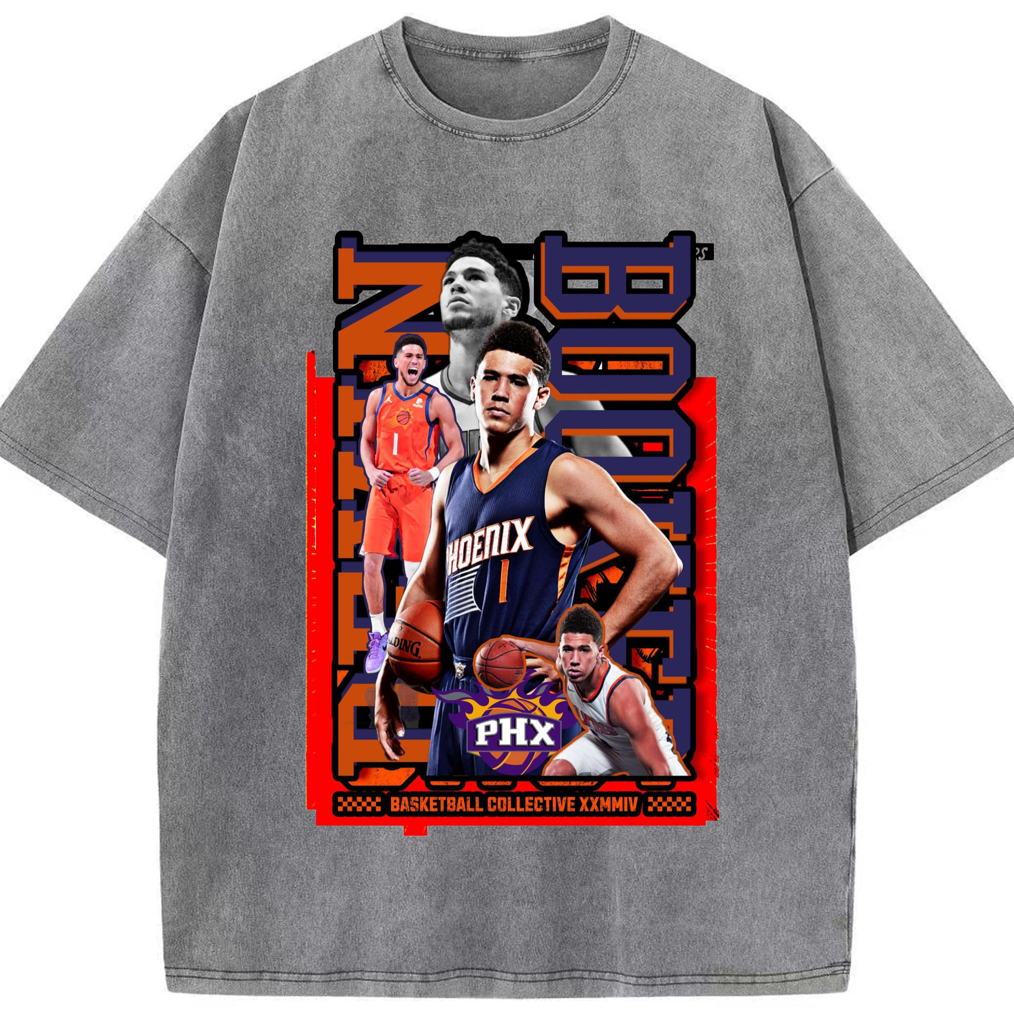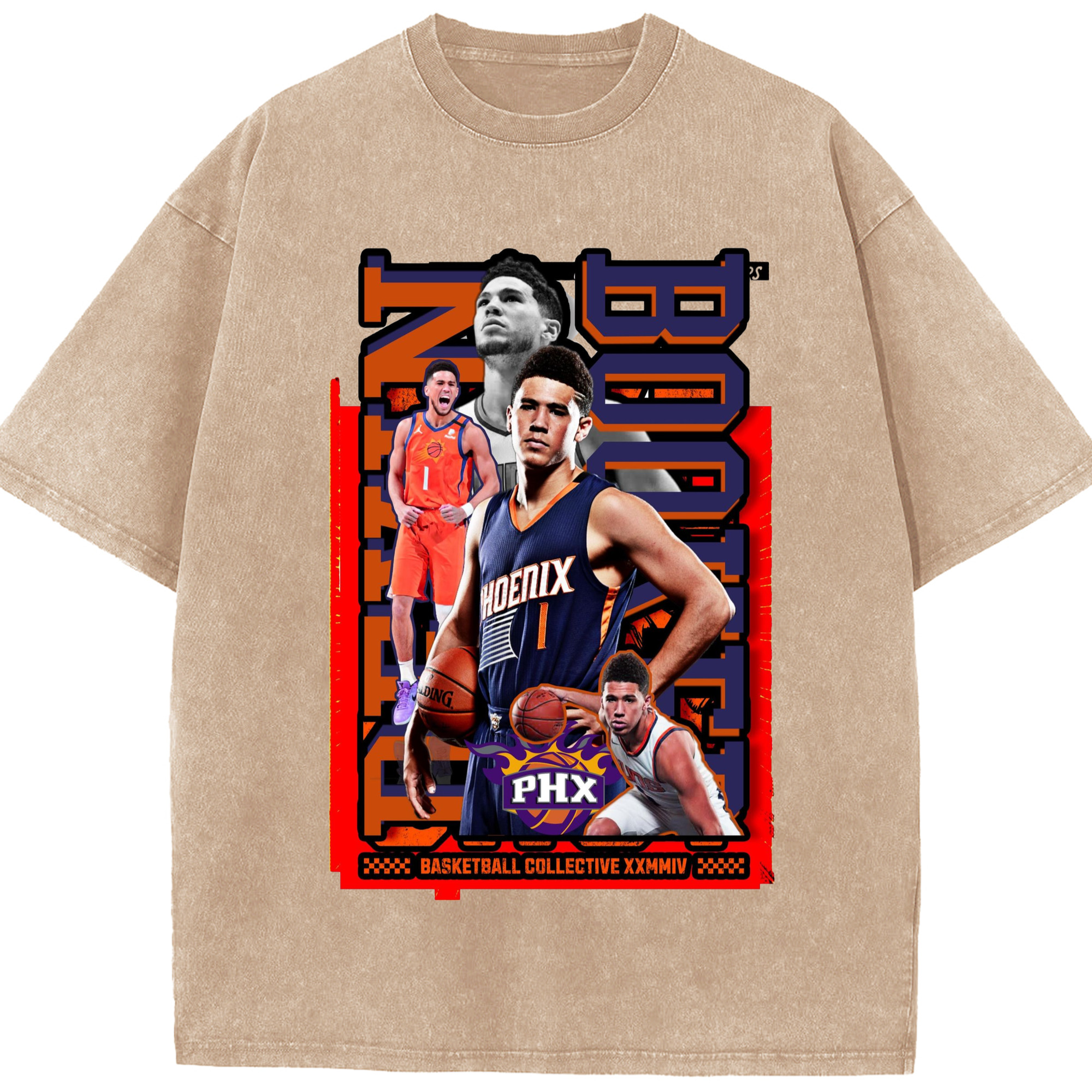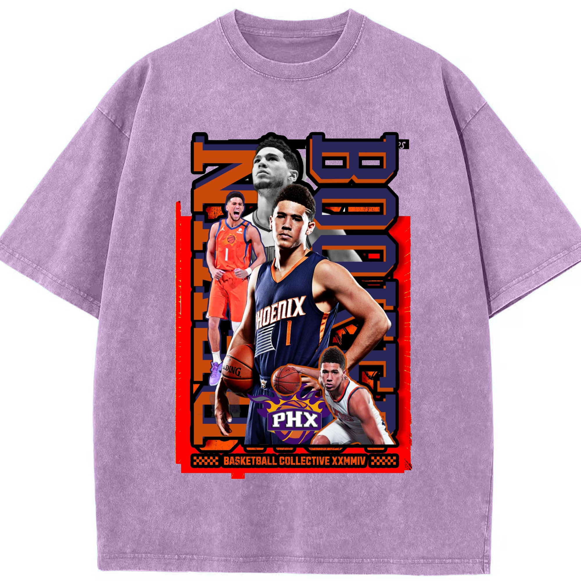 Devin Booker magazine cover graphic T‑Shirt - Washed Vintage Look 230g Cotton Oversized T-Shirt With Front Heat Transfer Print – Soft, Lightweight, Stylish Fit – Comfortable Casual Wear For Sports & Everyday Use