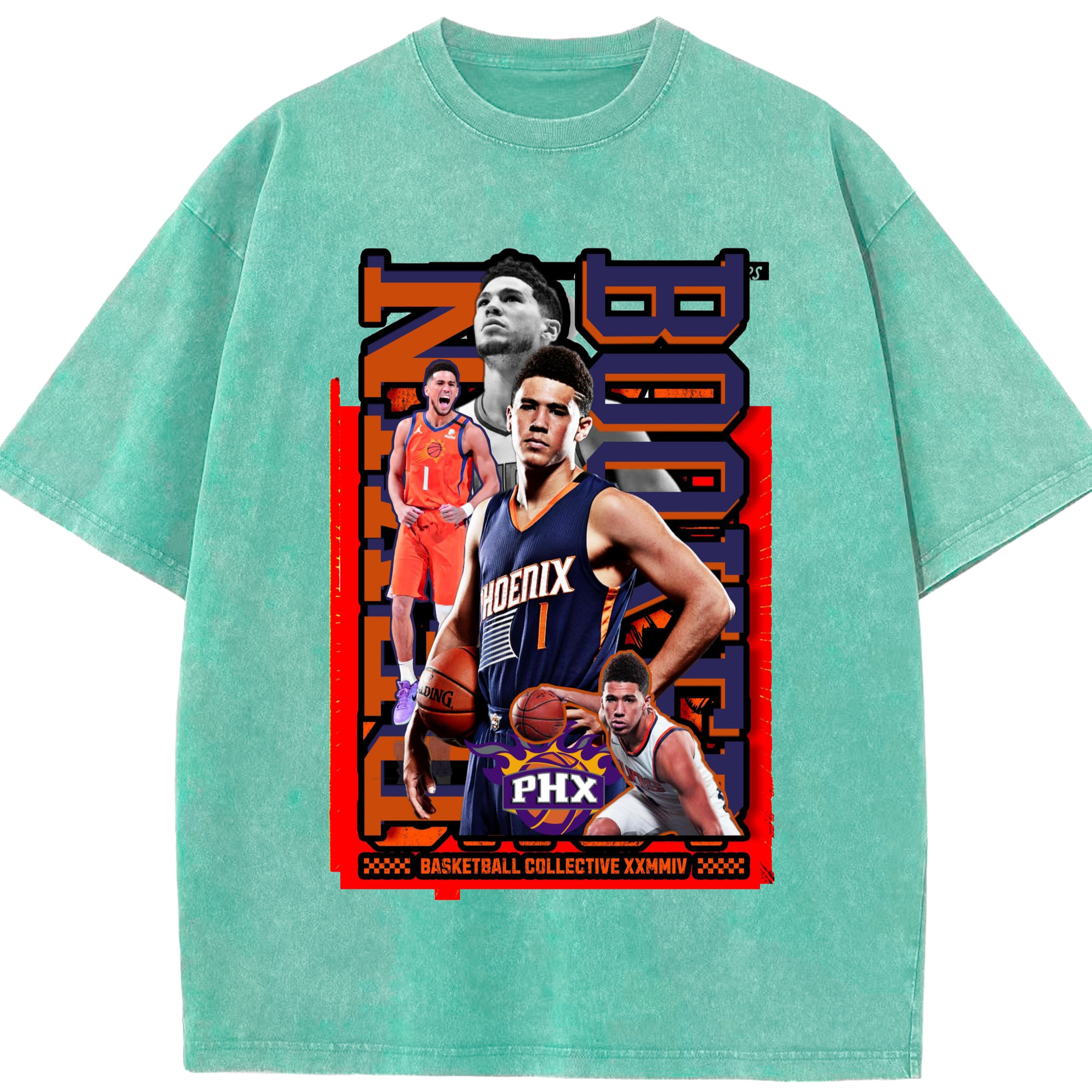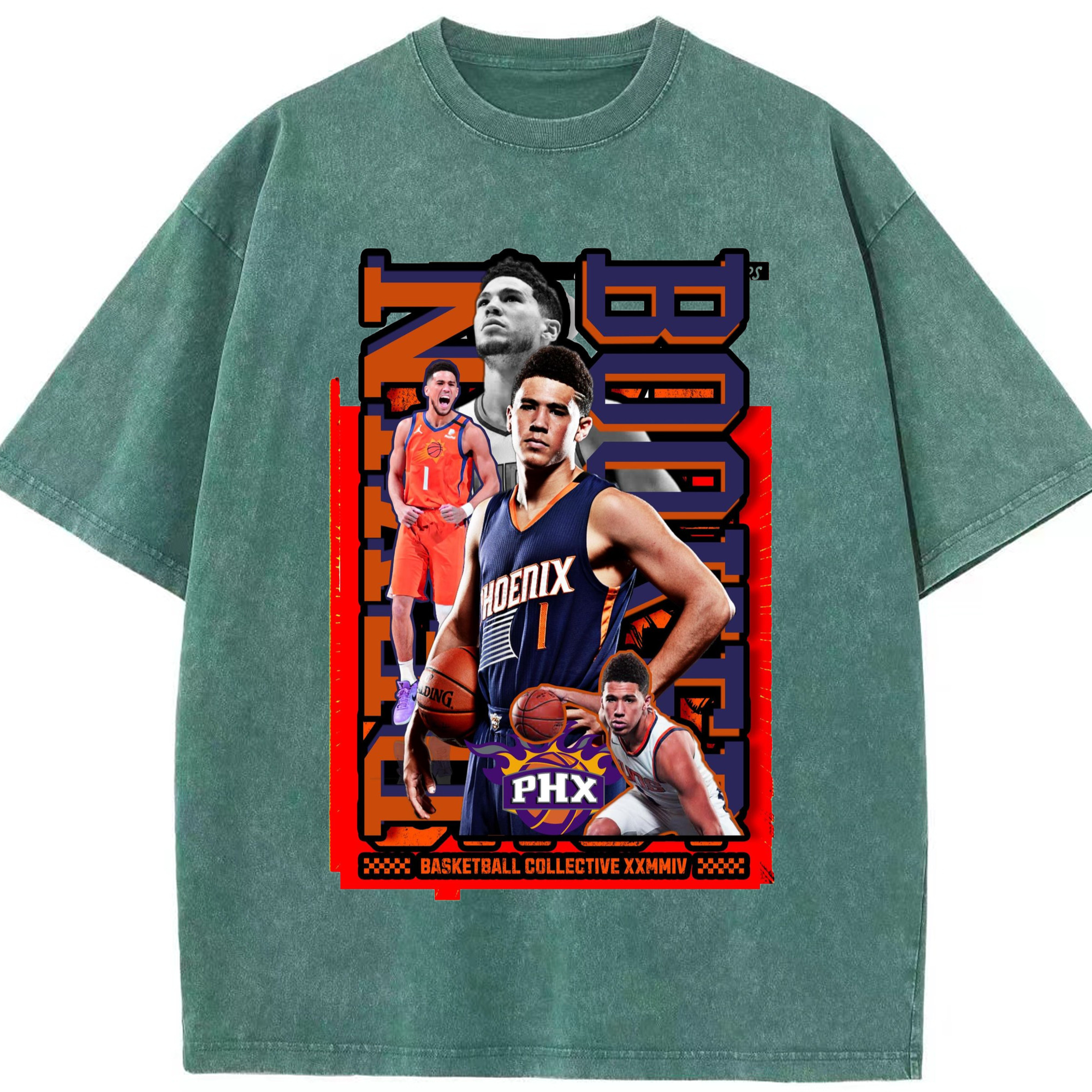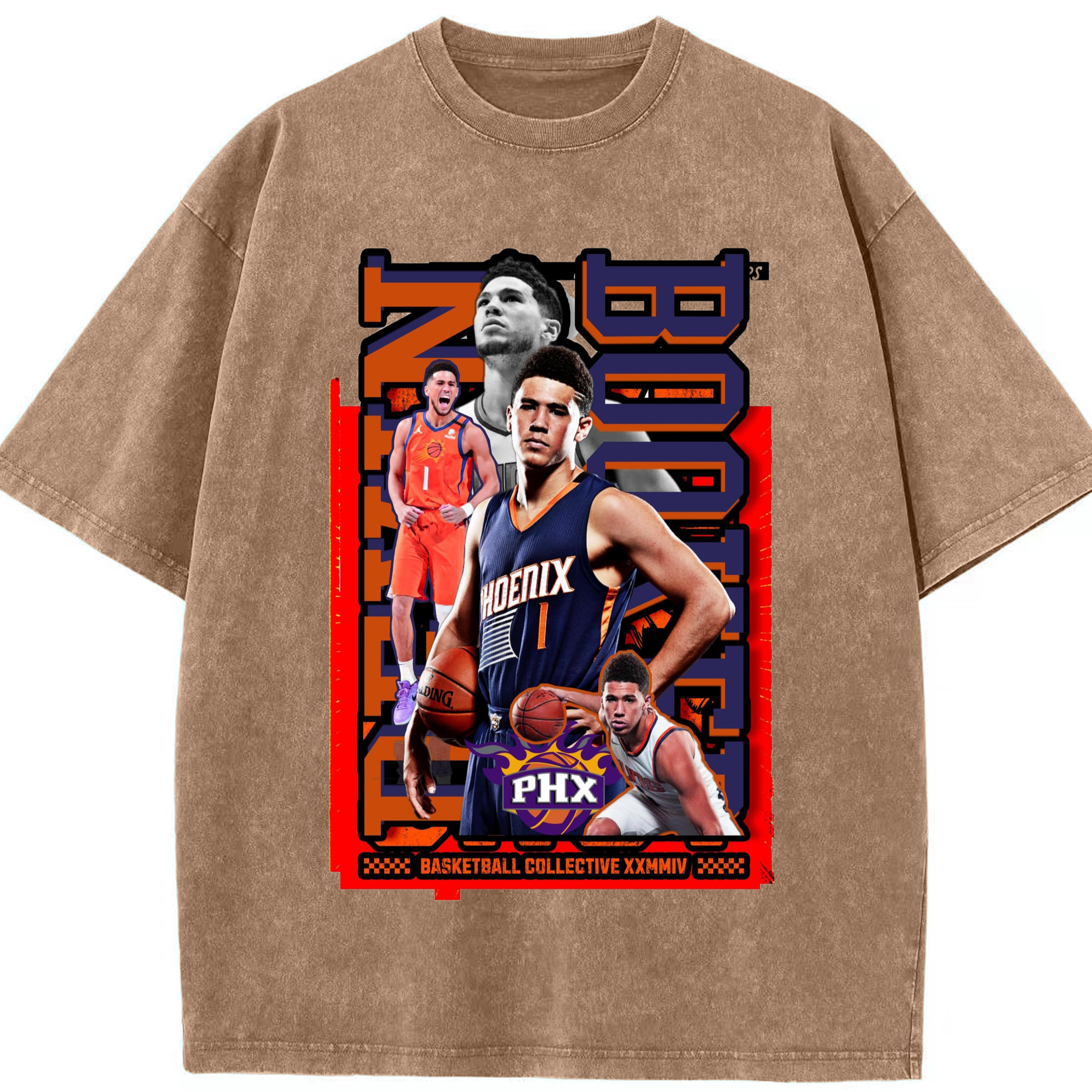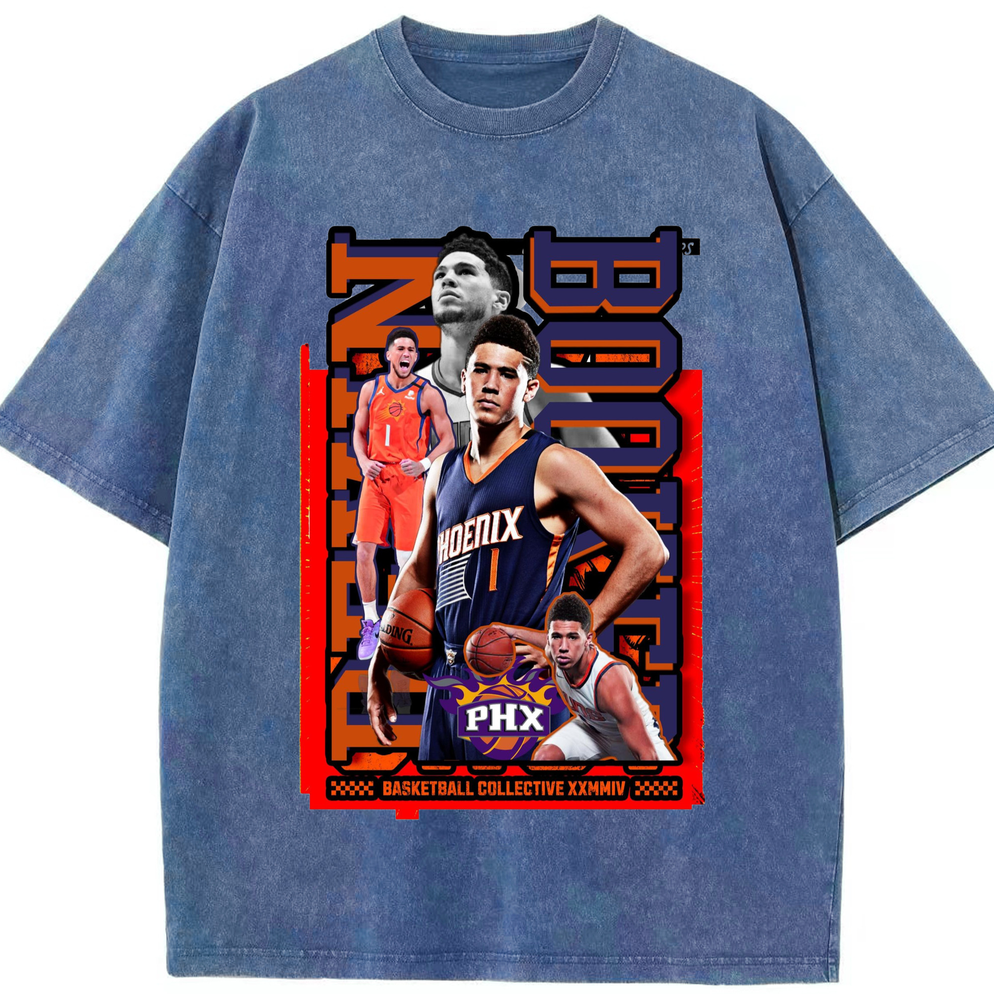 Devin Booker magazine cover graphic T‑Shirt - Washed Vintage Look 230g Cotton Oversized T-Shirt With Front Heat Transfer Print – Soft, Lightweight, Stylish Fit – Comfortable Casual Wear For Sports & Everyday Use