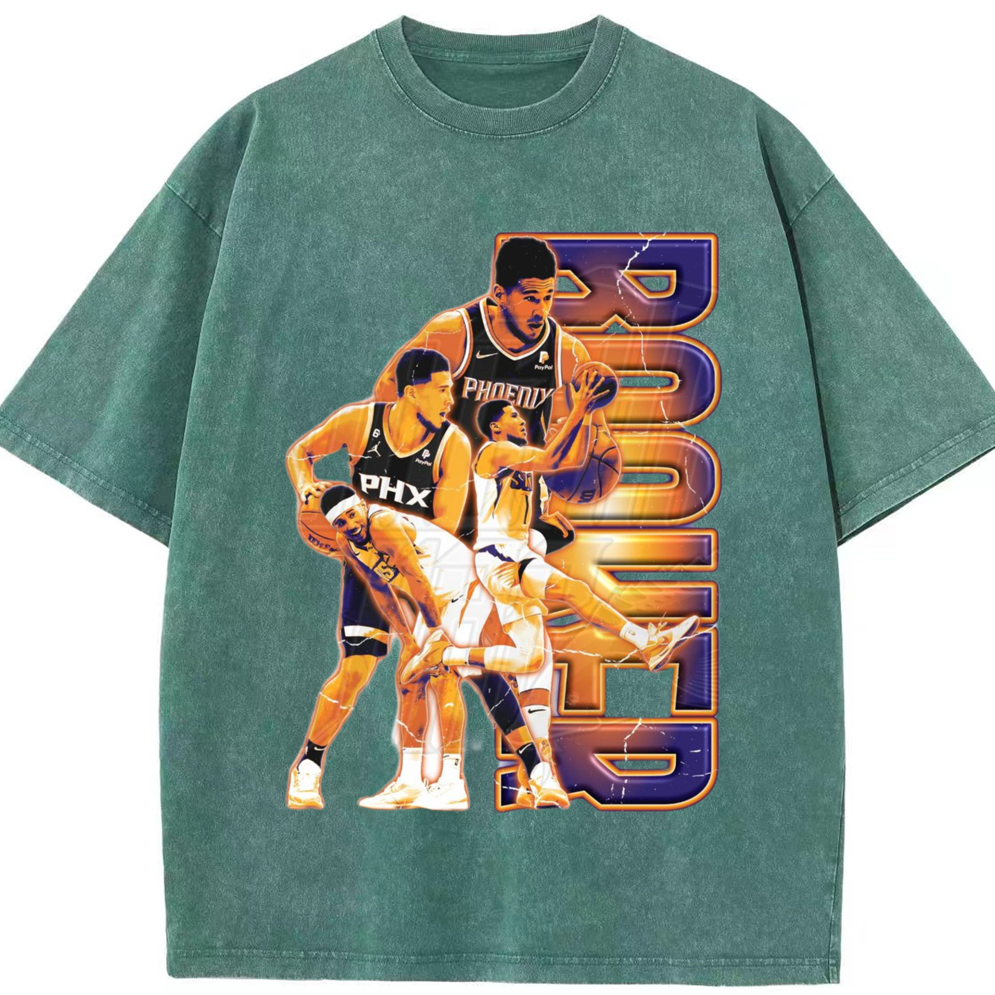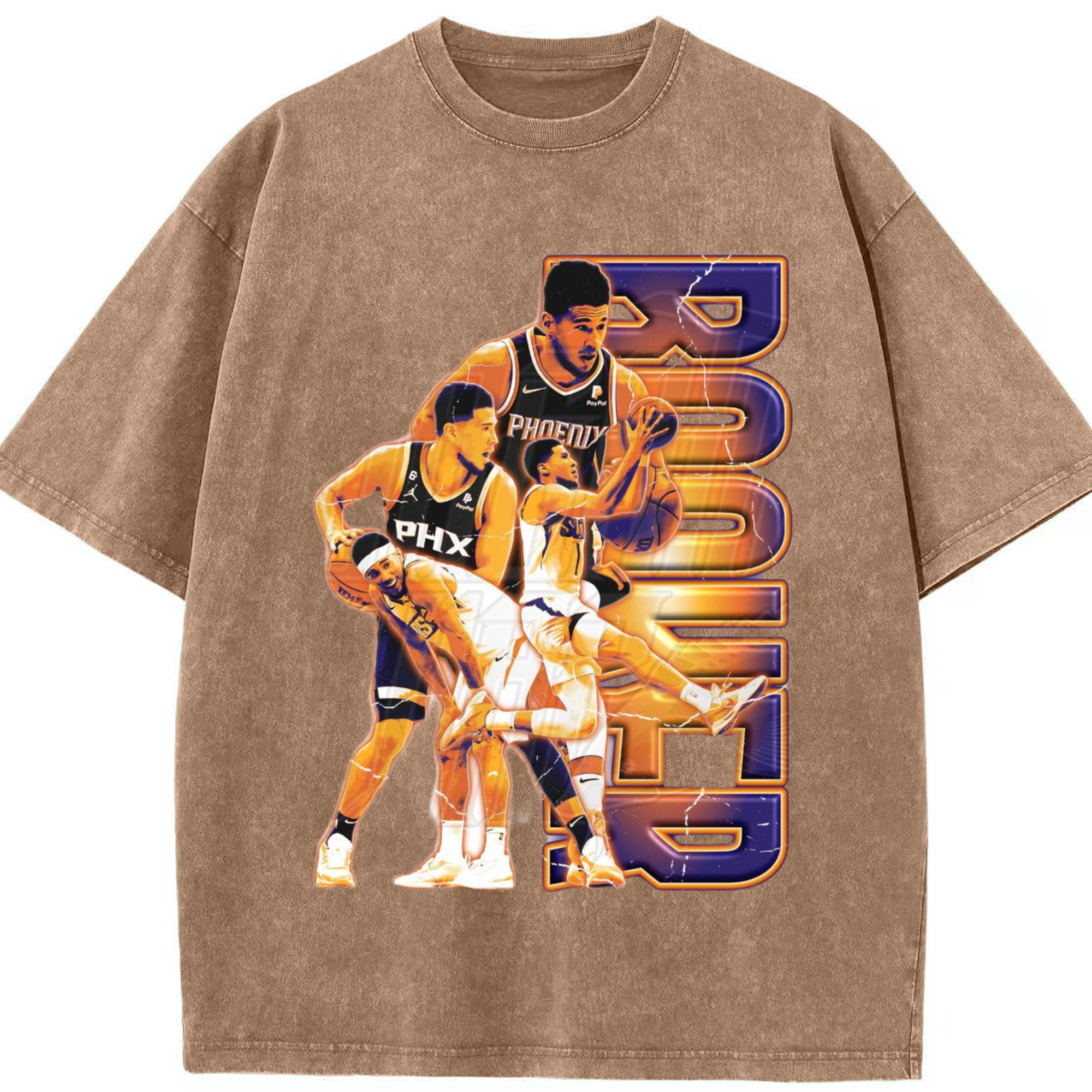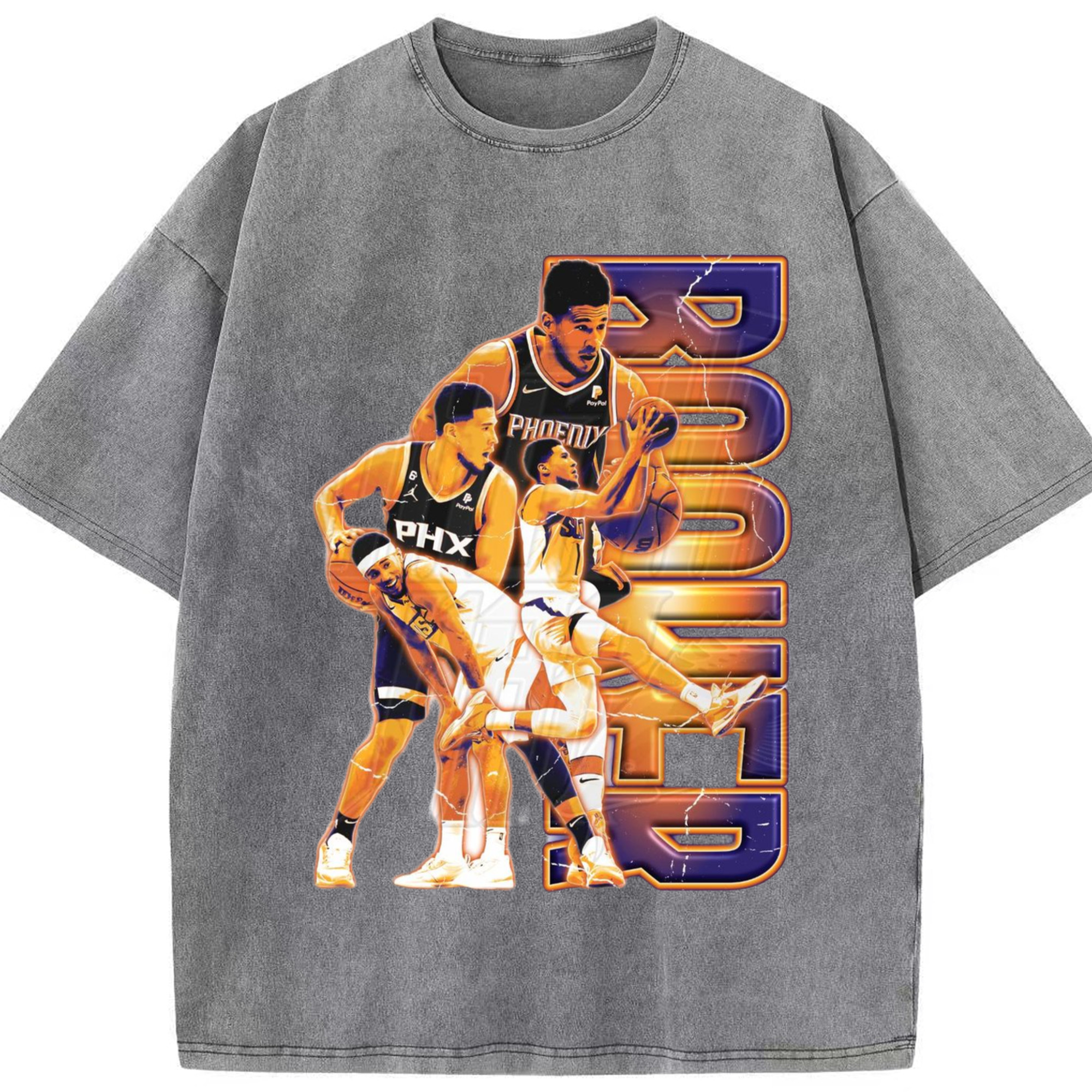 Devin Booker suns #1 Collage graphic T‑Shirt - Washed Vintage Look 230g Cotton Oversized T-Shirt With Front Heat Transfer Print – Soft, Lightweight, Stylish Fit – Comfortable Casual Wear For Sports & Everyday Use