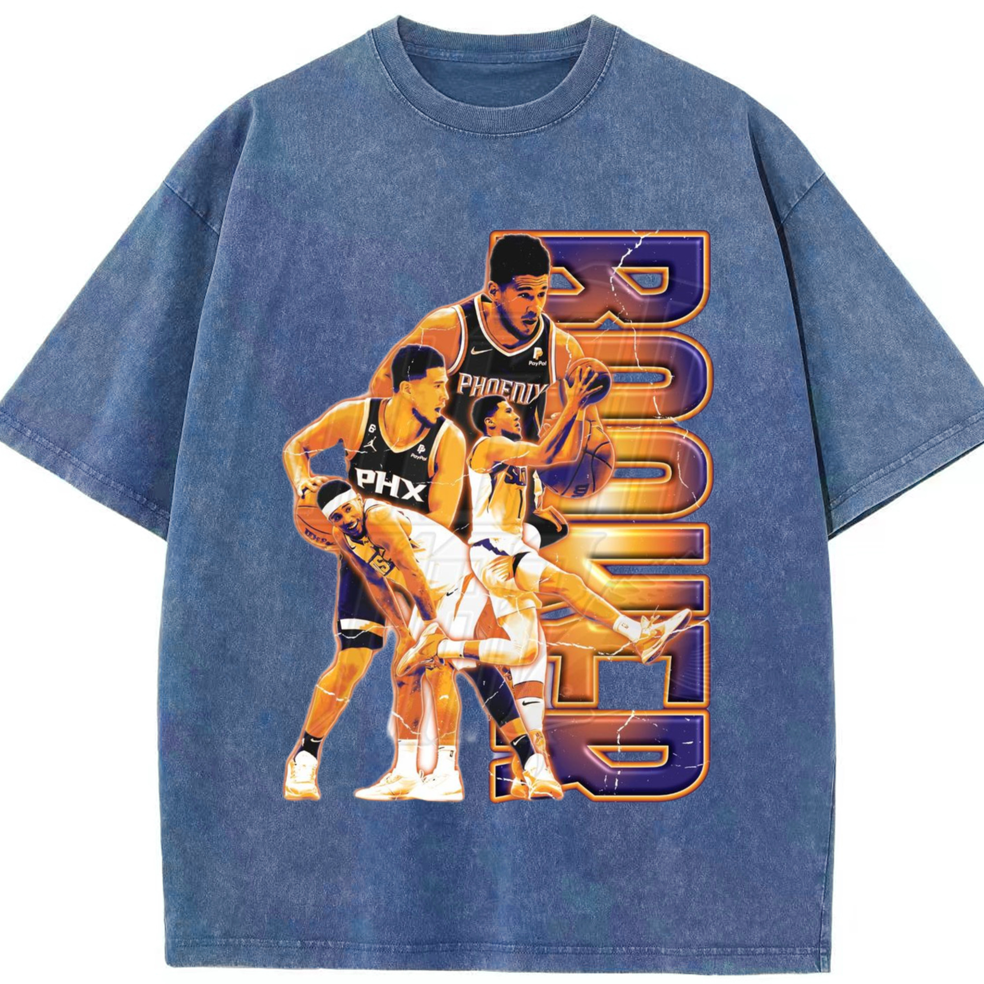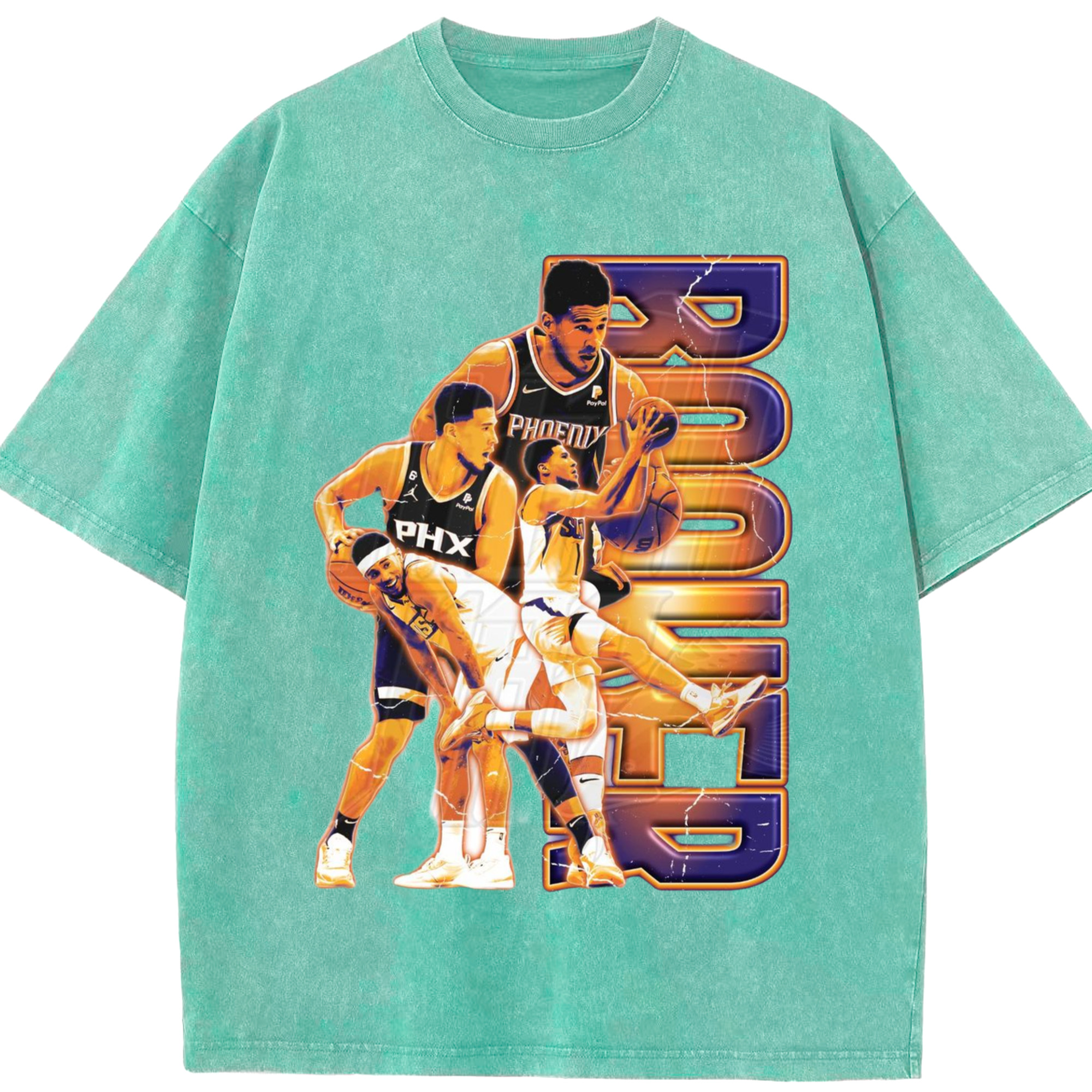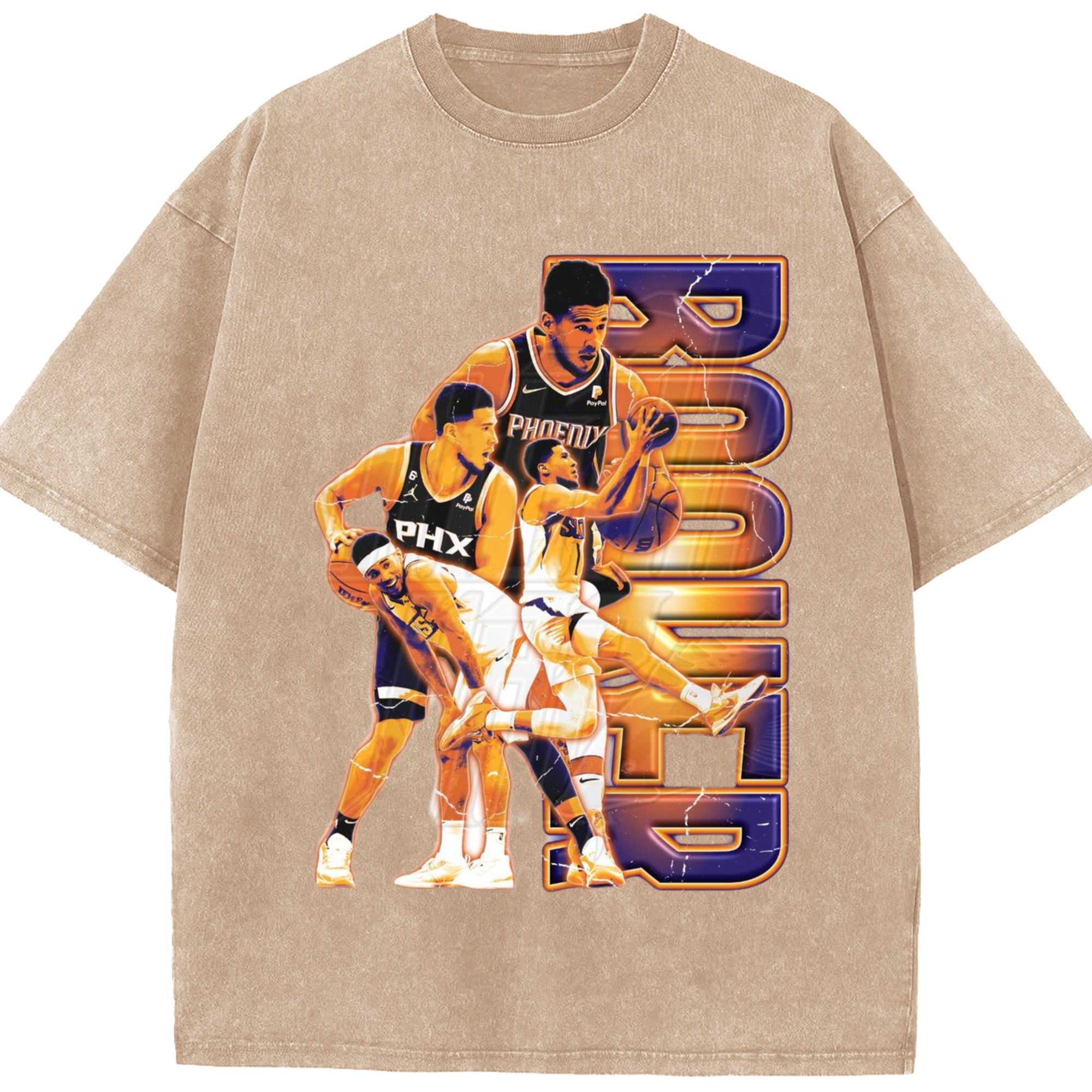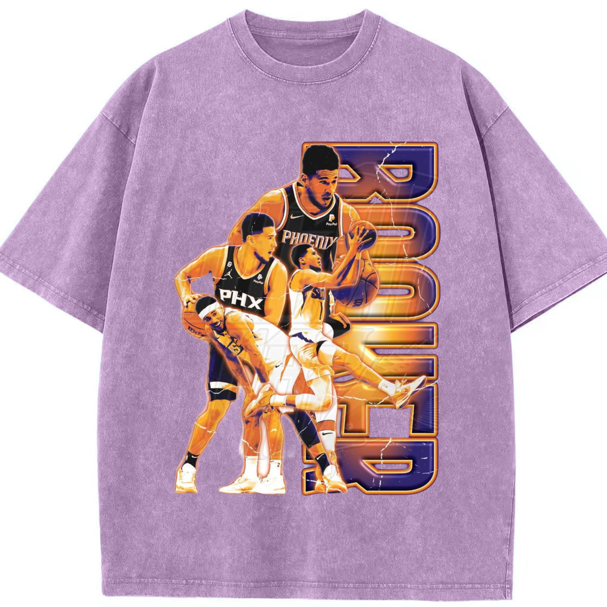 Devin Booker suns #1 Collage graphic T‑Shirt - Washed Vintage Look 230g Cotton Oversized T-Shirt With Front Heat Transfer Print – Soft, Lightweight, Stylish Fit – Comfortable Casual Wear For Sports & Everyday Use