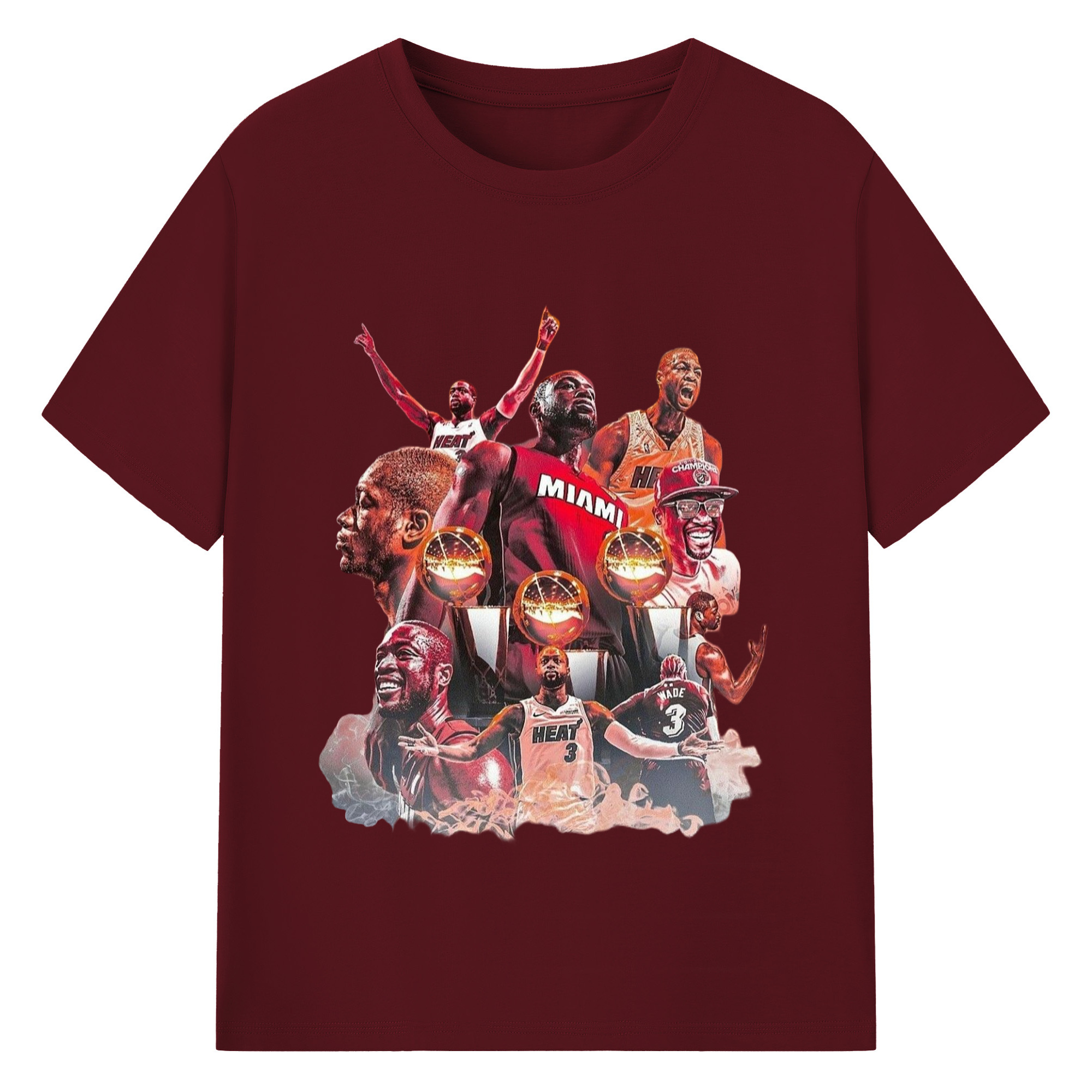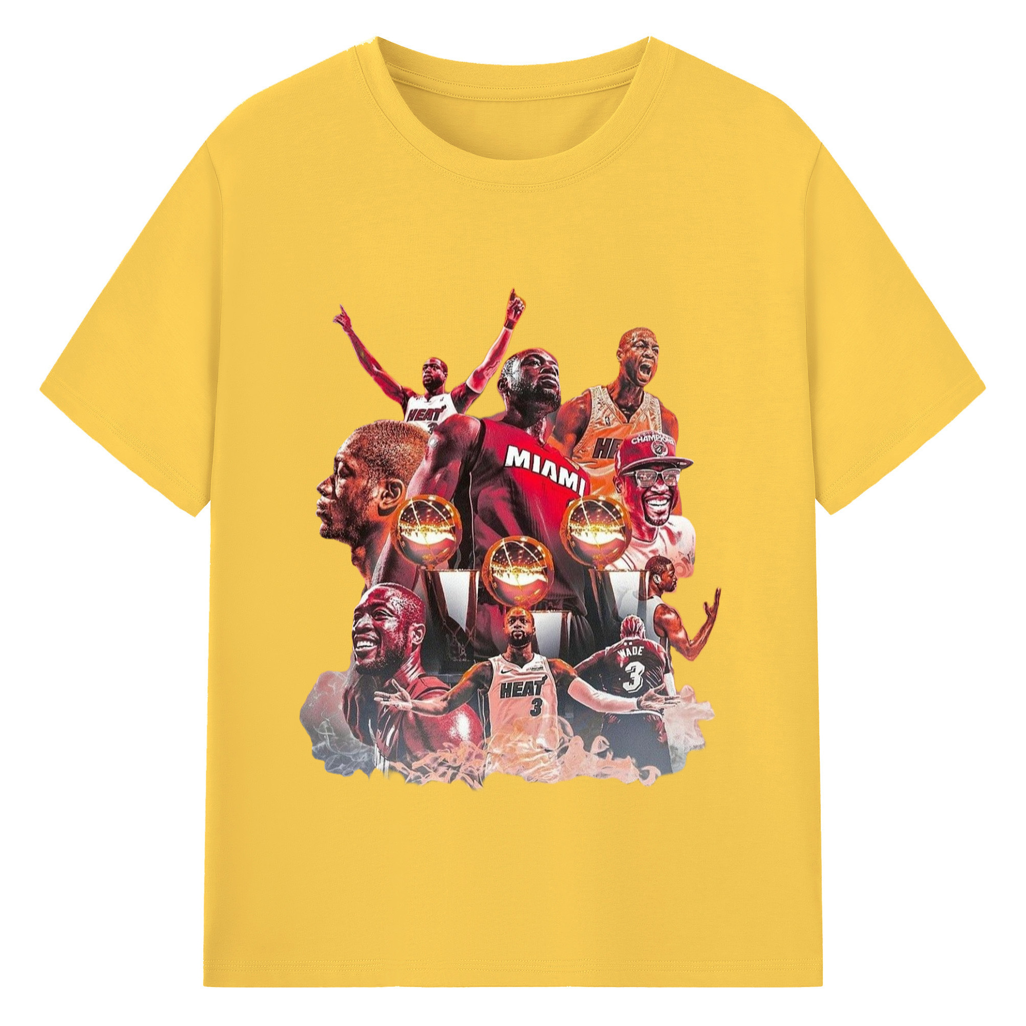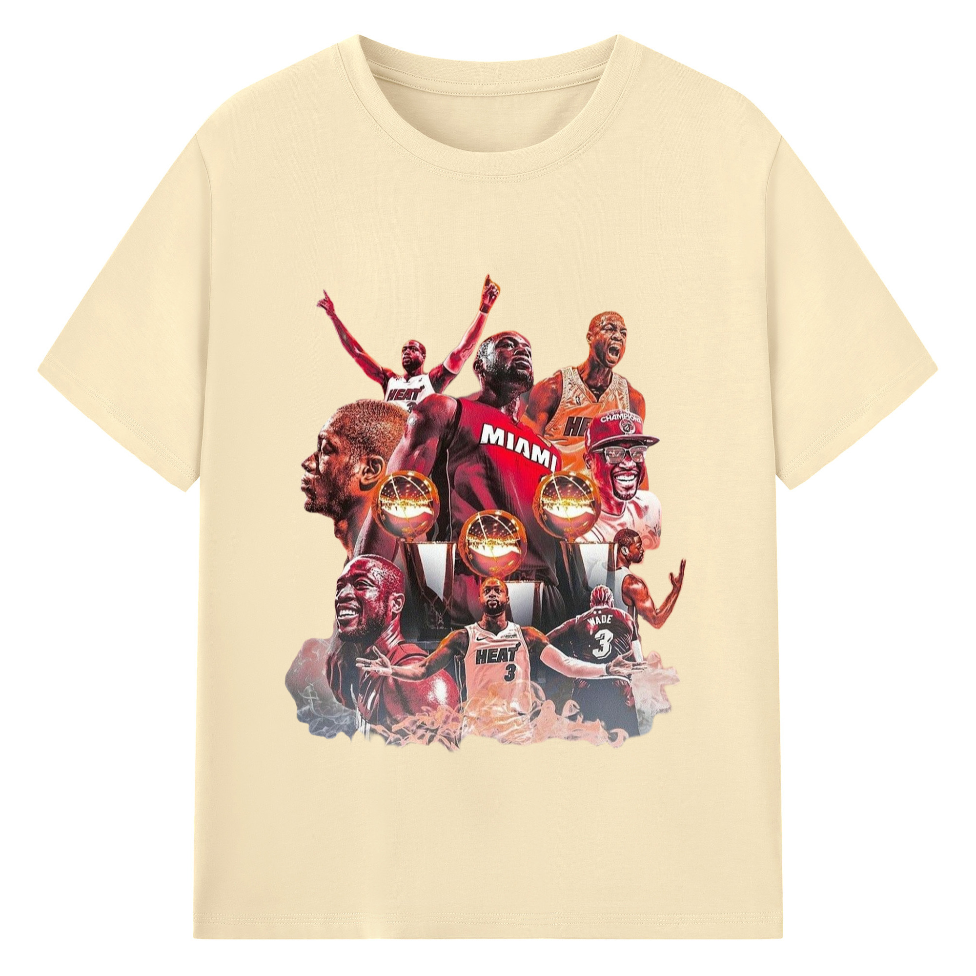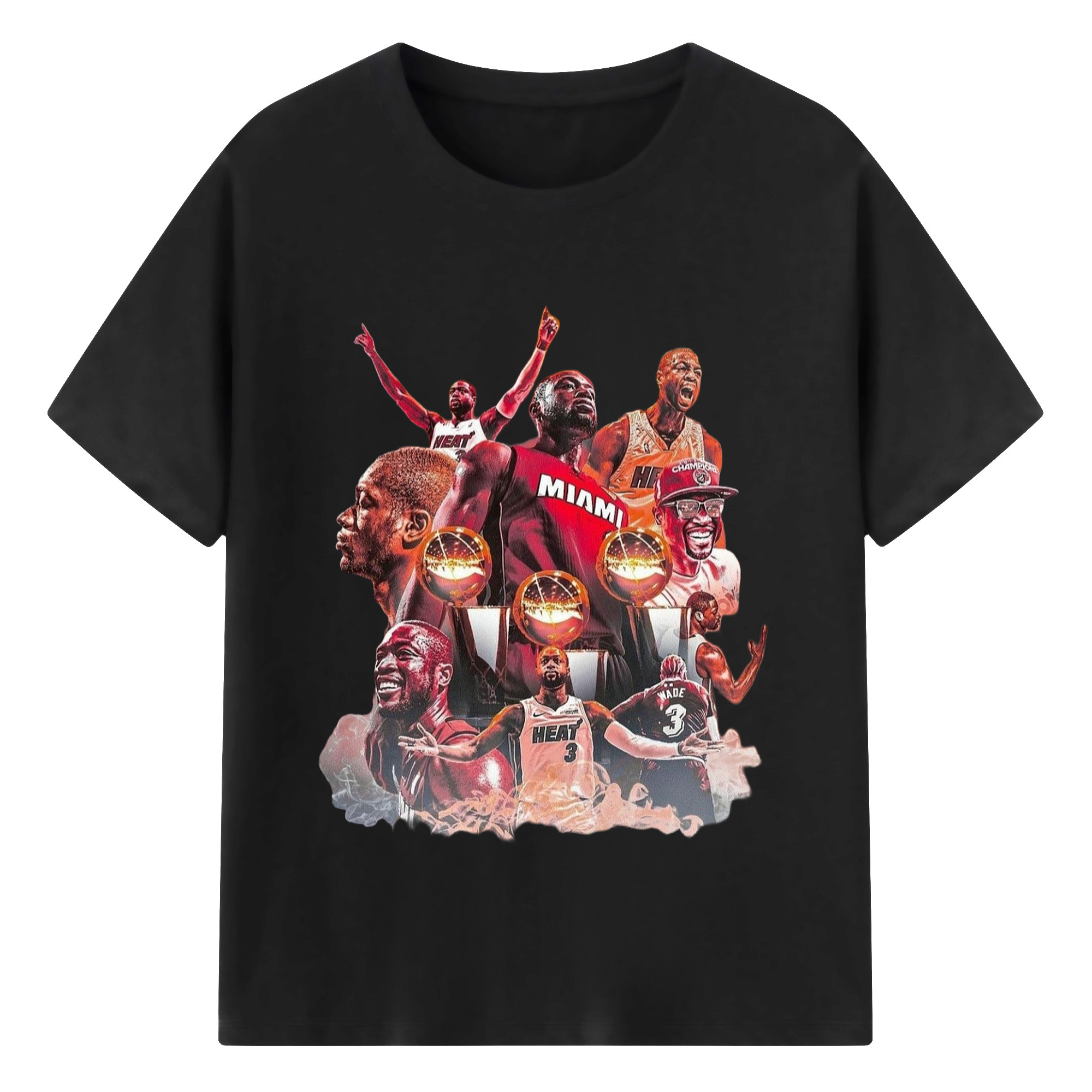 Dwyane wade miami heat Three NBA championships vintage T-shirt​ - 180g Cotton T-Shirt With Front Heat Transfer Print – Soft, Lightweight, Fitted Design – Comfortable Casual Wear For Sports & Everyday Use