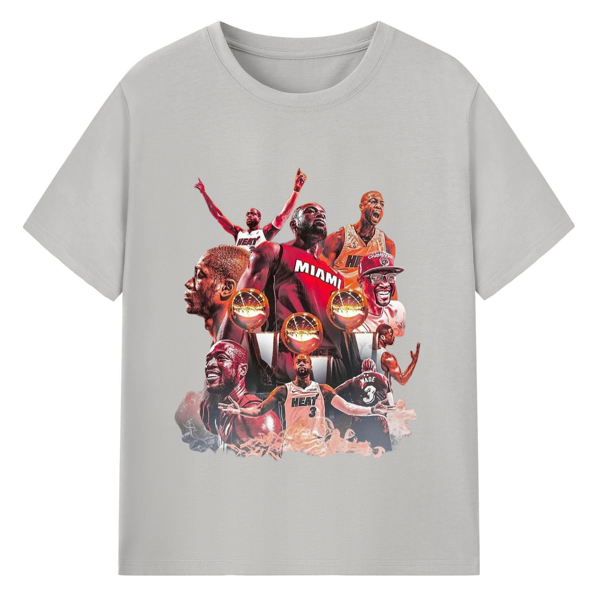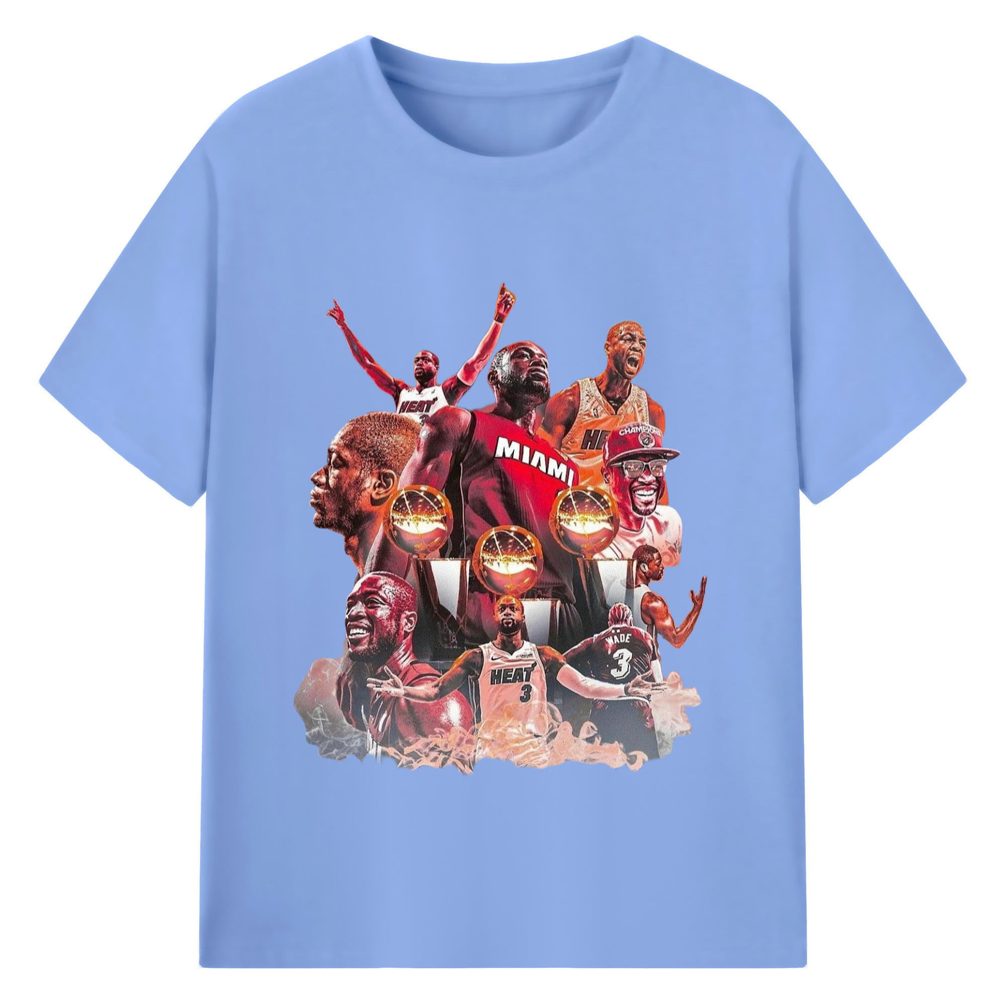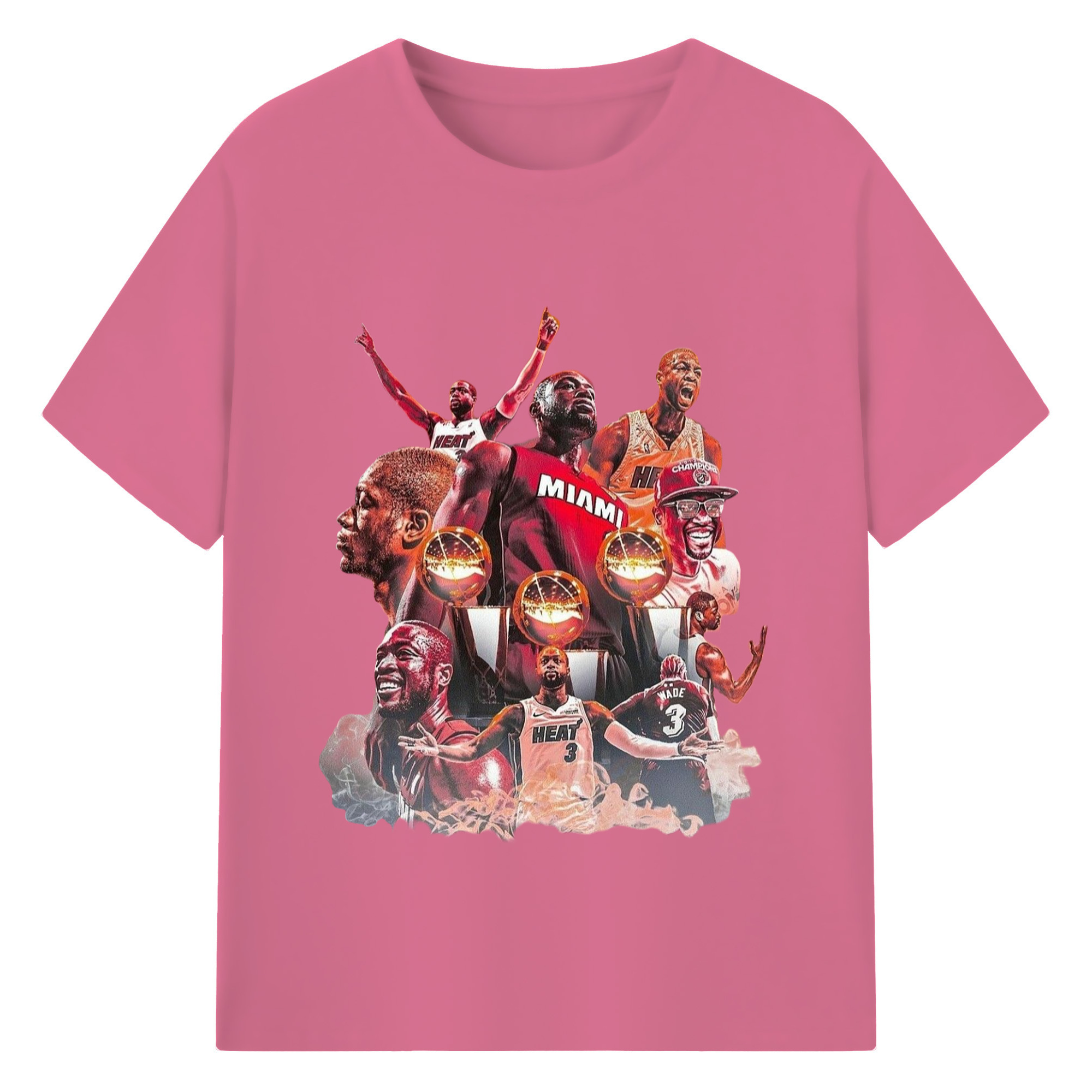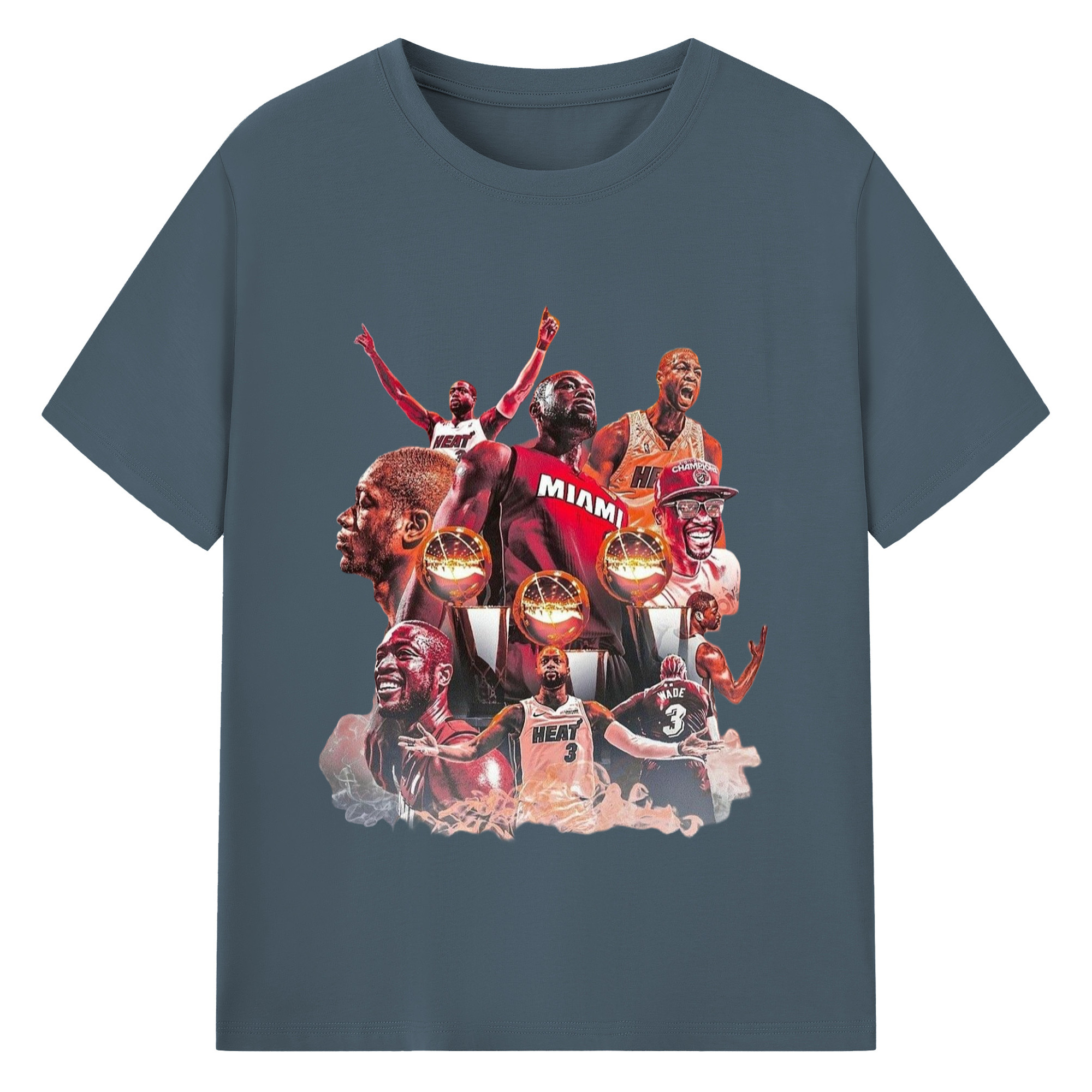 Dwyane wade miami heat Three NBA championships vintage T-shirt​ - 180g Cotton T-Shirt With Front Heat Transfer Print – Soft, Lightweight, Fitted Design – Comfortable Casual Wear For Sports & Everyday Use