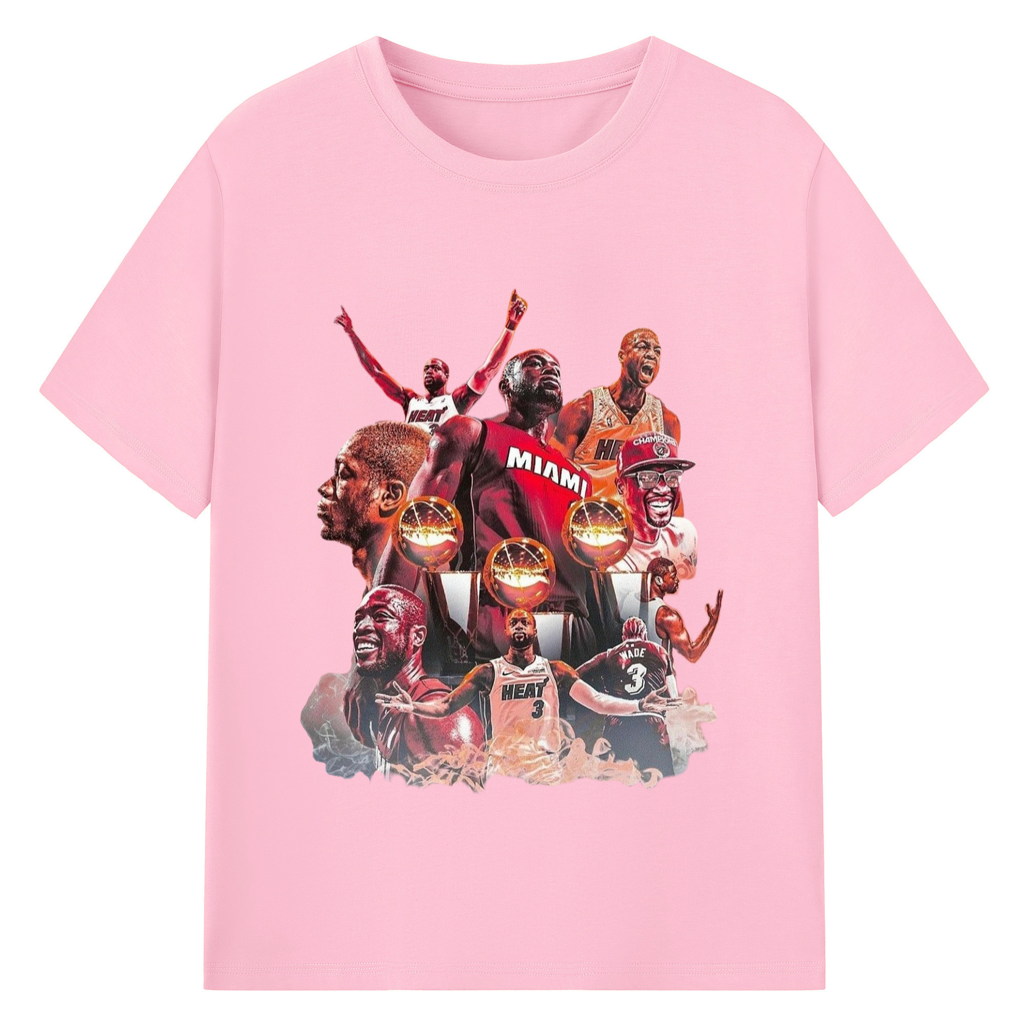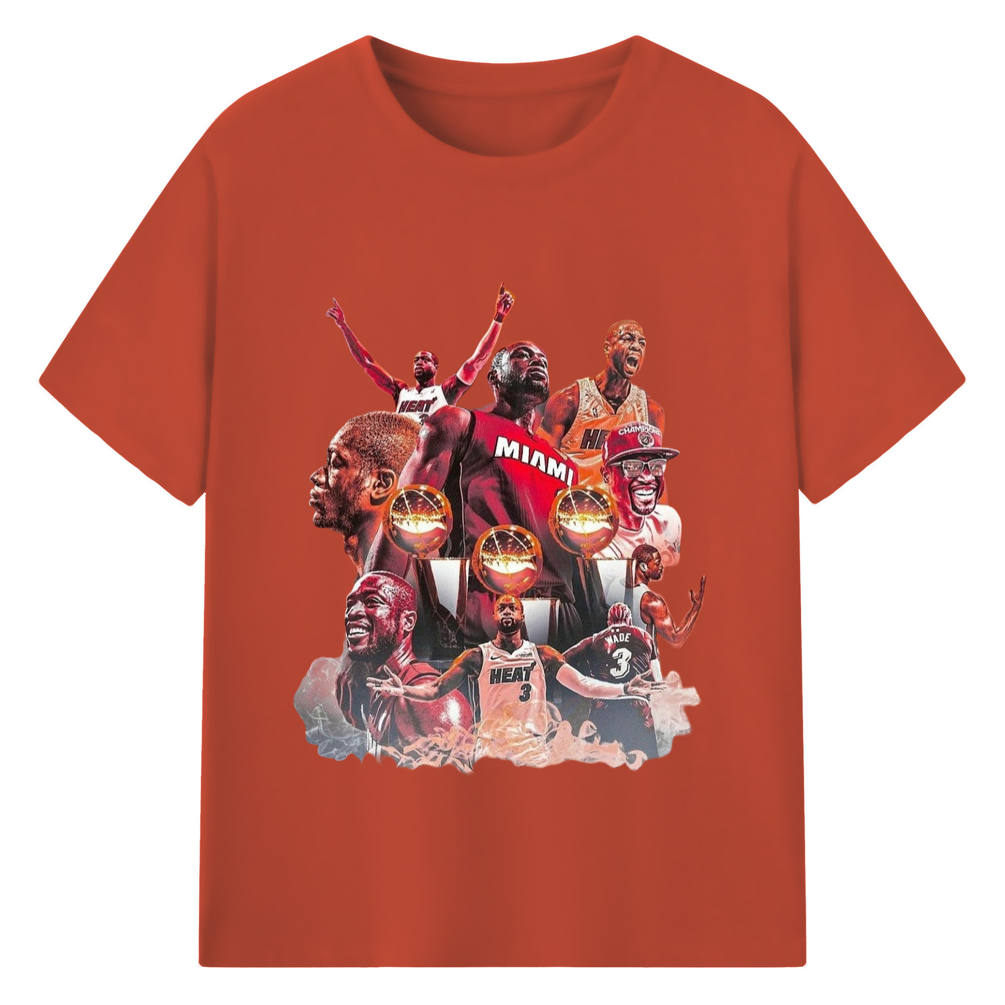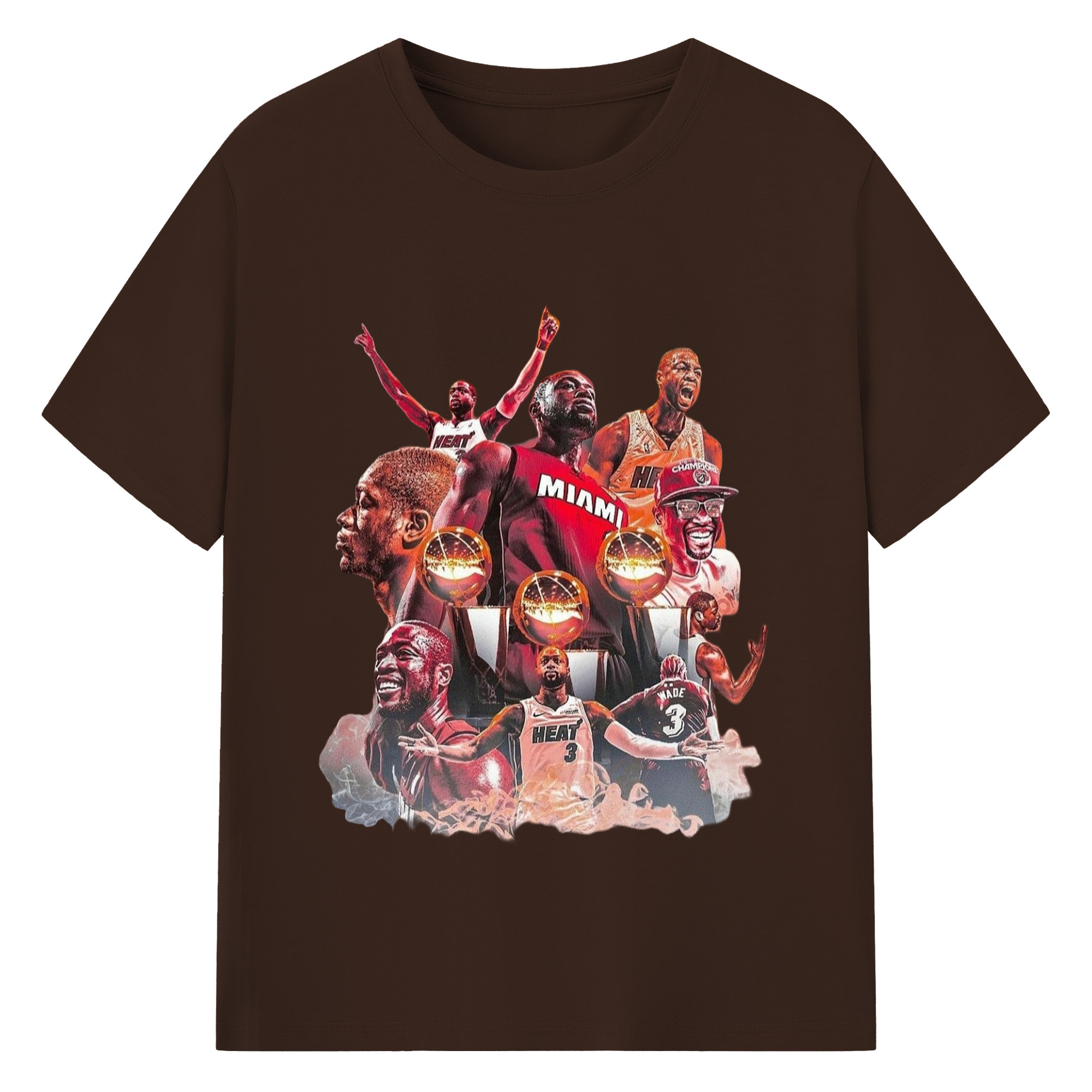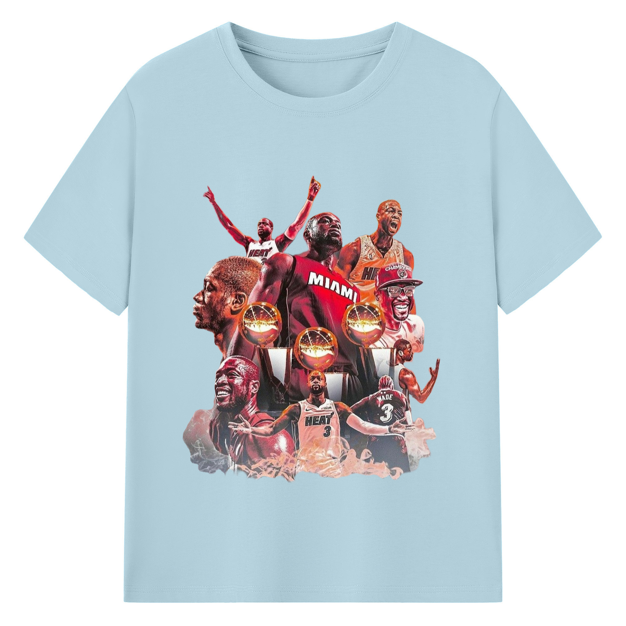 Dwyane wade miami heat Three NBA championships vintage T-shirt​ - 180g Cotton T-Shirt With Front Heat Transfer Print – Soft, Lightweight, Fitted Design – Comfortable Casual Wear For Sports & Everyday Use
