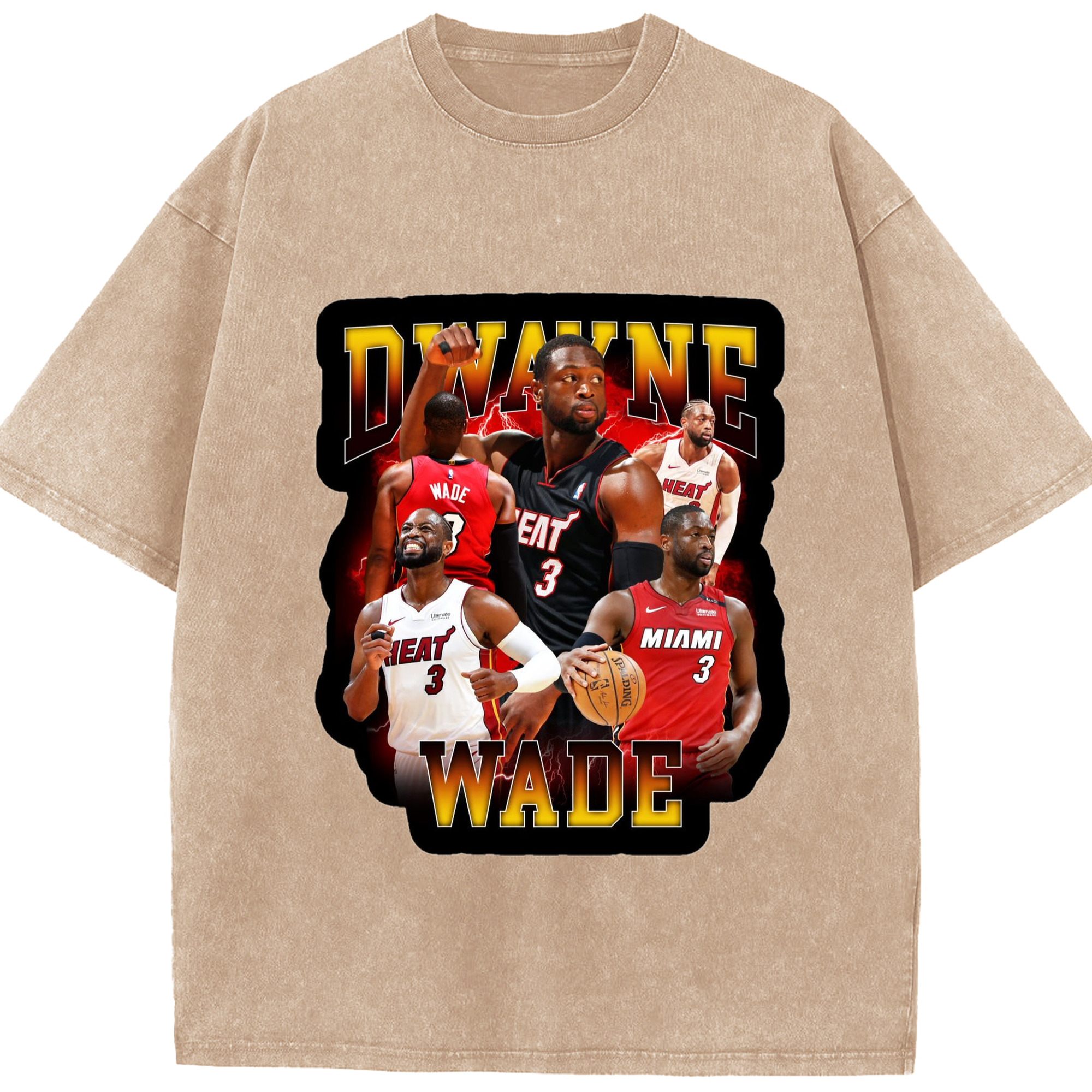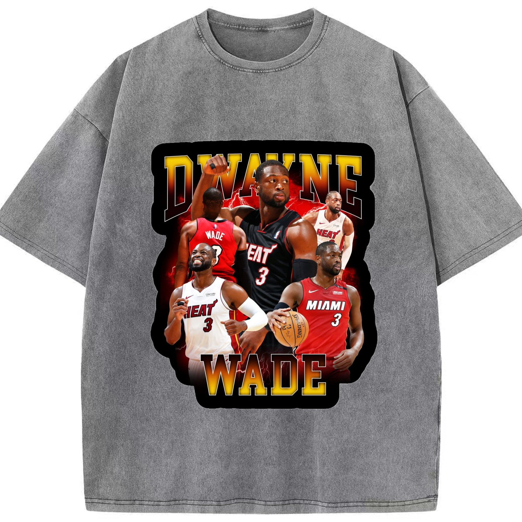 Dwyane wade vintage T-shirt​ - Washed Vintage Look 230g Cotton Oversized T-Shirt With Front Heat Transfer Print – Soft, Lightweight, Stylish Fit – Comfortable Casual Wear For Sports & Everyday Use