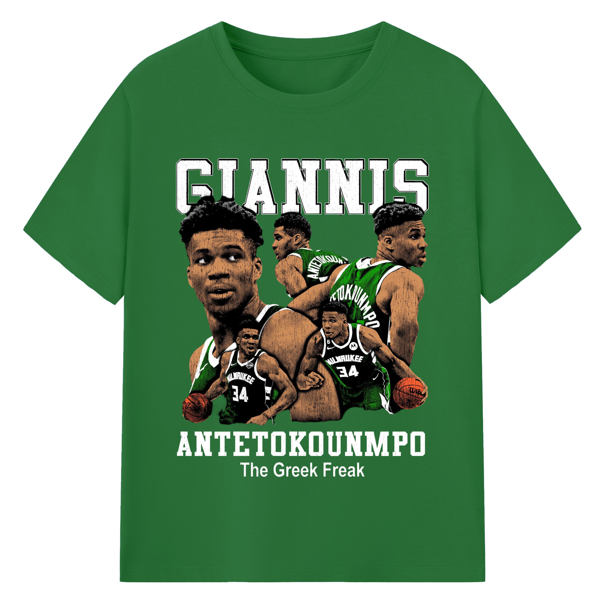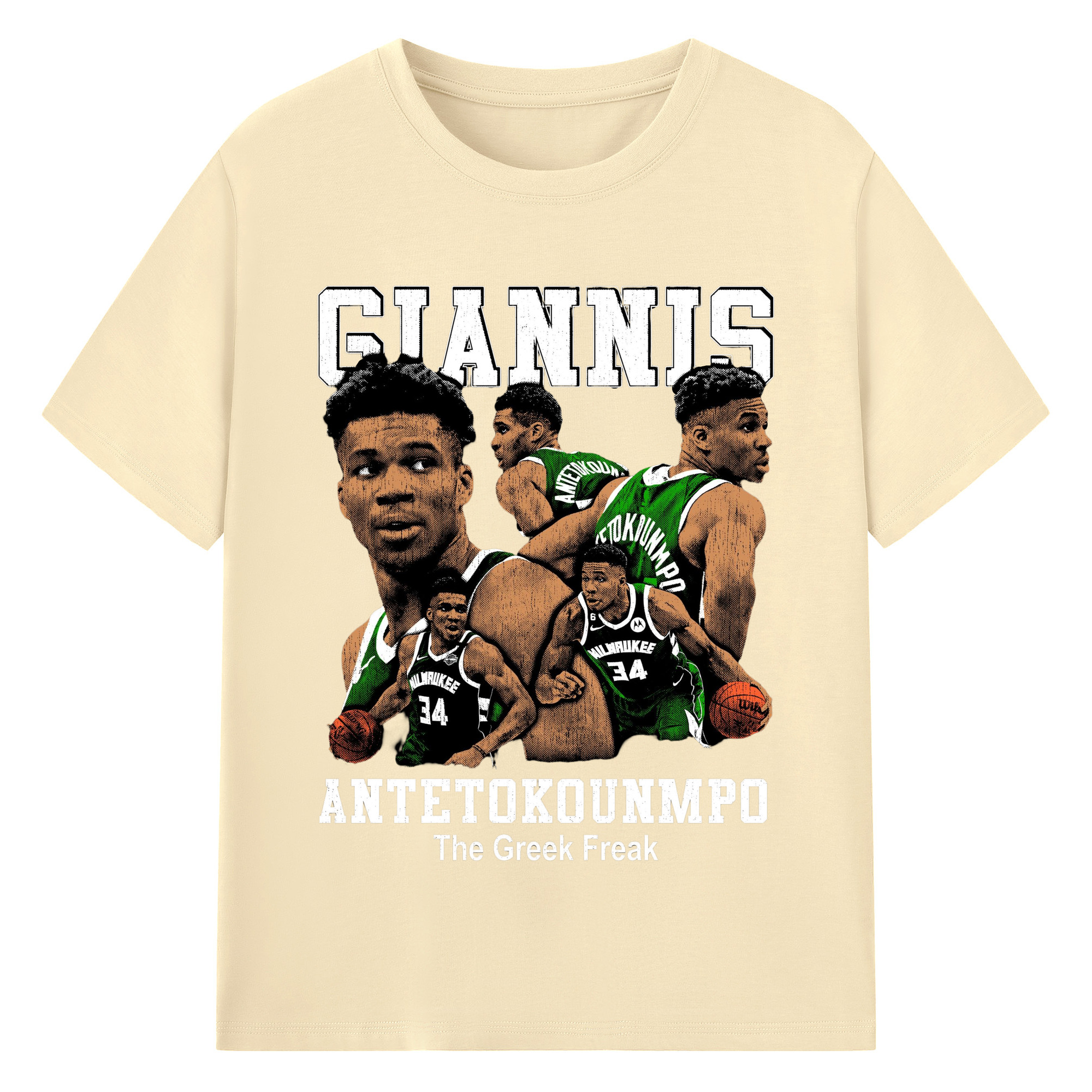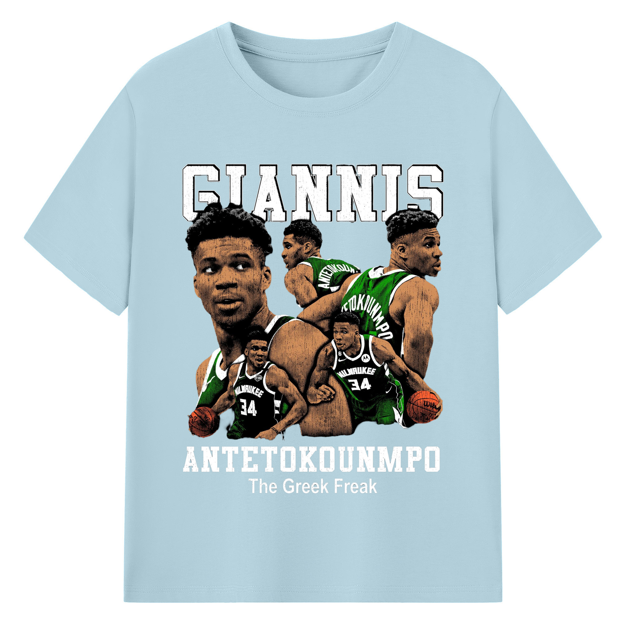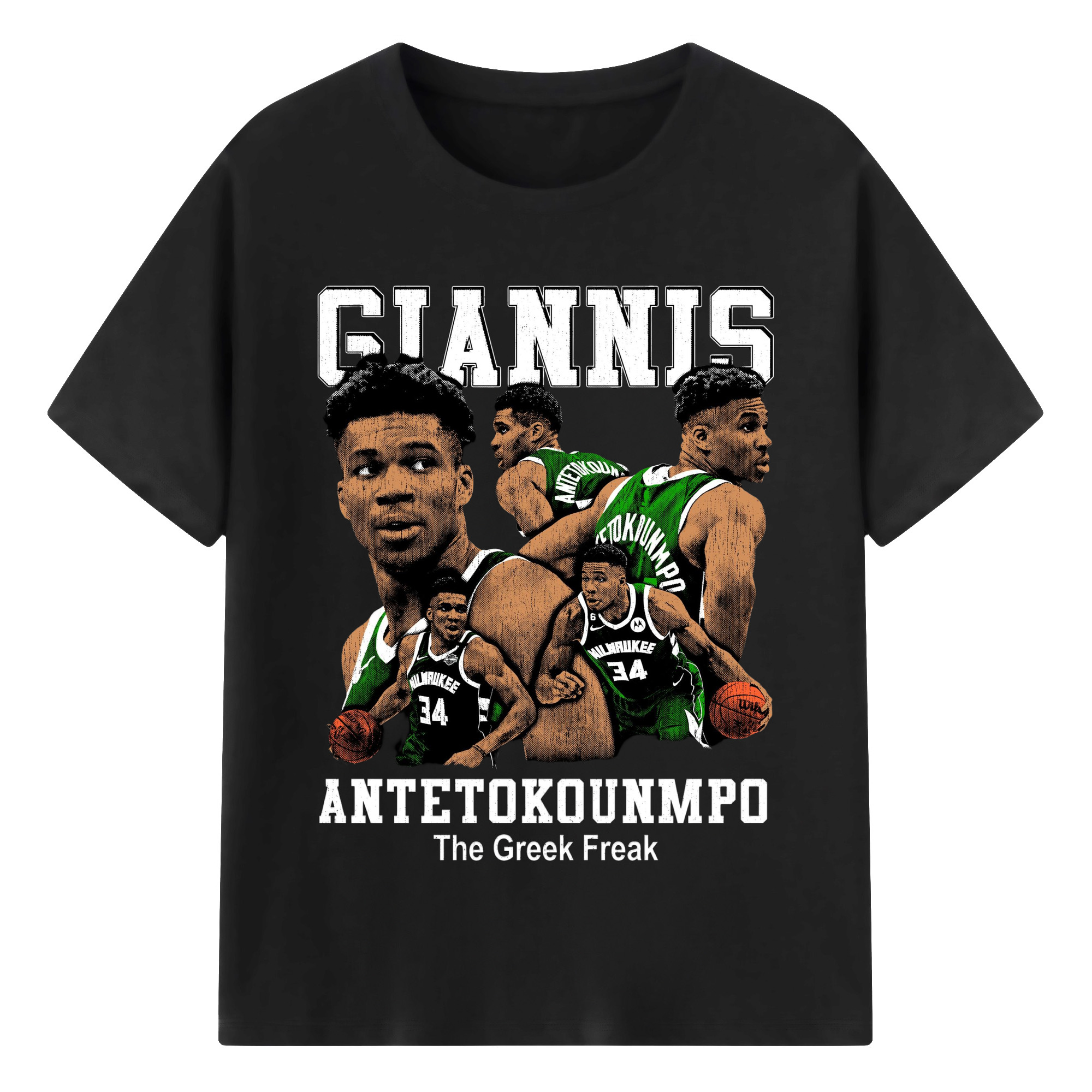 Giannis Antetokounmpo #34 collage T-shirt - 180g Cotton T-Shirt With Front Heat Transfer Print – Soft, Lightweight, Fitted Design – Comfortable Casual Wear For Sports & Everyday Use