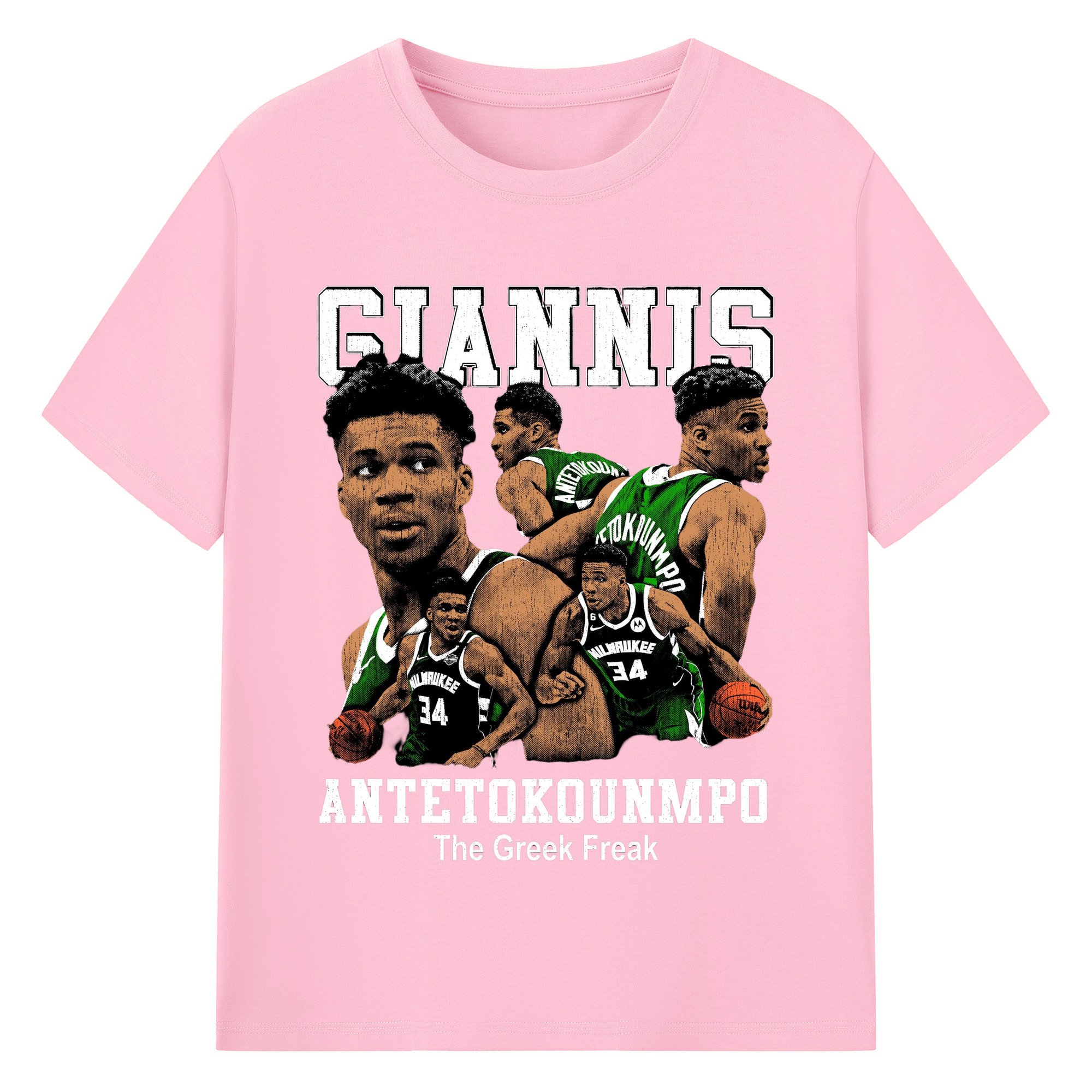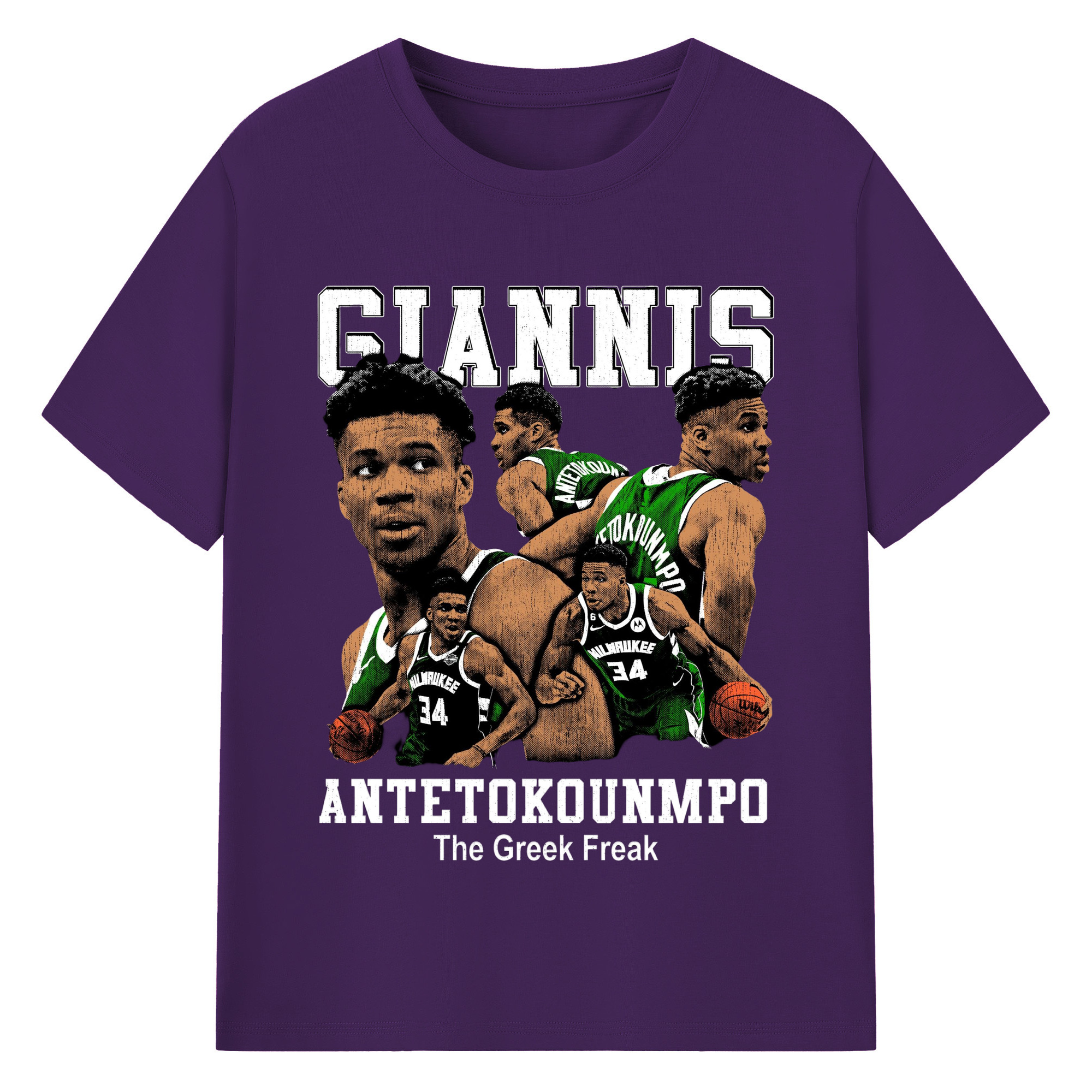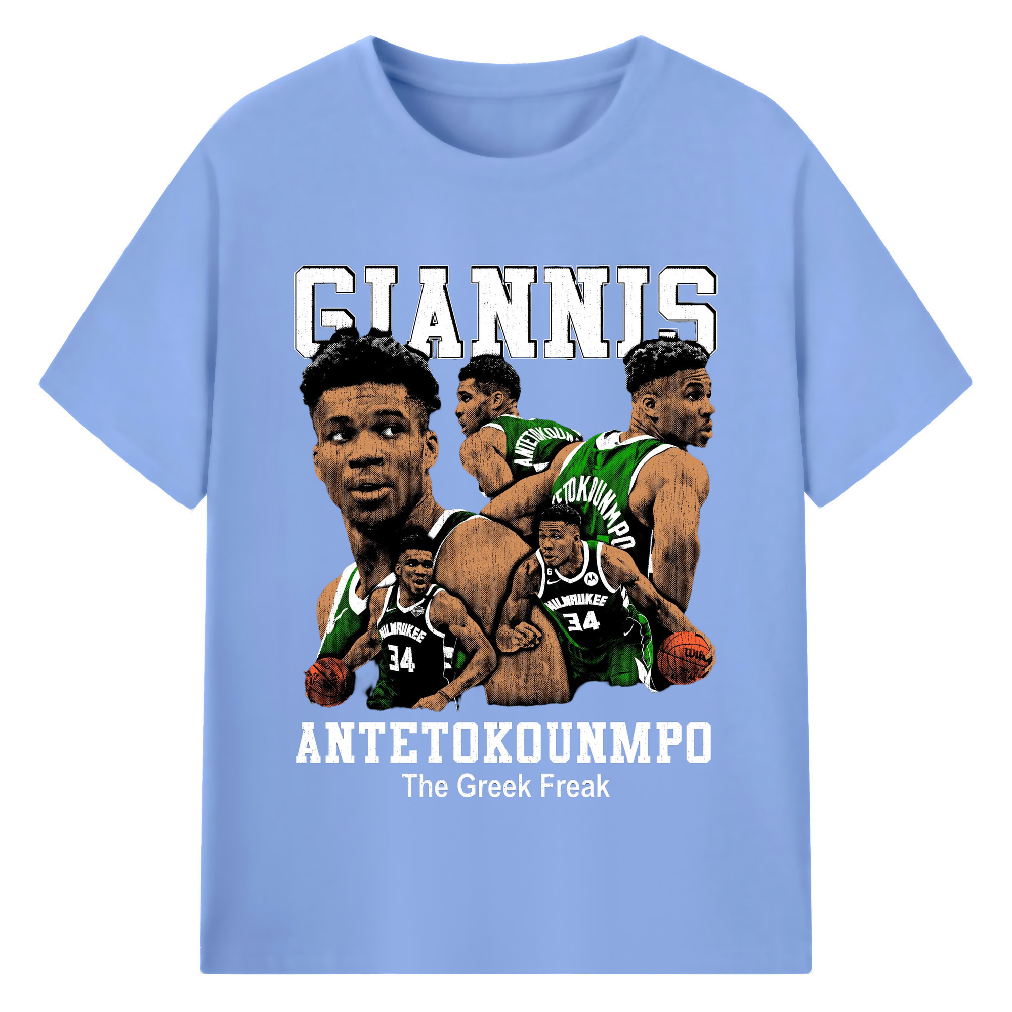 Giannis Antetokounmpo #34 collage T-shirt - 180g Cotton T-Shirt With Front Heat Transfer Print – Soft, Lightweight, Fitted Design – Comfortable Casual Wear For Sports & Everyday Use