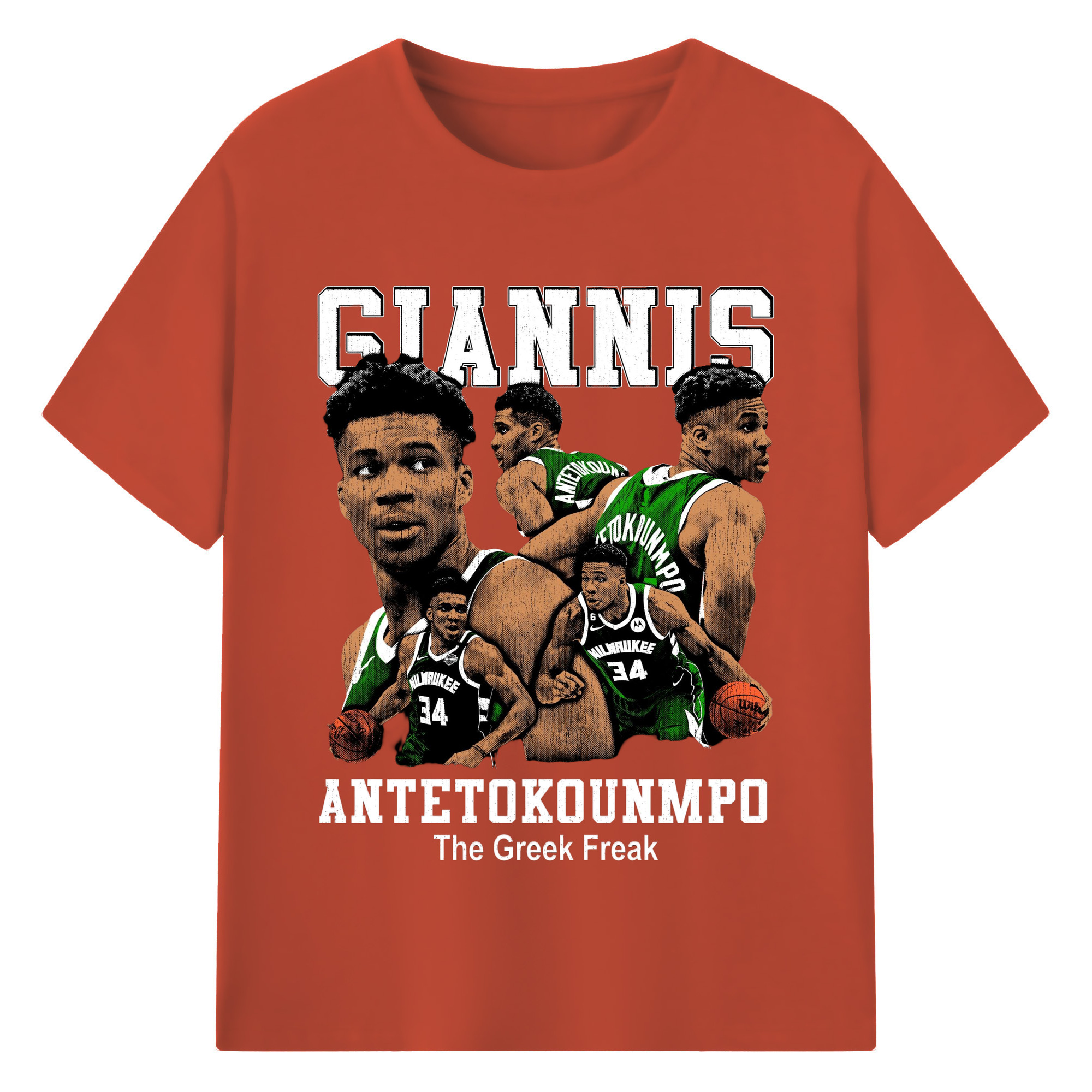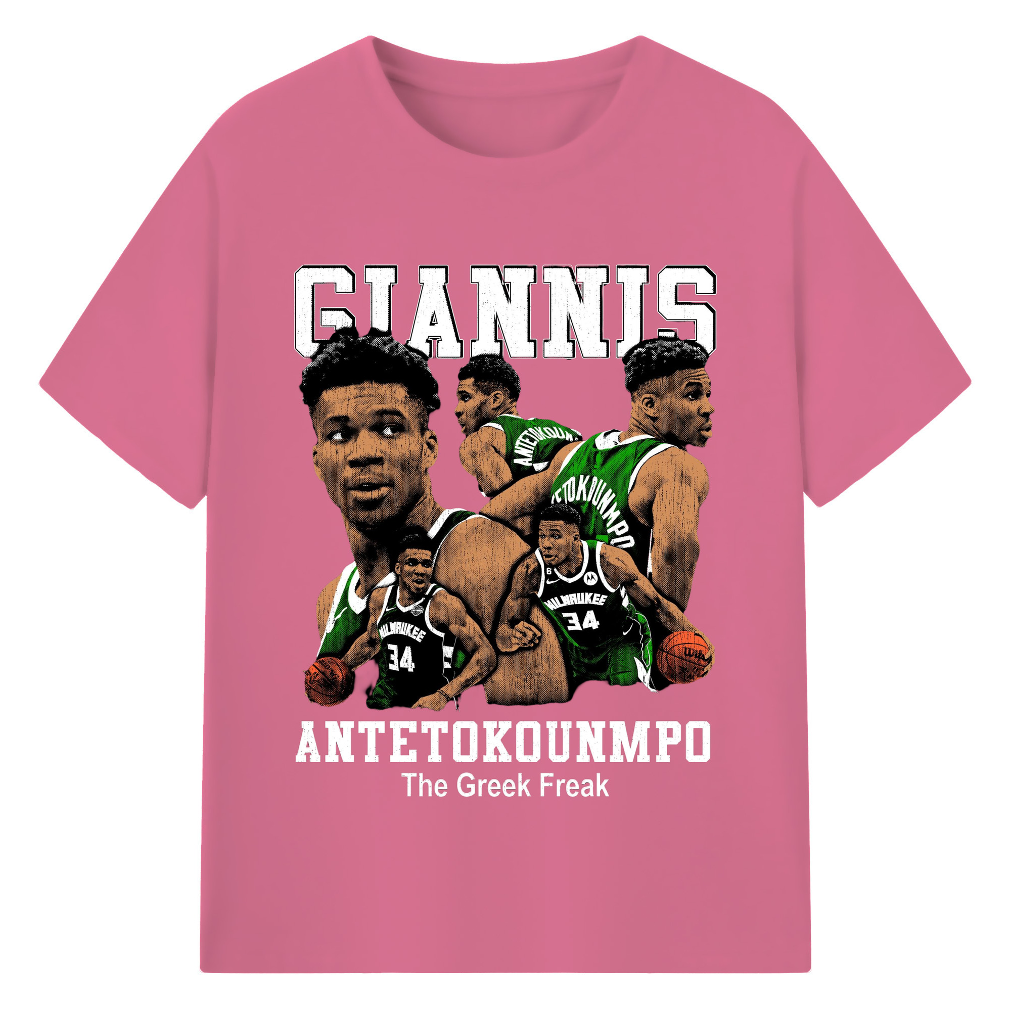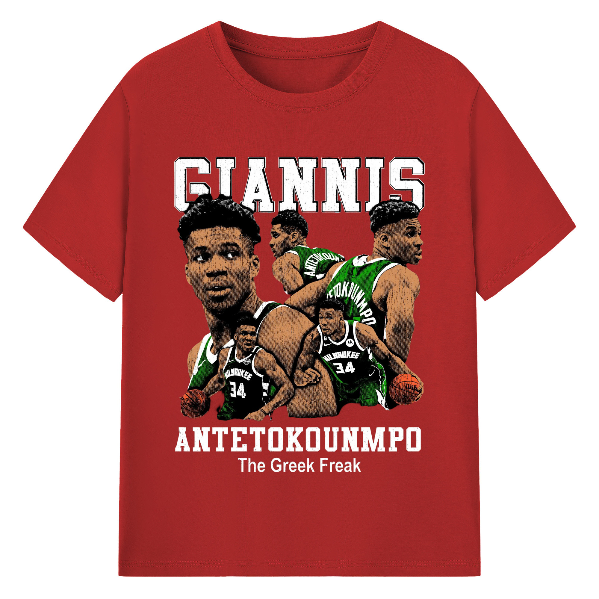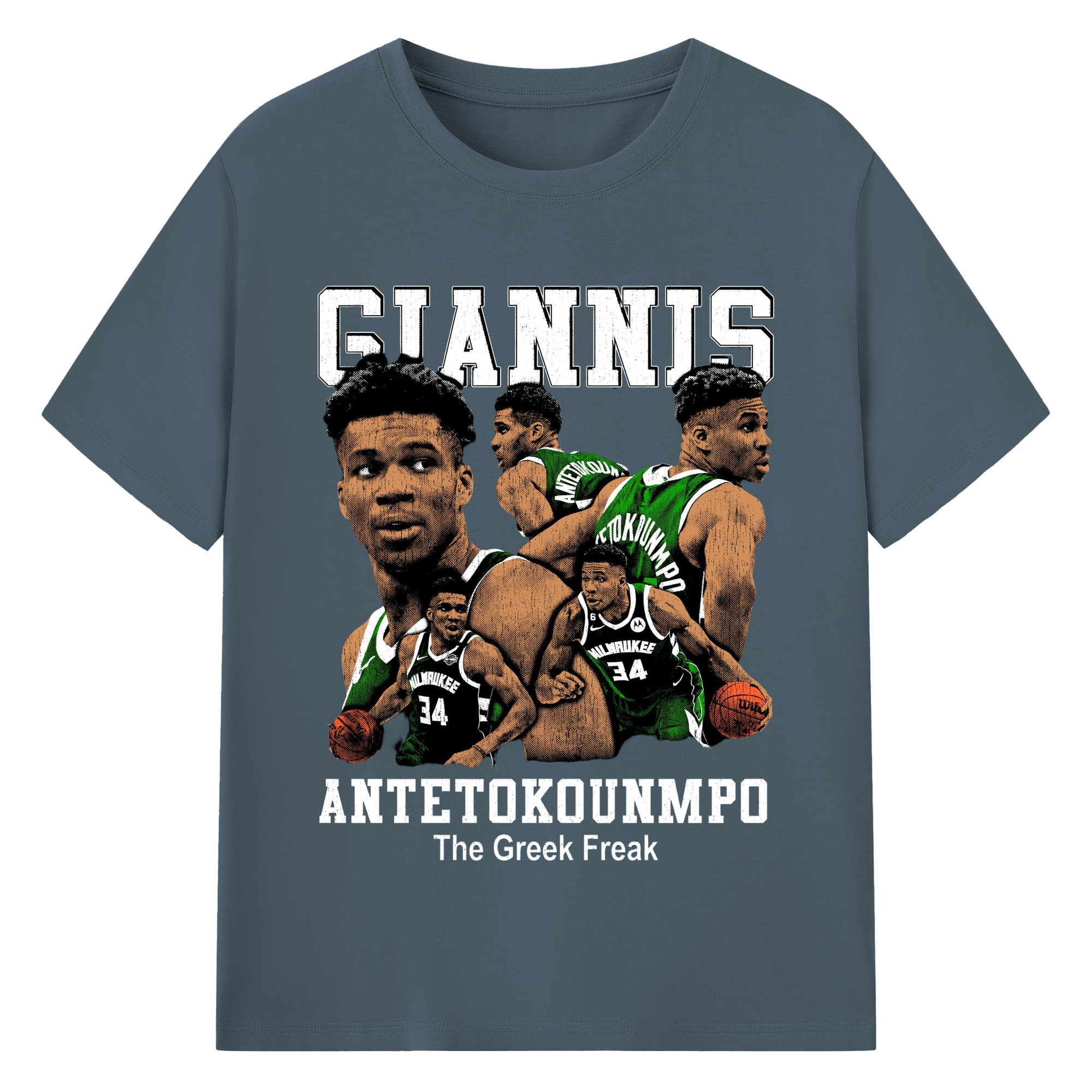 Giannis Antetokounmpo #34 collage T-shirt - 180g Cotton T-Shirt With Front Heat Transfer Print – Soft, Lightweight, Fitted Design – Comfortable Casual Wear For Sports & Everyday Use