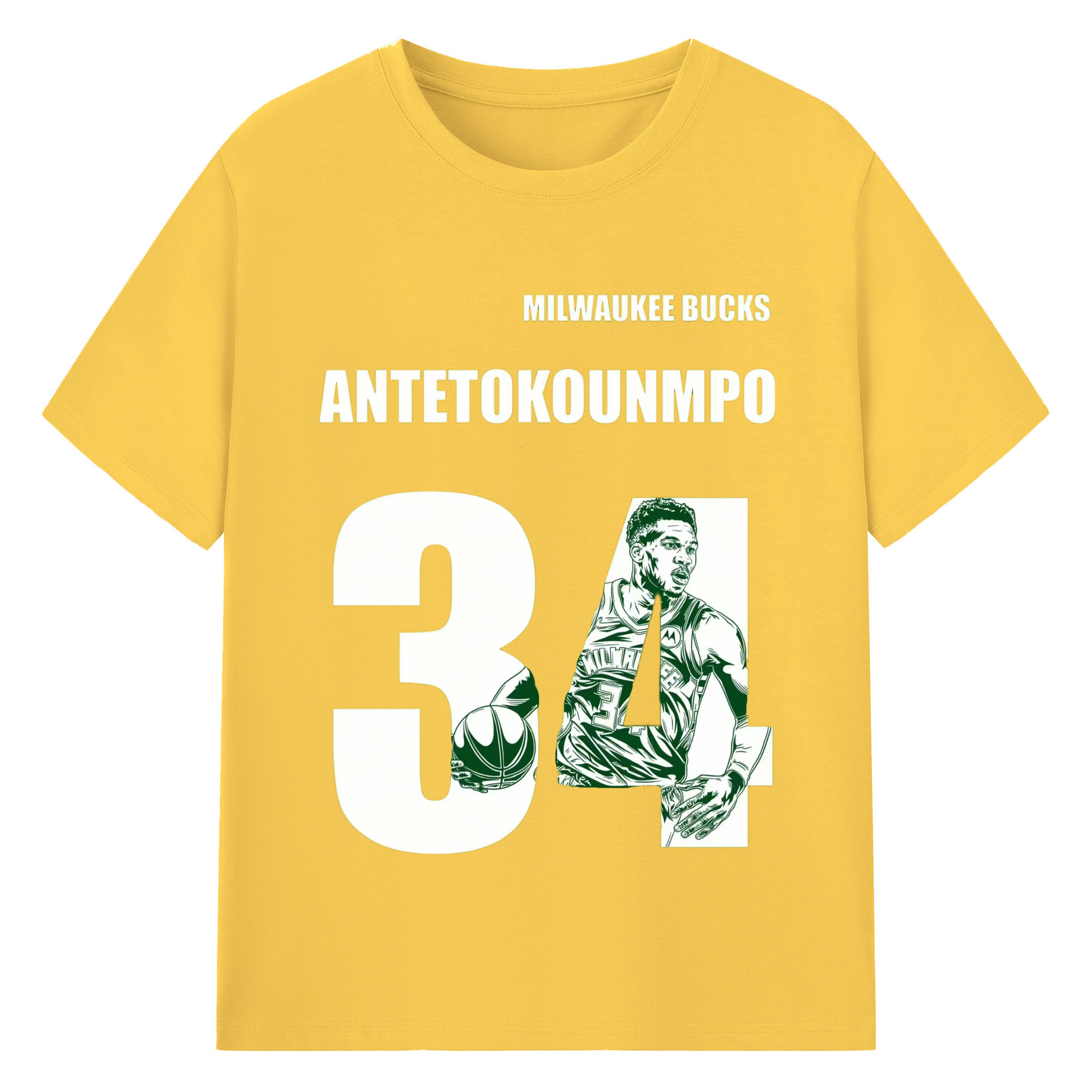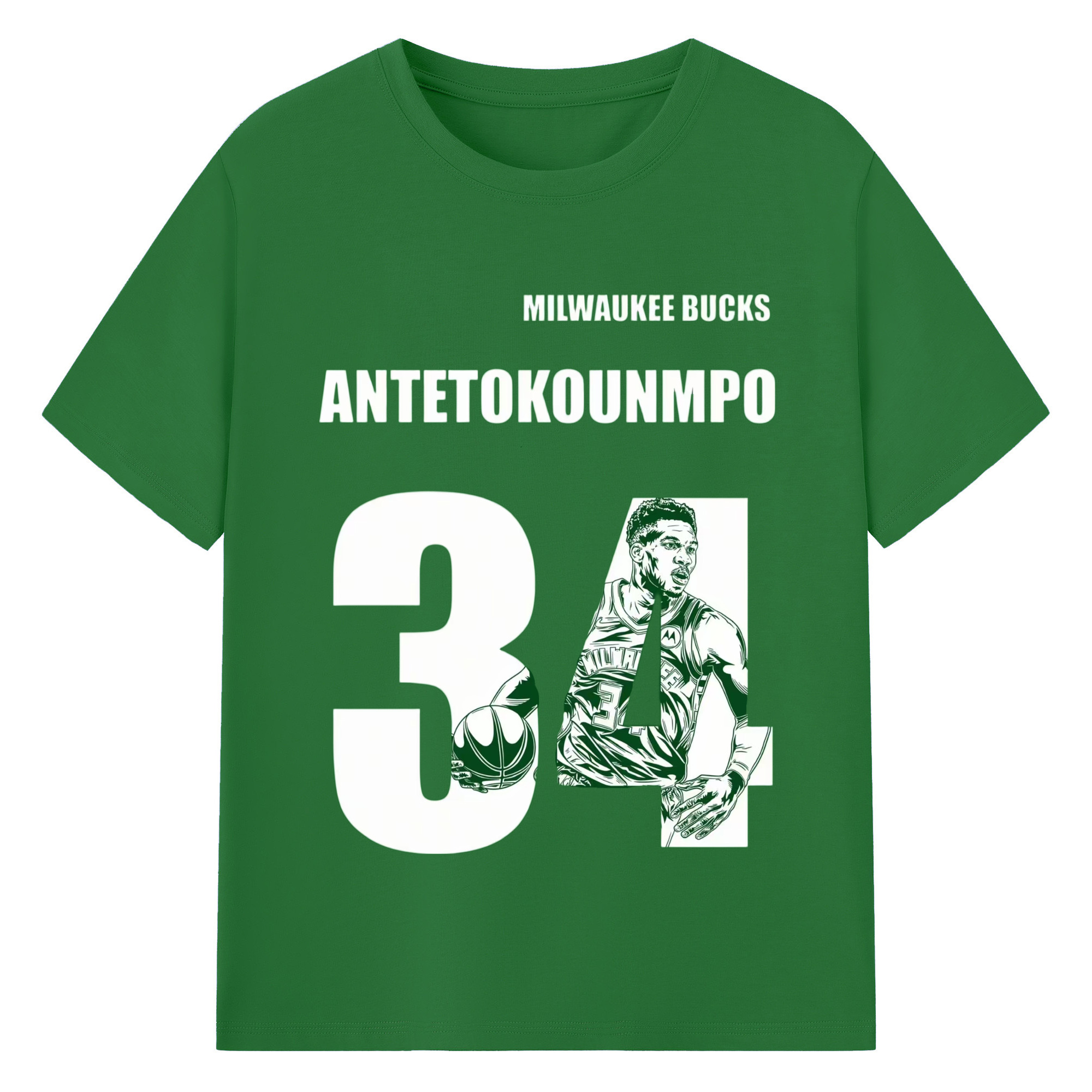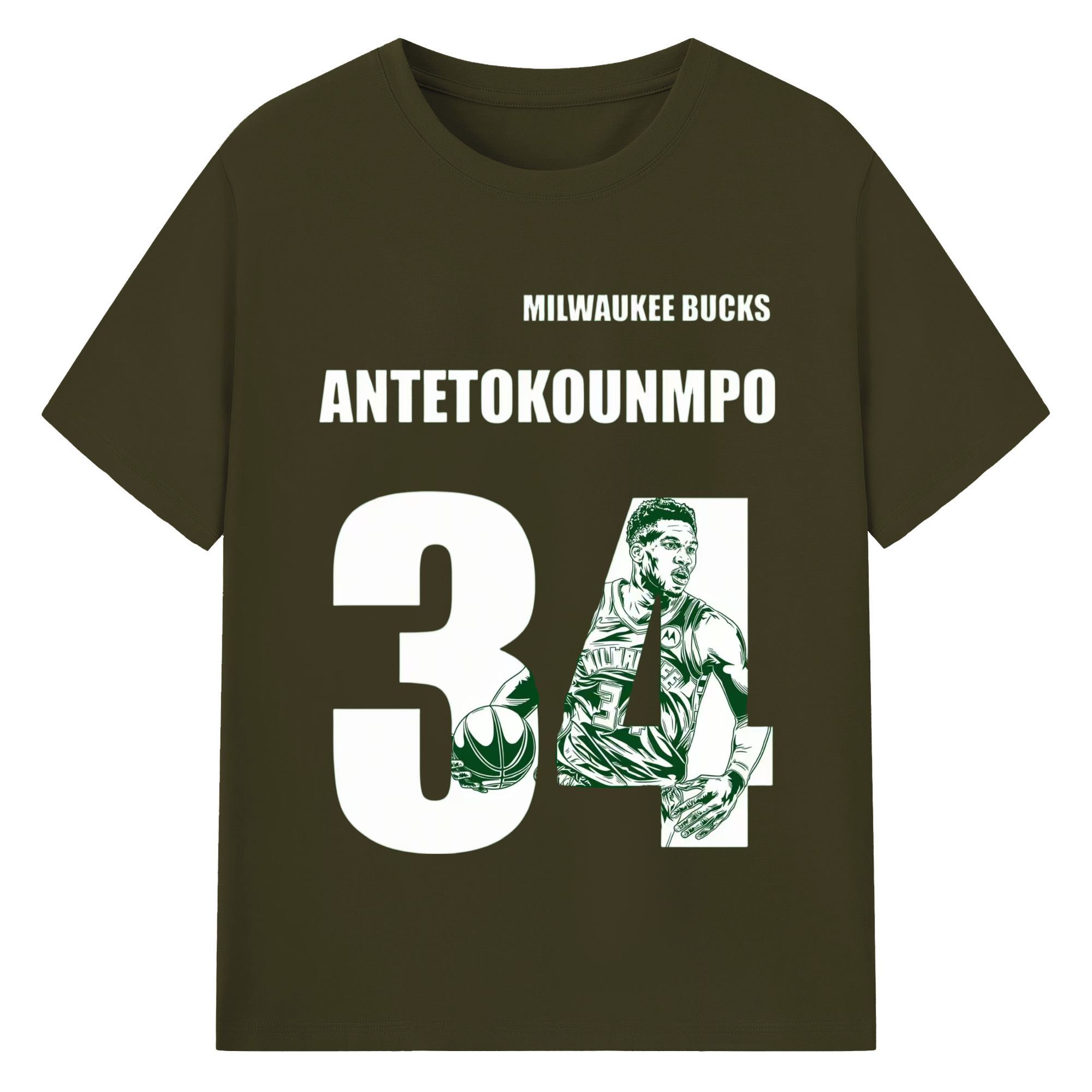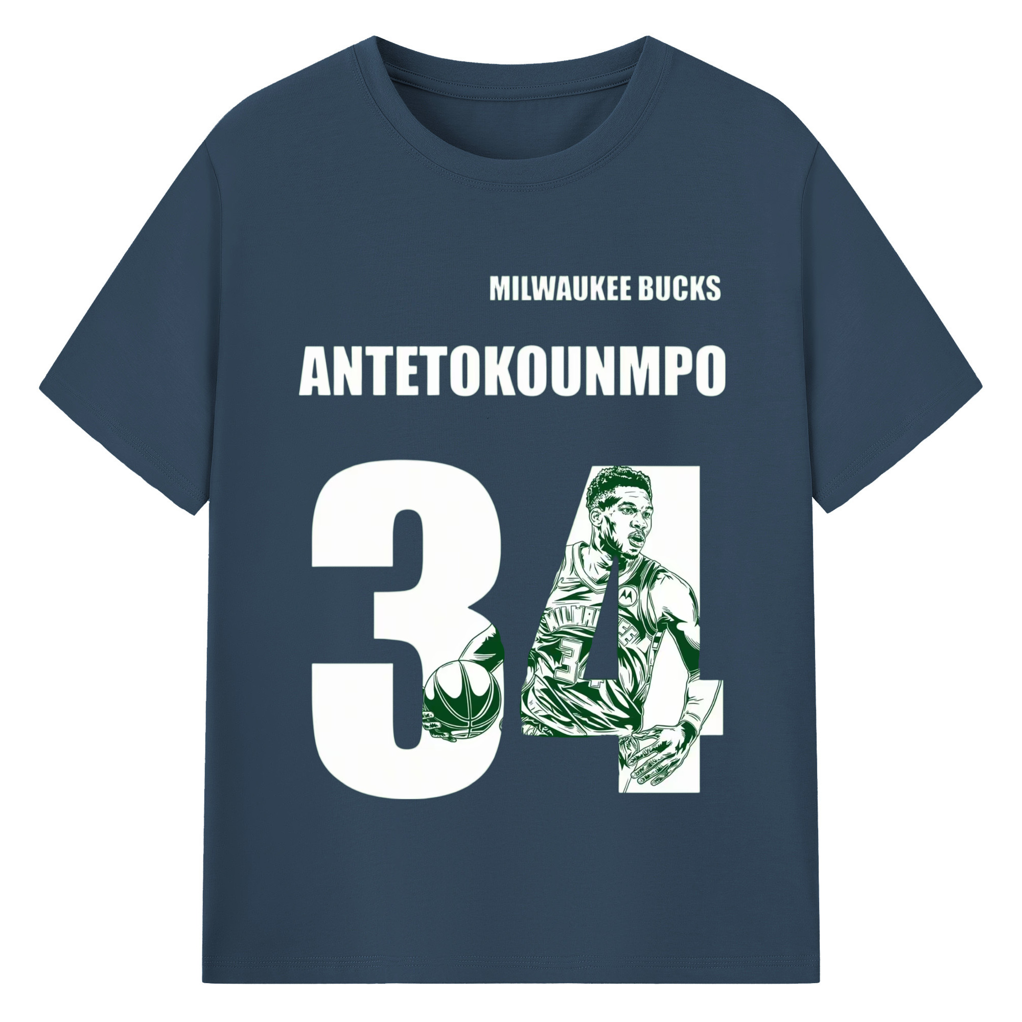 Giannis Antetokounmpo #34 Graphic T-shirt - 180g Cotton T-Shirt With Front Heat Transfer Print – Soft, Lightweight, Fitted Design – Comfortable Casual Wear For Sports & Everyday Use