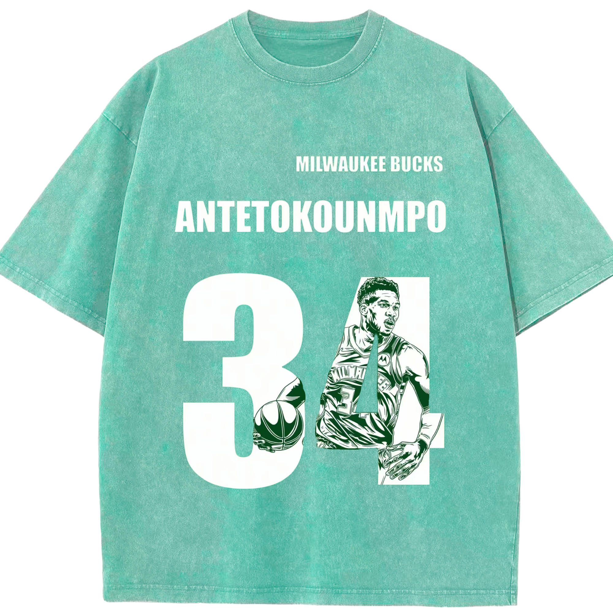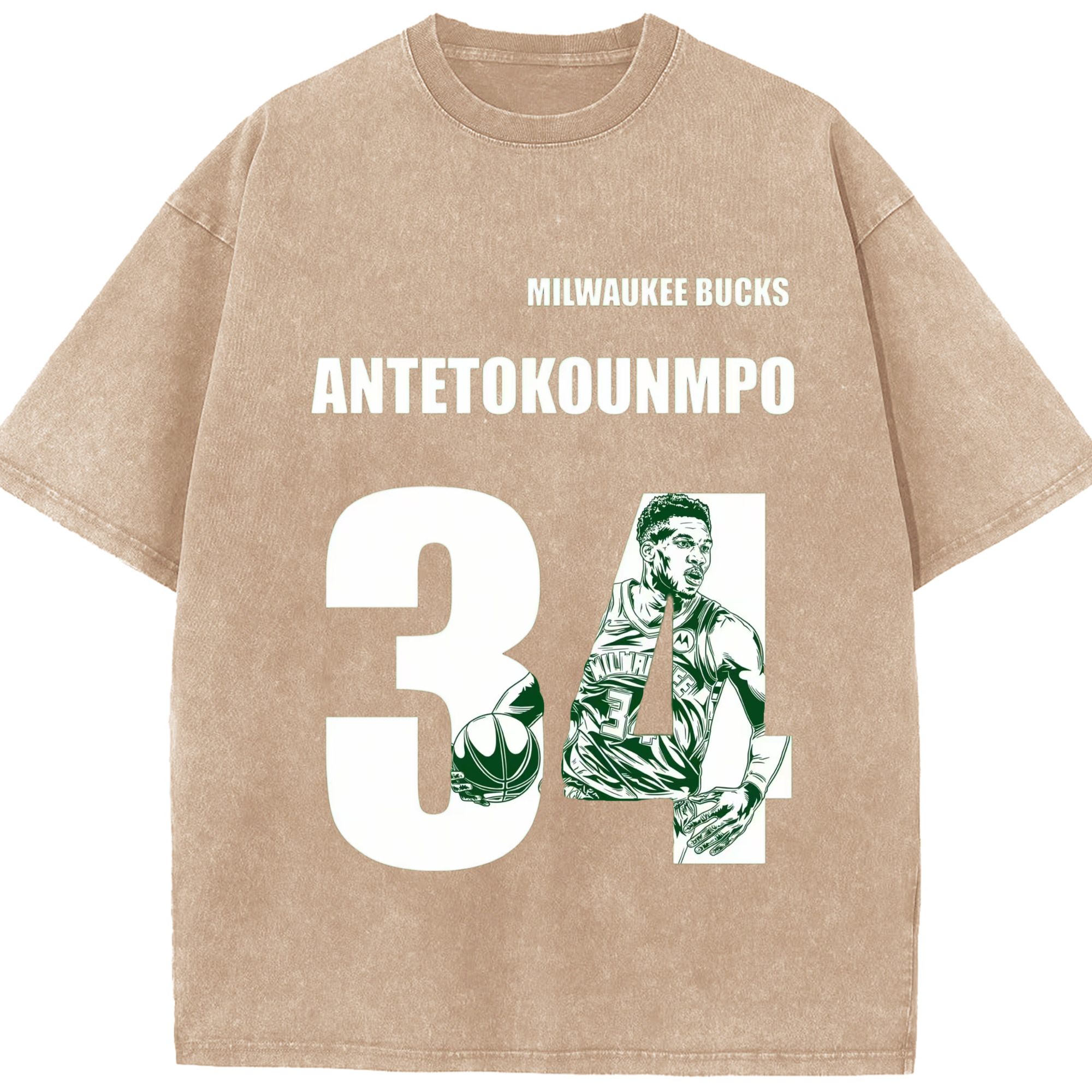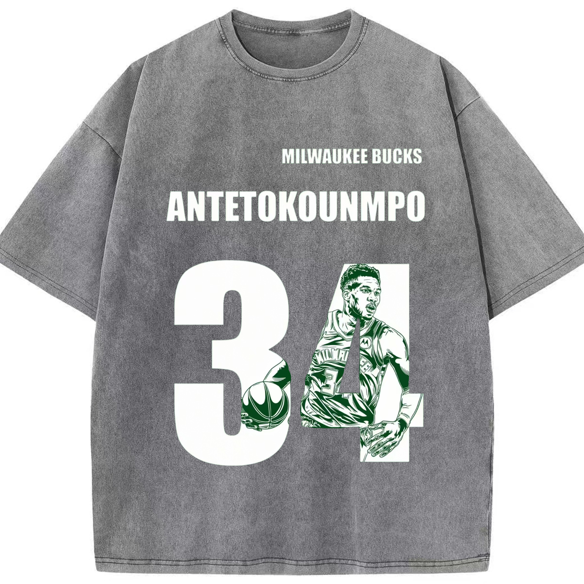Giannis Antetokounmpo #34 Graphic T-shirt - Washed Vintage Look 230g Cotton Oversized T-Shirt With Front Heat Transfer Print – Soft, Lightweight, Stylish Fit – Comfortable Casual Wear For Sports & Everyday Use