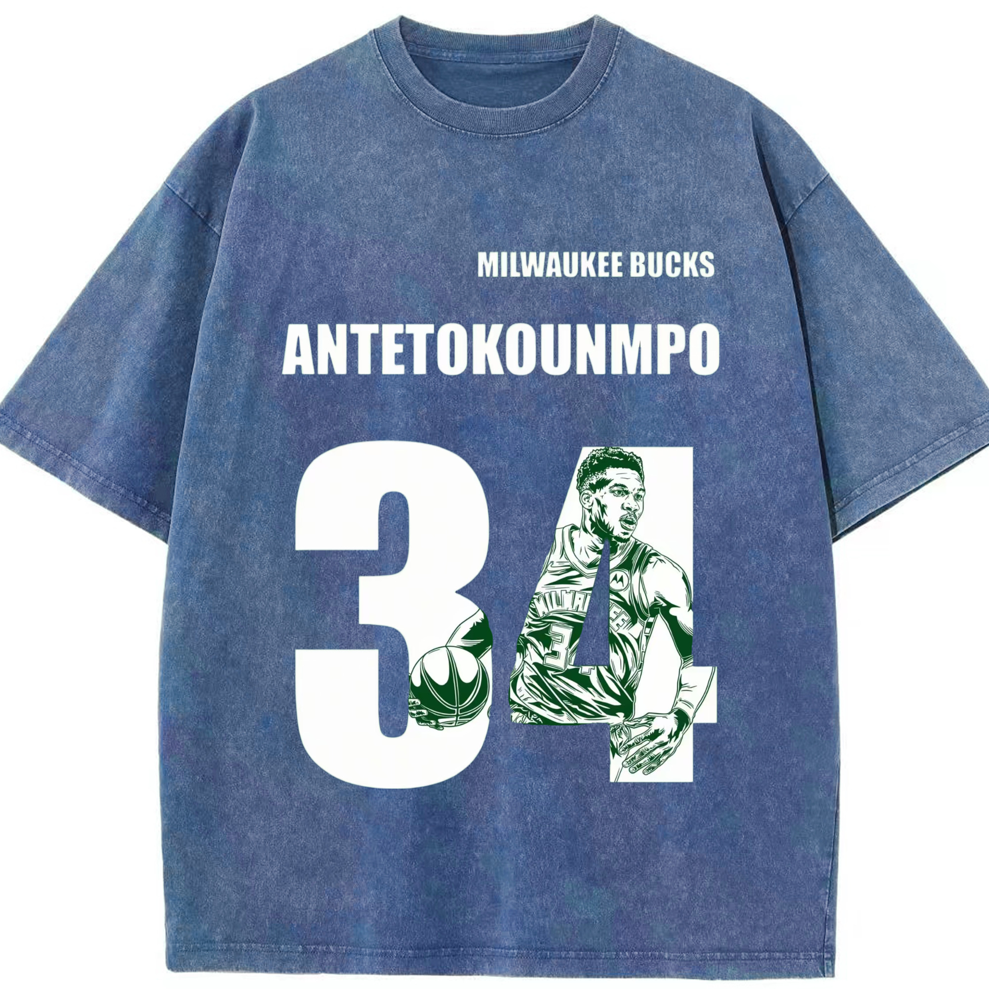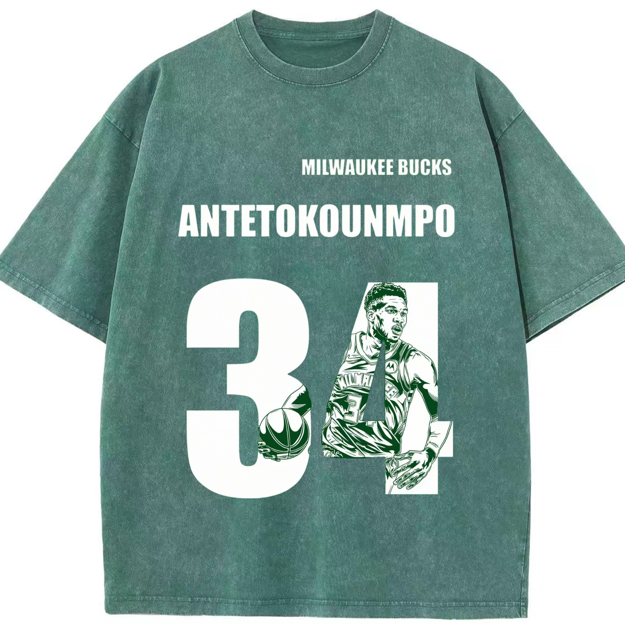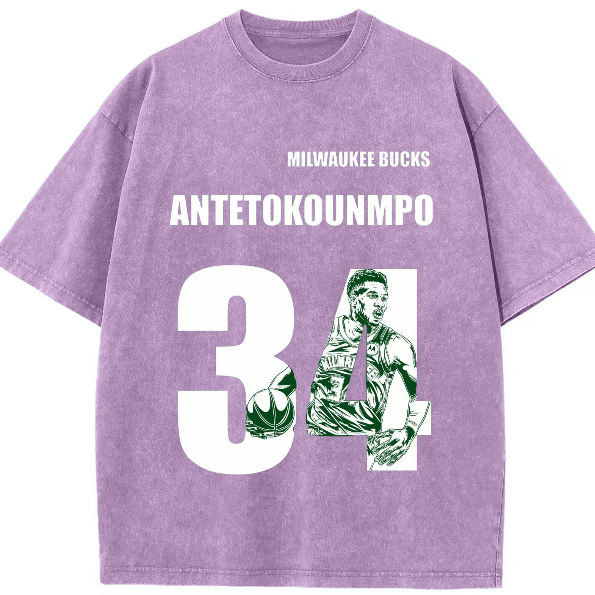 Giannis Antetokounmpo #34 Graphic T-shirt - Washed Vintage Look 230g Cotton Oversized T-Shirt With Front Heat Transfer Print – Soft, Lightweight, Stylish Fit – Comfortable Casual Wear For Sports & Everyday Use