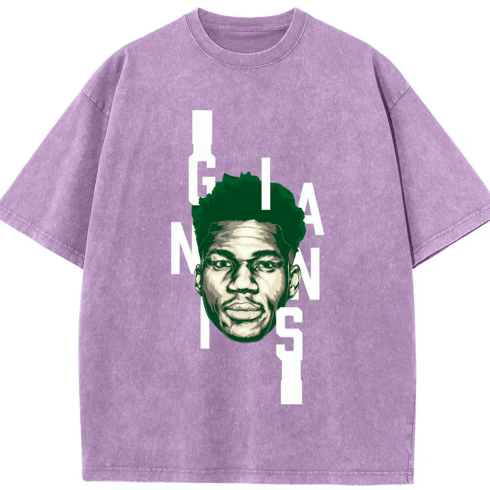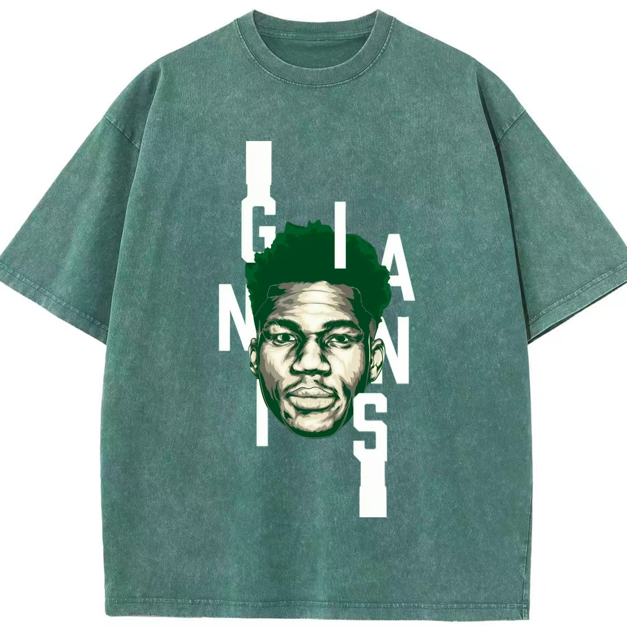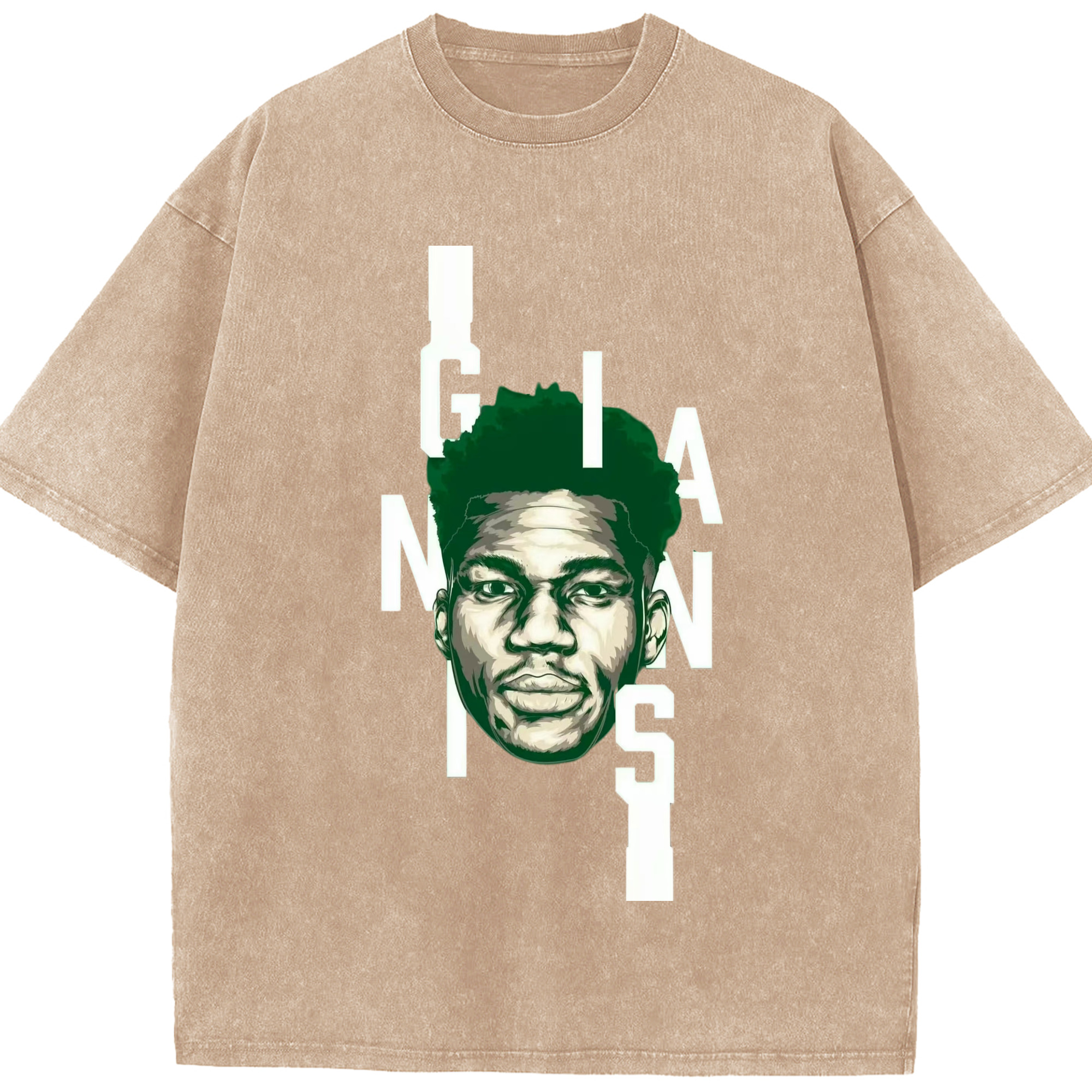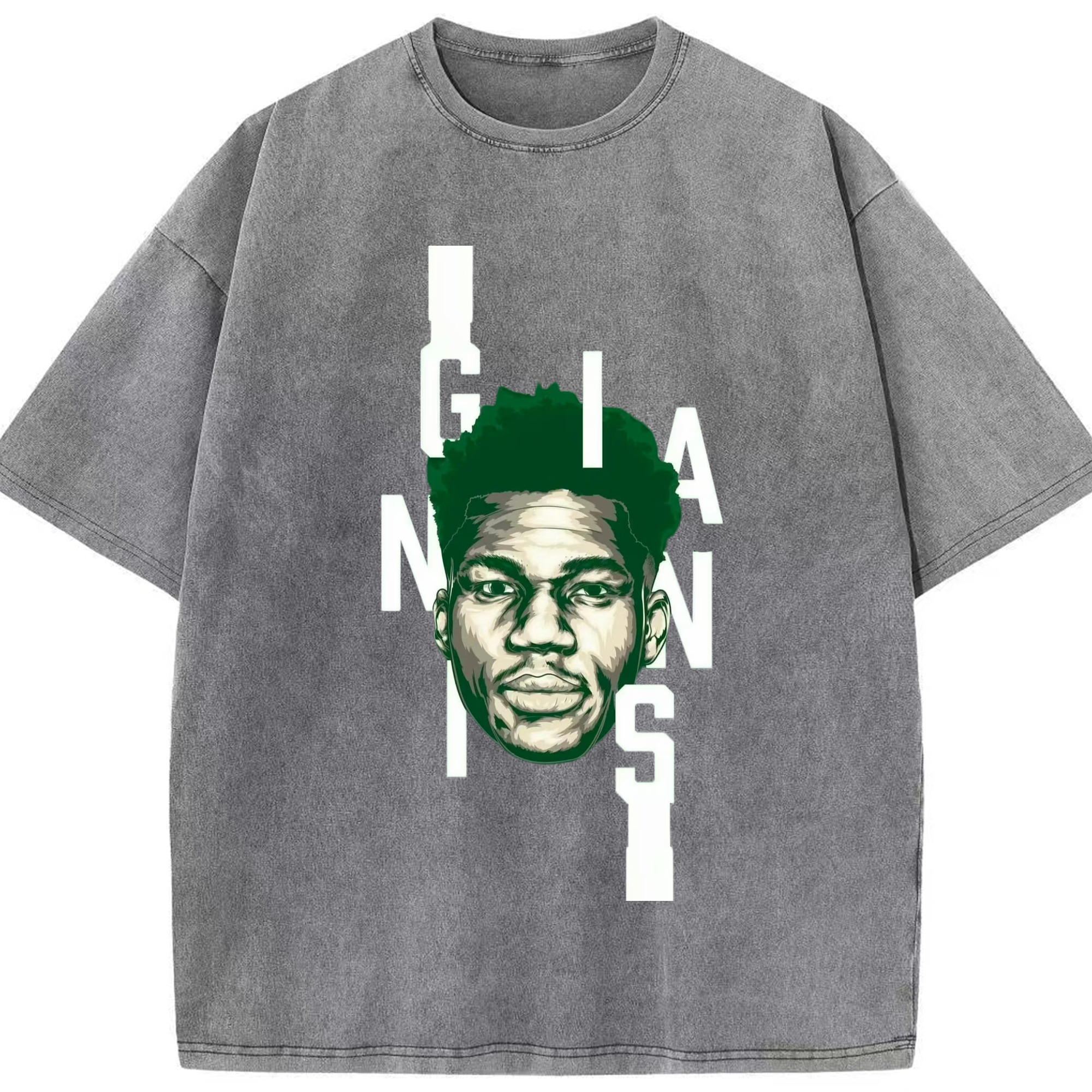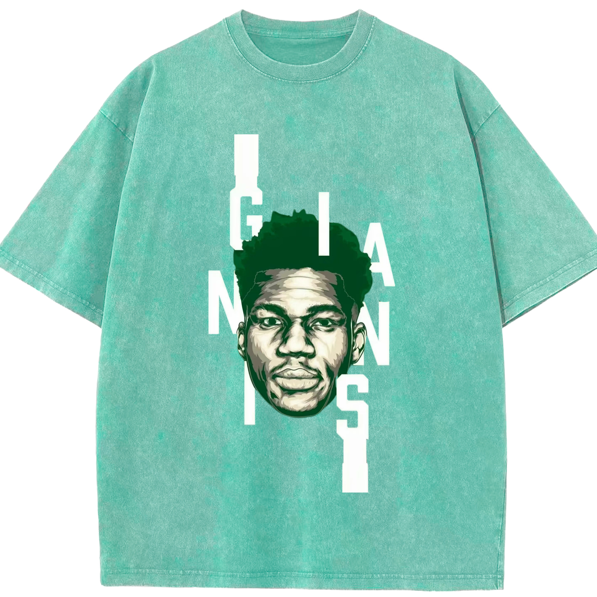 Giannis Antetokounmpo vintage T‑Shirt - Washed Vintage Look 230g Cotton Oversized T-Shirt With Front Heat Transfer Print – Soft, Lightweight, Stylish Fit – Comfortable Casual Wear For Sports & Everyday Use