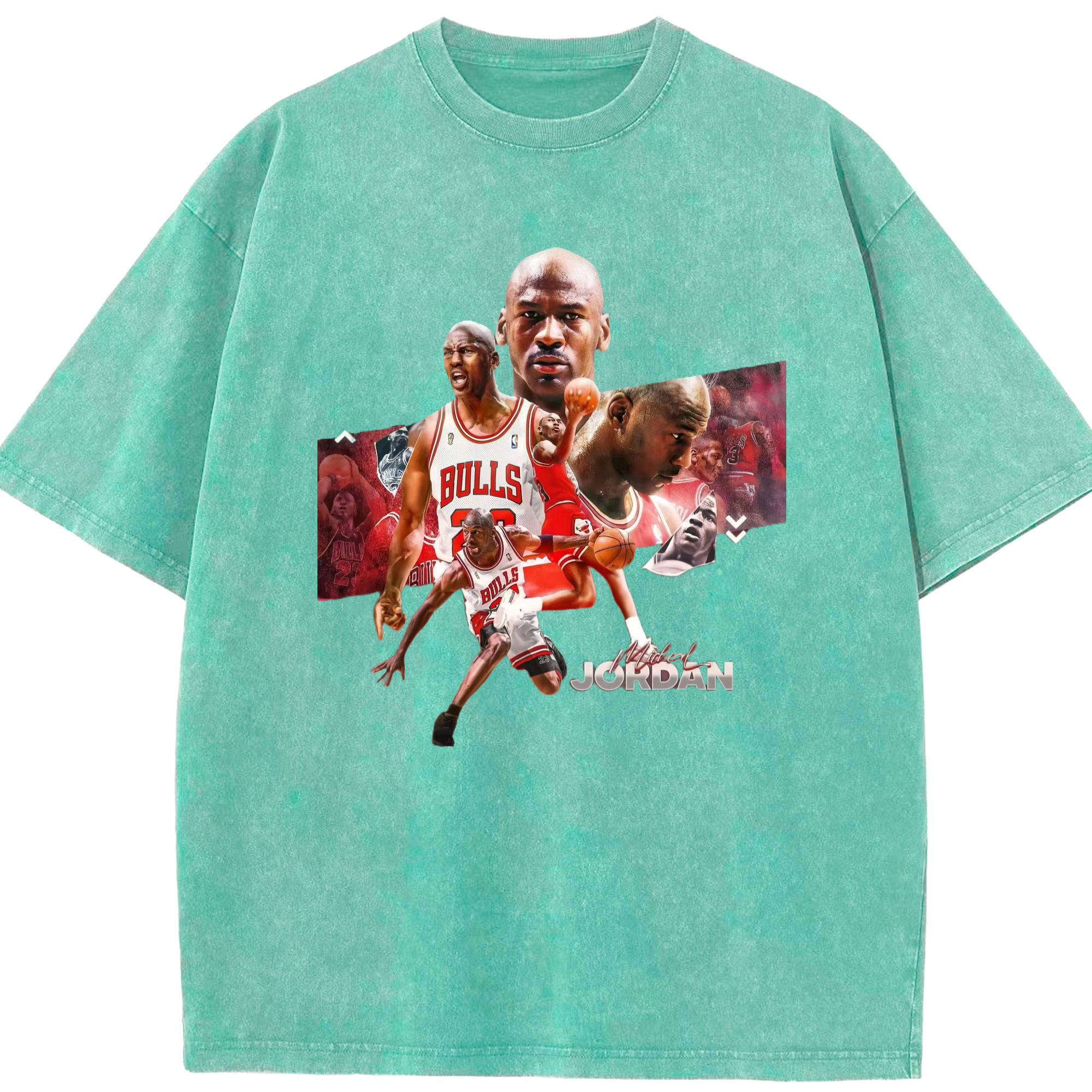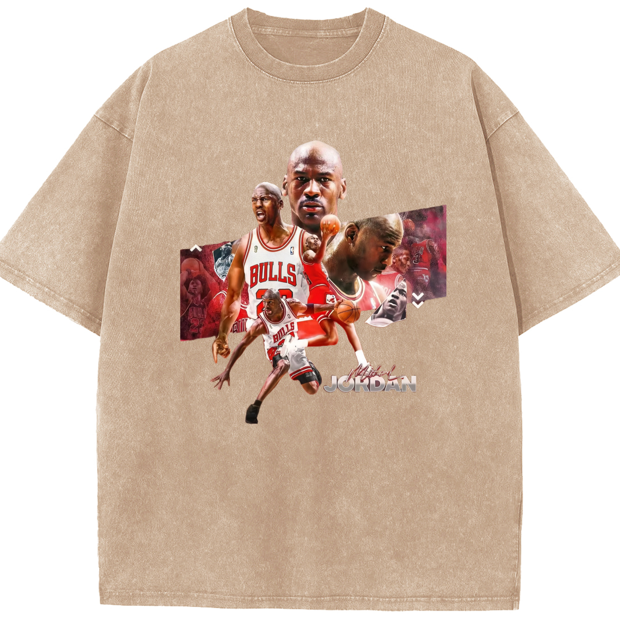 Goat Michael Jordan Shirt - Washed Vintage Look 230g Cotton Oversized T-Shirt With Front Heat Transfer Print – Soft, Lightweight, Stylish Fit – Comfortable Casual Wear For Sports & Everyday Use