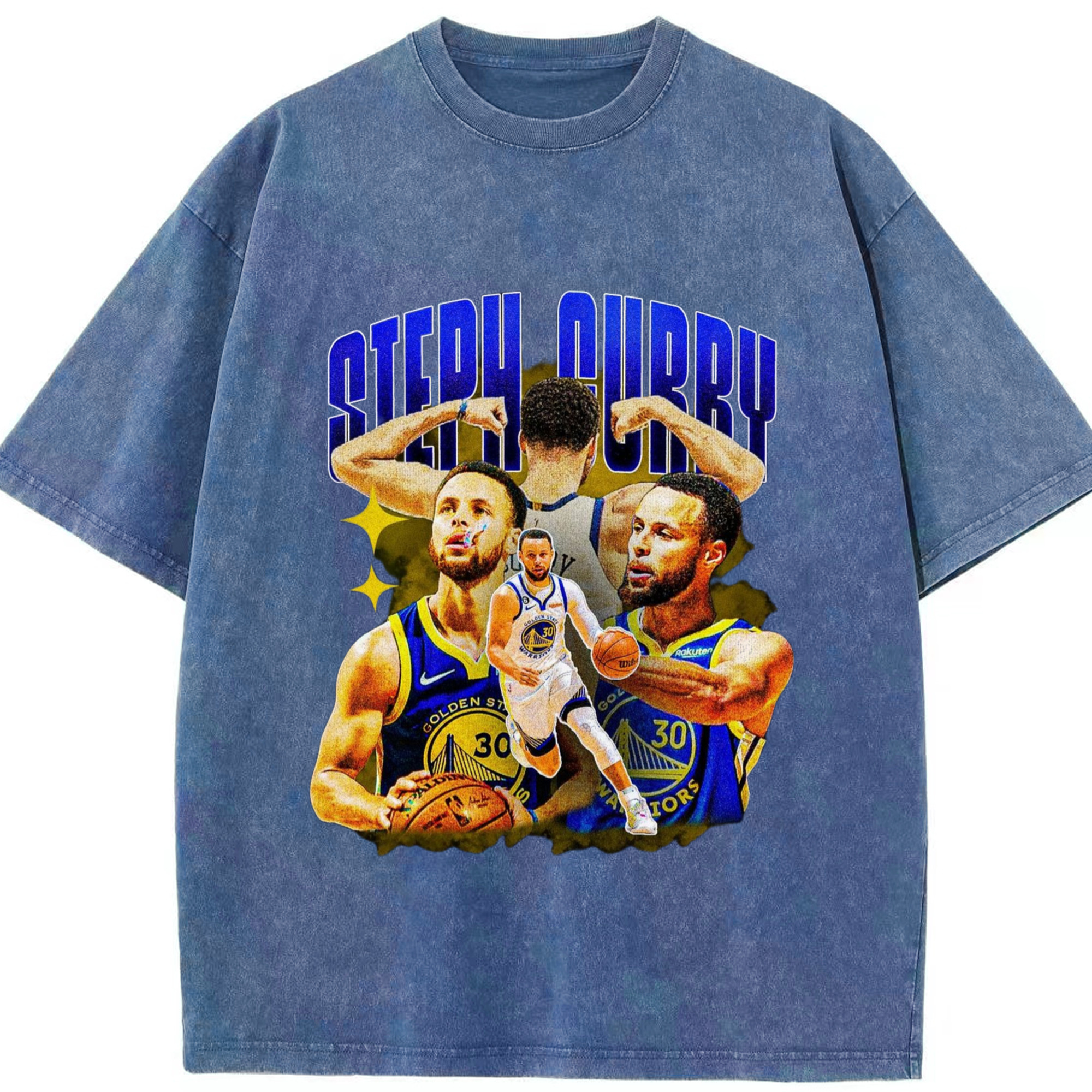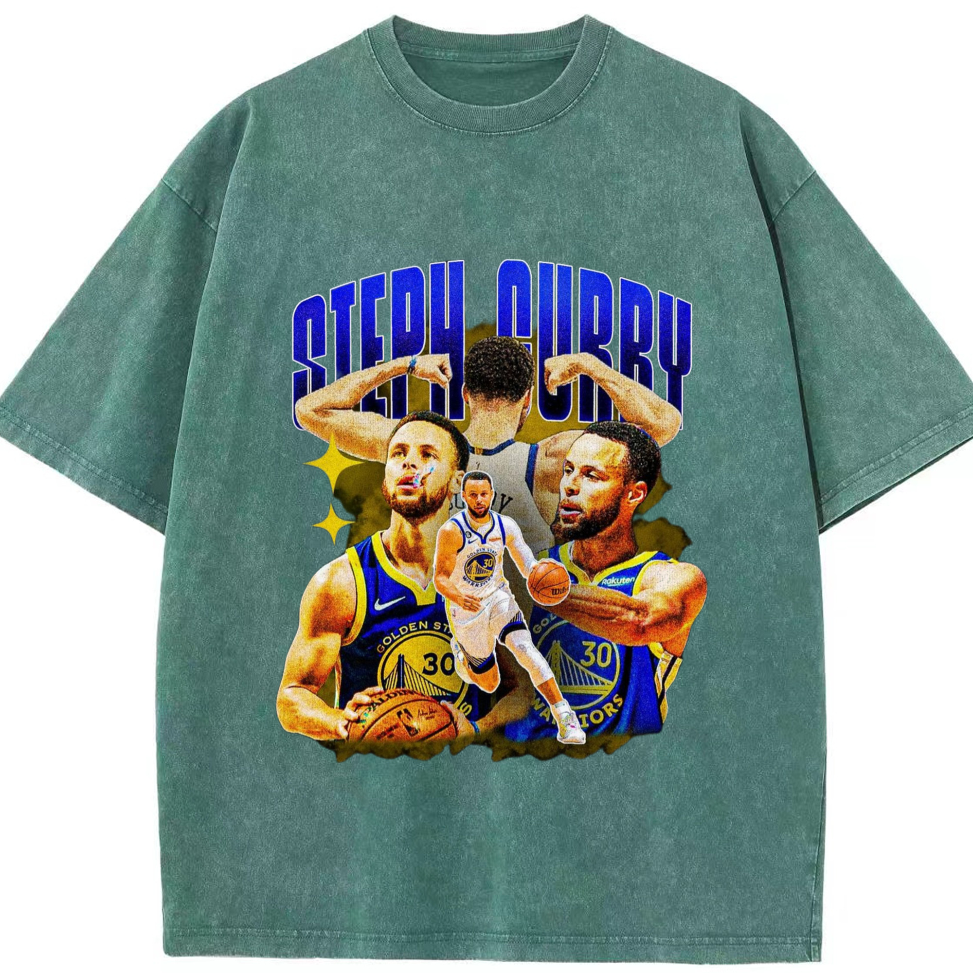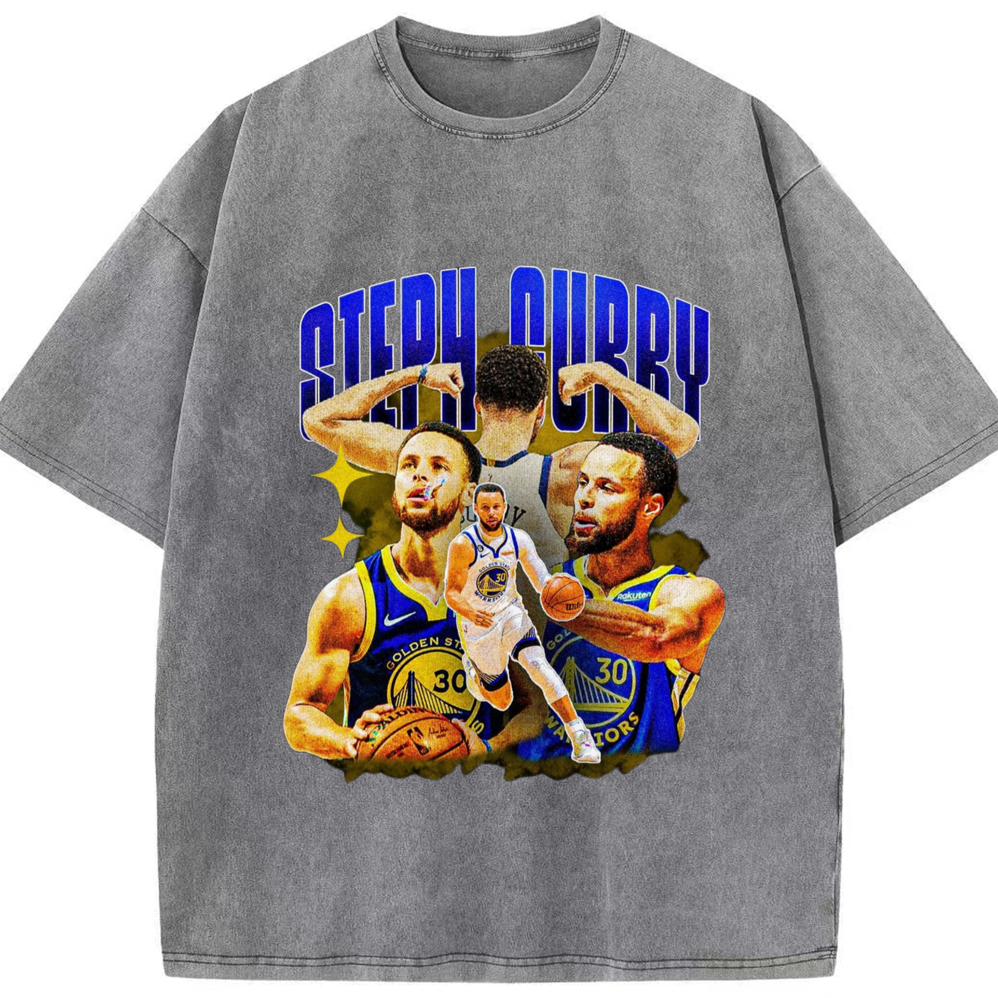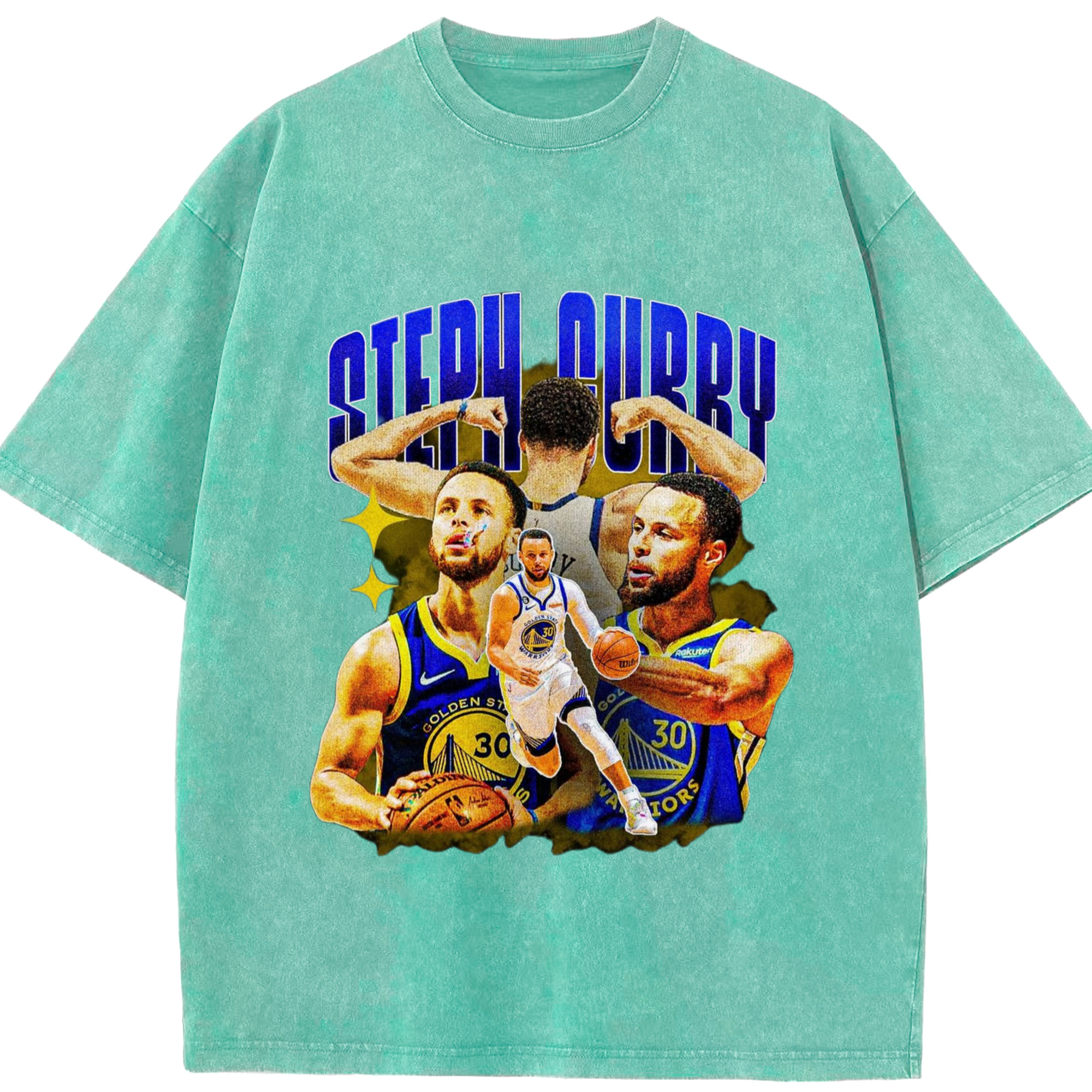 Golden State Warriors Stephen Curry #30 collage tee - Washed Vintage Look 230g Cotton Oversized T-Shirt With Front Heat Transfer Print – Soft, Lightweight, Stylish Fit – Comfortable Casual Wear For Sports & Everyday Use