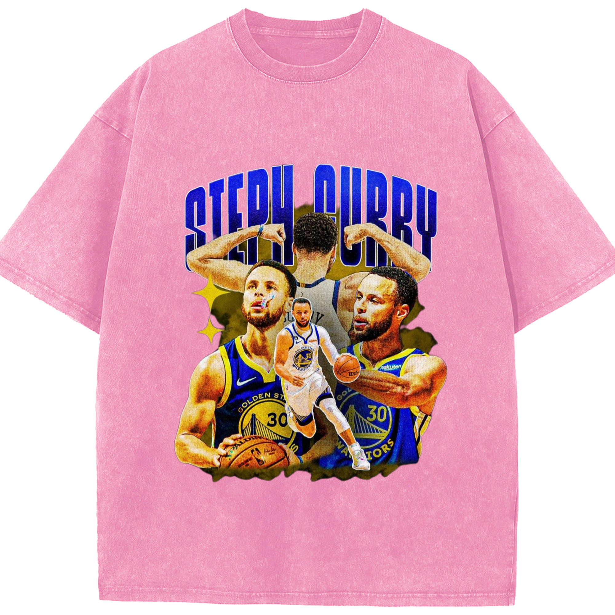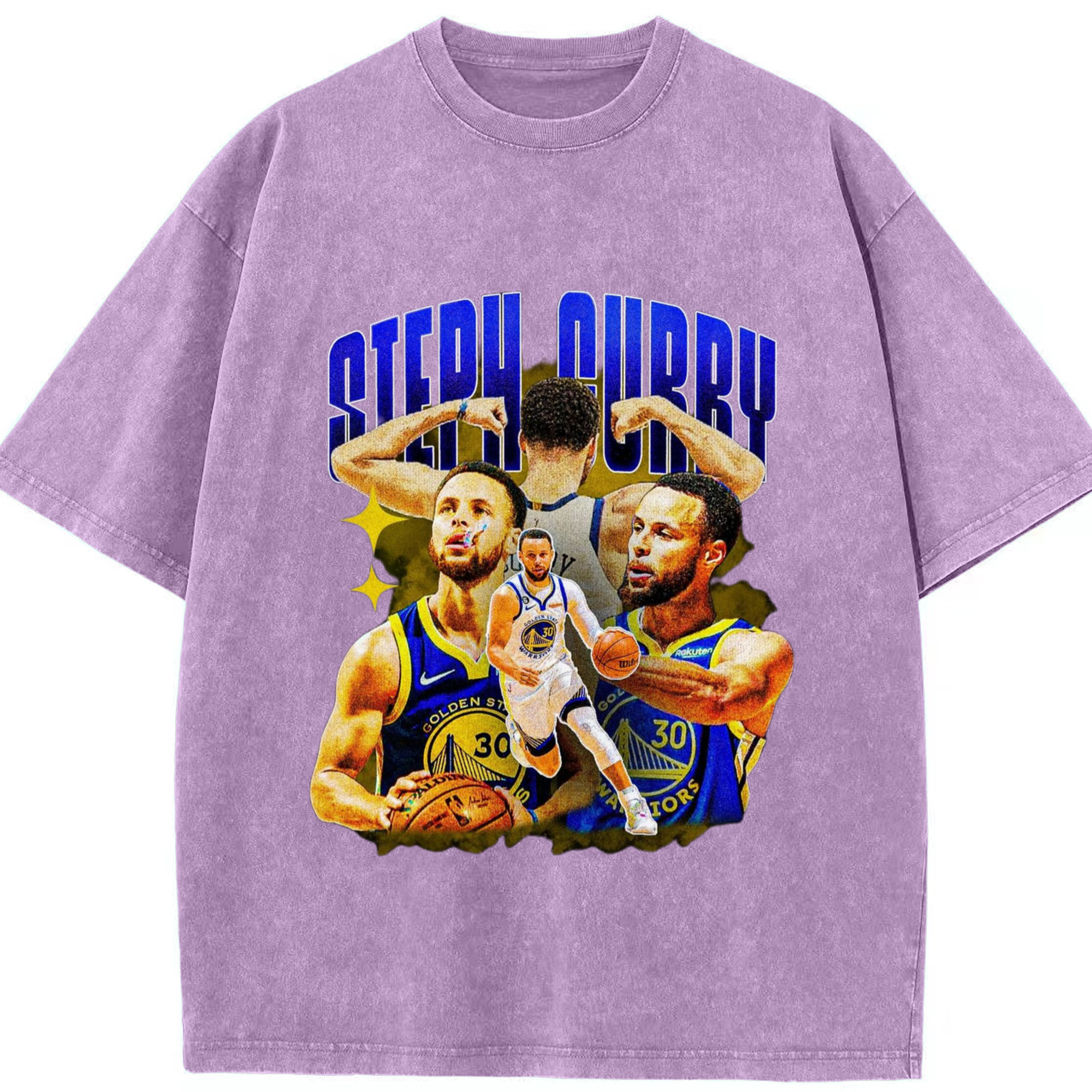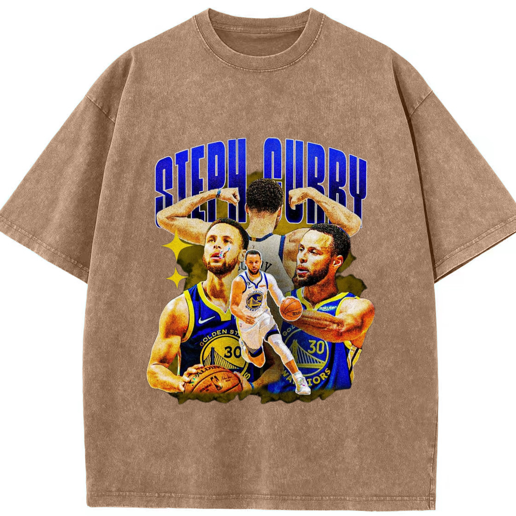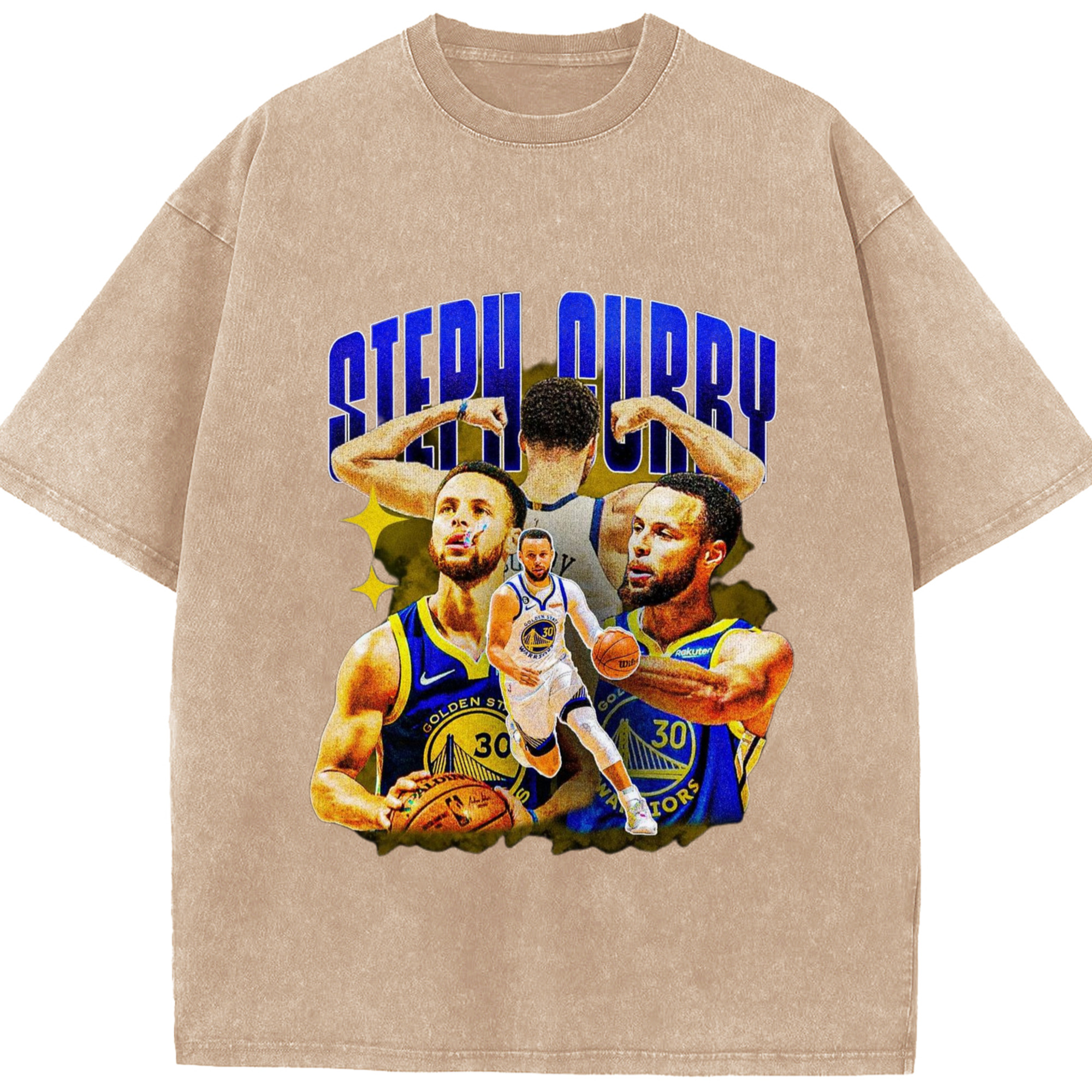 Golden State Warriors Stephen Curry #30 collage tee - Washed Vintage Look 230g Cotton Oversized T-Shirt With Front Heat Transfer Print – Soft, Lightweight, Stylish Fit – Comfortable Casual Wear For Sports & Everyday Use