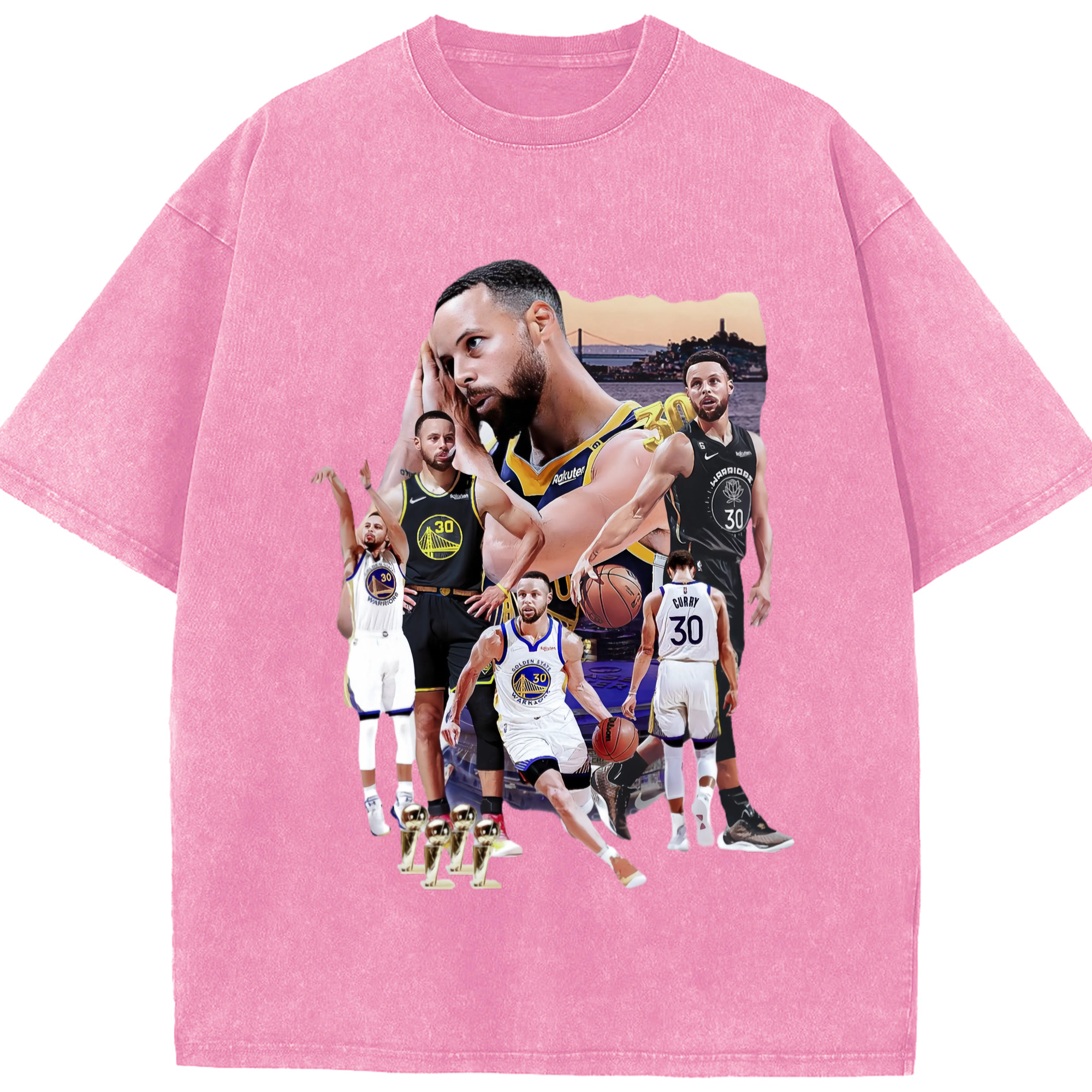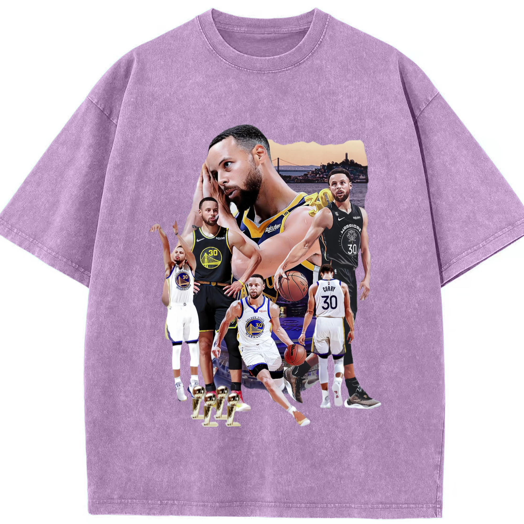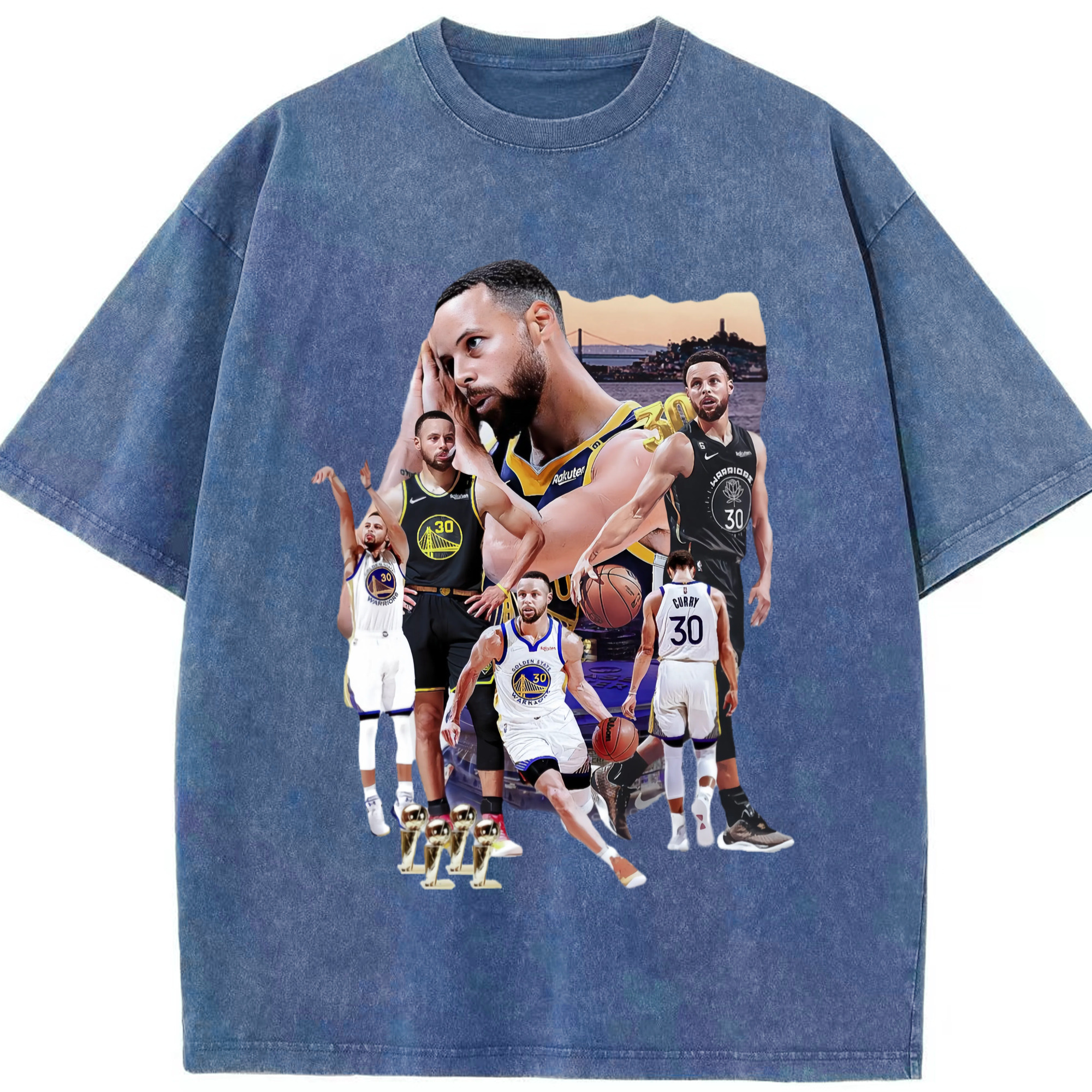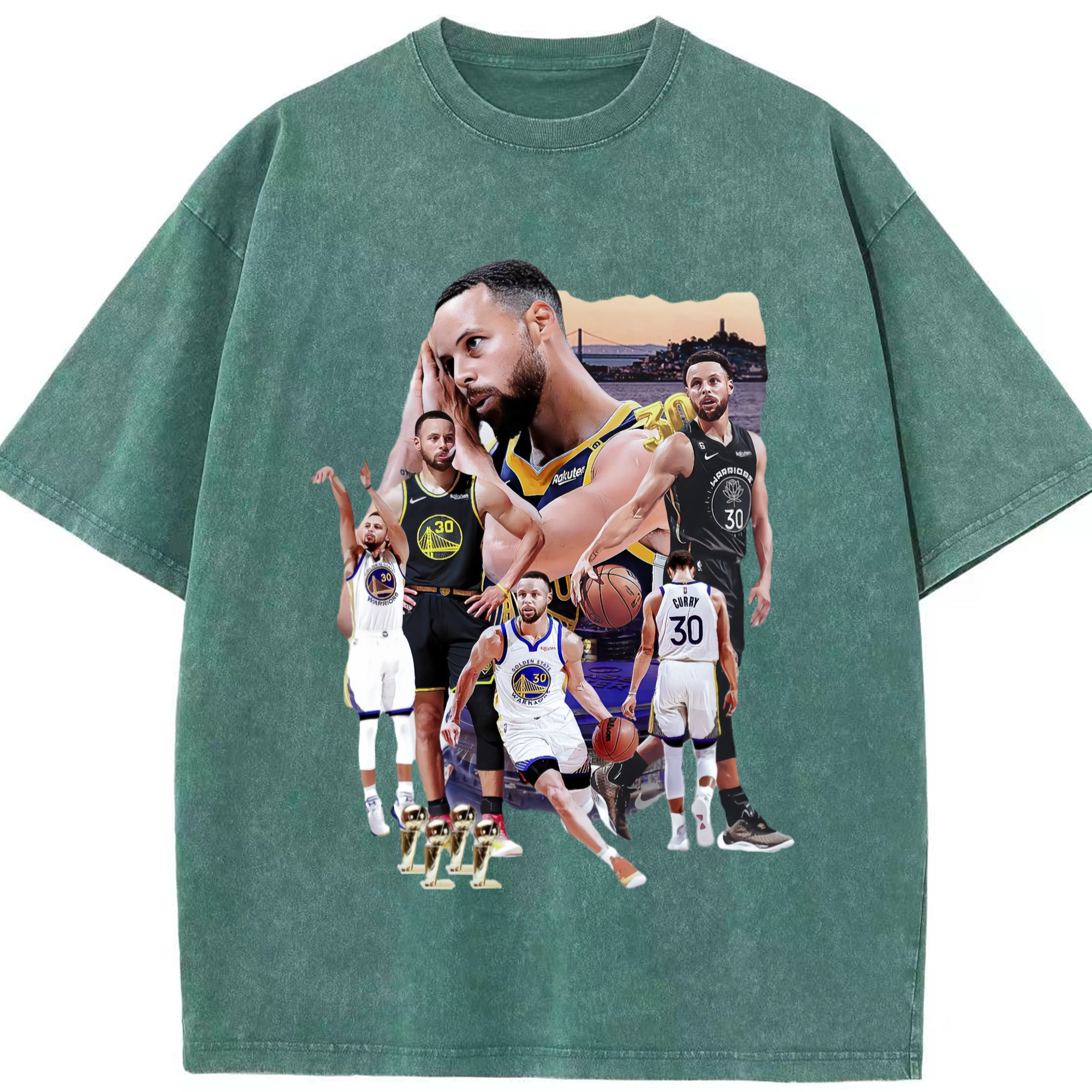 Golden State Warriors Stephen Curry collage tee - Washed Vintage Look 230g Cotton Oversized T-Shirt With Front Heat Transfer Print – Soft, Lightweight, Stylish Fit – Comfortable Casual Wear For Sports & Everyday Use
