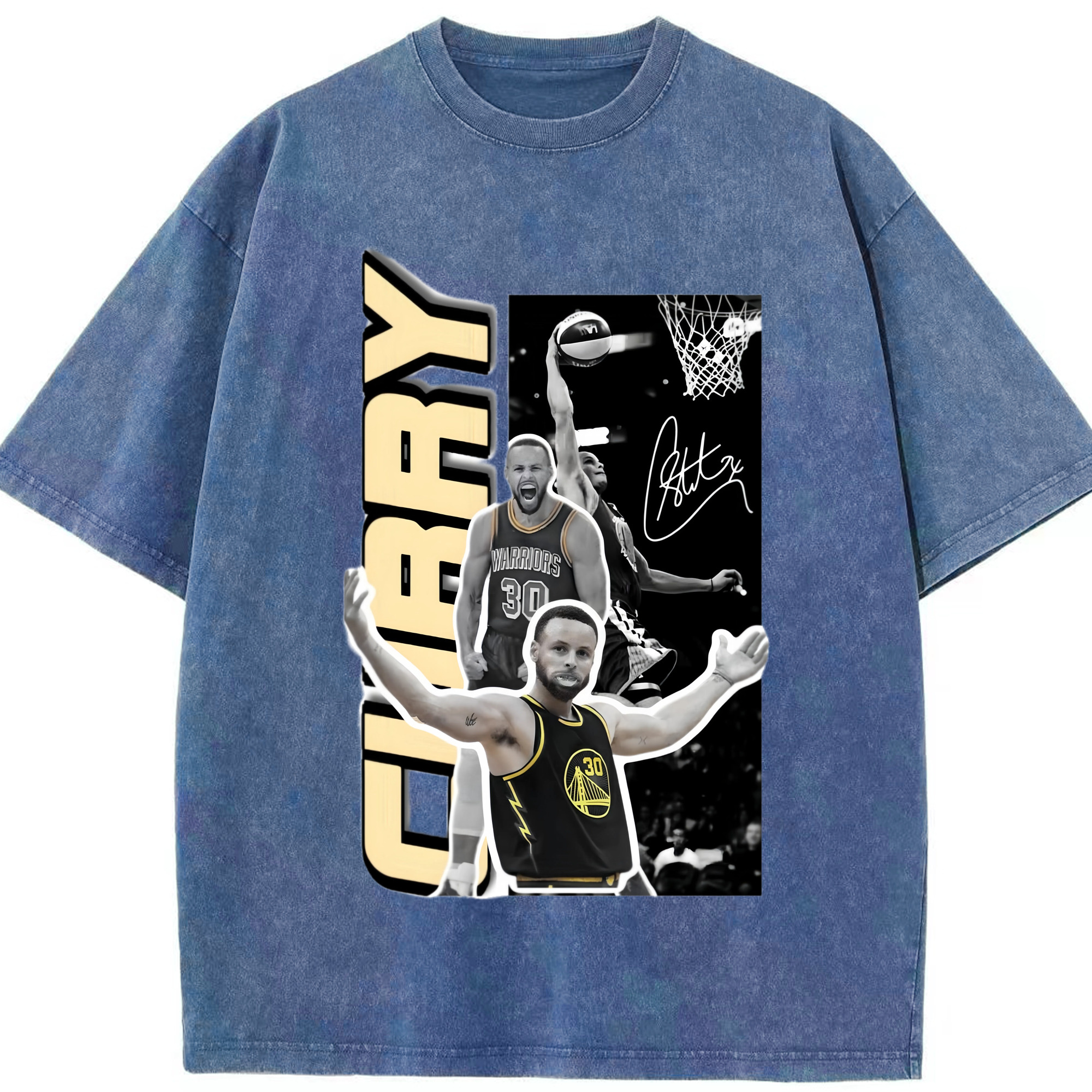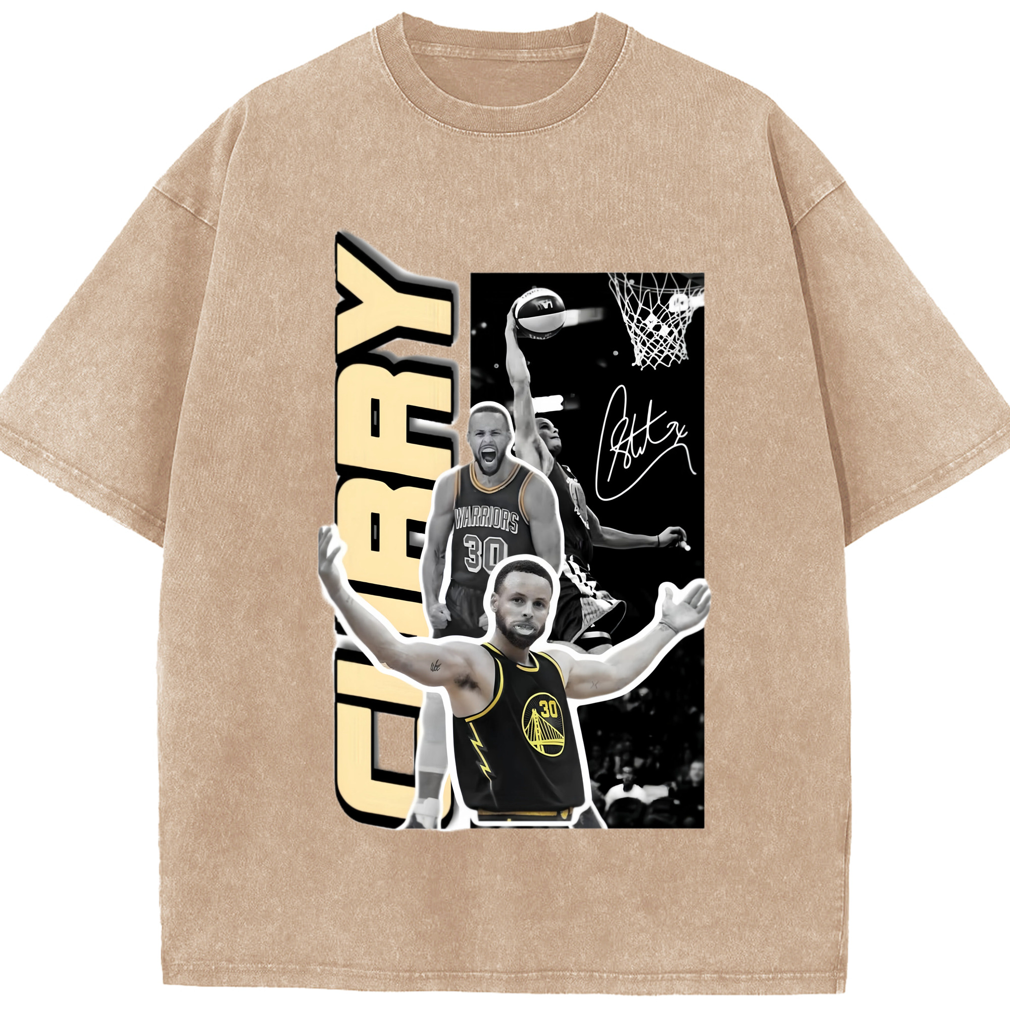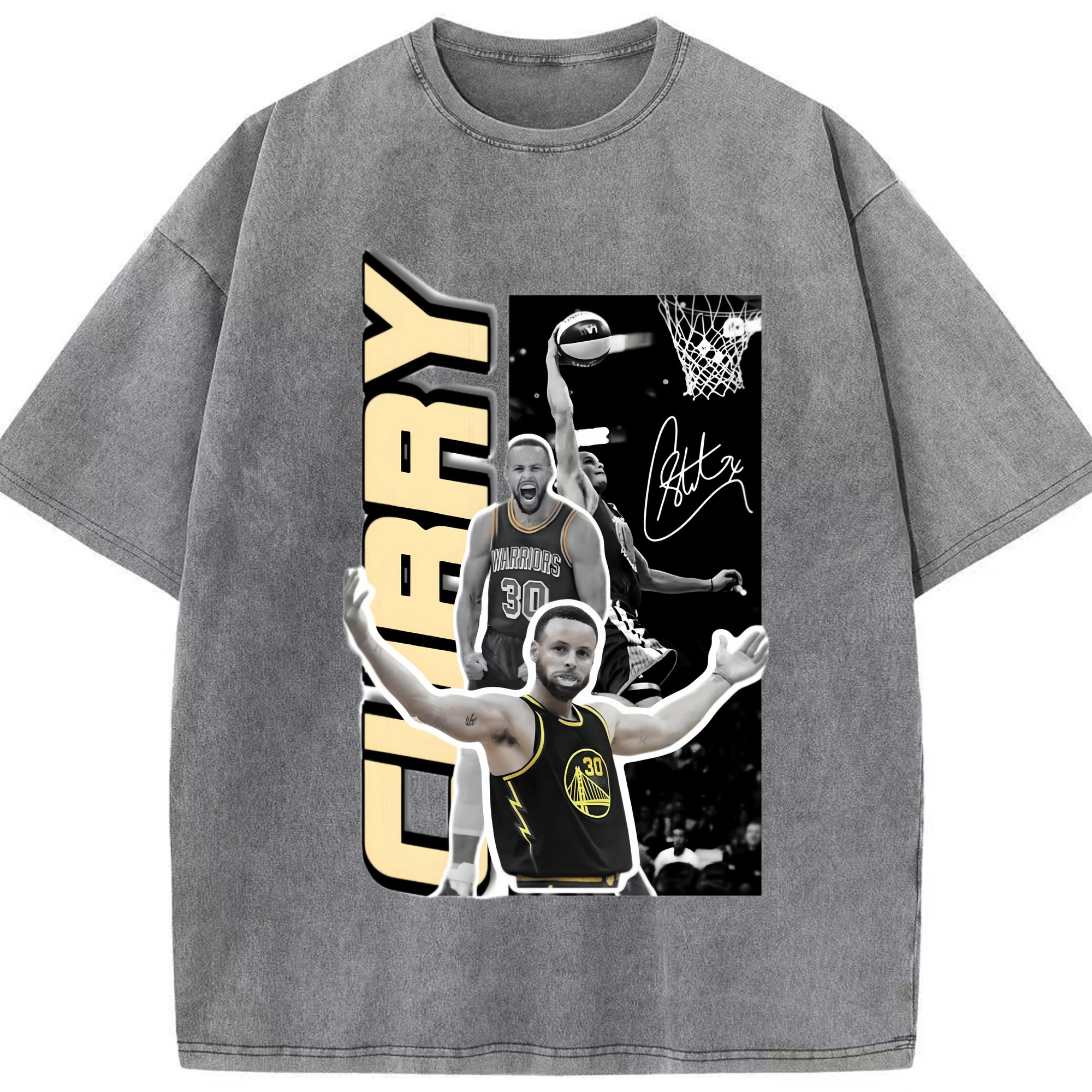 Golden State Warriors Stephen Curry shrug graphic T‑ShirtT-shirt - Washed Vintage Look 230g Cotton Oversized T-Shirt With Front Heat Transfer Print – Soft, Lightweight, Stylish Fit – Comfortable Casual Wear For Sports & Everyday Use