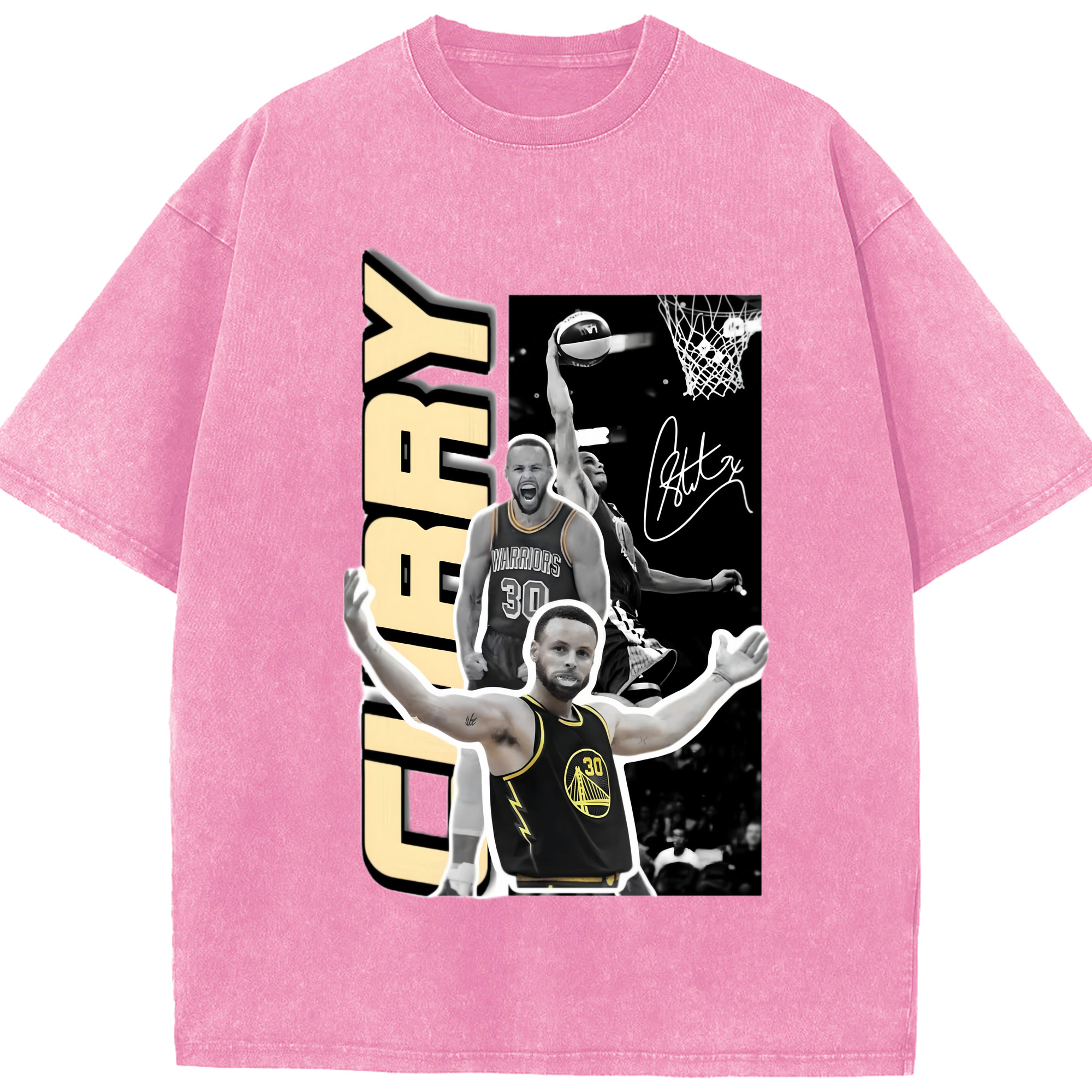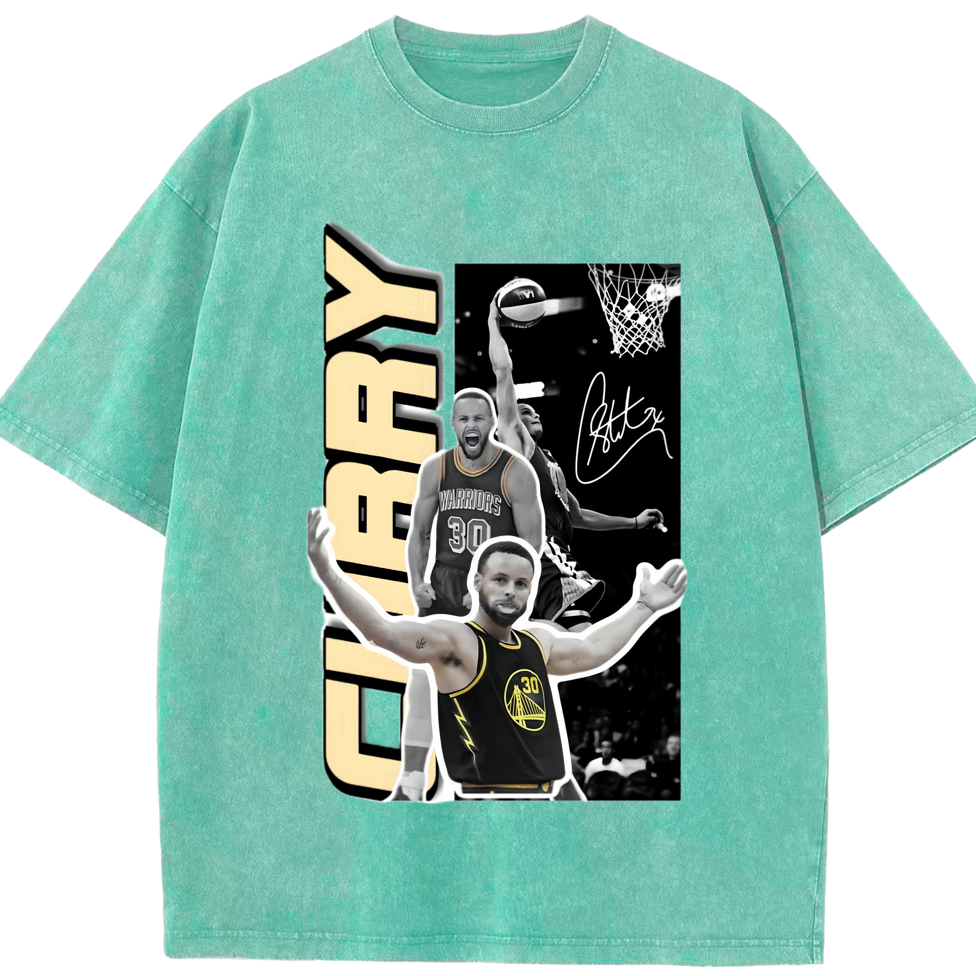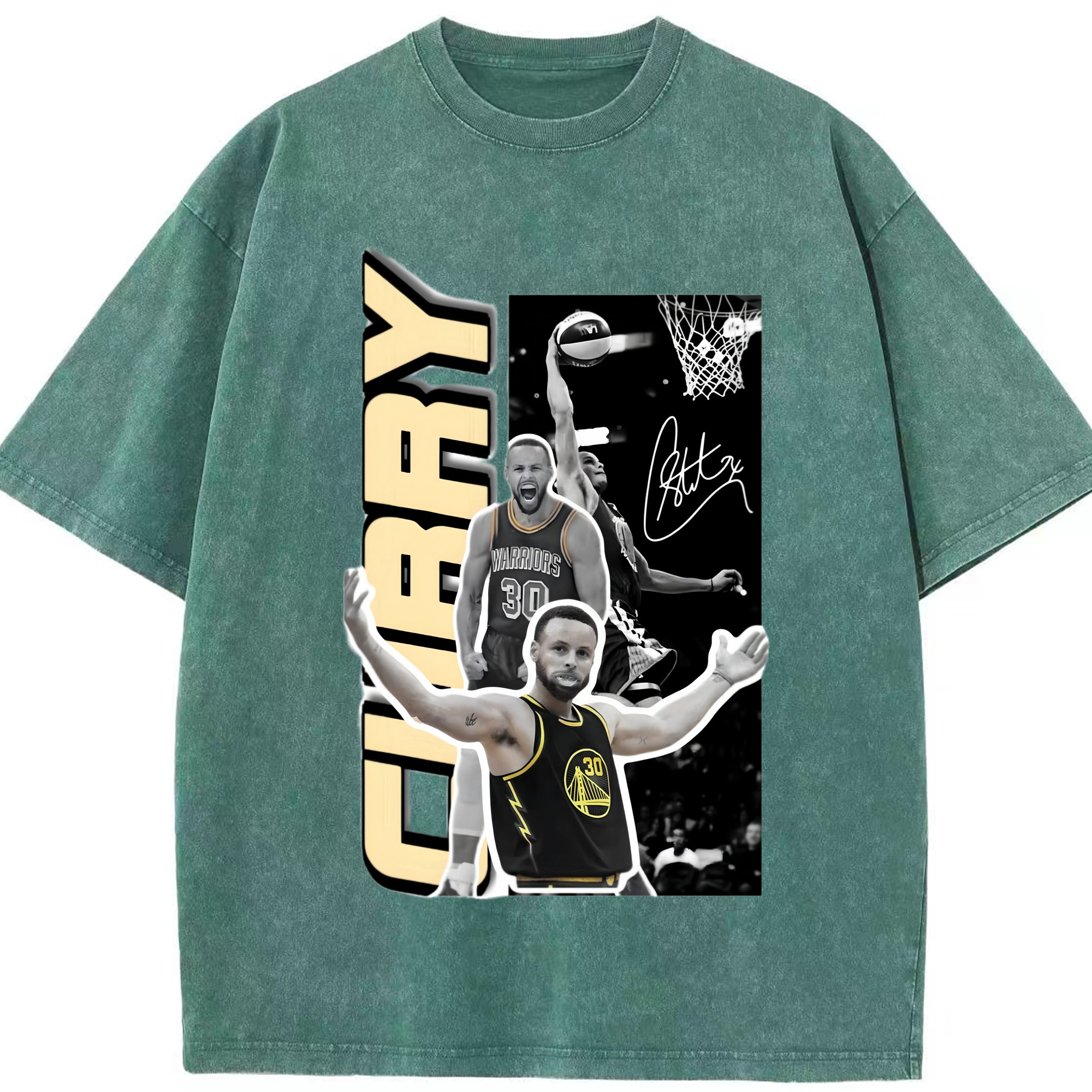 Golden State Warriors Stephen Curry shrug graphic T‑ShirtT-shirt - Washed Vintage Look 230g Cotton Oversized T-Shirt With Front Heat Transfer Print – Soft, Lightweight, Stylish Fit – Comfortable Casual Wear For Sports & Everyday Use