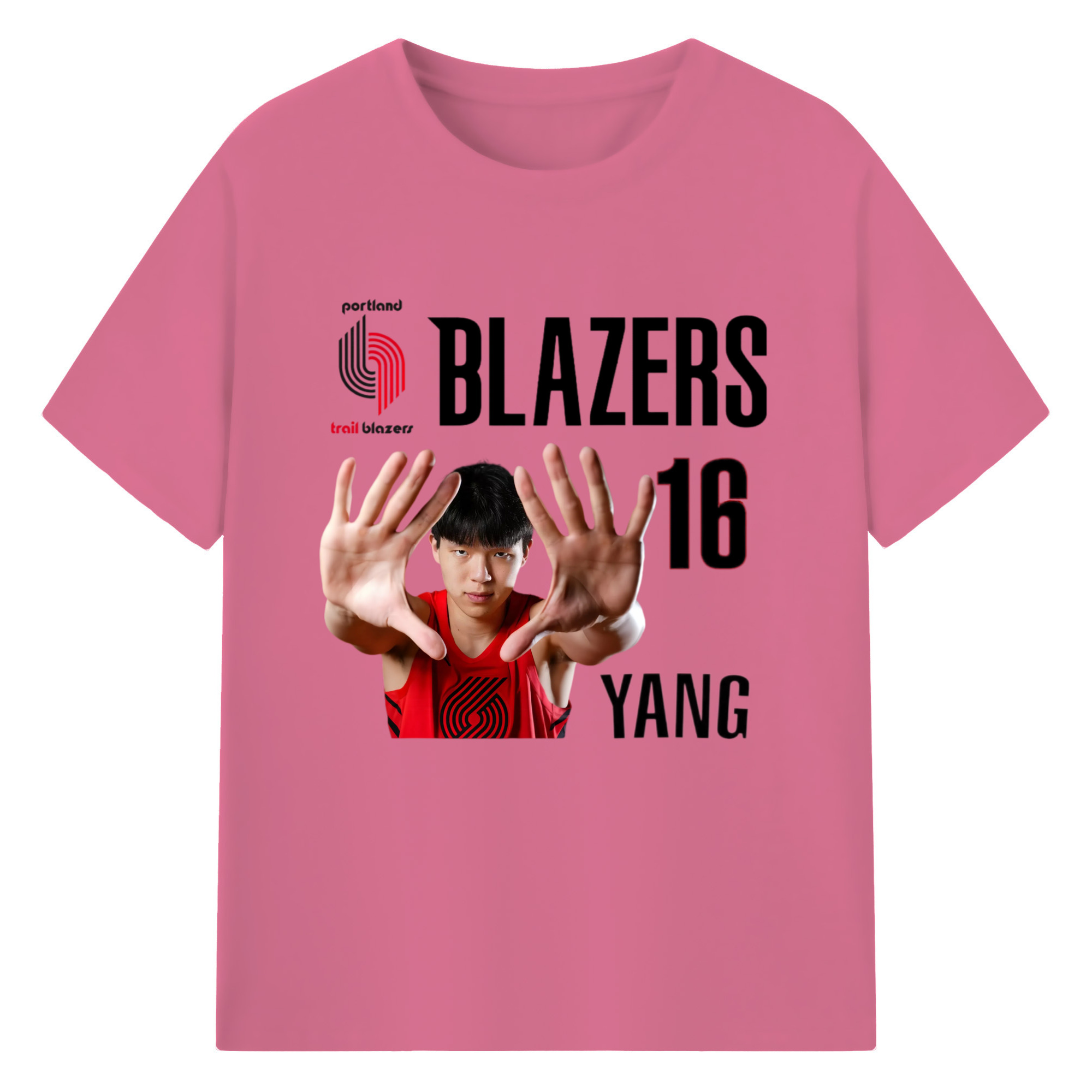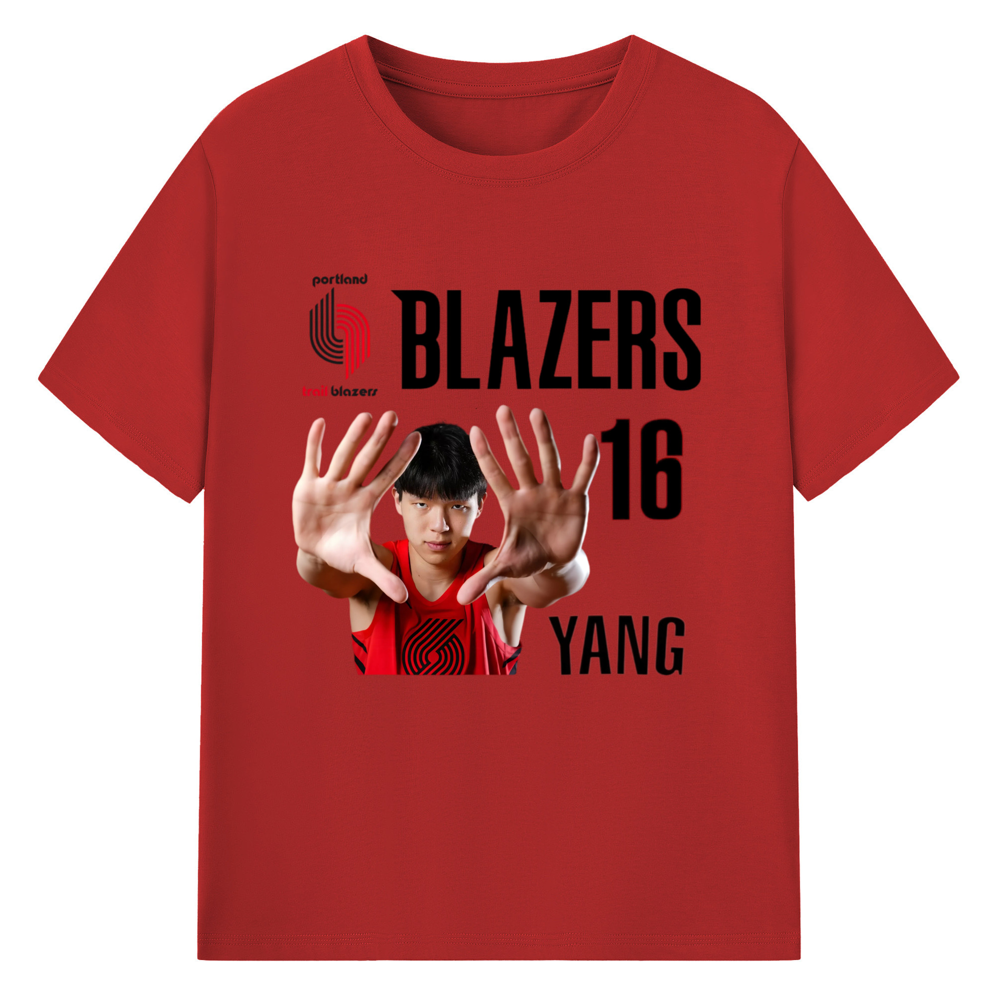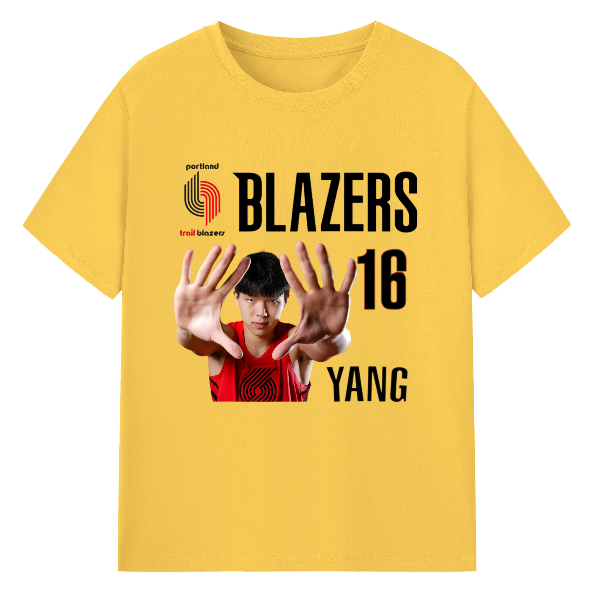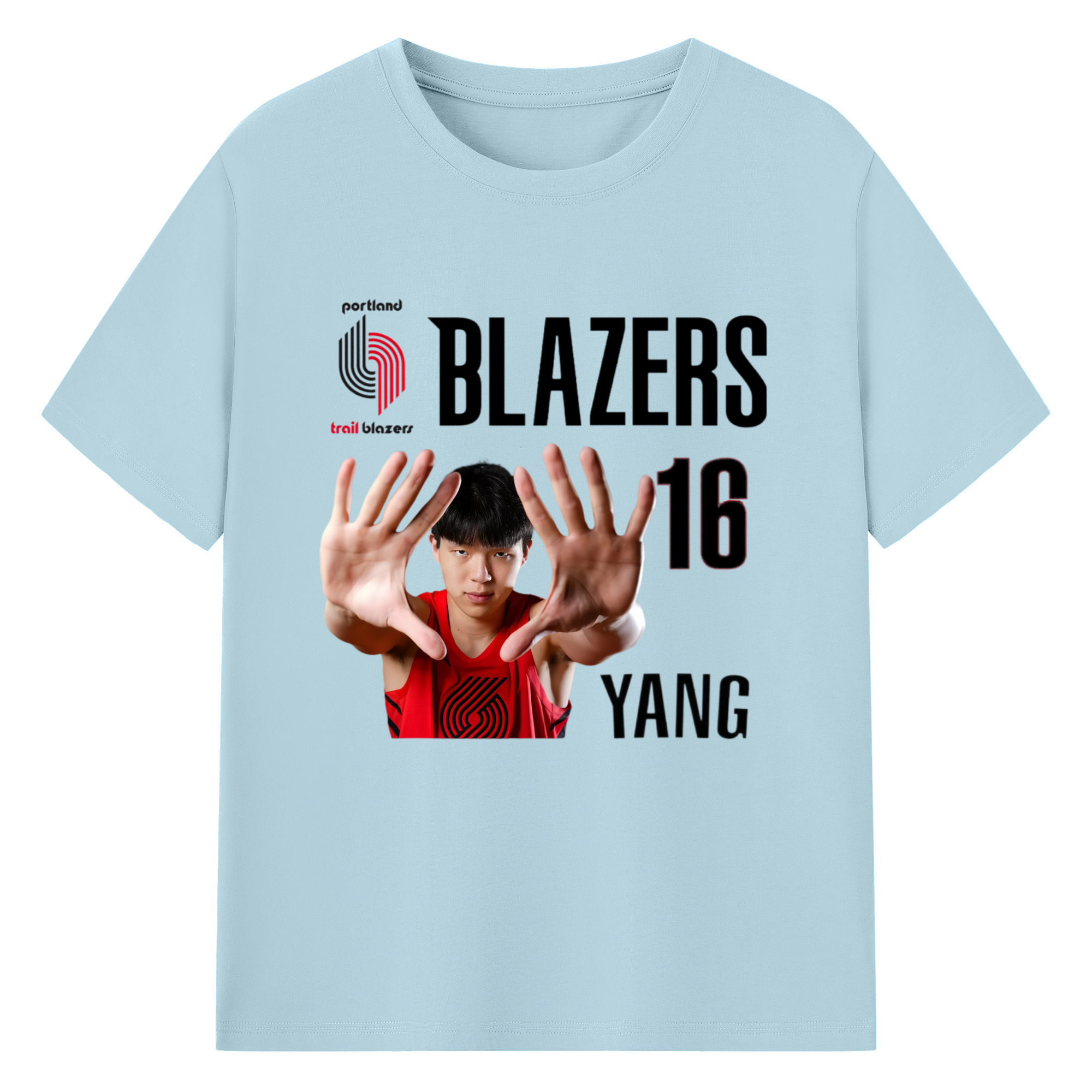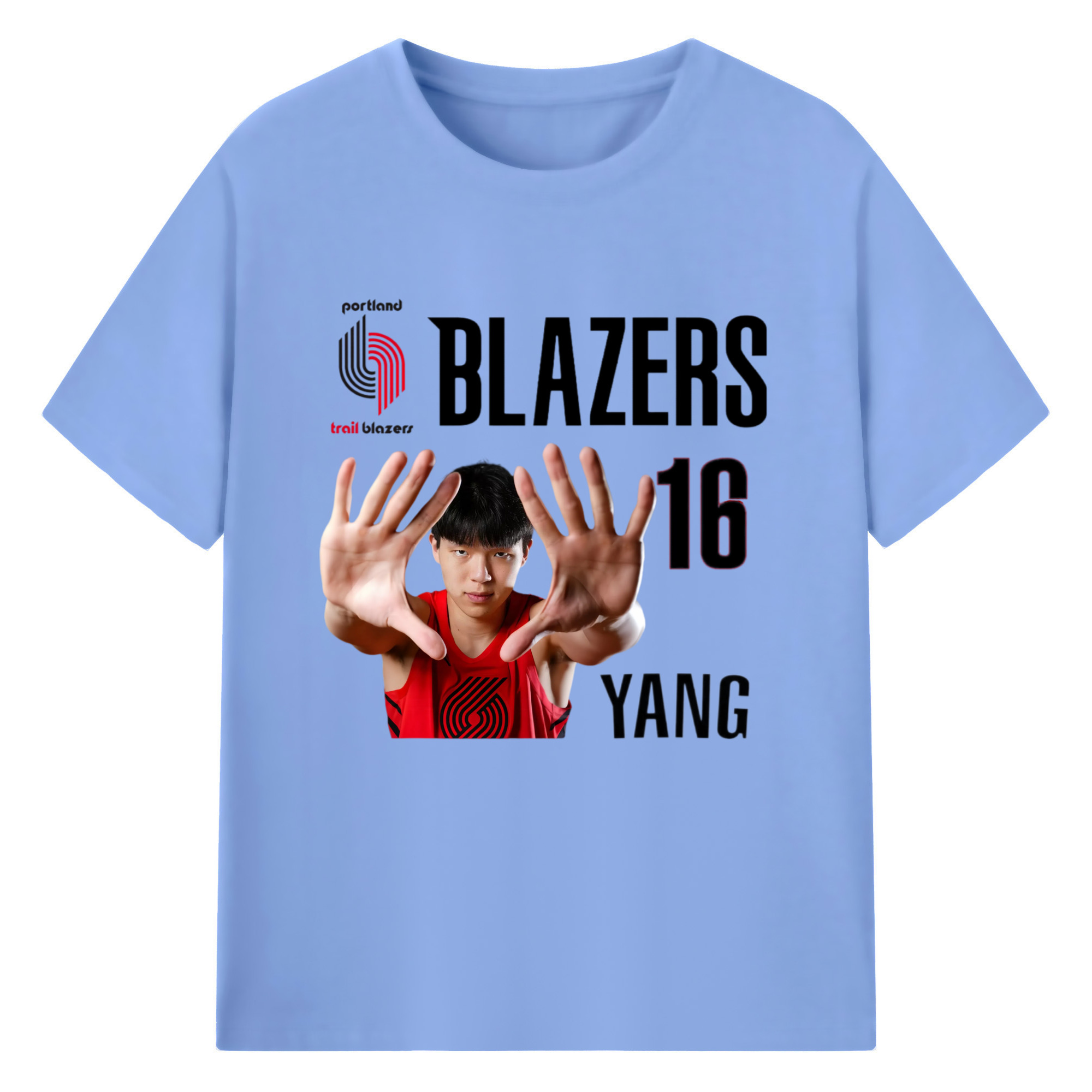 Hansen Yang #16 Blazers ’Show off the big hand‘ T-shirt - 180g Cotton T-Shirt With Front Heat Transfer Print – Soft, Lightweight, Fitted Design – Comfortable Casual Wear For Sports & Everyday Use