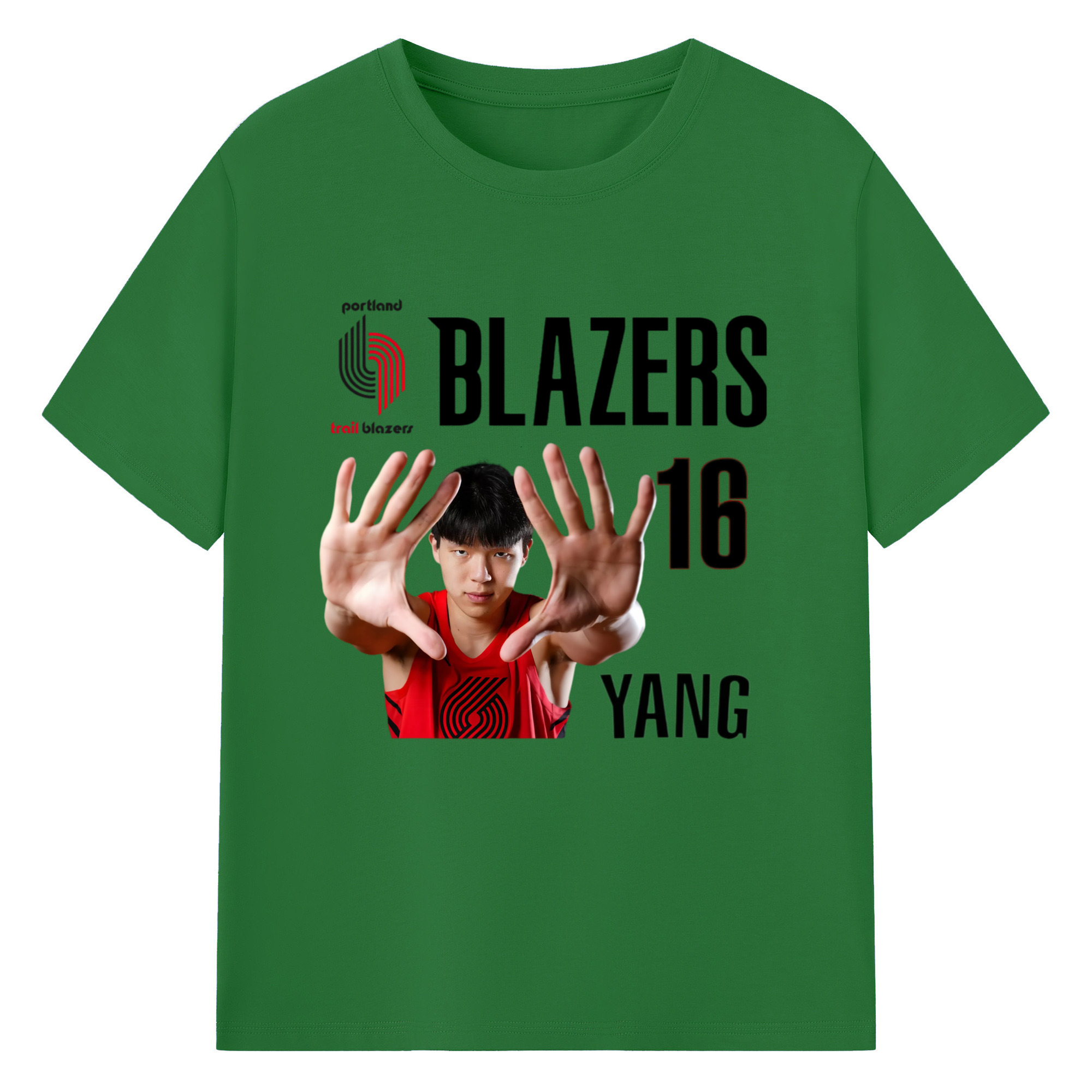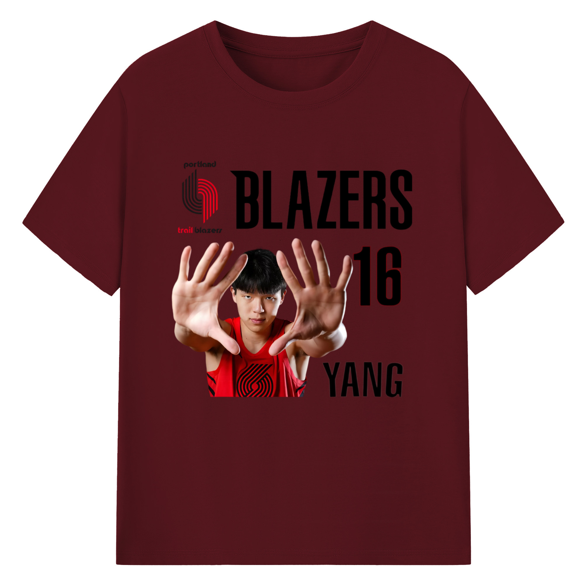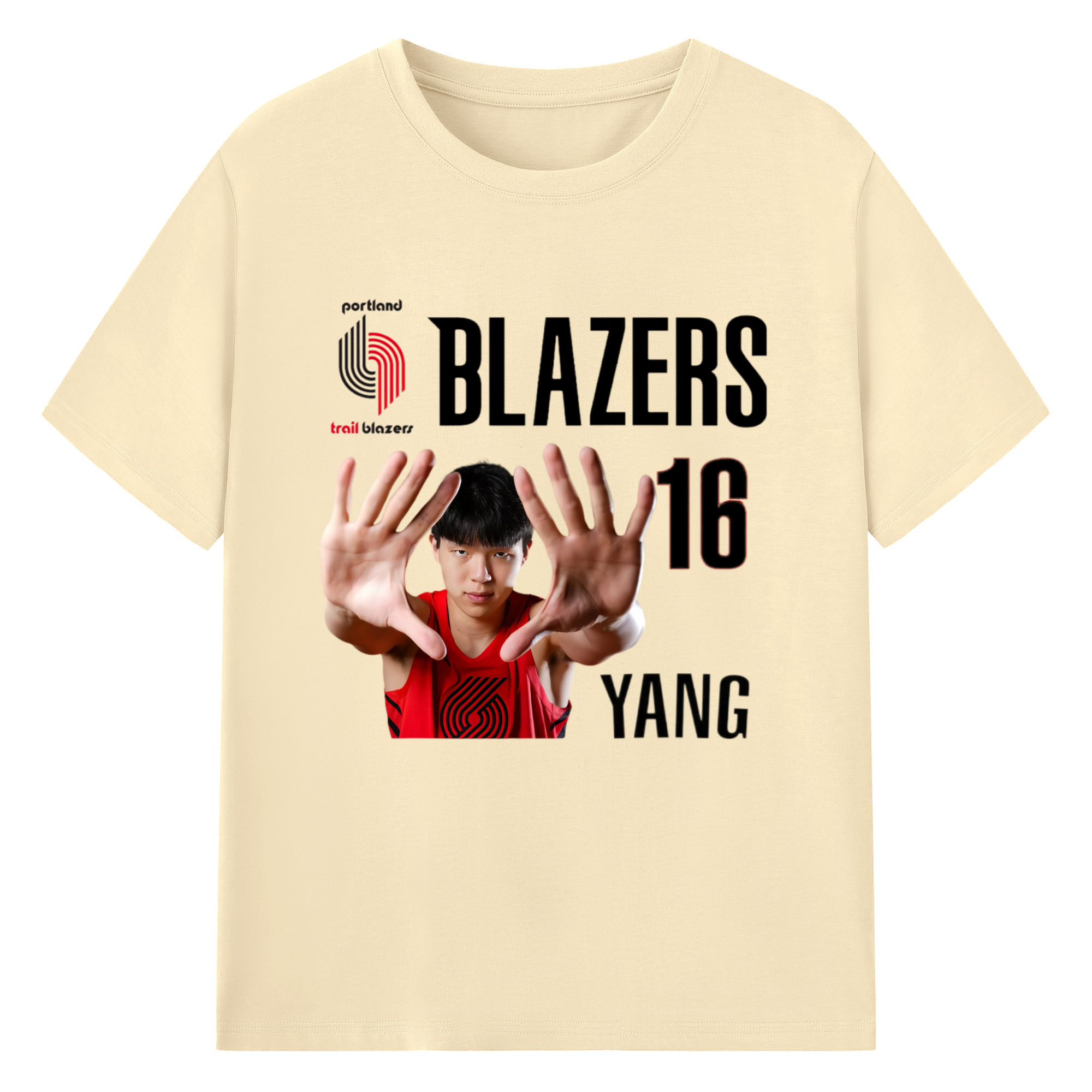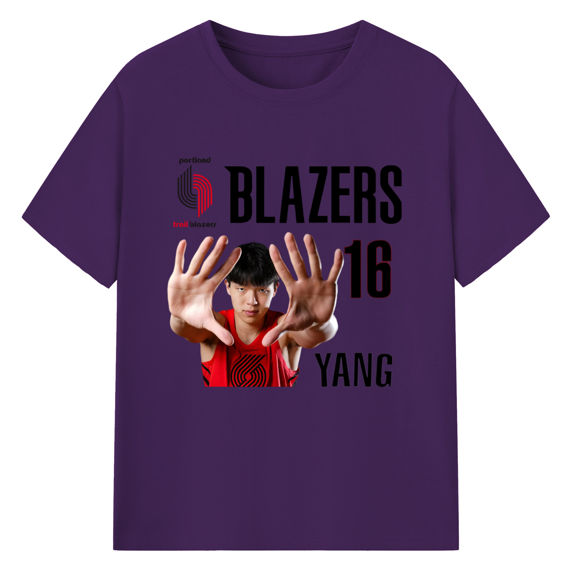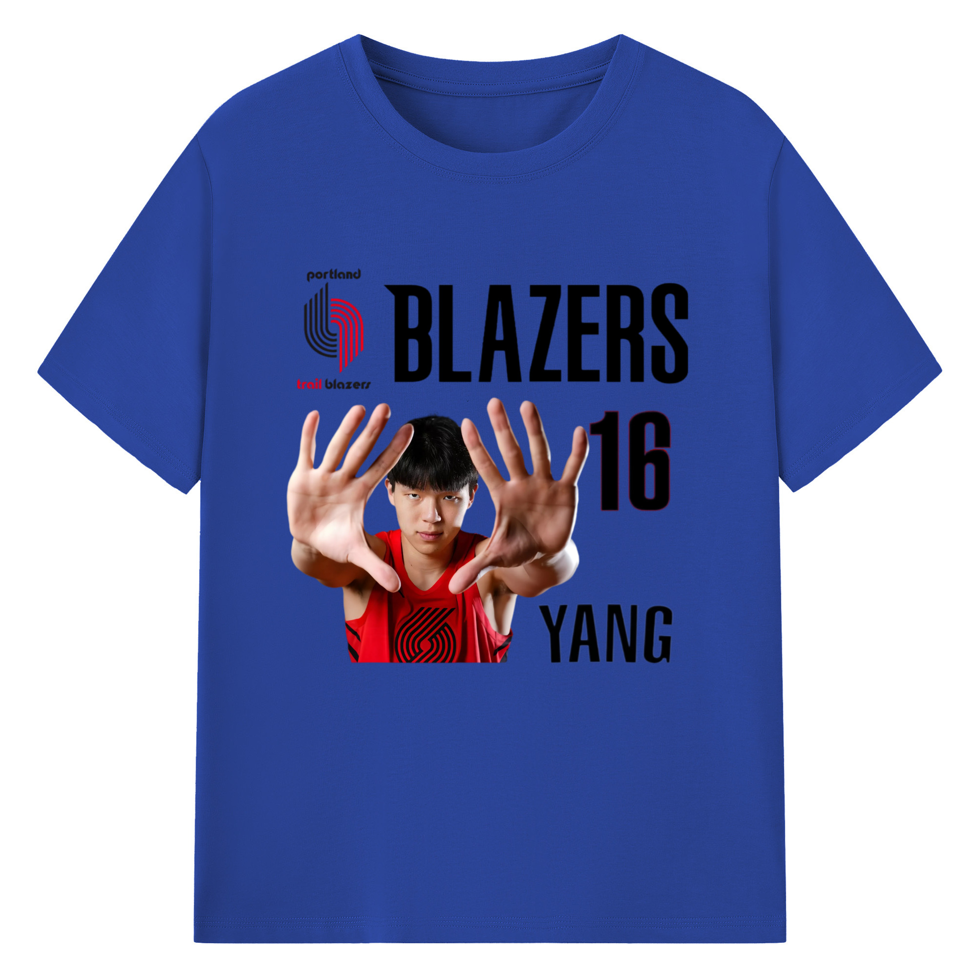 Hansen Yang #16 Blazers ’Show off the big hand‘ T-shirt - 180g Cotton T-Shirt With Front Heat Transfer Print – Soft, Lightweight, Fitted Design – Comfortable Casual Wear For Sports & Everyday Use