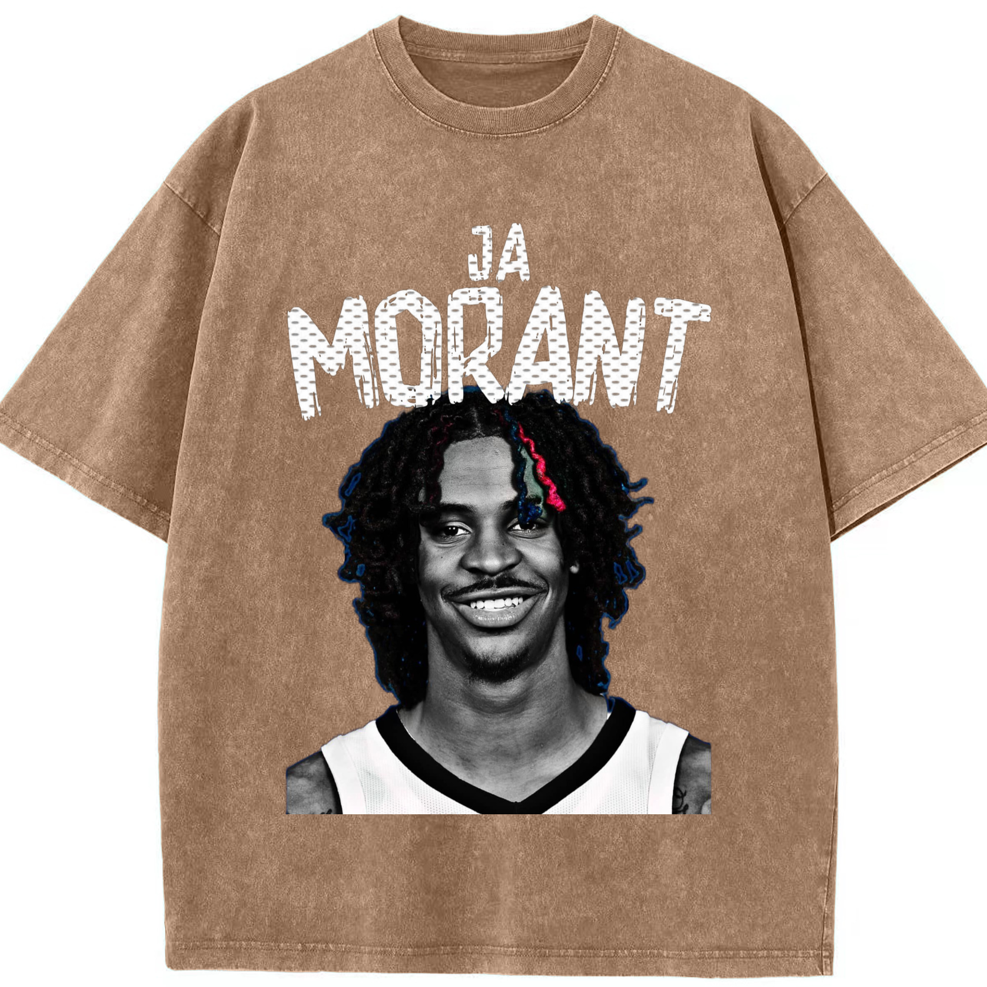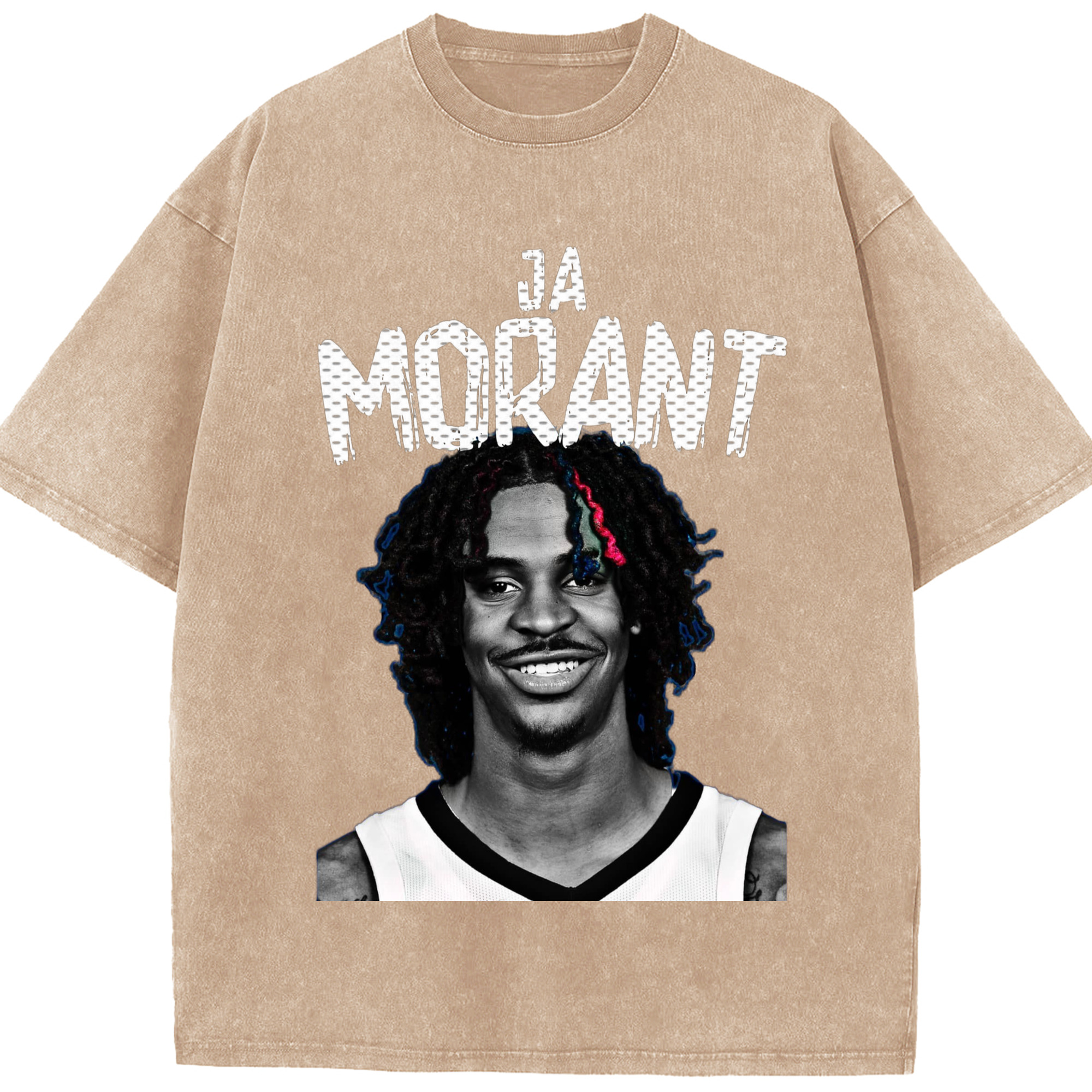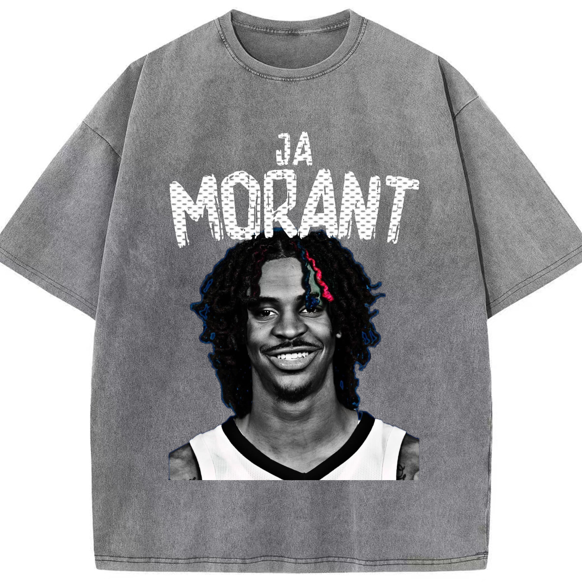 Ja Morant Painted portrait t-shirt - Washed Vintage Look 230g Cotton Oversized T-Shirt With Front Heat Transfer Print – Soft, Lightweight, Stylish Fit – Comfortable Casual Wear For Sports & Everyday Use