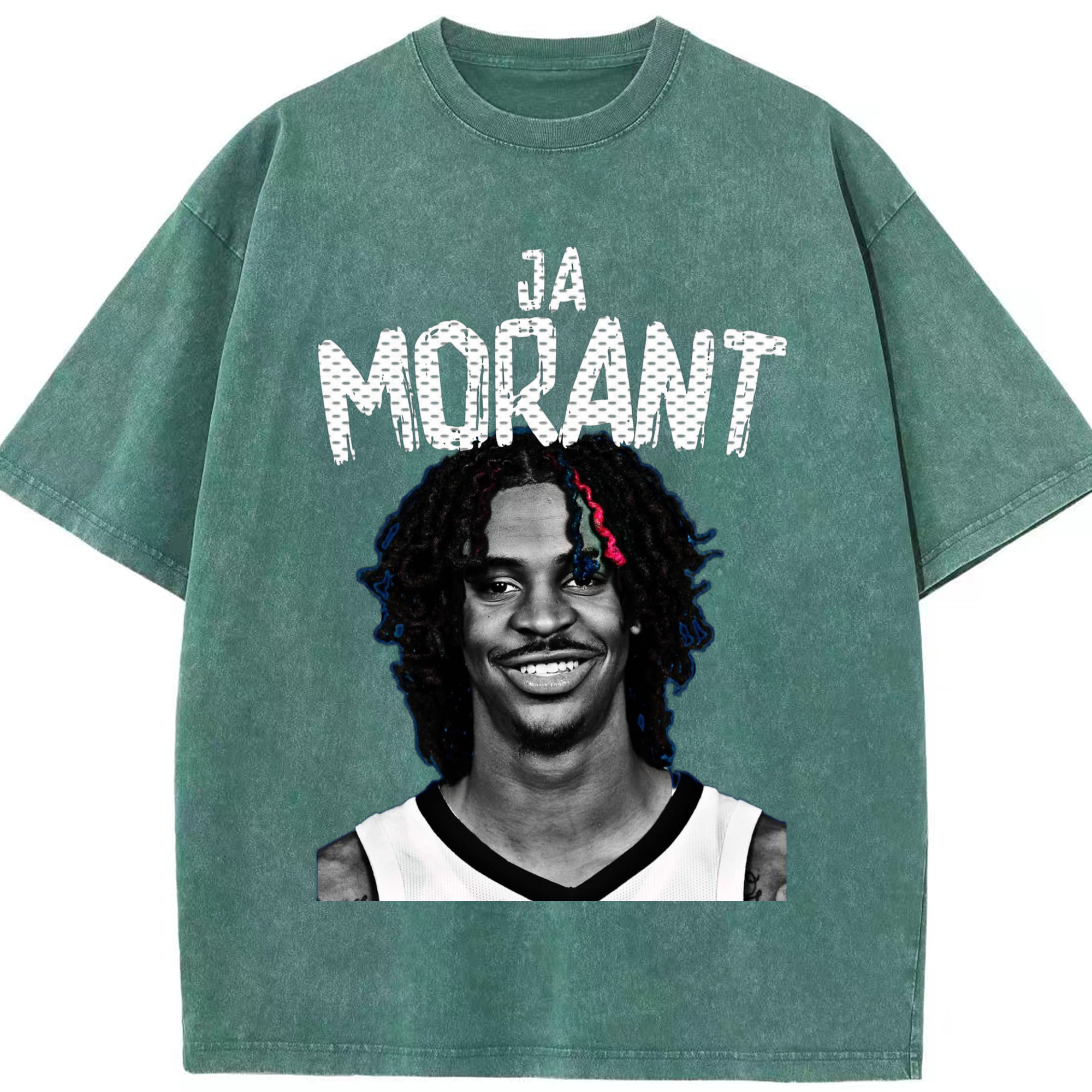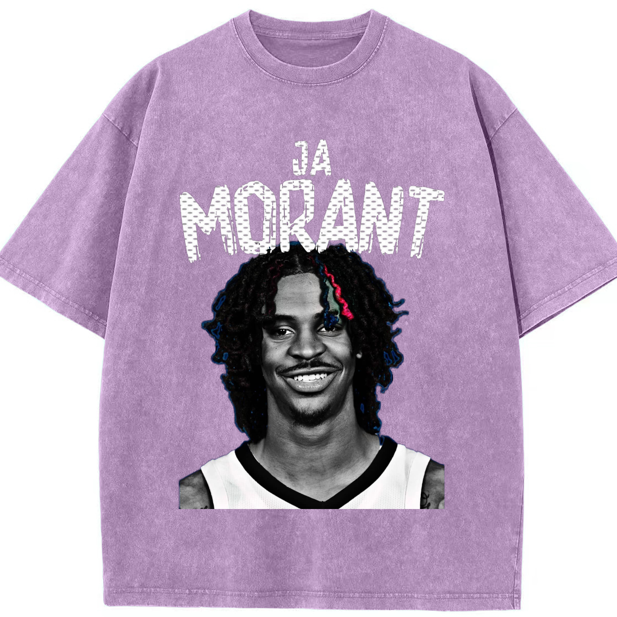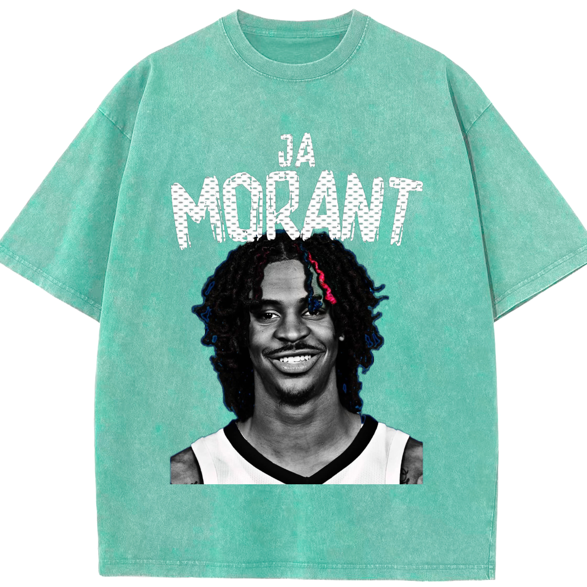 Ja Morant Painted portrait t-shirt - Washed Vintage Look 230g Cotton Oversized T-Shirt With Front Heat Transfer Print – Soft, Lightweight, Stylish Fit – Comfortable Casual Wear For Sports & Everyday Use