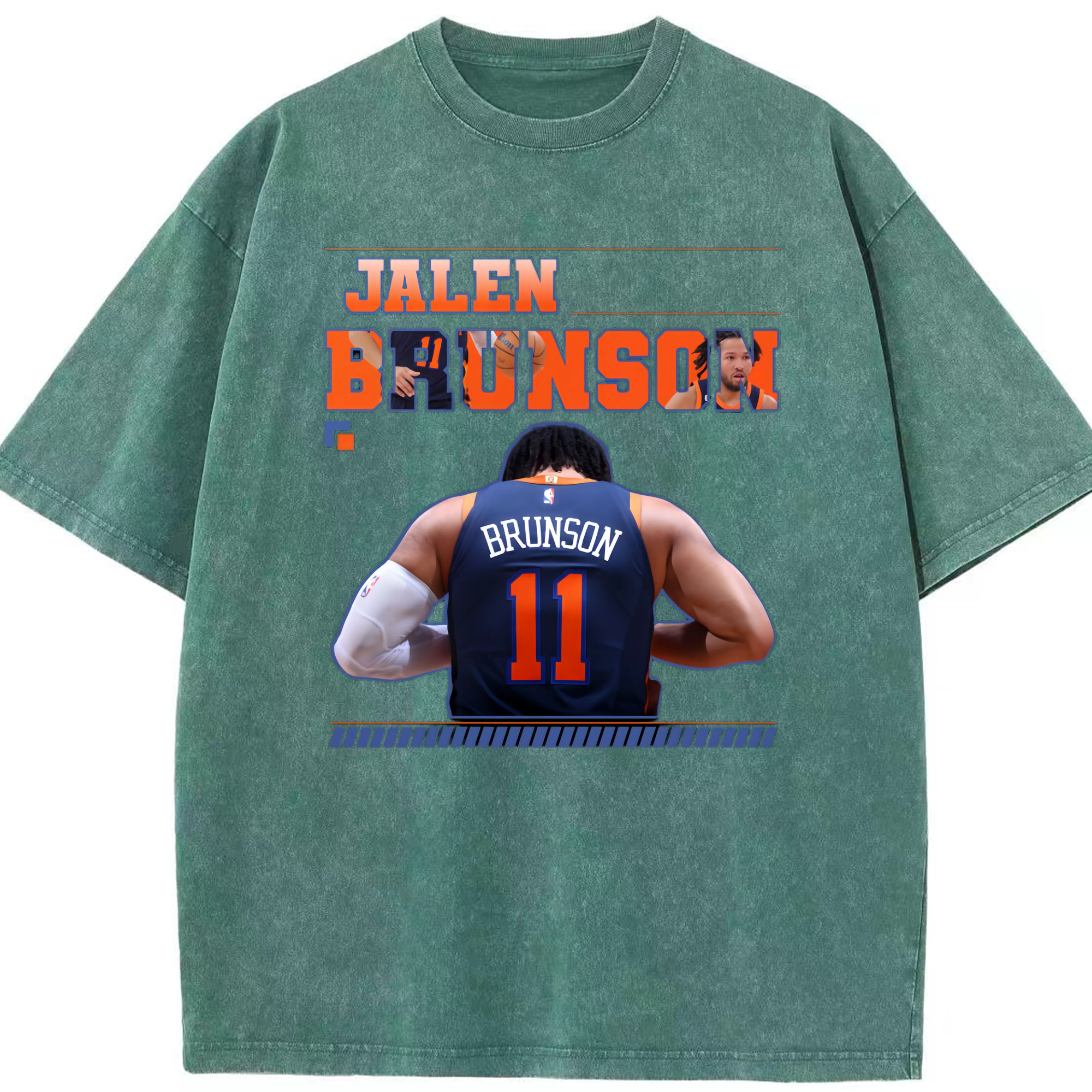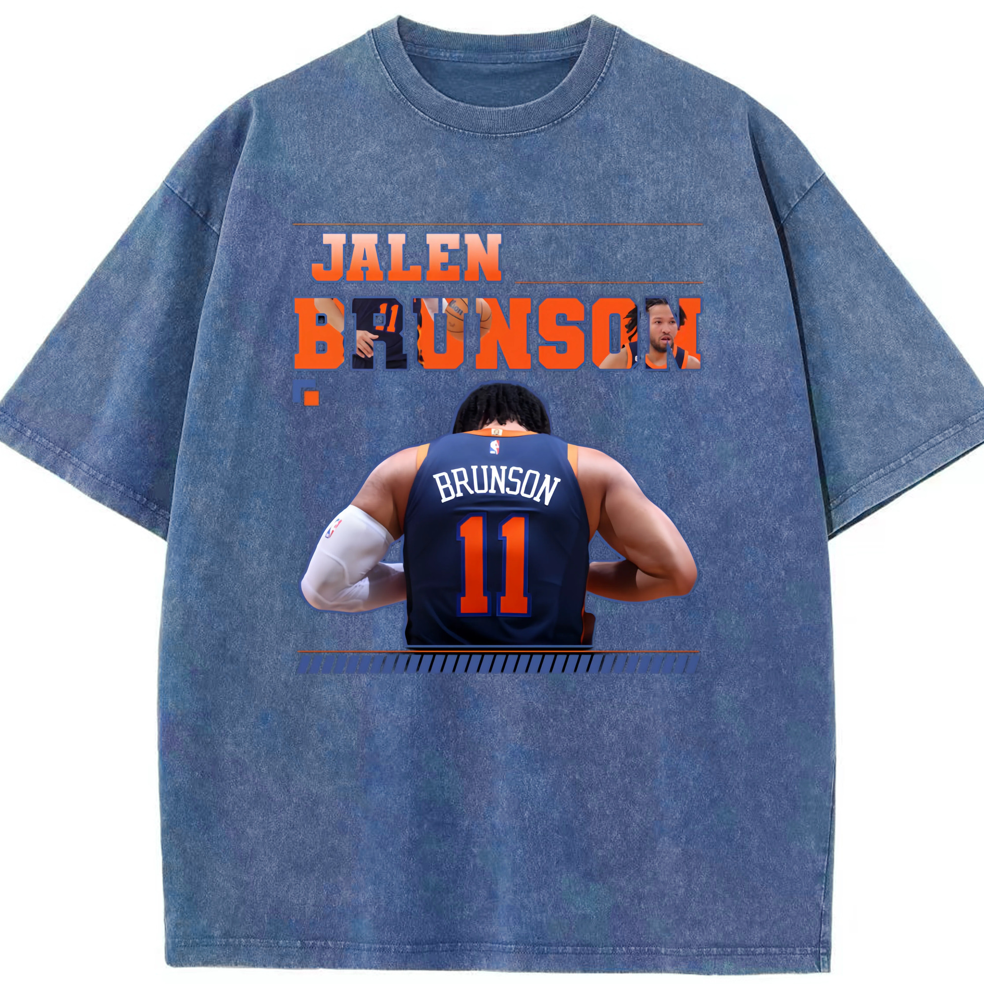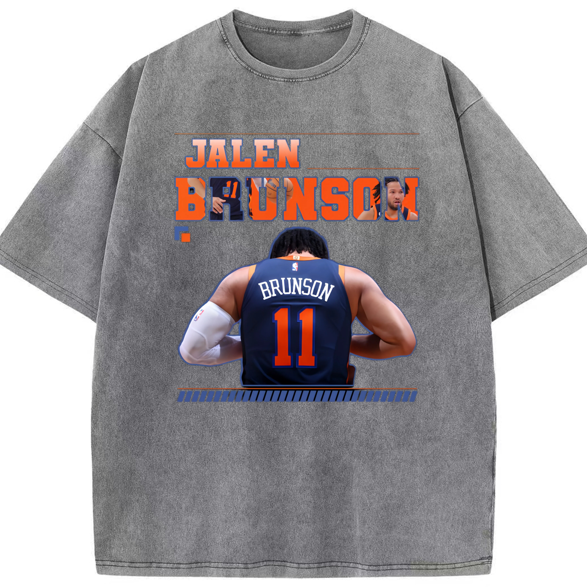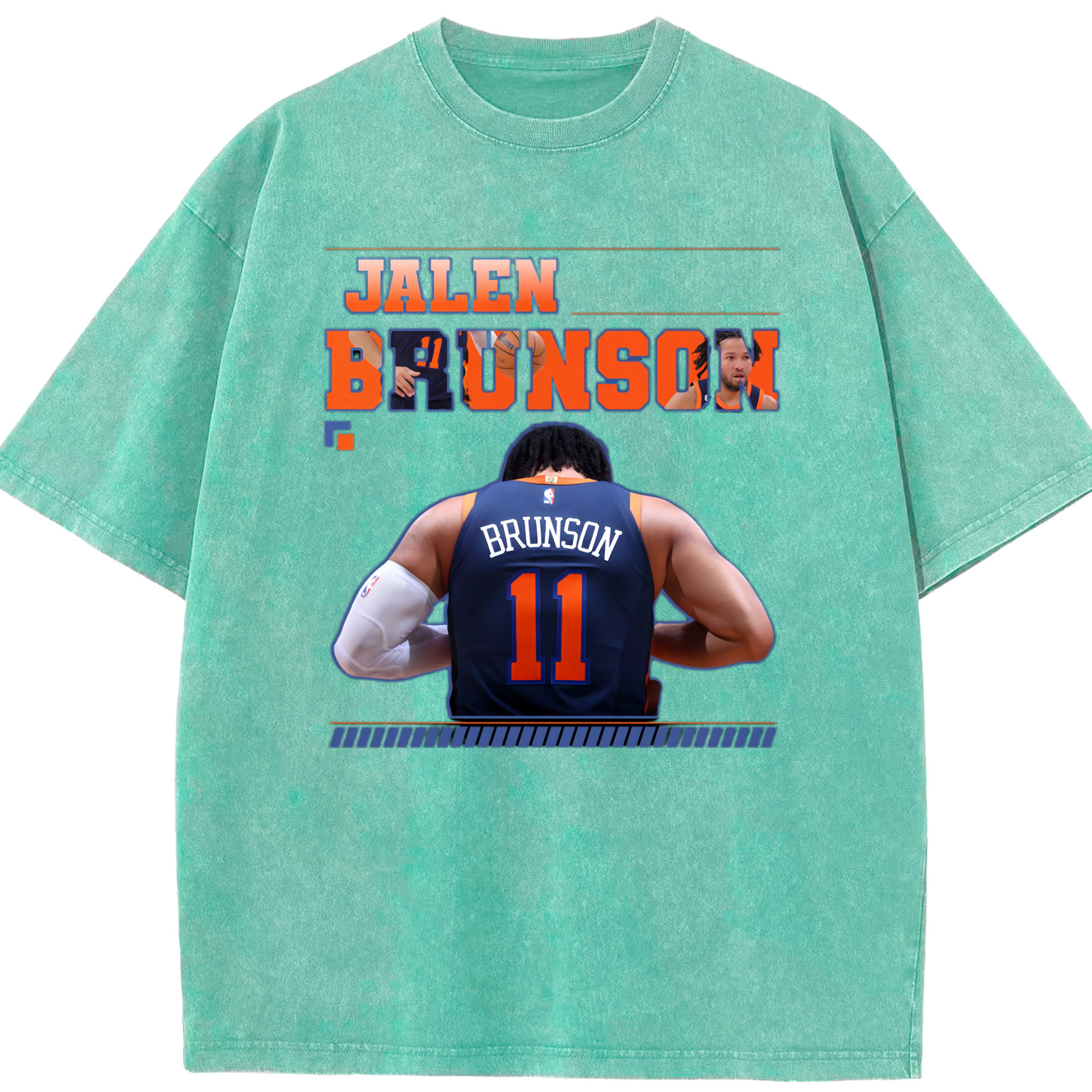 Jalen Brunson Knicks t-Shirt - Washed Vintage Look 230g Cotton Oversized T-Shirt With Front Heat Transfer Print – Soft, Lightweight, Stylish Fit – Comfortable Casual Wear For Sports & Everyday Use